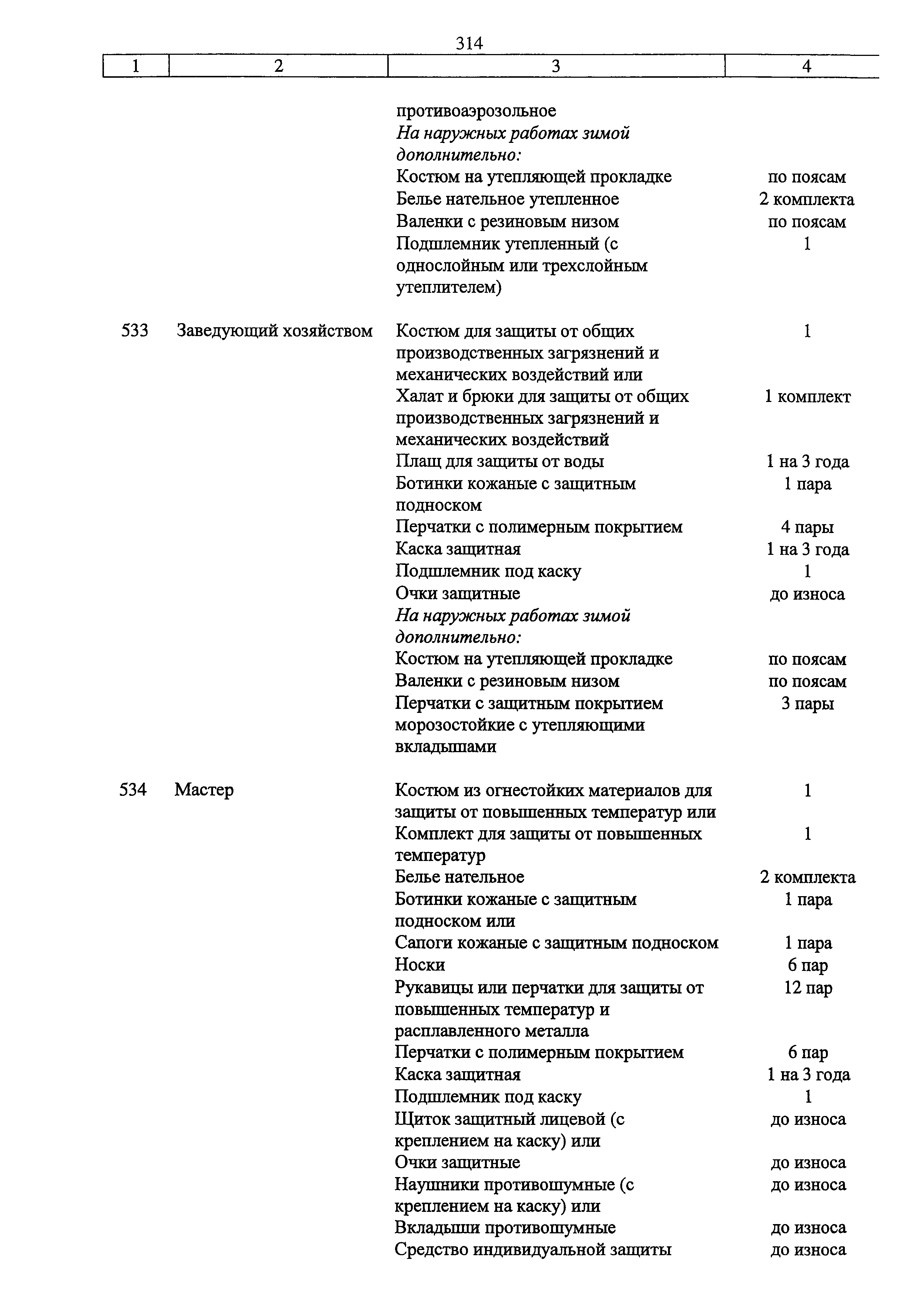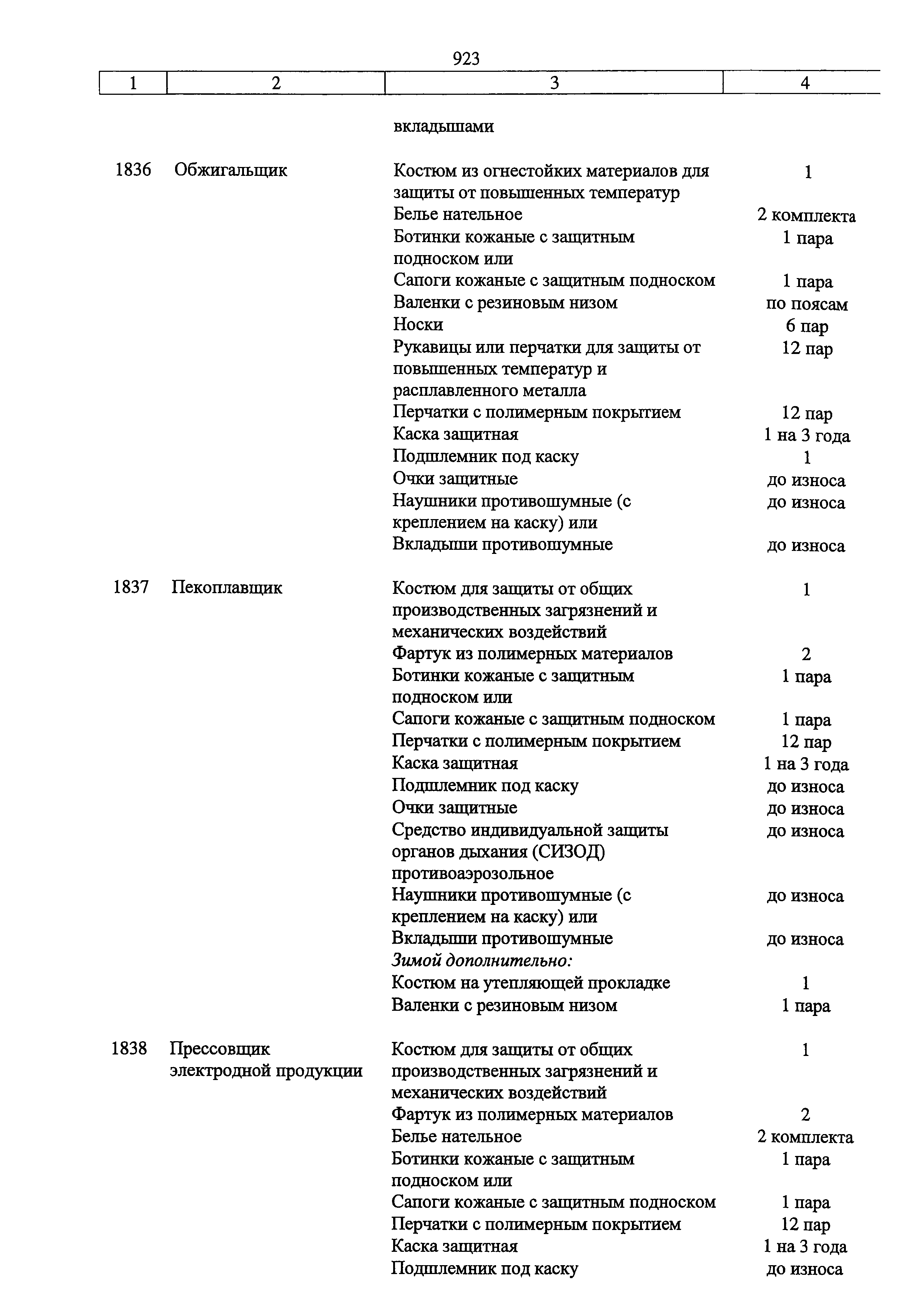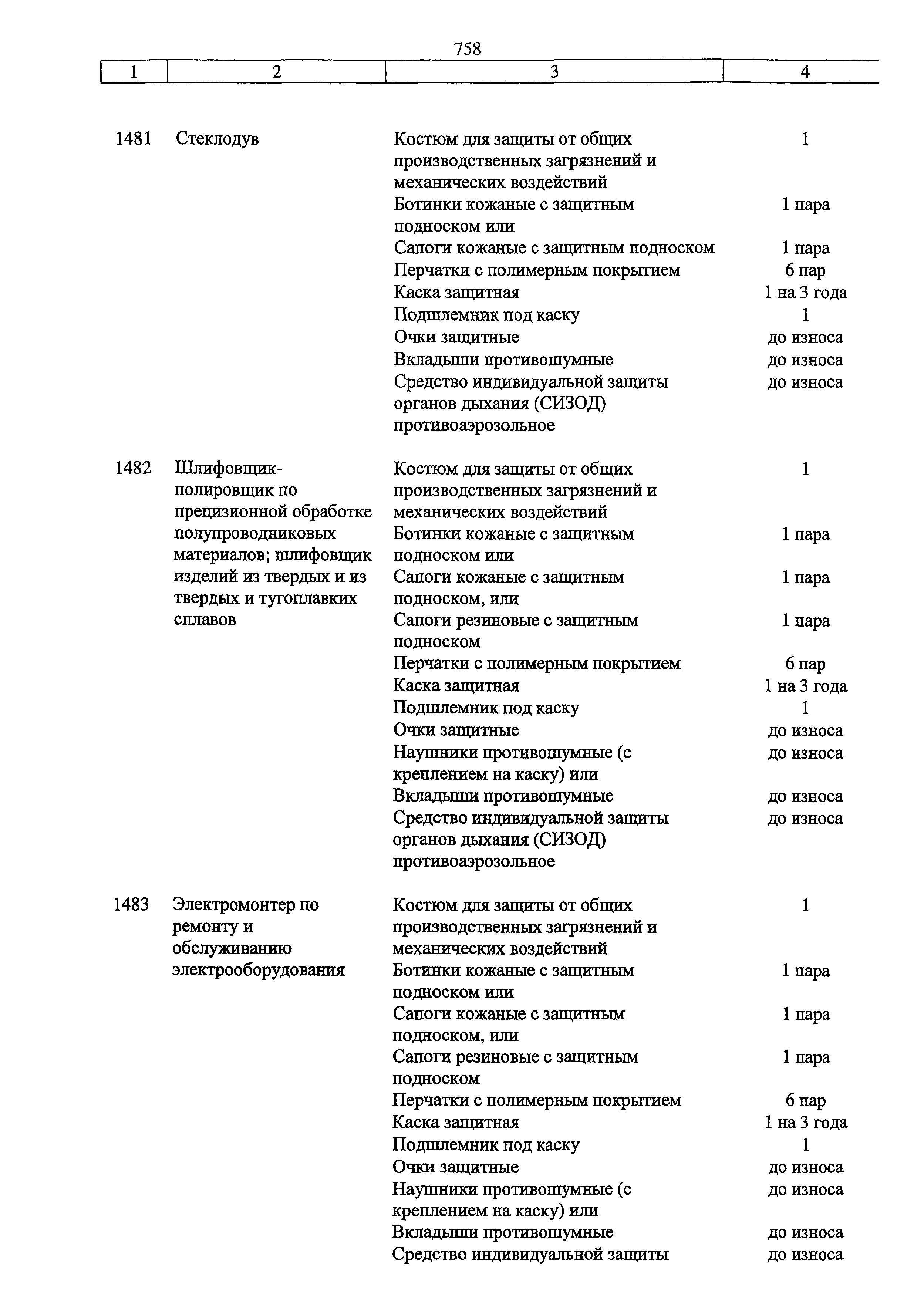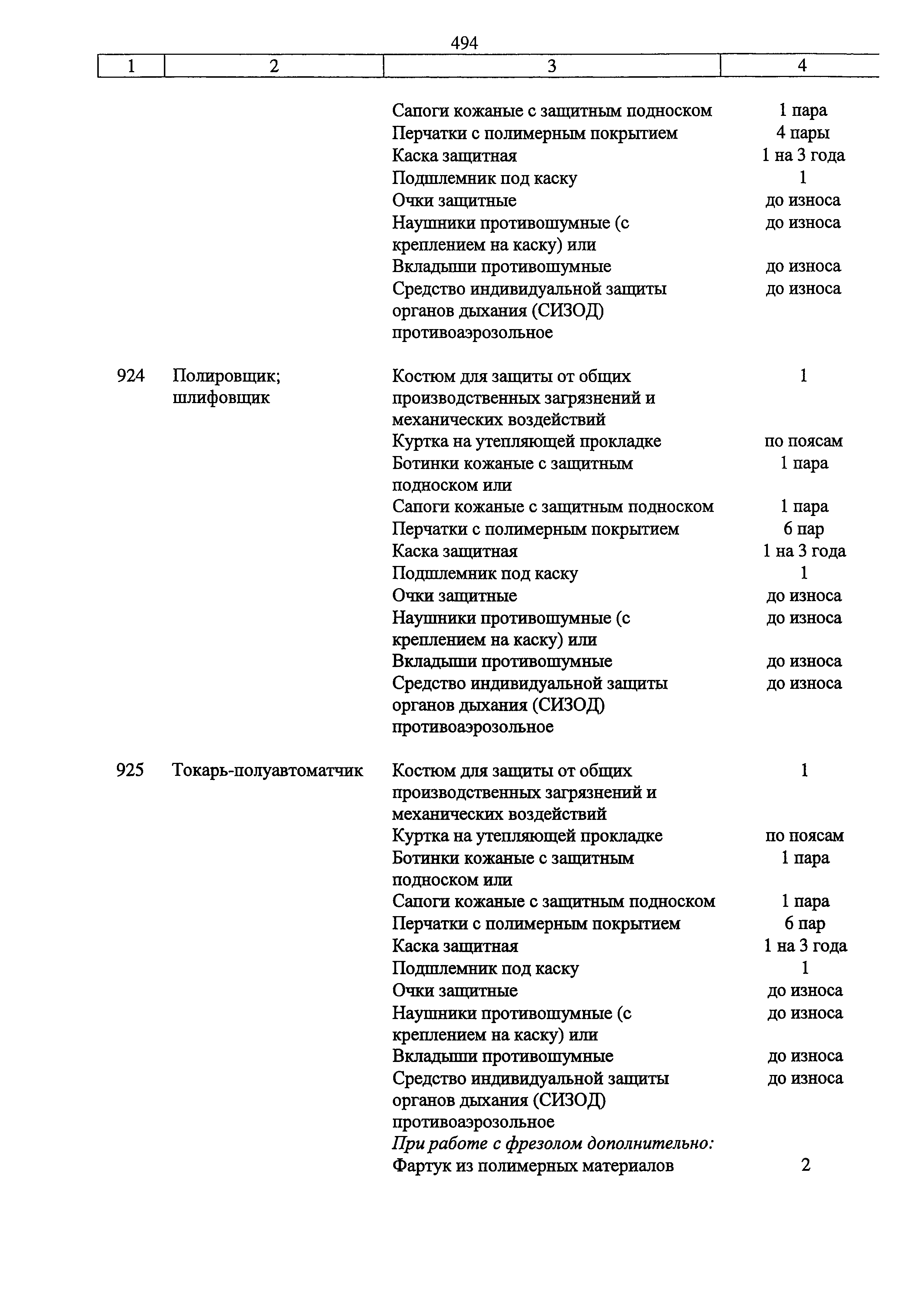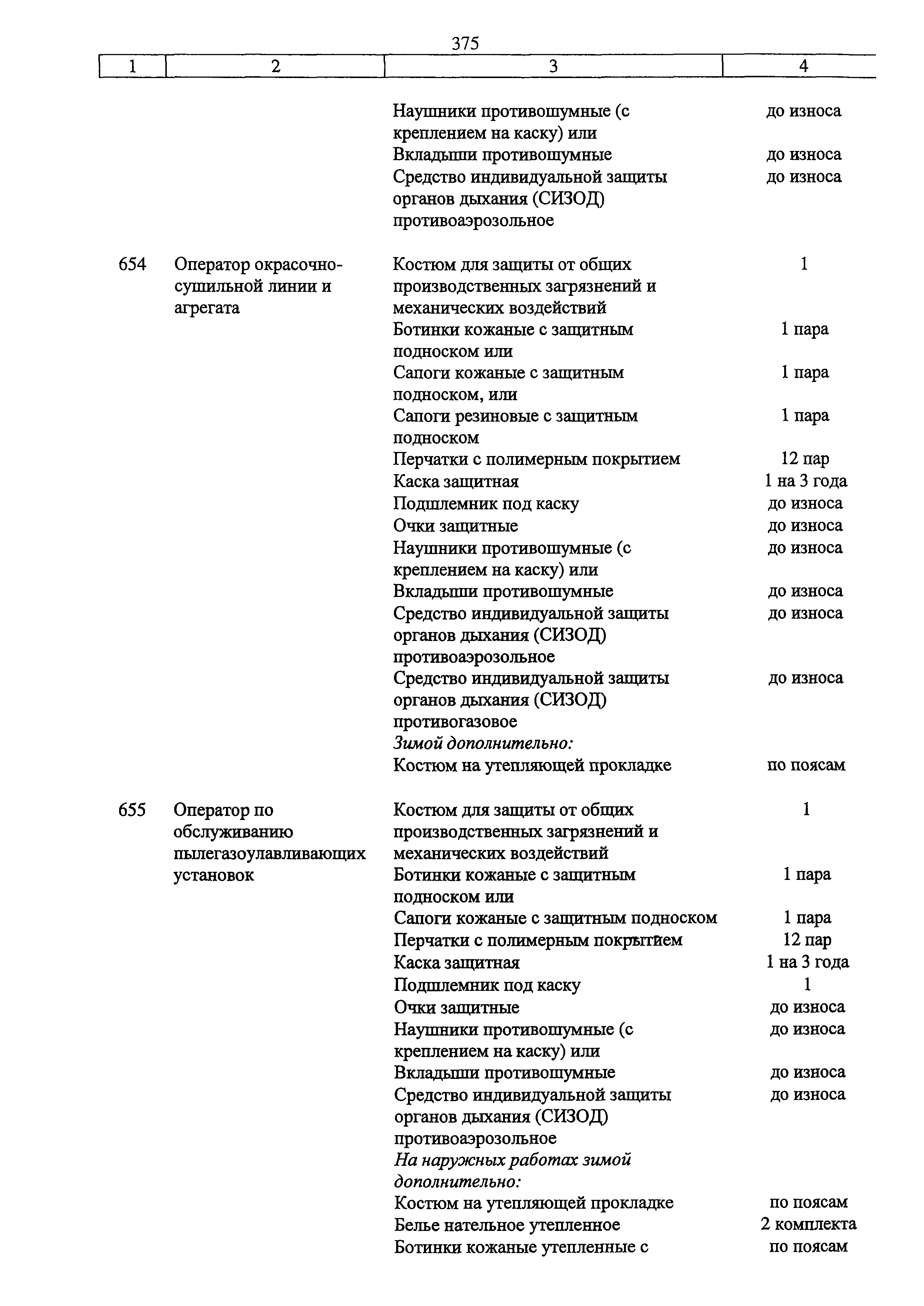 Типовые нормы бесплатной выдачи специальной одежды, специальной обуви и других средств индивидуальной защиты работникам горной и металлургической промышленности и металлургических производств других отраслей промышленности, занятым на работах с вредными и (или) опасными условиями труда, а также на работах, выполняемых в особых температурных условиях или связанных с загрязнением| Статус: | действует | | Название рус.: | Типовые нормы бесплатной выдачи специальной одежды, специальной обуви и других средств индивидуальной защиты работникам горной и металлургической промышленности и металлургических производств других отраслей промышленности, занятым на работах с вредными и (или) опасными условиями труда, а также на работах, выполняемых в особых температурных условиях или связанных с загрязнением | | Дата добавления в базу: | 01.02.2017 | | Дата актуализации: | 01.01.2021 | | Дата введения: | 14.02.2014 | | Область применения: | Нормы утверждаются локальными нормативными актами работодателя на основании результатов аттестации рабочих мест по условиям труда и могут быть включены в коллективный и (или) трудовой договор с указанием типовых норм, по сравнению с которыми улучшается обеспечение работников специальной одеждой, специальной обувью и другими средствами индивидуальной защиты. | | Оглавление: | I Горнодобывающая промышленность 1 Подземные горные работы (шахты) 2 Открытые горные работы и шахтная поверхность 3 Работа на гидравлических установках или с промывочными приборами 4 Дражные работы II Дробление, обогащение, брикетирование, обжиг, агломерация, извлечение металлов и сплавов III Черная металлургия 1 Коксохимическое производство 1.1 Углеподготовительные цеха 1.2 Углеобогатительные цеха 1.3 Производство каменноугольного кокса 1.4 Производство кристаллического нафталина, кумароновой смолы, смолоперерабатывающие цеха 1.5 Производство пиридиновых и фенольно-крезольных продуктов 1.6 Цеха улавливания химических продуктов и газовые цеха 1.7 Цеха ректификации сырого бензола 1.8 Цеха очистки коксового газа от сероводорода 1.9 Производство пекового кокса 1.10 Производство термоантрацита 2 Доменное производство 3 Сталеплавильное производство 3.1 Установки непрерывной разливки стали 4 Производство ферросплавов 4.1 Электролитическое производство 4.2 Производство электролитического хрома 4.3 Производство феррованадия 4.4 Подготовка шихты, обжиг руд и концентратов 4.5 Разливка и разделка ферросплавов 4.6 Обжиг извести 4.7 Общие профессии и должности ферросплавного производства 5 Прокатное производство 6 Производство труб (прокатка, сварка и волочение) 7 Колесопрокатное и бандажное производства 8 Валопрокатное производство 9 Производство рельсовых скреплений 10 Производство баллонов 11 Труболитейное производство 12 Производство метизов 12.1 Производство металлических канатов, сеток, пружин и пружинной ленты, щеток, цепей, колючей проволоки и других метизов 12.2 Волочение проволоки, калибровка и шлифовка металла 12.3 Изготовление волок 12.4 Холодноштамповочные и кузнечно-прессовые работы 12.5 Термическая обработка 12.6 Травление металла, защитные покрытия проволоки и извлечение железного купороса 12.7 Производство металлических электродов и порошковой проволоки 13 Производство огнеупоров 13.1 Огнеупоры 13.2 Карборундовые стержни 13.3 Высокоогнеупорные окислы 14 Ремонт 
