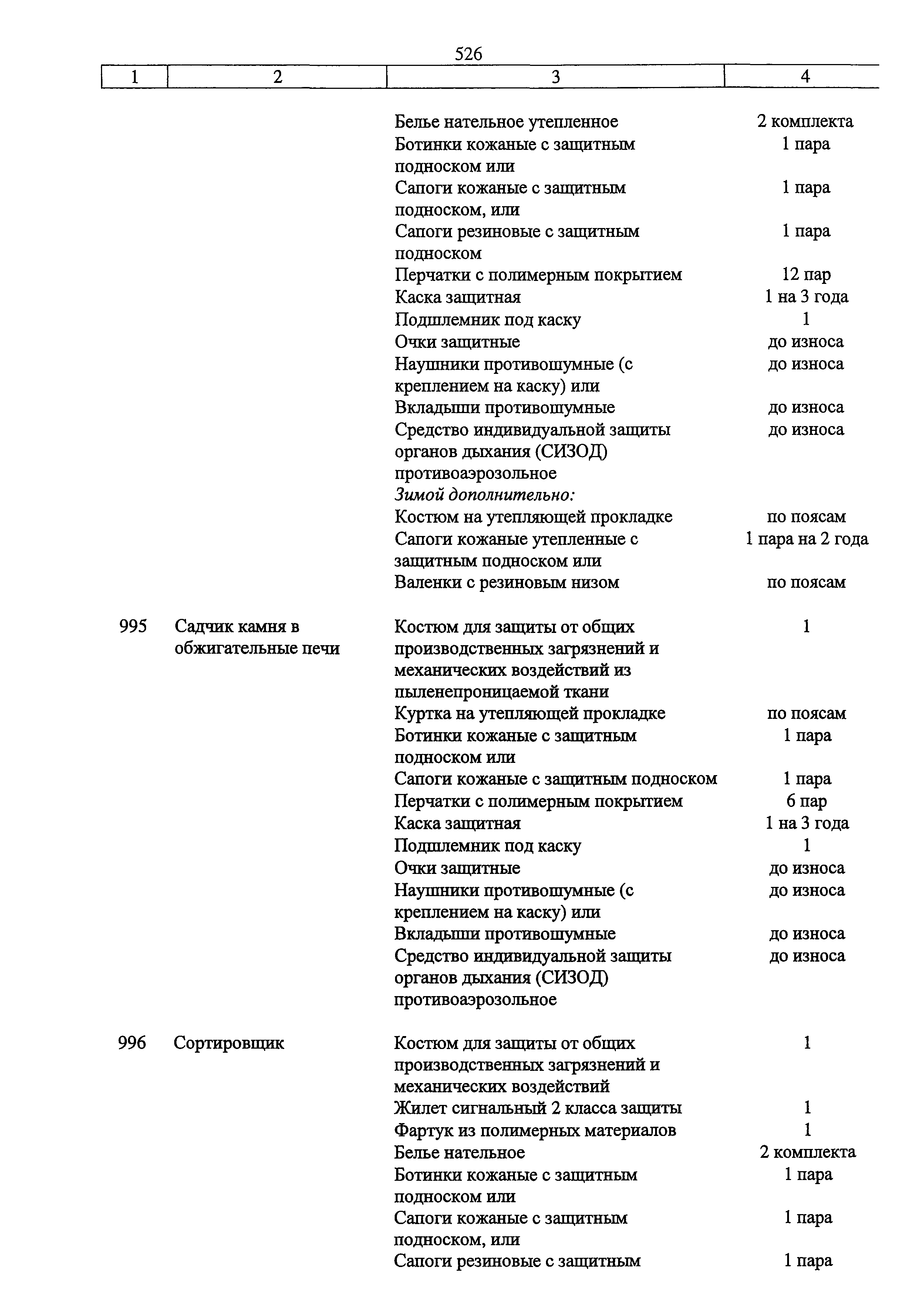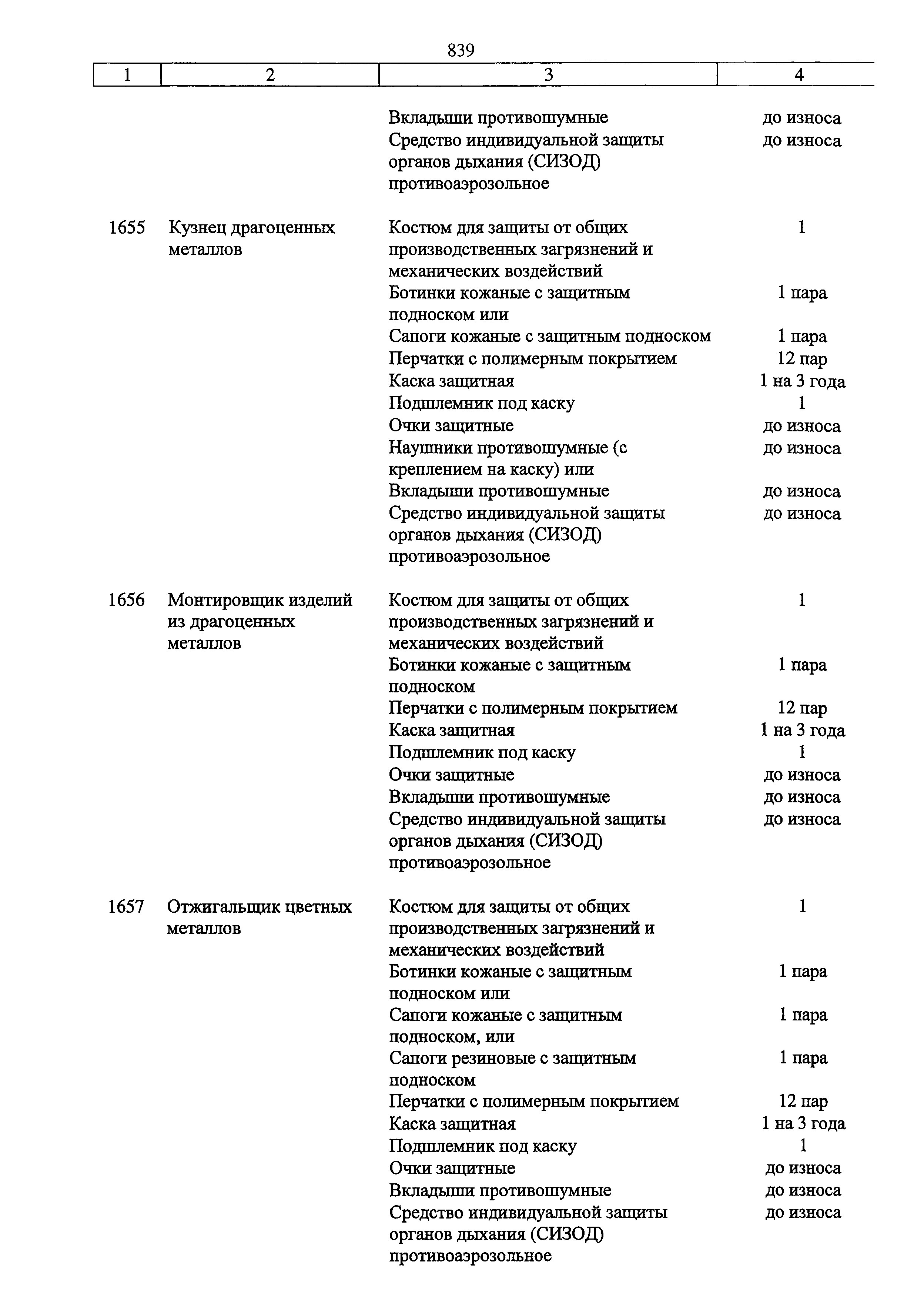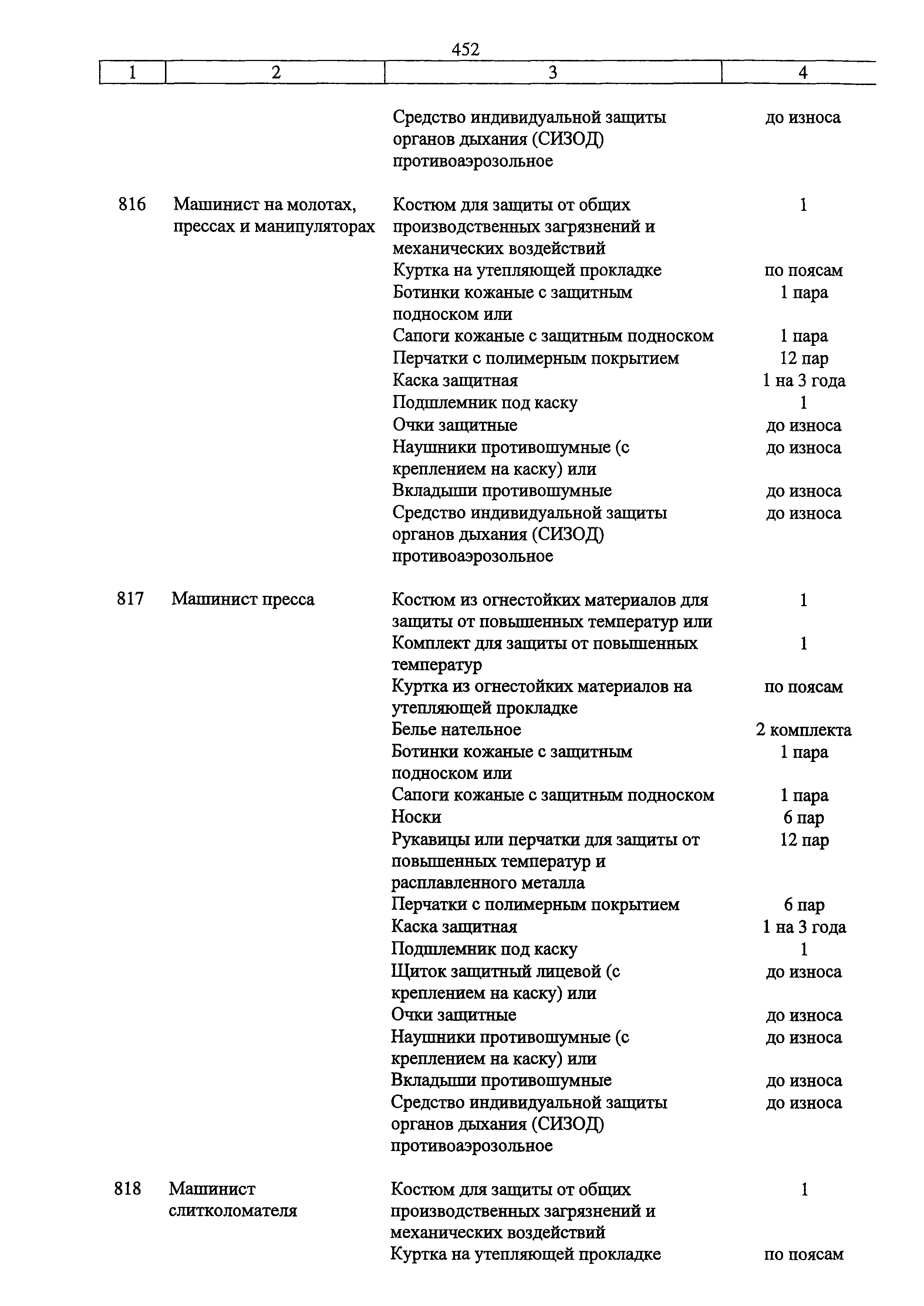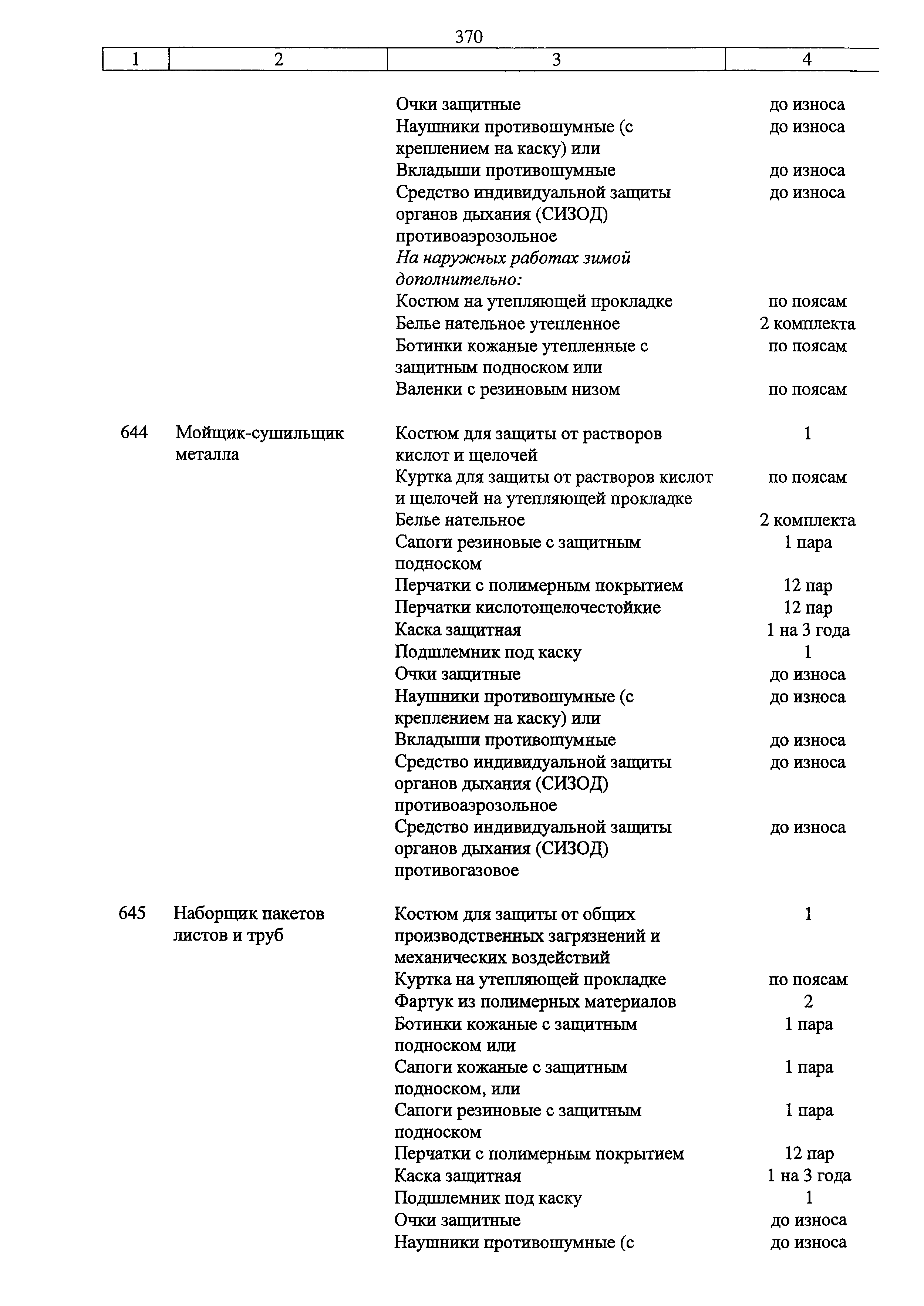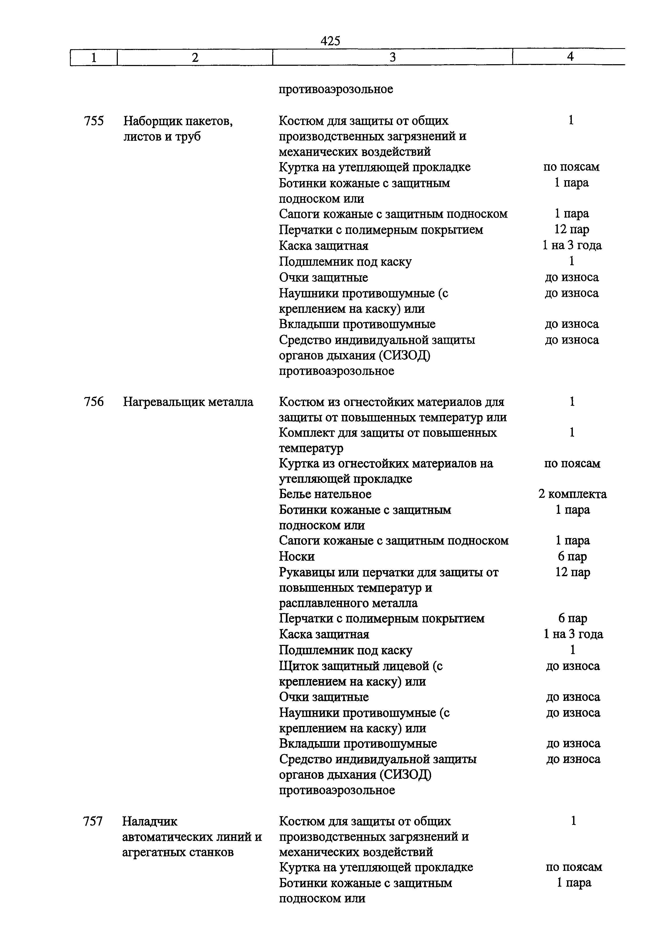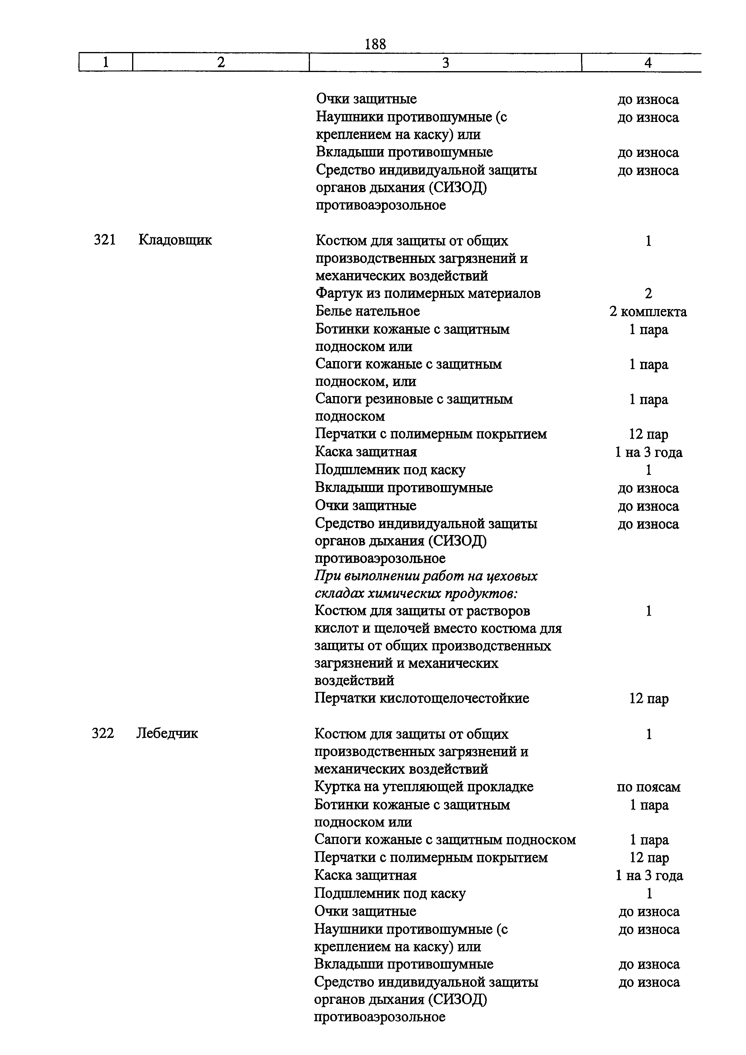 Типовые нормы бесплатной выдачи специальной одежды, специальной обуви и других средств индивидуальной защиты работникам горной и металлургической промышленности и металлургических производств других отраслей промышленности, занятым на работах с вредными и (или) опасными условиями труда, а также на работах, выполняемых в особых температурных условиях или связанных с загрязнением| Статус: | действует | | Название рус.: | Типовые нормы бесплатной выдачи специальной одежды, специальной обуви и других средств индивидуальной защиты работникам горной и металлургической промышленности и металлургических производств других отраслей промышленности, занятым на работах с вредными и (или) опасными условиями труда, а также на работах, выполняемых в особых температурных условиях или связанных с загрязнением | | Дата добавления в базу: | 01.02.2017 | | Дата актуализации: | 01.01.2021 | | Дата введения: | 14.02.2014 | | Область применения: | Нормы утверждаются локальными нормативными актами работодателя на основании результатов аттестации рабочих мест по условиям труда и могут быть включены в коллективный и (или) трудовой договор с указанием типовых норм, по сравнению с которыми улучшается обеспечение работников специальной одеждой, специальной обувью и другими средствами индивидуальной защиты. | | Оглавление: | I Горнодобывающая промышленность 1 Подземные горные работы (шахты) 2 Открытые горные работы и шахтная поверхность 3 Работа на гидравлических установках или с промывочными приборами 4 Дражные работы II Дробление, обогащение, брикетирование, обжиг, агломерация, извлечение металлов и сплавов III Черная металлургия 1 Коксохимическое производство 1.1 Углеподготовительные цеха 1.2 Углеобогатительные цеха 1.3 Производство каменноугольного кокса 1.4 Производство кристаллического нафталина, кумароновой смолы, смолоперерабатывающие цеха 1.5 Производство пиридиновых и фенольно-крезольных продуктов 1.6 Цеха улавливания химических продуктов и газовые цеха 1.7 Цеха ректификации сырого бензола 1.8 Цеха очистки коксового газа от сероводорода 1.9 Производство пекового кокса 1.10 Производство термоантрацита 2 Доменное производство 3 Сталеплавильное производство 3.1 Установки непрерывной разливки стали 4 Производство ферросплавов 4.1 Электролитическое производство 4.2 Производство электролитического хрома 4.3 Производство феррованадия 4.4 Подготовка шихты, обжиг руд и концентратов 4.5 Разливка и разделка ферросплавов 4.6 Обжиг извести 4.7 Общие профессии и должности ферросплавного производства 5 Прокатное производство 6 Производство труб (прокатка, сварка и волочение) 7 Колесопрокатное и бандажное производства 8 Валопрокатное производство 9 Производство рельсовых скреплений 10 Производство баллонов 11 Труболитейное производство 12 Производство метизов 12.1 Производство металлических канатов, сеток, пружин и пружинной ленты, щеток, цепей, колючей проволоки и других метизов 12.2 Волочение проволоки, калибровка и шлифовка металла 12.3 Изготовление волок 12.4 Холодноштамповочные и кузнечно-прессовые работы 12.5 Термическая обработка 12.6 Травление металла, защитные покрытия проволоки и извлечение железного купороса 12.7 Производство металлических электродов и порошковой проволоки 13 Производство огнеупоров 13.1 Огнеупоры 13.2 Карборундовые стержни 13.3 Высокоогнеупорные окислы 14 Ремонт 