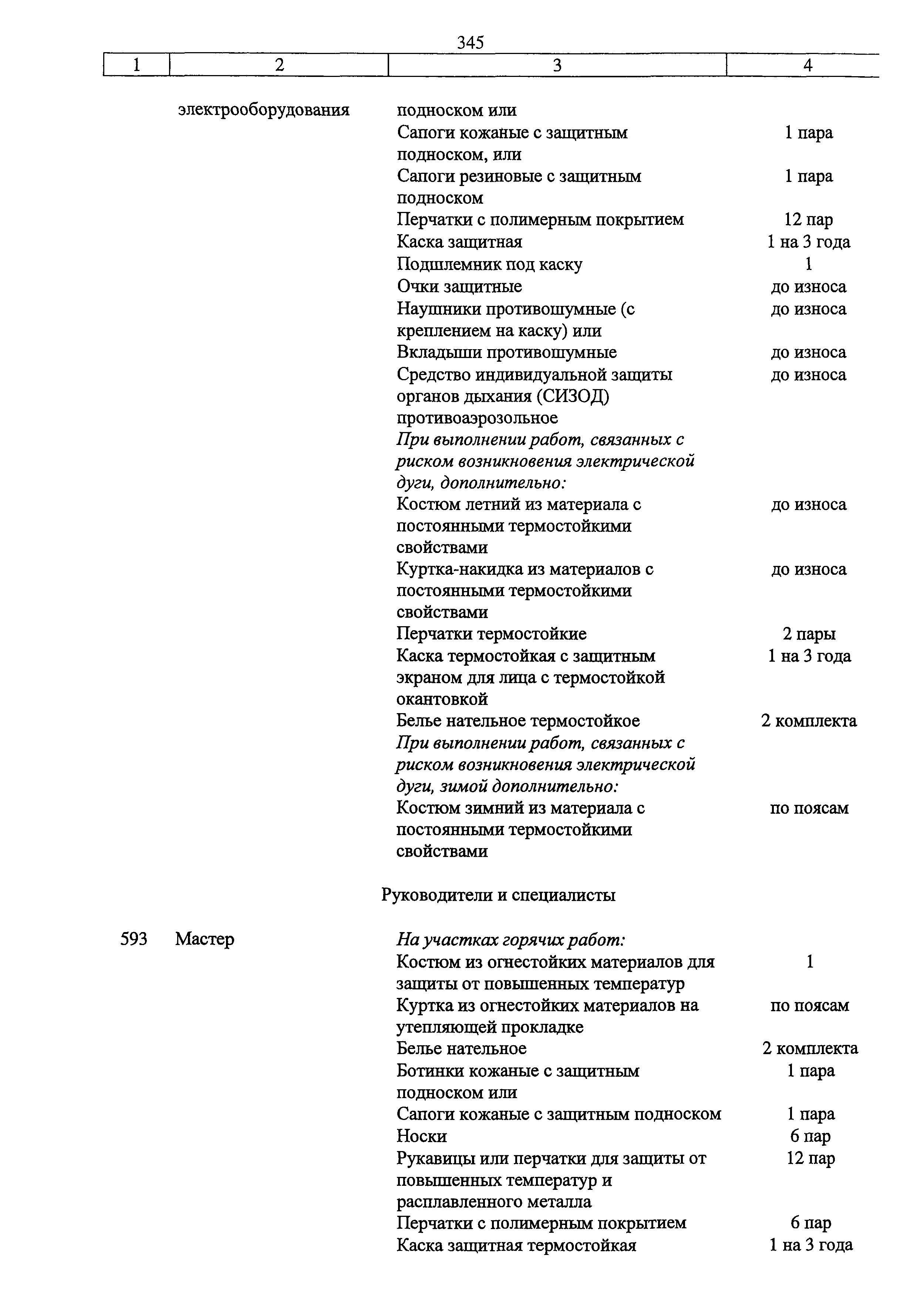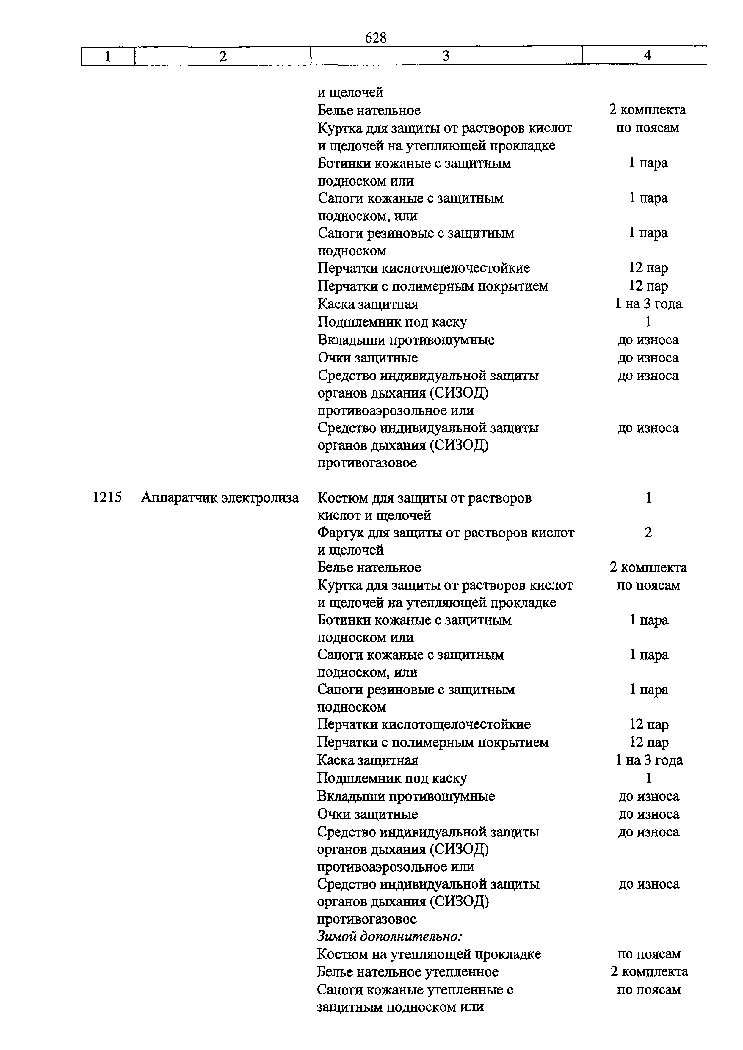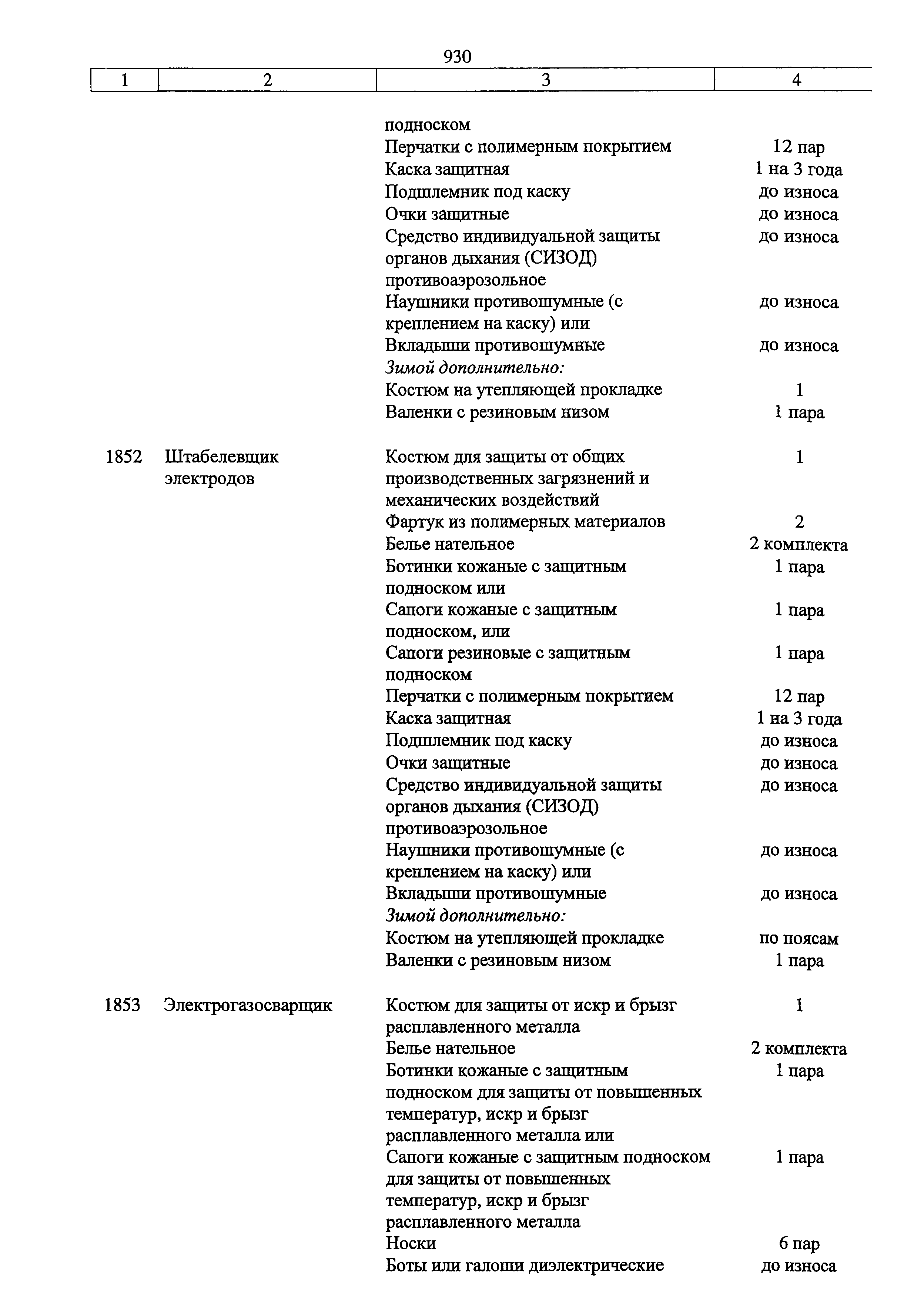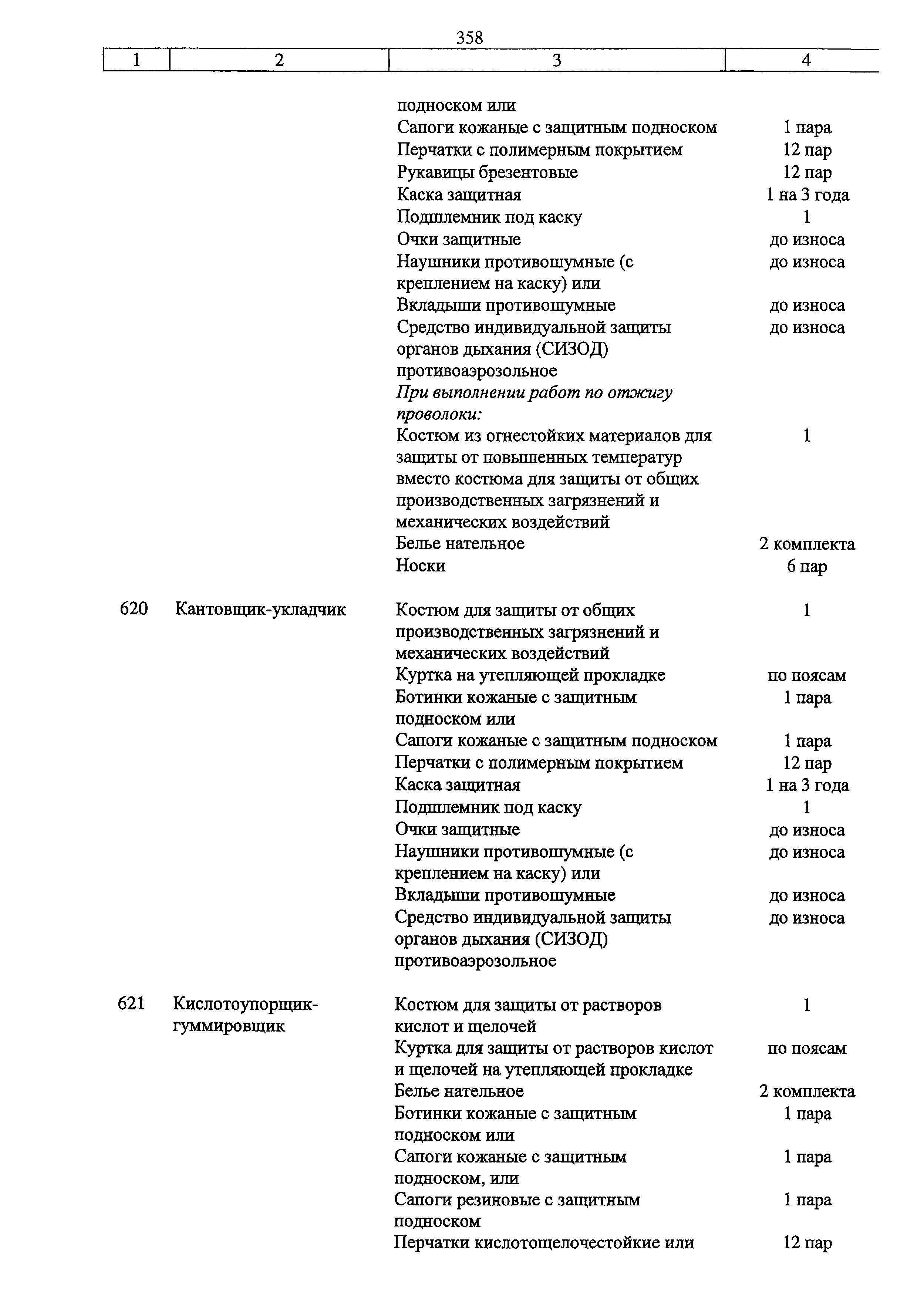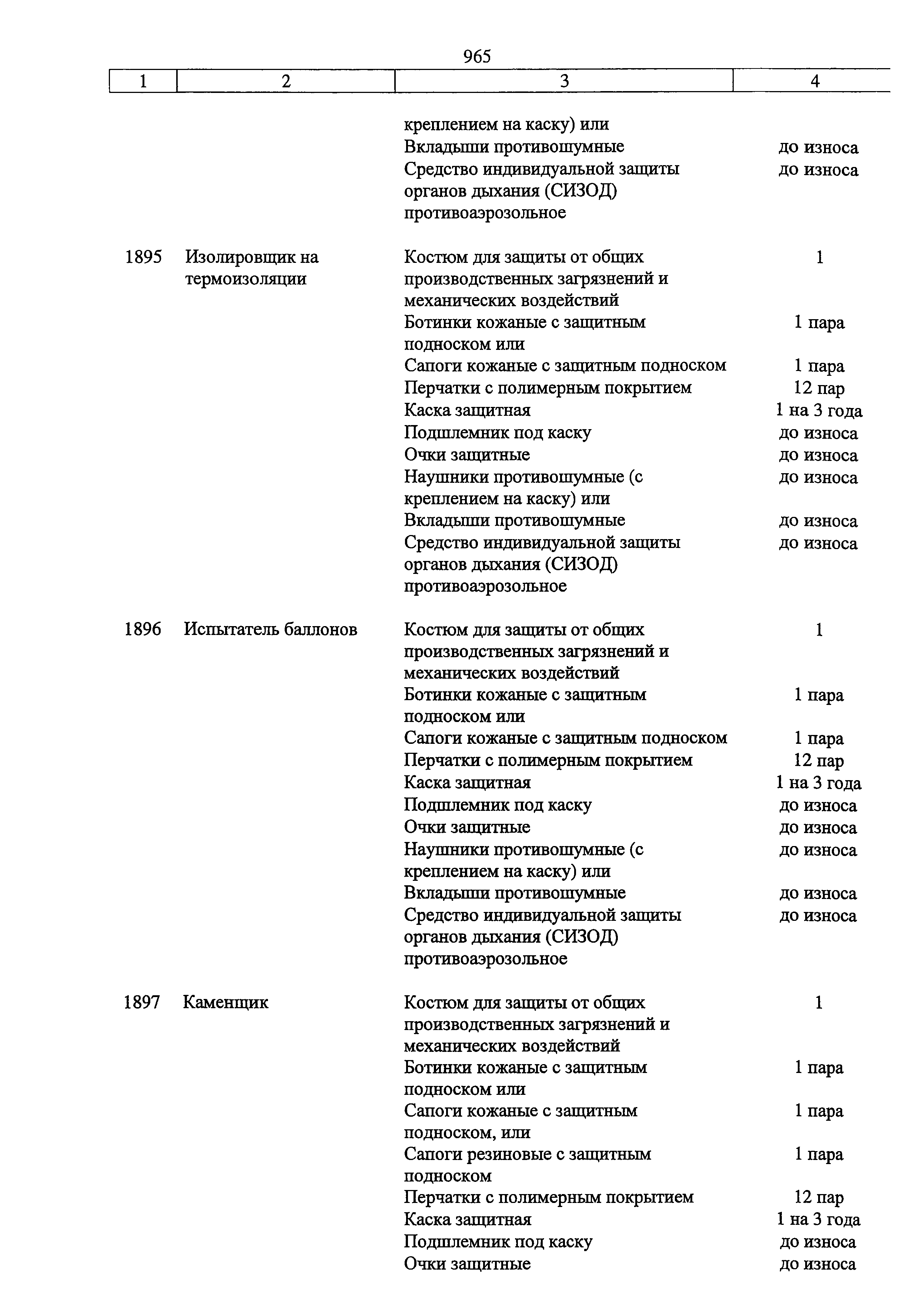 Типовые нормы бесплатной выдачи специальной одежды, специальной обуви и других средств индивидуальной защиты работникам горной и металлургической промышленности и металлургических производств других отраслей промышленности, занятым на работах с вредными и (или) опасными условиями труда, а также на работах, выполняемых в особых температурных условиях или связанных с загрязнением| Статус: | действует | | Название рус.: | Типовые нормы бесплатной выдачи специальной одежды, специальной обуви и других средств индивидуальной защиты работникам горной и металлургической промышленности и металлургических производств других отраслей промышленности, занятым на работах с вредными и (или) опасными условиями труда, а также на работах, выполняемых в особых температурных условиях или связанных с загрязнением | | Дата добавления в базу: | 01.02.2017 | | Дата актуализации: | 01.01.2021 | | Дата введения: | 14.02.2014 | | Область применения: | Нормы утверждаются локальными нормативными актами работодателя на основании результатов аттестации рабочих мест по условиям труда и могут быть включены в коллективный и (или) трудовой договор с указанием типовых норм, по сравнению с которыми улучшается обеспечение работников специальной одеждой, специальной обувью и другими средствами индивидуальной защиты. | | Оглавление: | I Горнодобывающая промышленность 1 Подземные горные работы (шахты) 2 Открытые горные работы и шахтная поверхность 3 Работа на гидравлических установках или с промывочными приборами 4 Дражные работы II Дробление, обогащение, брикетирование, обжиг, агломерация, извлечение металлов и сплавов III Черная металлургия 1 Коксохимическое производство 1.1 Углеподготовительные цеха 1.2 Углеобогатительные цеха 1.3 Производство каменноугольного кокса 1.4 Производство кристаллического нафталина, кумароновой смолы, смолоперерабатывающие цеха 1.5 Производство пиридиновых и фенольно-крезольных продуктов 1.6 Цеха улавливания химических продуктов и газовые цеха 1.7 Цеха ректификации сырого бензола 1.8 Цеха очистки коксового газа от сероводорода 1.9 Производство пекового кокса 1.10 Производство термоантрацита 2 Доменное производство 3 Сталеплавильное производство 3.1 Установки непрерывной разливки стали 4 Производство ферросплавов 4.1 Электролитическое производство 4.2 Производство электролитического хрома 4.3 Производство феррованадия 4.4 Подготовка шихты, обжиг руд и концентратов 4.5 Разливка и разделка ферросплавов 4.6 Обжиг извести 4.7 Общие профессии и должности ферросплавного производства 5 Прокатное производство 6 Производство труб (прокатка, сварка и волочение) 7 Колесопрокатное и бандажное производства 8 Валопрокатное производство 9 Производство рельсовых скреплений 10 Производство баллонов 11 Труболитейное производство 12 Производство метизов 12.1 Производство металлических канатов, сеток, пружин и пружинной ленты, щеток, цепей, колючей проволоки и других метизов 12.2 Волочение проволоки, калибровка и шлифовка металла 12.3 Изготовление волок 12.4 Холодноштамповочные и кузнечно-прессовые работы 12.5 Термическая обработка 12.6 Травление металла, защитные покрытия проволоки и извлечение железного купороса 12.7 Производство металлических электродов и порошковой проволоки 13 Производство огнеупоров 13.1 Огнеупоры 13.2 Карборундовые стержни 13.3 Высокоогнеупорные окислы 14 Ремонт 
