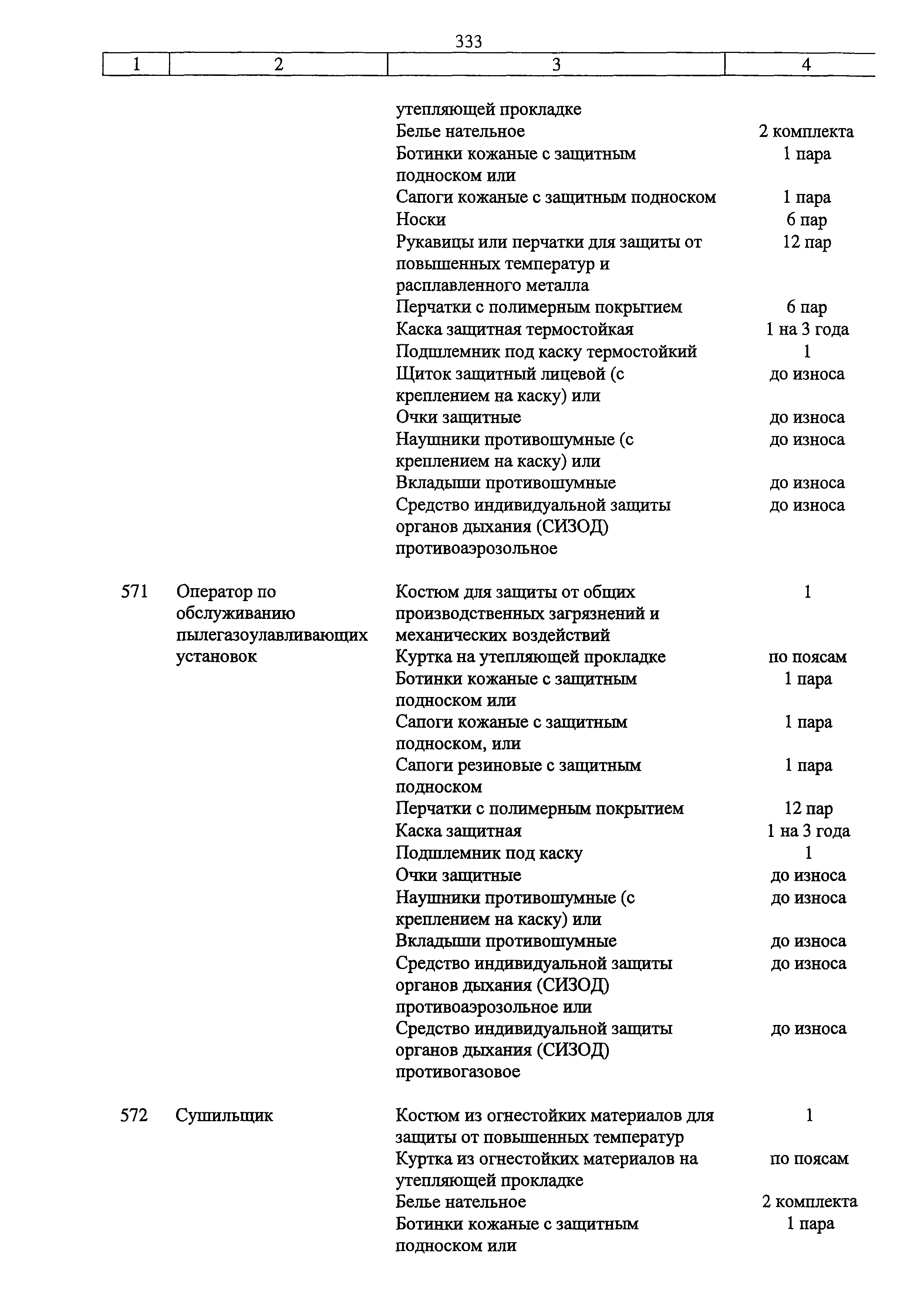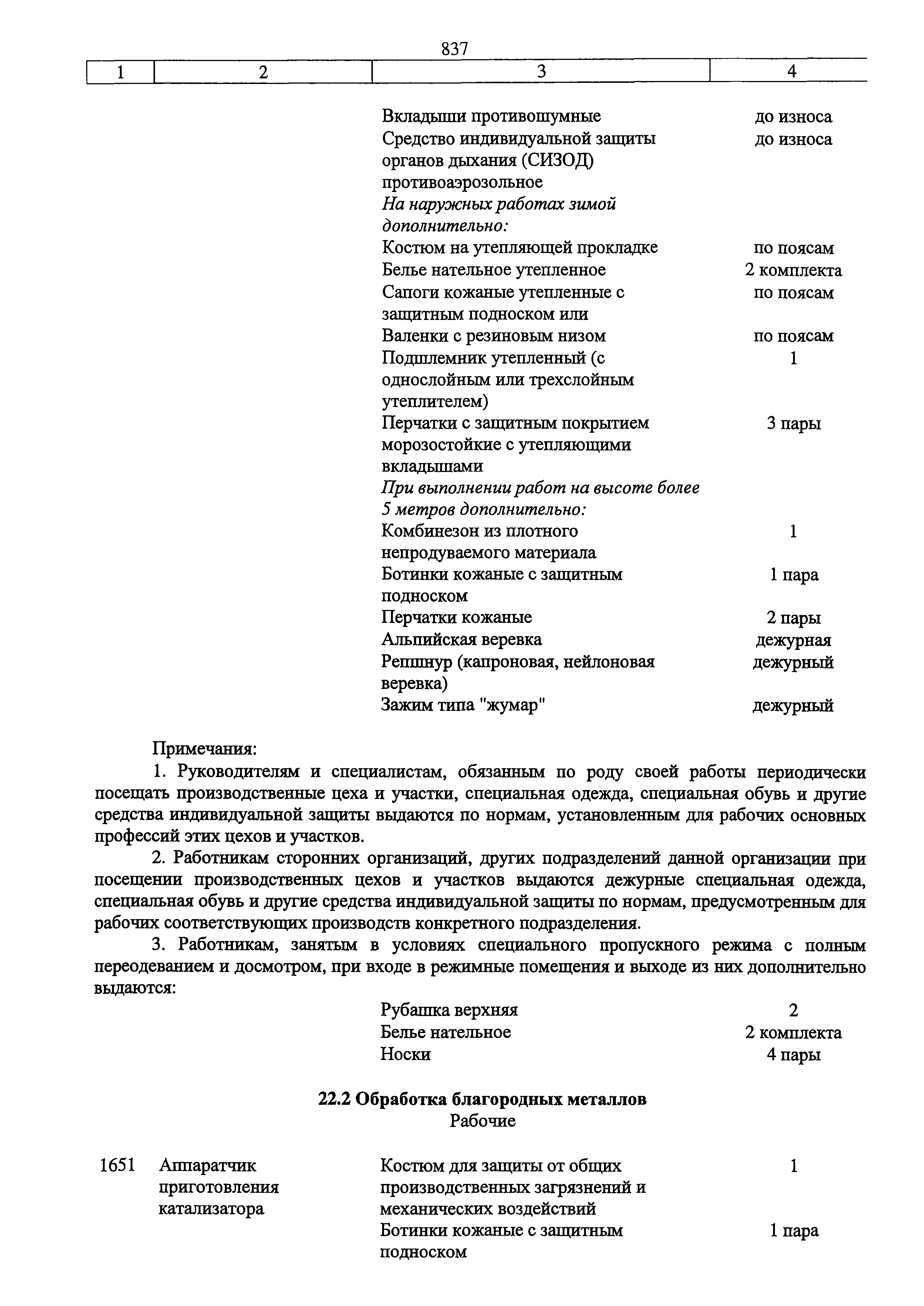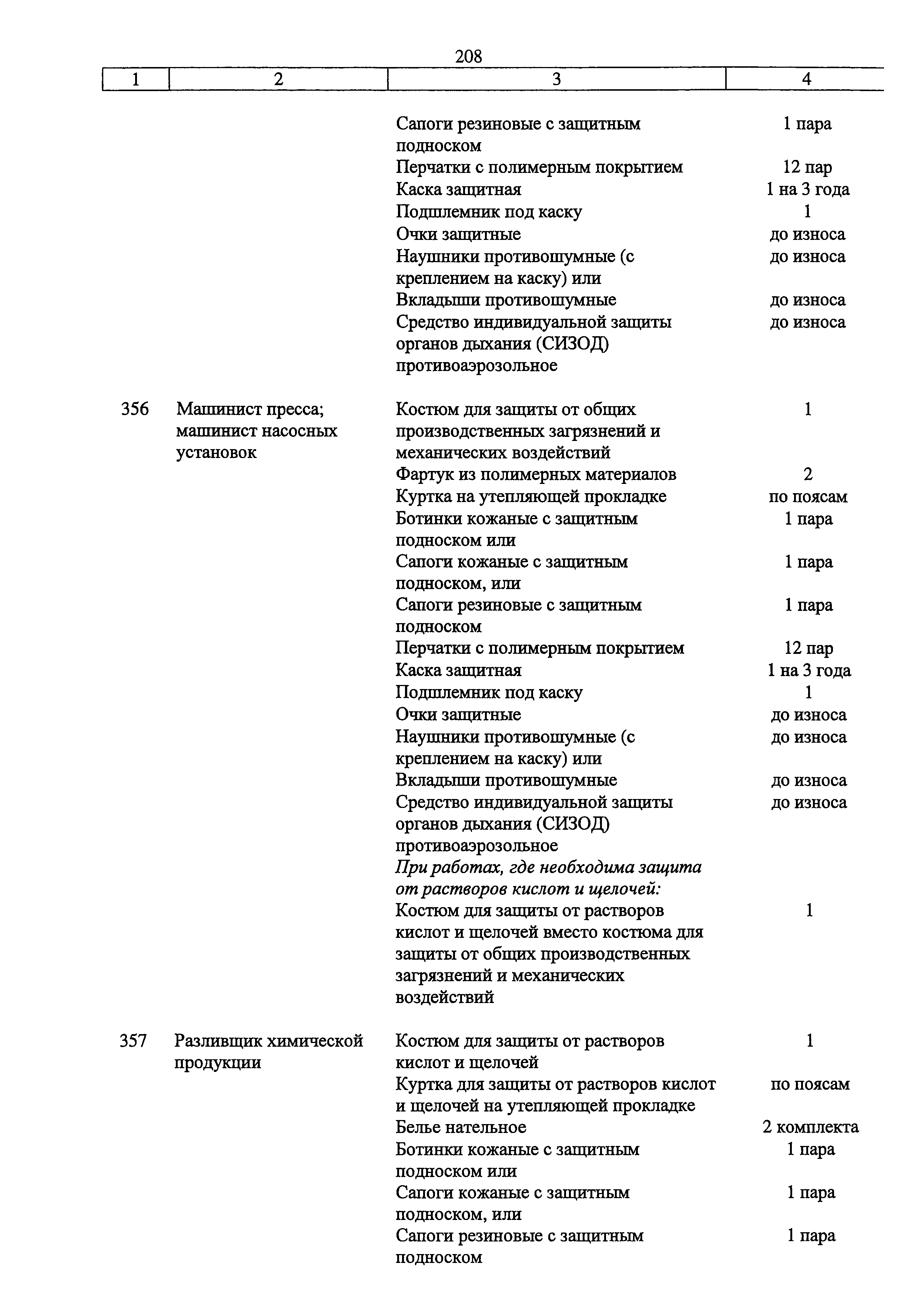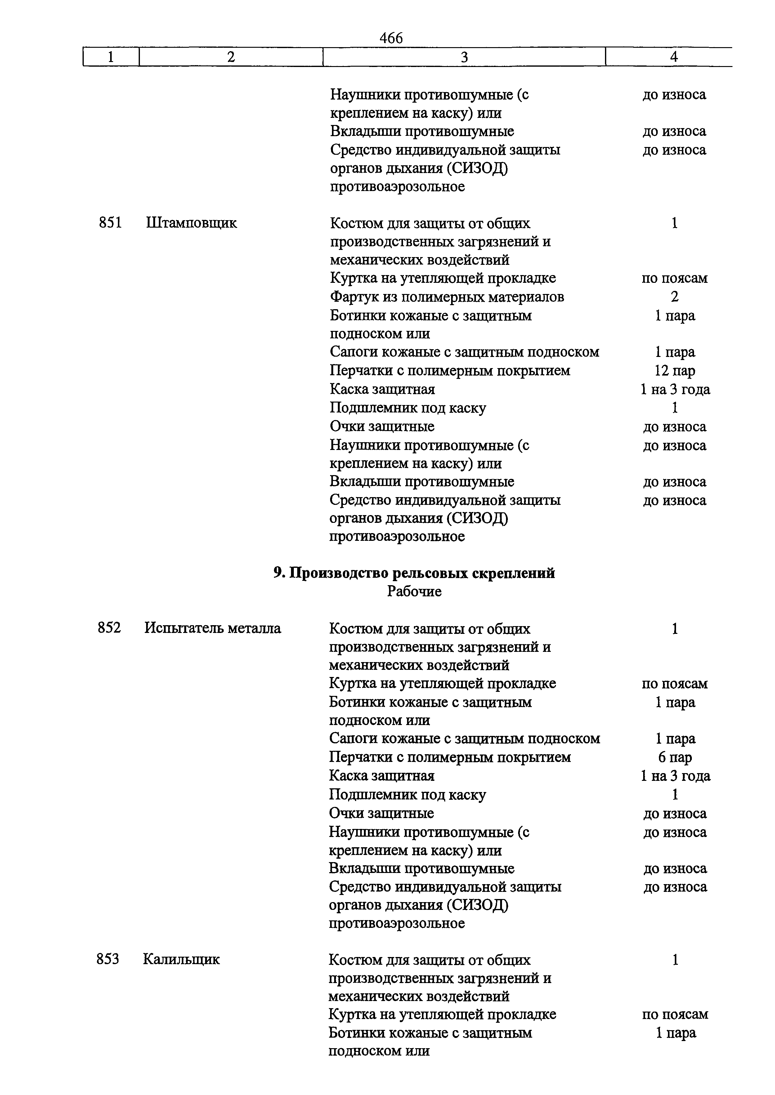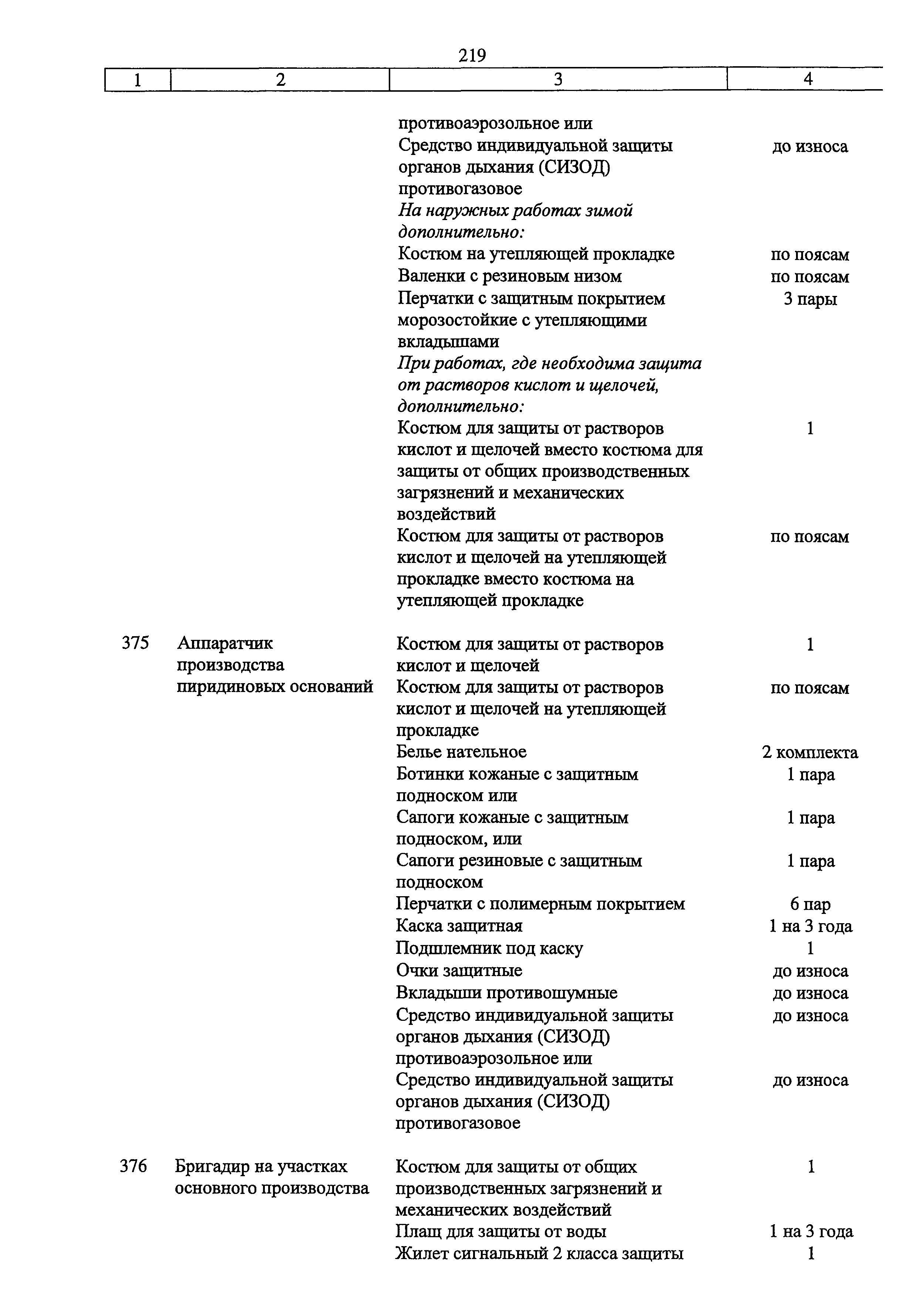Типовые нормы бесплатной выдачи специальной одежды, специальной обуви и других средств индивидуальной защиты работникам горной и металлургической промышленности и металлургических производств других отраслей промышленности, занятым на работах с вредными и (или) опасными условиями труда, а также на работах, выполняемых в особых температурных условиях или связанных с загрязнением| Статус: | действует | | Название рус.: | Типовые нормы бесплатной выдачи специальной одежды, специальной обуви и других средств индивидуальной защиты работникам горной и металлургической промышленности и металлургических производств других отраслей промышленности, занятым на работах с вредными и (или) опасными условиями труда, а также на работах, выполняемых в особых температурных условиях или связанных с загрязнением | | Дата добавления в базу: | 01.02.2017 | | Дата актуализации: | 01.01.2021 | | Дата введения: | 14.02.2014 | | Область применения: | Нормы утверждаются локальными нормативными актами работодателя на основании результатов аттестации рабочих мест по условиям труда и могут быть включены в коллективный и (или) трудовой договор с указанием типовых норм, по сравнению с которыми улучшается обеспечение работников специальной одеждой, специальной обувью и другими средствами индивидуальной защиты. | | Оглавление: | I Горнодобывающая промышленность 1 Подземные горные работы (шахты) 2 Открытые горные работы и шахтная поверхность 3 Работа на гидравлических установках или с промывочными приборами 4 Дражные работы II Дробление, обогащение, брикетирование, обжиг, агломерация, извлечение металлов и сплавов III Черная металлургия 1 Коксохимическое производство 1.1 Углеподготовительные цеха 1.2 Углеобогатительные цеха 1.3 Производство каменноугольного кокса 1.4 Производство кристаллического нафталина, кумароновой смолы, смолоперерабатывающие цеха 1.5 Производство пиридиновых и фенольно-крезольных продуктов 1.6 Цеха улавливания химических продуктов и газовые цеха 1.7 Цеха ректификации сырого бензола 1.8 Цеха очистки коксового газа от сероводорода 1.9 Производство пекового кокса 1.10 Производство термоантрацита 2 Доменное производство 3 Сталеплавильное производство 3.1 Установки непрерывной разливки стали 4 Производство ферросплавов 4.1 Электролитическое производство 4.2 Производство электролитического хрома 4.3 Производство феррованадия 4.4 Подготовка шихты, обжиг руд и концентратов 4.5 Разливка и разделка ферросплавов 4.6 Обжиг извести 4.7 Общие профессии и должности ферросплавного производства 5 Прокатное производство 6 Производство труб (прокатка, сварка и волочение) 7 Колесопрокатное и бандажное производства 8 Валопрокатное производство 9 Производство рельсовых скреплений 10 Производство баллонов 11 Труболитейное производство 12 Производство метизов 12.1 Производство металлических канатов, сеток, пружин и пружинной ленты, щеток, цепей, колючей проволоки и других метизов 12.2 Волочение проволоки, калибровка и шлифовка металла 12.3 Изготовление волок 12.4 Холодноштамповочные и кузнечно-прессовые работы 12.5 Термическая обработка 12.6 Травление металла, защитные покрытия проволоки и извлечение железного купороса 12.7 Производство металлических электродов и порошковой проволоки 13 Производство огнеупоров 13.1 Огнеупоры 13.2 Карборундовые стержни 13.3 Высокоогнеупорные окислы 14 Ремонт 