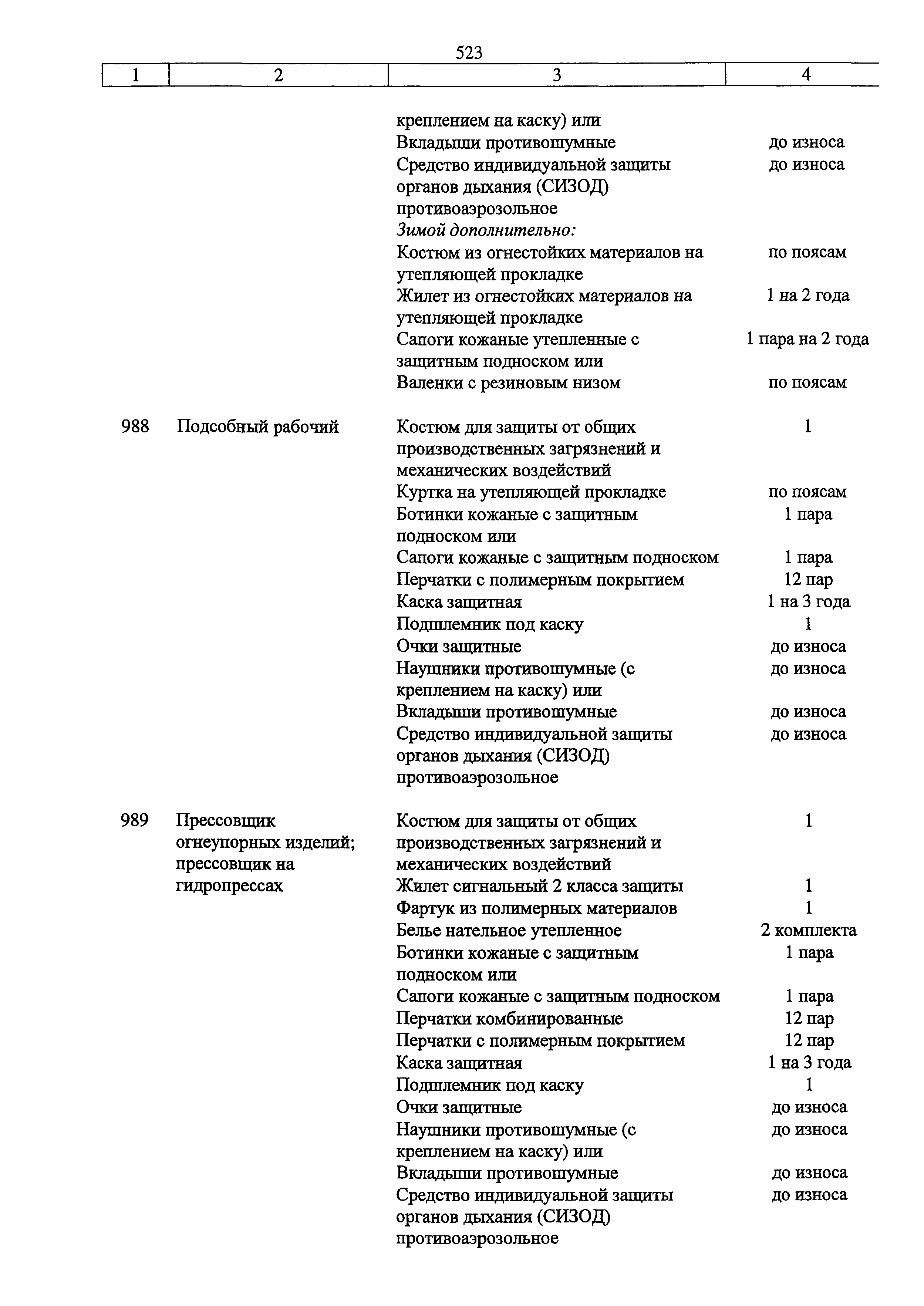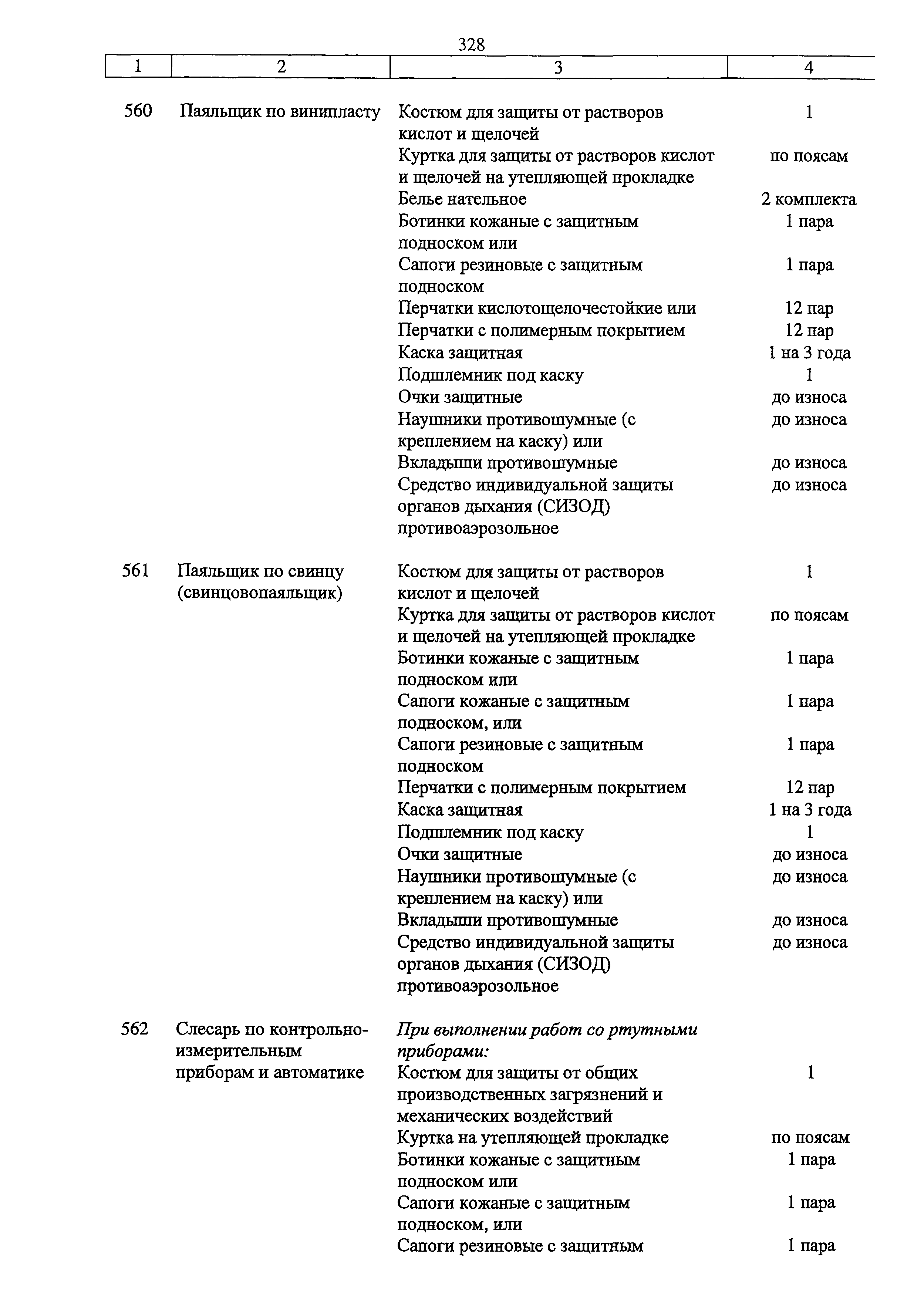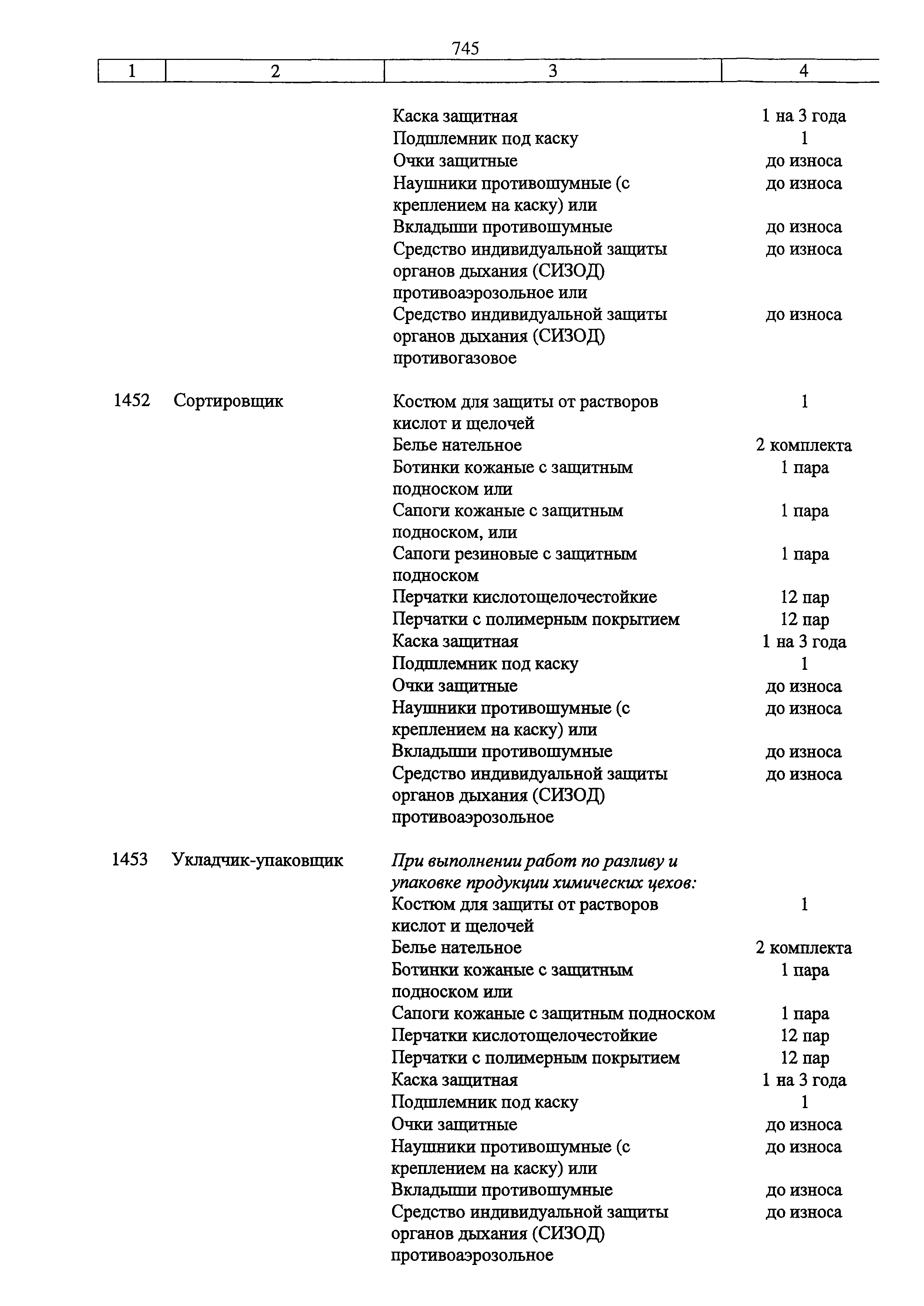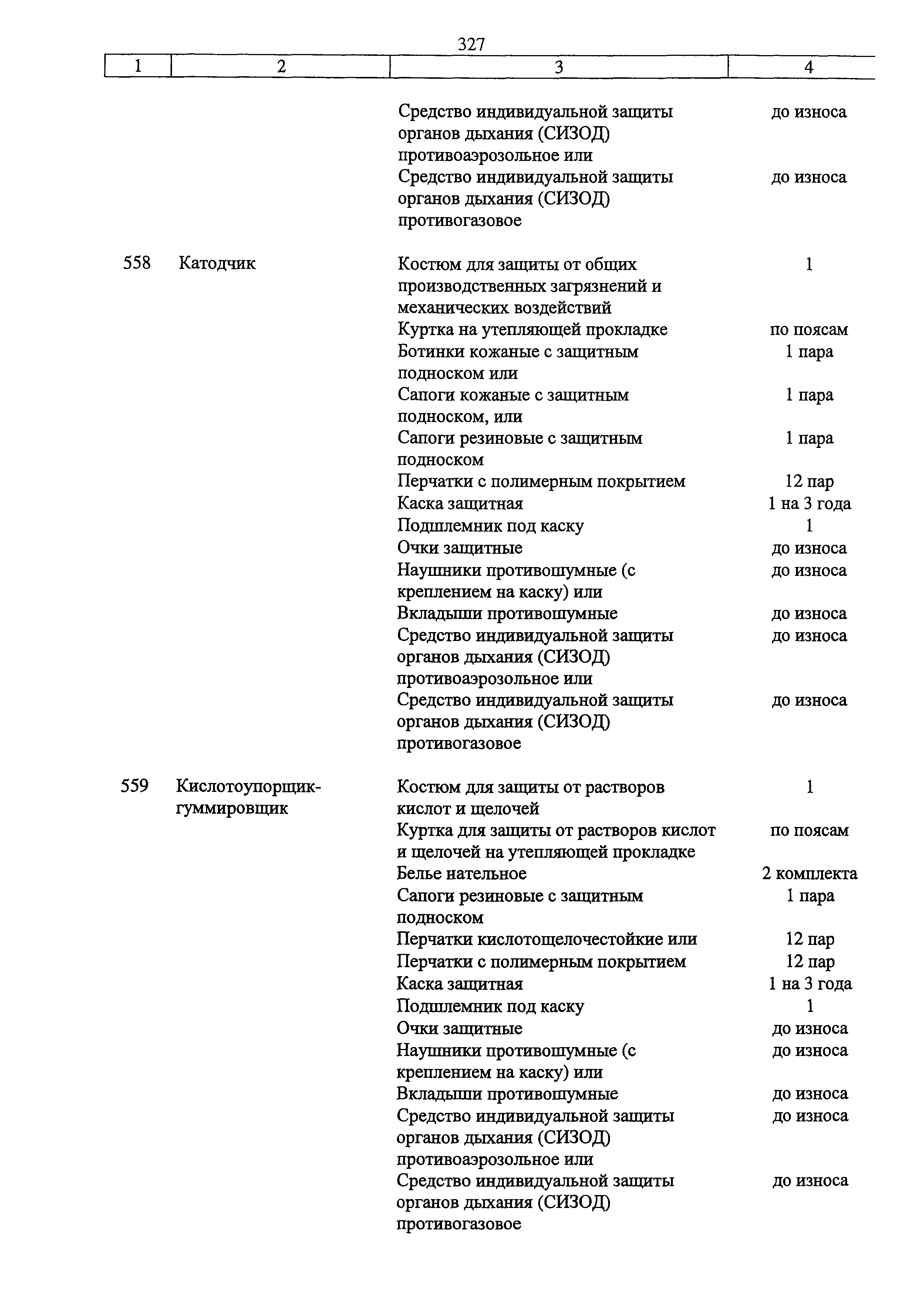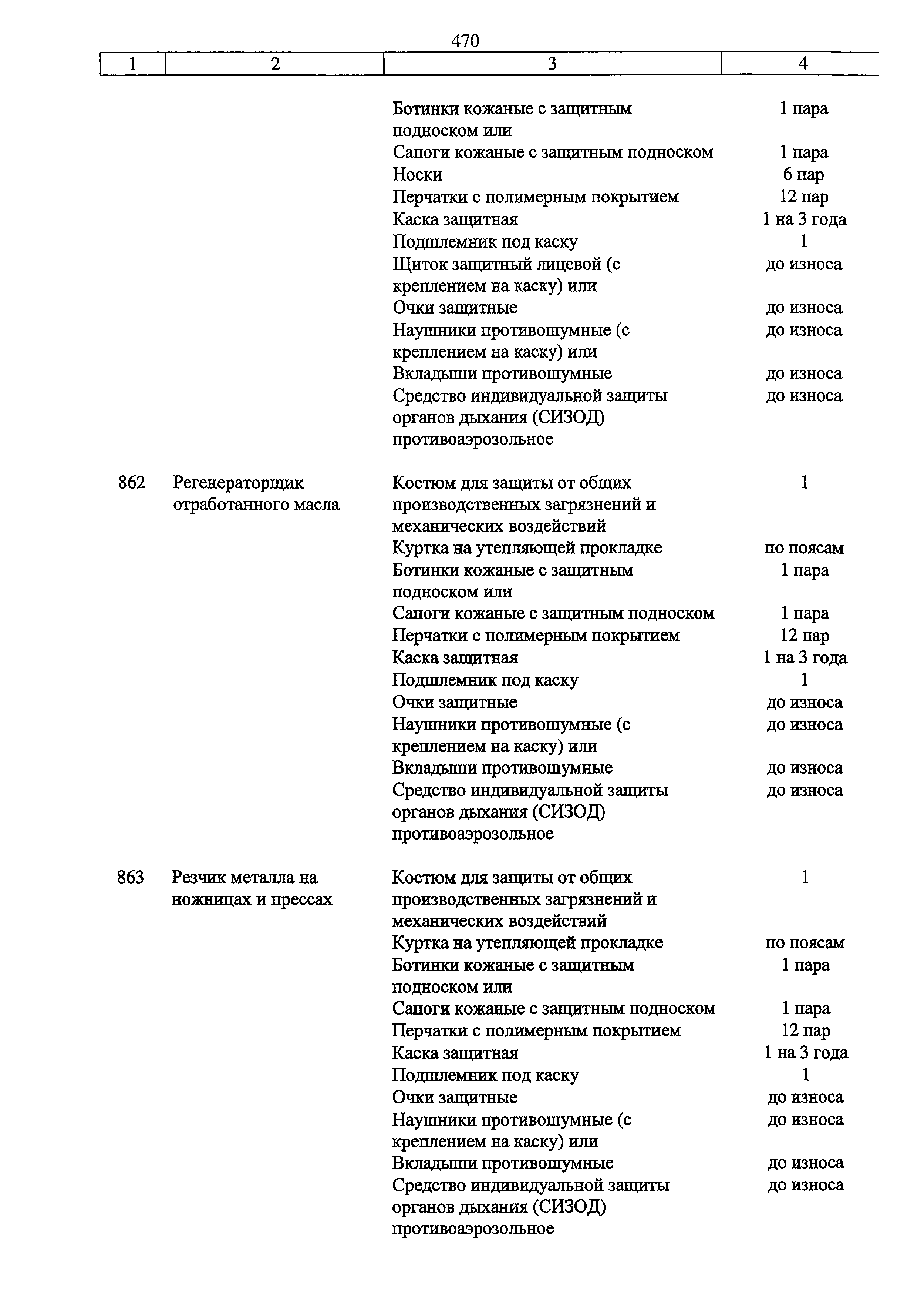 Типовые нормы бесплатной выдачи специальной одежды, специальной обуви и других средств индивидуальной защиты работникам горной и металлургической промышленности и металлургических производств других отраслей промышленности, занятым на работах с вредными и (или) опасными условиями труда, а также на работах, выполняемых в особых температурных условиях или связанных с загрязнением| Статус: | действует | | Название рус.: | Типовые нормы бесплатной выдачи специальной одежды, специальной обуви и других средств индивидуальной защиты работникам горной и металлургической промышленности и металлургических производств других отраслей промышленности, занятым на работах с вредными и (или) опасными условиями труда, а также на работах, выполняемых в особых температурных условиях или связанных с загрязнением | | Дата добавления в базу: | 01.02.2017 | | Дата актуализации: | 01.01.2021 | | Дата введения: | 14.02.2014 | | Область применения: | Нормы утверждаются локальными нормативными актами работодателя на основании результатов аттестации рабочих мест по условиям труда и могут быть включены в коллективный и (или) трудовой договор с указанием типовых норм, по сравнению с которыми улучшается обеспечение работников специальной одеждой, специальной обувью и другими средствами индивидуальной защиты. | | Оглавление: | I Горнодобывающая промышленность 1 Подземные горные работы (шахты) 2 Открытые горные работы и шахтная поверхность 3 Работа на гидравлических установках или с промывочными приборами 4 Дражные работы II Дробление, обогащение, брикетирование, обжиг, агломерация, извлечение металлов и сплавов III Черная металлургия 1 Коксохимическое производство 1.1 Углеподготовительные цеха 1.2 Углеобогатительные цеха 1.3 Производство каменноугольного кокса 1.4 Производство кристаллического нафталина, кумароновой смолы, смолоперерабатывающие цеха 1.5 Производство пиридиновых и фенольно-крезольных продуктов 1.6 Цеха улавливания химических продуктов и газовые цеха 1.7 Цеха ректификации сырого бензола 1.8 Цеха очистки коксового газа от сероводорода 1.9 Производство пекового кокса 1.10 Производство термоантрацита 2 Доменное производство 3 Сталеплавильное производство 3.1 Установки непрерывной разливки стали 4 Производство ферросплавов 4.1 Электролитическое производство 4.2 Производство электролитического хрома 4.3 Производство феррованадия 4.4 Подготовка шихты, обжиг руд и концентратов 4.5 Разливка и разделка ферросплавов 4.6 Обжиг извести 4.7 Общие профессии и должности ферросплавного производства 5 Прокатное производство 6 Производство труб (прокатка, сварка и волочение) 7 Колесопрокатное и бандажное производства 8 Валопрокатное производство 9 Производство рельсовых скреплений 10 Производство баллонов 11 Труболитейное производство 12 Производство метизов 12.1 Производство металлических канатов, сеток, пружин и пружинной ленты, щеток, цепей, колючей проволоки и других метизов 12.2 Волочение проволоки, калибровка и шлифовка металла 12.3 Изготовление волок 12.4 Холодноштамповочные и кузнечно-прессовые работы 12.5 Термическая обработка 12.6 Травление металла, защитные покрытия проволоки и извлечение железного купороса 12.7 Производство металлических электродов и порошковой проволоки 13 Производство огнеупоров 13.1 Огнеупоры 13.2 Карборундовые стержни 13.3 Высокоогнеупорные окислы 14 Ремонт 