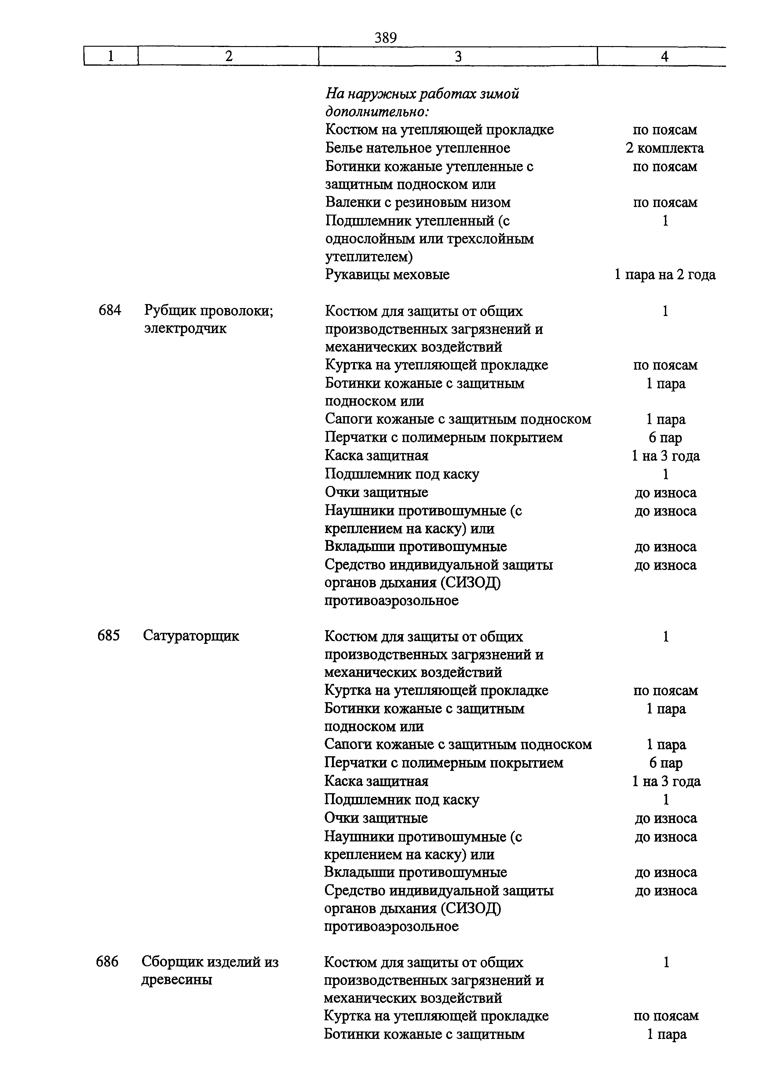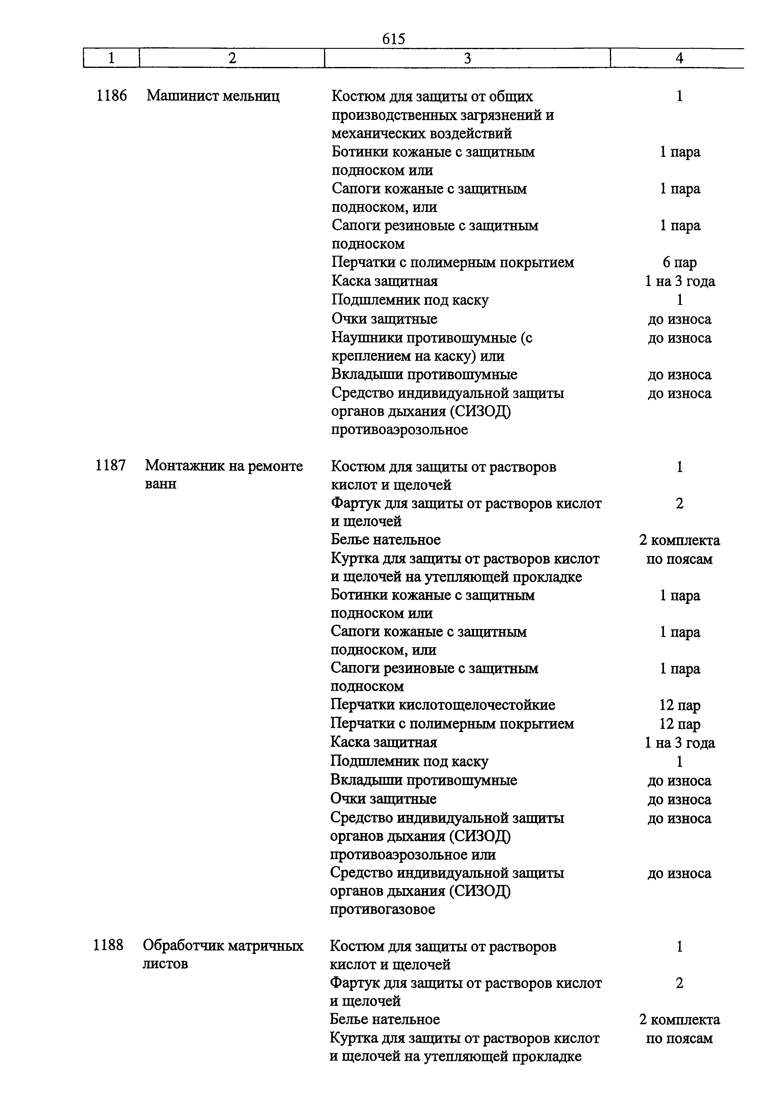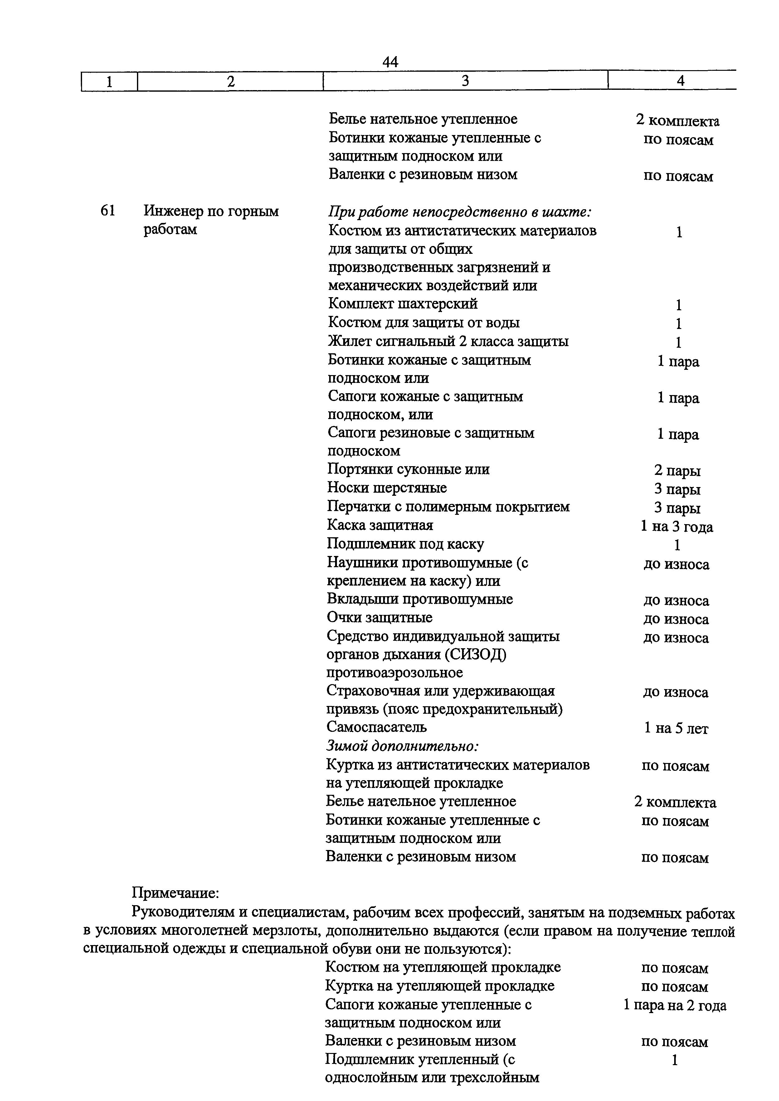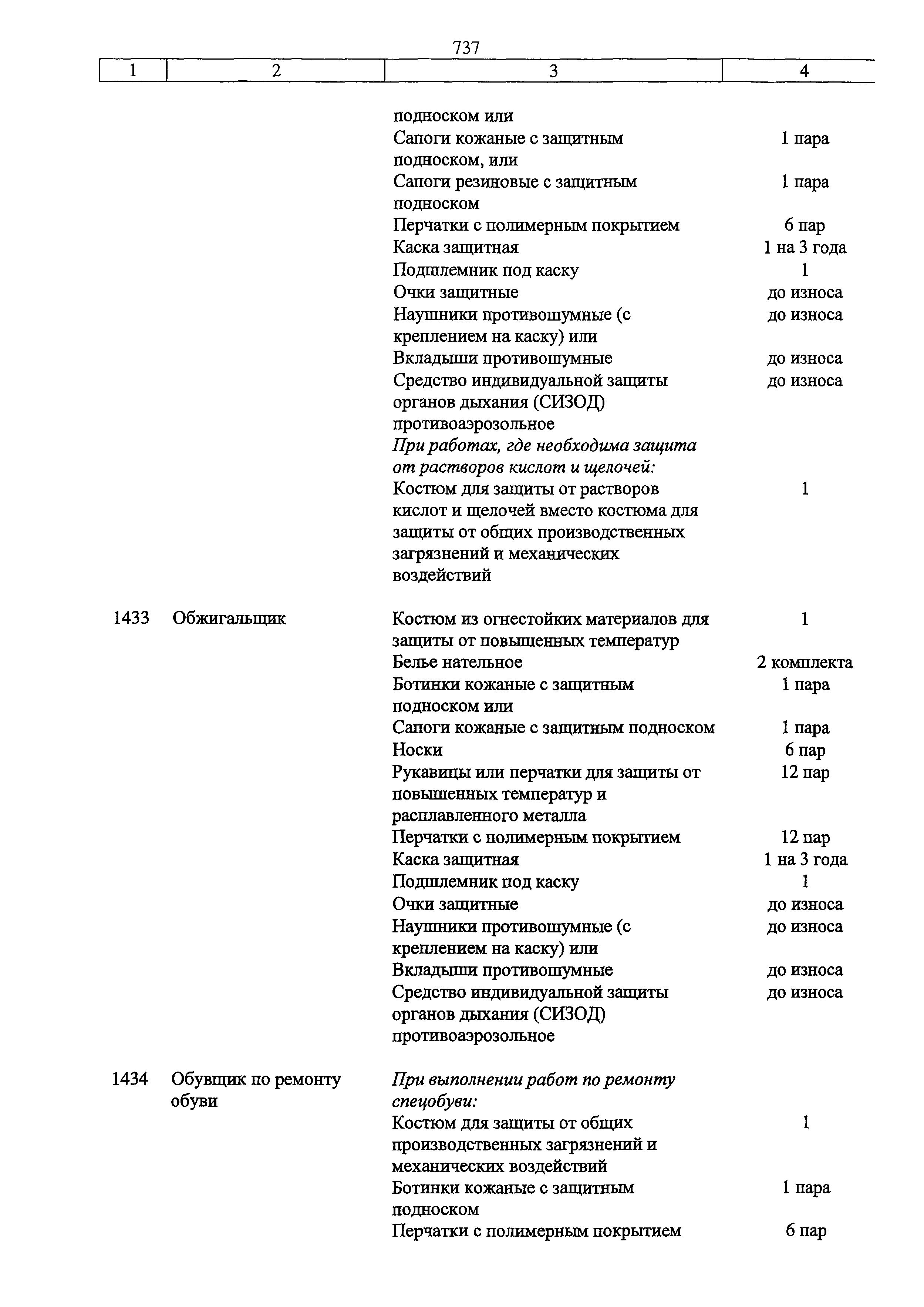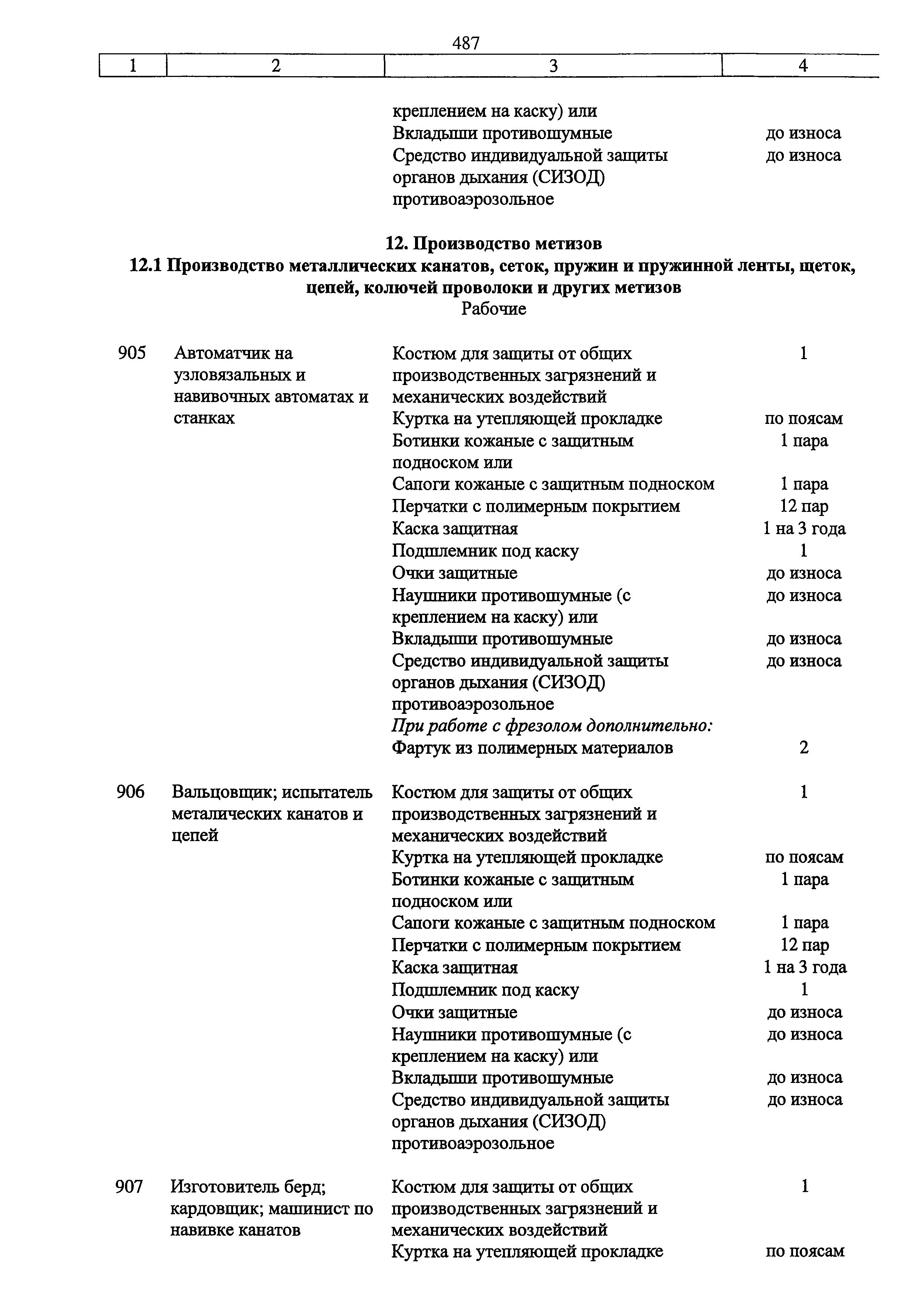 Типовые нормы бесплатной выдачи специальной одежды, специальной обуви и других средств индивидуальной защиты работникам горной и металлургической промышленности и металлургических производств других отраслей промышленности, занятым на работах с вредными и (или) опасными условиями труда, а также на работах, выполняемых в особых температурных условиях или связанных с загрязнением| Статус: | действует | | Название рус.: | Типовые нормы бесплатной выдачи специальной одежды, специальной обуви и других средств индивидуальной защиты работникам горной и металлургической промышленности и металлургических производств других отраслей промышленности, занятым на работах с вредными и (или) опасными условиями труда, а также на работах, выполняемых в особых температурных условиях или связанных с загрязнением | | Дата добавления в базу: | 01.02.2017 | | Дата актуализации: | 01.01.2021 | | Дата введения: | 14.02.2014 | | Область применения: | Нормы утверждаются локальными нормативными актами работодателя на основании результатов аттестации рабочих мест по условиям труда и могут быть включены в коллективный и (или) трудовой договор с указанием типовых норм, по сравнению с которыми улучшается обеспечение работников специальной одеждой, специальной обувью и другими средствами индивидуальной защиты. | | Оглавление: | I Горнодобывающая промышленность 1 Подземные горные работы (шахты) 2 Открытые горные работы и шахтная поверхность 3 Работа на гидравлических установках или с промывочными приборами 4 Дражные работы II Дробление, обогащение, брикетирование, обжиг, агломерация, извлечение металлов и сплавов III Черная металлургия 1 Коксохимическое производство 1.1 Углеподготовительные цеха 1.2 Углеобогатительные цеха 1.3 Производство каменноугольного кокса 1.4 Производство кристаллического нафталина, кумароновой смолы, смолоперерабатывающие цеха 1.5 Производство пиридиновых и фенольно-крезольных продуктов 1.6 Цеха улавливания химических продуктов и газовые цеха 1.7 Цеха ректификации сырого бензола 1.8 Цеха очистки коксового газа от сероводорода 1.9 Производство пекового кокса 1.10 Производство термоантрацита 2 Доменное производство 3 Сталеплавильное производство 3.1 Установки непрерывной разливки стали 4 Производство ферросплавов 4.1 Электролитическое производство 4.2 Производство электролитического хрома 4.3 Производство феррованадия 4.4 Подготовка шихты, обжиг руд и концентратов 4.5 Разливка и разделка ферросплавов 4.6 Обжиг извести 4.7 Общие профессии и должности ферросплавного производства 5 Прокатное производство 6 Производство труб (прокатка, сварка и волочение) 7 Колесопрокатное и бандажное производства 8 Валопрокатное производство 9 Производство рельсовых скреплений 10 Производство баллонов 11 Труболитейное производство 12 Производство метизов 12.1 Производство металлических канатов, сеток, пружин и пружинной ленты, щеток, цепей, колючей проволоки и других метизов 12.2 Волочение проволоки, калибровка и шлифовка металла 12.3 Изготовление волок 12.4 Холодноштамповочные и кузнечно-прессовые работы 12.5 Термическая обработка 12.6 Травление металла, защитные покрытия проволоки и извлечение железного купороса 12.7 Производство металлических электродов и порошковой проволоки 13 Производство огнеупоров 13.1 Огнеупоры 13.2 Карборундовые стержни 13.3 Высокоогнеупорные окислы 14 Ремонт 