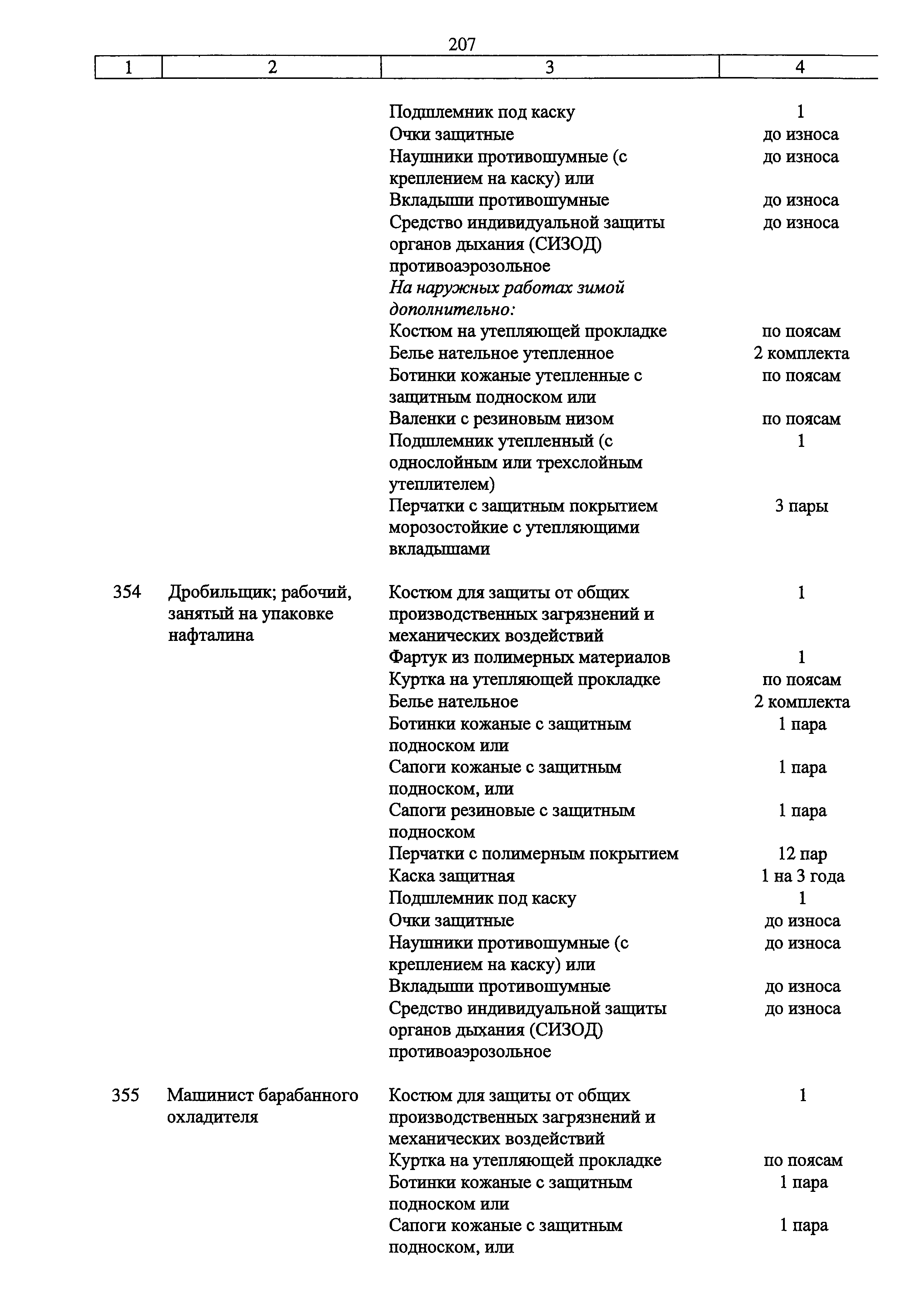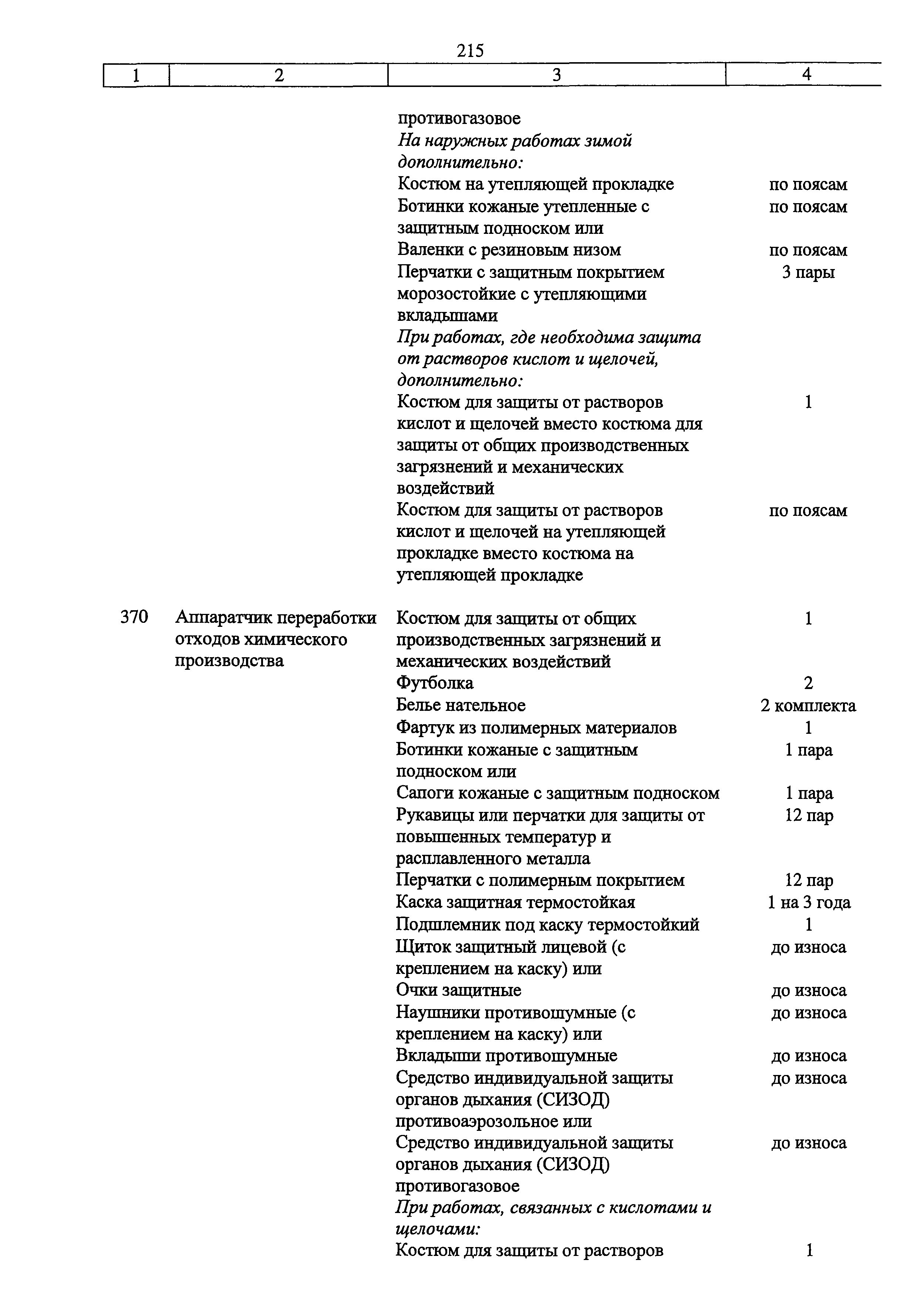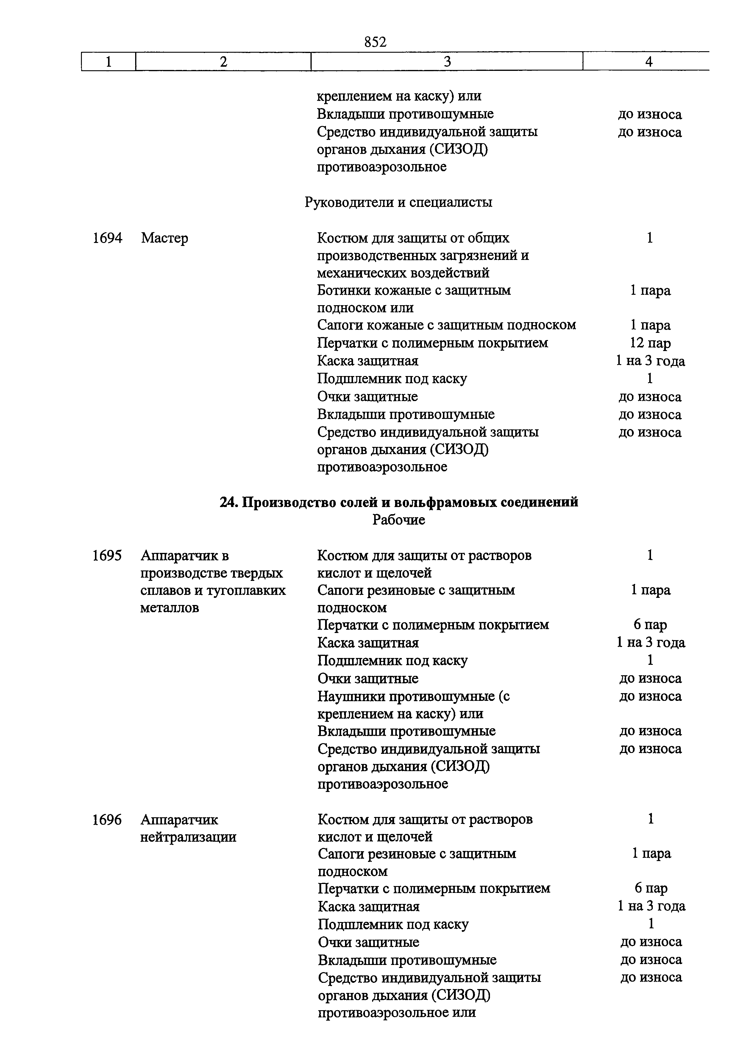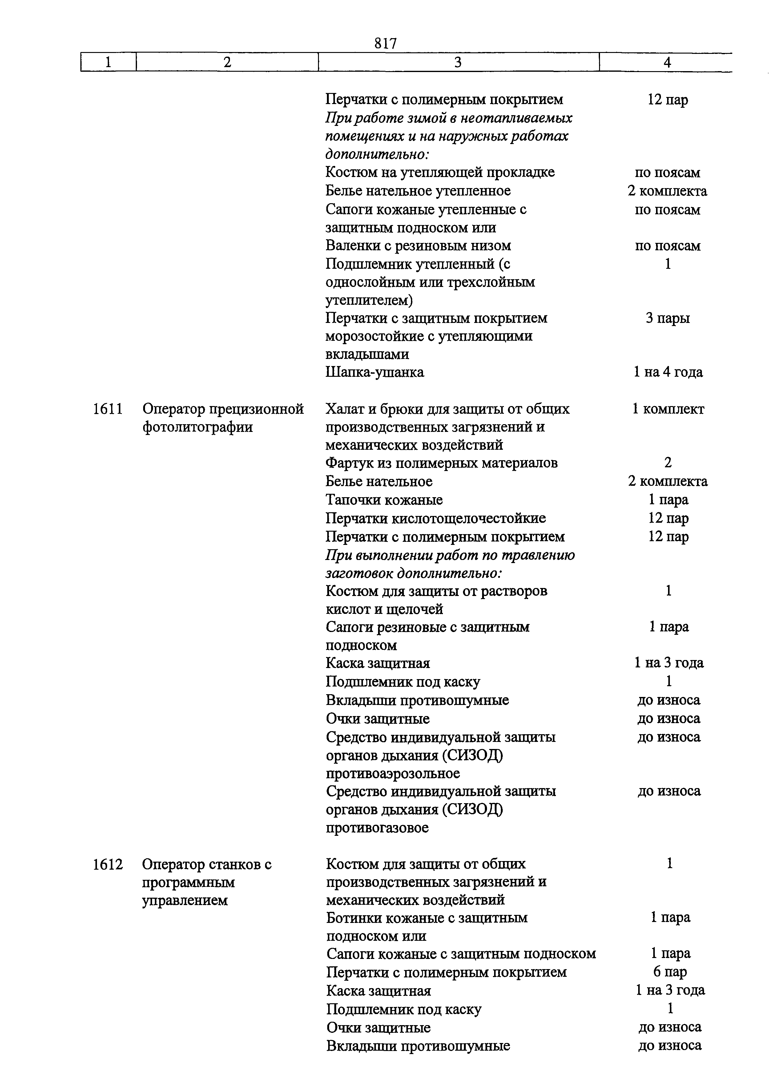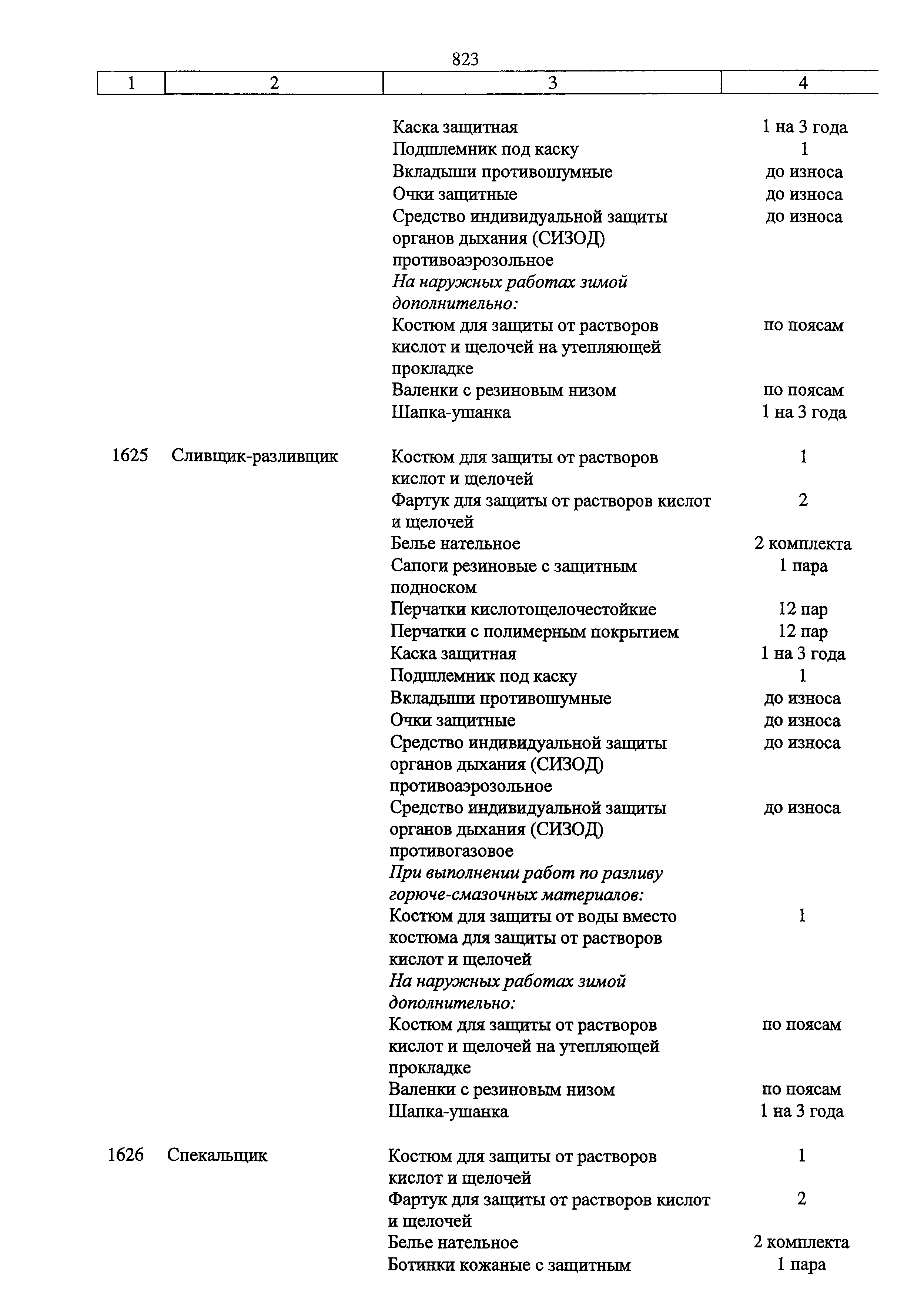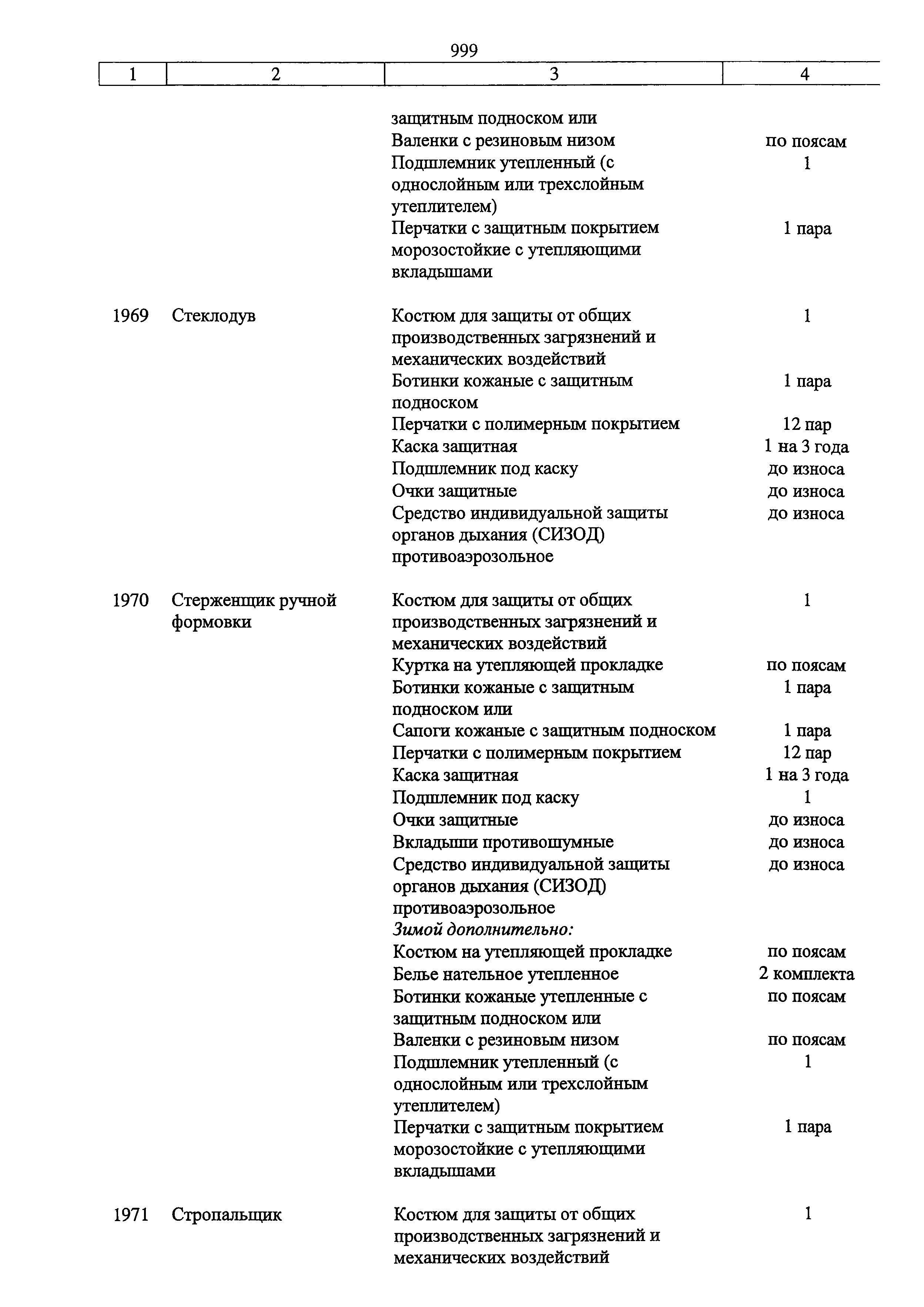 Типовые нормы бесплатной выдачи специальной одежды, специальной обуви и других средств индивидуальной защиты работникам горной и металлургической промышленности и металлургических производств других отраслей промышленности, занятым на работах с вредными и (или) опасными условиями труда, а также на работах, выполняемых в особых температурных условиях или связанных с загрязнением| Статус: | действует | | Название рус.: | Типовые нормы бесплатной выдачи специальной одежды, специальной обуви и других средств индивидуальной защиты работникам горной и металлургической промышленности и металлургических производств других отраслей промышленности, занятым на работах с вредными и (или) опасными условиями труда, а также на работах, выполняемых в особых температурных условиях или связанных с загрязнением | | Дата добавления в базу: | 01.02.2017 | | Дата актуализации: | 01.01.2021 | | Дата введения: | 14.02.2014 | | Область применения: | Нормы утверждаются локальными нормативными актами работодателя на основании результатов аттестации рабочих мест по условиям труда и могут быть включены в коллективный и (или) трудовой договор с указанием типовых норм, по сравнению с которыми улучшается обеспечение работников специальной одеждой, специальной обувью и другими средствами индивидуальной защиты. | | Оглавление: | I Горнодобывающая промышленность 1 Подземные горные работы (шахты) 2 Открытые горные работы и шахтная поверхность 3 Работа на гидравлических установках или с промывочными приборами 4 Дражные работы II Дробление, обогащение, брикетирование, обжиг, агломерация, извлечение металлов и сплавов III Черная металлургия 1 Коксохимическое производство 1.1 Углеподготовительные цеха 1.2 Углеобогатительные цеха 1.3 Производство каменноугольного кокса 1.4 Производство кристаллического нафталина, кумароновой смолы, смолоперерабатывающие цеха 1.5 Производство пиридиновых и фенольно-крезольных продуктов 1.6 Цеха улавливания химических продуктов и газовые цеха 1.7 Цеха ректификации сырого бензола 1.8 Цеха очистки коксового газа от сероводорода 1.9 Производство пекового кокса 1.10 Производство термоантрацита 2 Доменное производство 3 Сталеплавильное производство 3.1 Установки непрерывной разливки стали 4 Производство ферросплавов 4.1 Электролитическое производство 4.2 Производство электролитического хрома 4.3 Производство феррованадия 4.4 Подготовка шихты, обжиг руд и концентратов 4.5 Разливка и разделка ферросплавов 4.6 Обжиг извести 4.7 Общие профессии и должности ферросплавного производства 5 Прокатное производство 6 Производство труб (прокатка, сварка и волочение) 7 Колесопрокатное и бандажное производства 8 Валопрокатное производство 9 Производство рельсовых скреплений 10 Производство баллонов 11 Труболитейное производство 12 Производство метизов 12.1 Производство металлических канатов, сеток, пружин и пружинной ленты, щеток, цепей, колючей проволоки и других метизов 12.2 Волочение проволоки, калибровка и шлифовка металла 12.3 Изготовление волок 12.4 Холодноштамповочные и кузнечно-прессовые работы 12.5 Термическая обработка 12.6 Травление металла, защитные покрытия проволоки и извлечение железного купороса 12.7 Производство металлических электродов и порошковой проволоки 13 Производство огнеупоров 13.1 Огнеупоры 13.2 Карборундовые стержни 13.3 Высокоогнеупорные окислы 14 Ремонт 