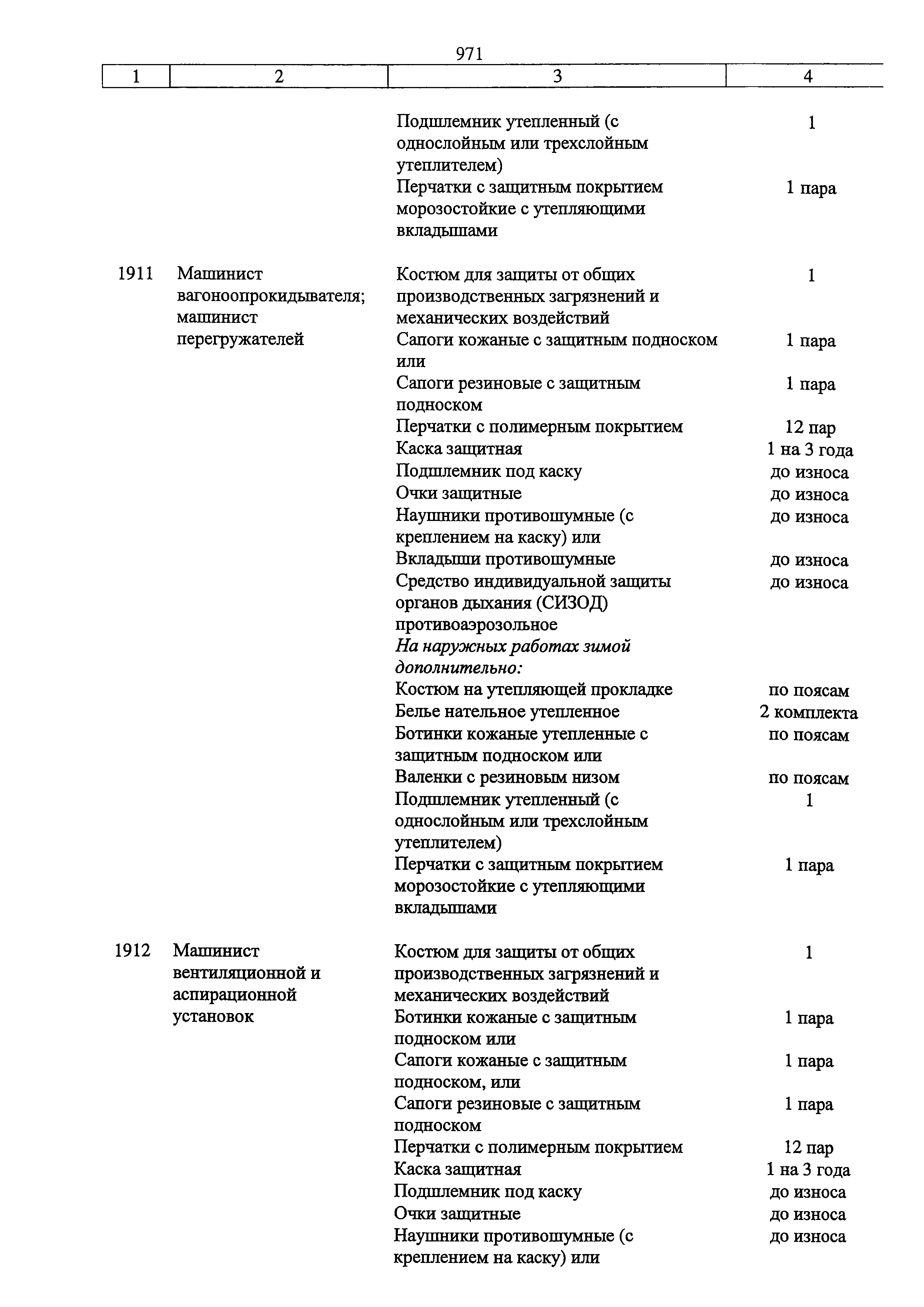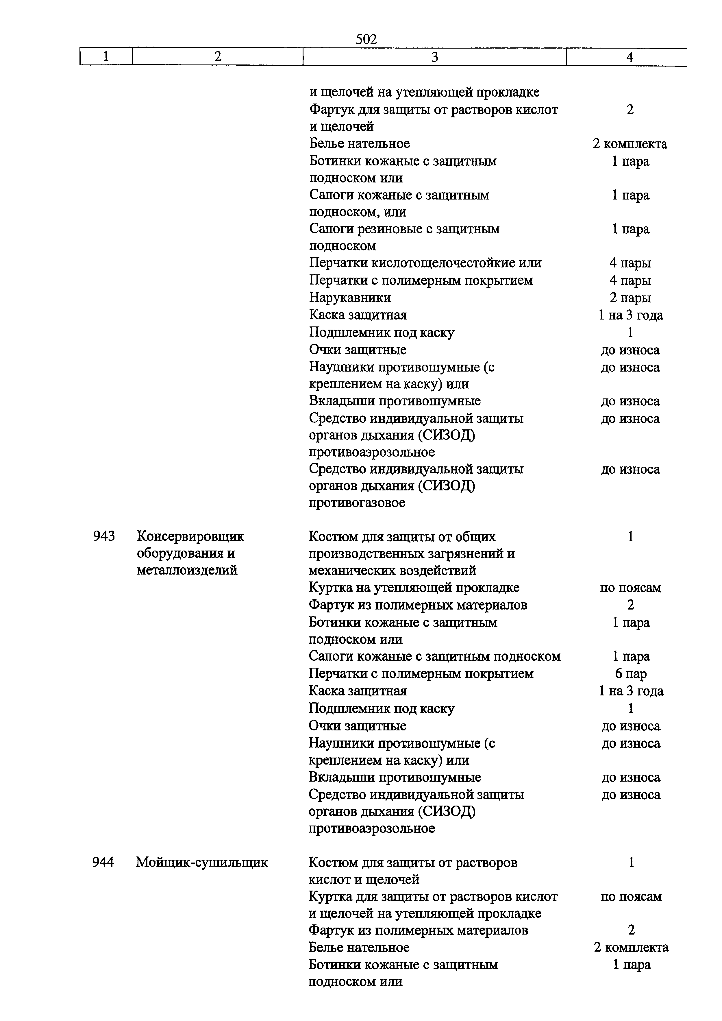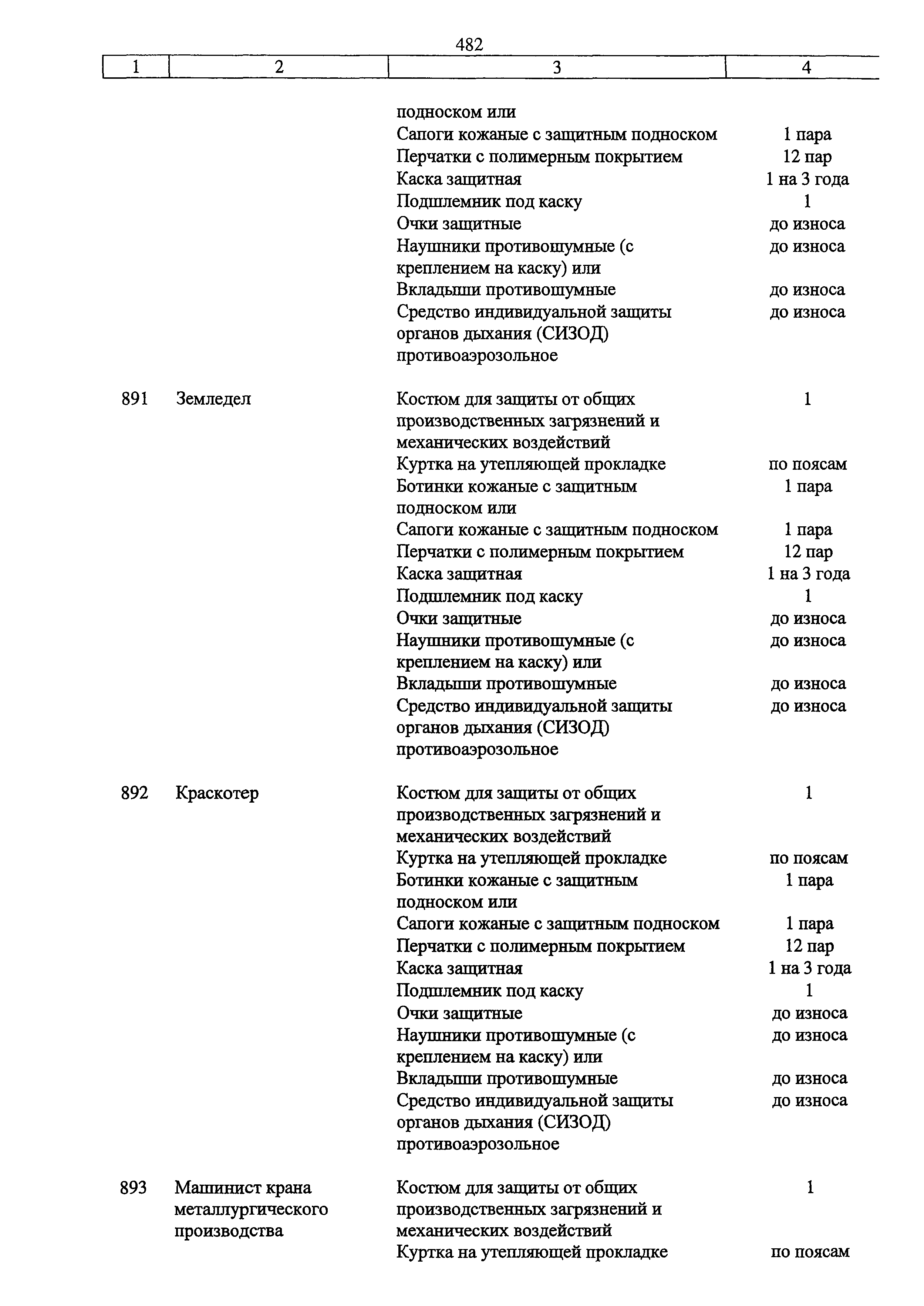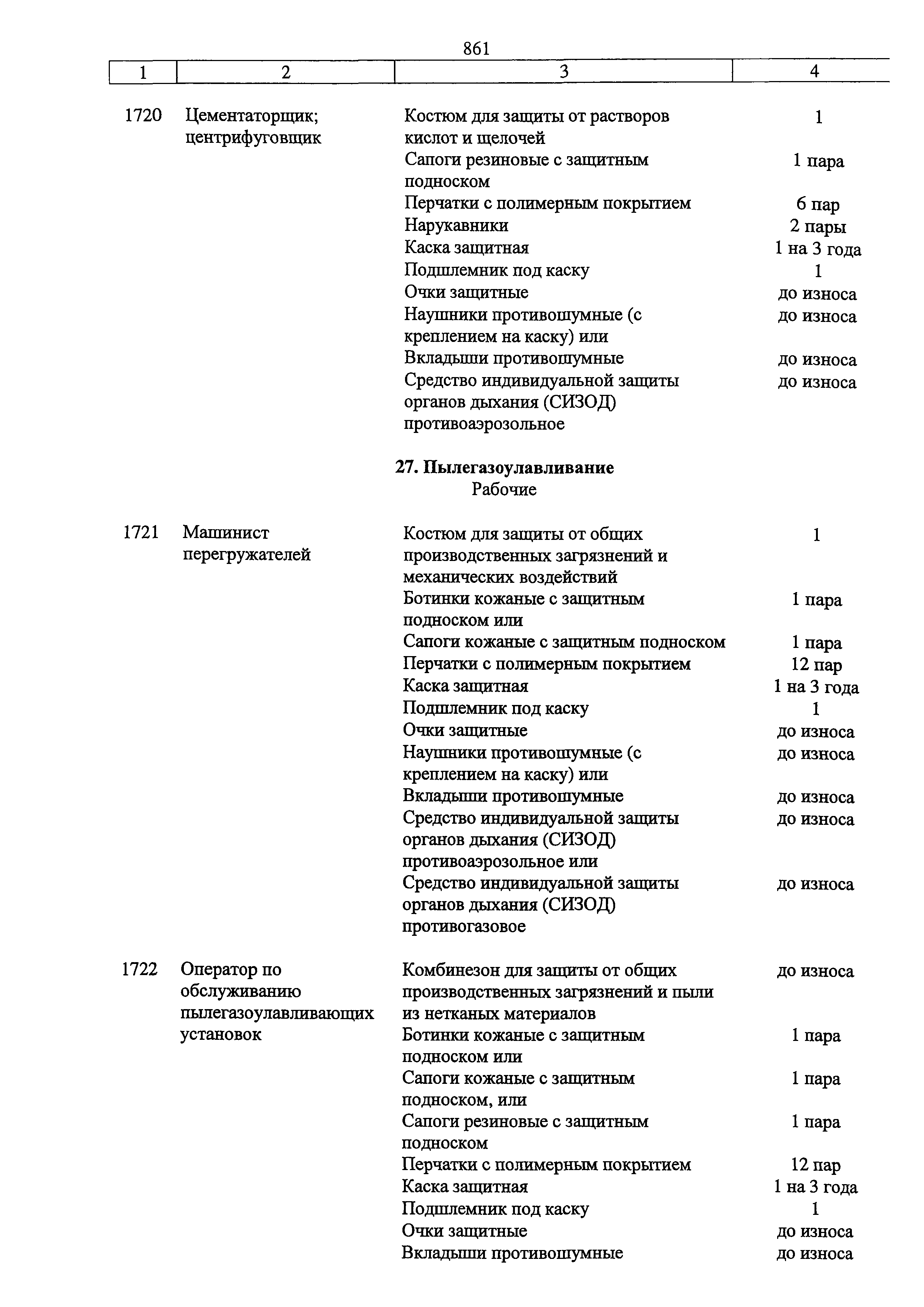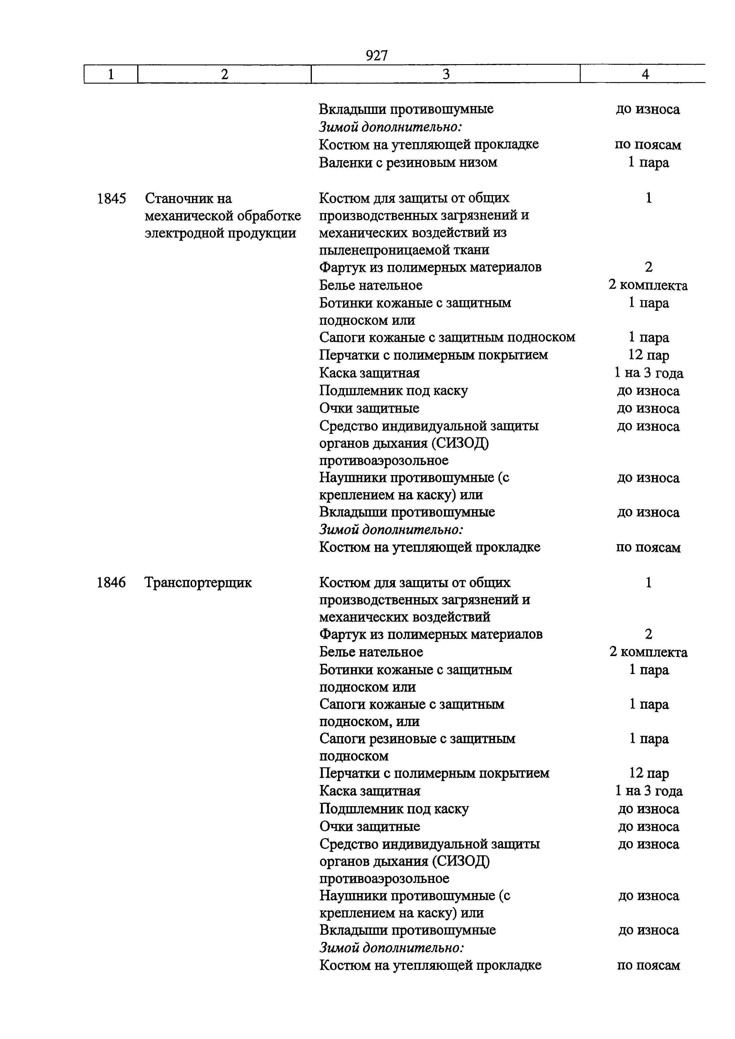 Типовые нормы бесплатной выдачи специальной одежды, специальной обуви и других средств индивидуальной защиты работникам горной и металлургической промышленности и металлургических производств других отраслей промышленности, занятым на работах с вредными и (или) опасными условиями труда, а также на работах, выполняемых в особых температурных условиях или связанных с загрязнением| Статус: | действует | | Название рус.: | Типовые нормы бесплатной выдачи специальной одежды, специальной обуви и других средств индивидуальной защиты работникам горной и металлургической промышленности и металлургических производств других отраслей промышленности, занятым на работах с вредными и (или) опасными условиями труда, а также на работах, выполняемых в особых температурных условиях или связанных с загрязнением | | Дата добавления в базу: | 01.02.2017 | | Дата актуализации: | 01.01.2021 | | Дата введения: | 14.02.2014 | | Область применения: | Нормы утверждаются локальными нормативными актами работодателя на основании результатов аттестации рабочих мест по условиям труда и могут быть включены в коллективный и (или) трудовой договор с указанием типовых норм, по сравнению с которыми улучшается обеспечение работников специальной одеждой, специальной обувью и другими средствами индивидуальной защиты. | | Оглавление: | I Горнодобывающая промышленность 1 Подземные горные работы (шахты) 2 Открытые горные работы и шахтная поверхность 3 Работа на гидравлических установках или с промывочными приборами 4 Дражные работы II Дробление, обогащение, брикетирование, обжиг, агломерация, извлечение металлов и сплавов III Черная металлургия 1 Коксохимическое производство 1.1 Углеподготовительные цеха 1.2 Углеобогатительные цеха 1.3 Производство каменноугольного кокса 1.4 Производство кристаллического нафталина, кумароновой смолы, смолоперерабатывающие цеха 1.5 Производство пиридиновых и фенольно-крезольных продуктов 1.6 Цеха улавливания химических продуктов и газовые цеха 1.7 Цеха ректификации сырого бензола 1.8 Цеха очистки коксового газа от сероводорода 1.9 Производство пекового кокса 1.10 Производство термоантрацита 2 Доменное производство 3 Сталеплавильное производство 3.1 Установки непрерывной разливки стали 4 Производство ферросплавов 4.1 Электролитическое производство 4.2 Производство электролитического хрома 4.3 Производство феррованадия 4.4 Подготовка шихты, обжиг руд и концентратов 4.5 Разливка и разделка ферросплавов 4.6 Обжиг извести 4.7 Общие профессии и должности ферросплавного производства 5 Прокатное производство 6 Производство труб (прокатка, сварка и волочение) 7 Колесопрокатное и бандажное производства 8 Валопрокатное производство 9 Производство рельсовых скреплений 10 Производство баллонов 11 Труболитейное производство 12 Производство метизов 12.1 Производство металлических канатов, сеток, пружин и пружинной ленты, щеток, цепей, колючей проволоки и других метизов 12.2 Волочение проволоки, калибровка и шлифовка металла 12.3 Изготовление волок 12.4 Холодноштамповочные и кузнечно-прессовые работы 12.5 Термическая обработка 12.6 Травление металла, защитные покрытия проволоки и извлечение железного купороса 12.7 Производство металлических электродов и порошковой проволоки 13 Производство огнеупоров 13.1 Огнеупоры 13.2 Карборундовые стержни 13.3 Высокоогнеупорные окислы 14 Ремонт 