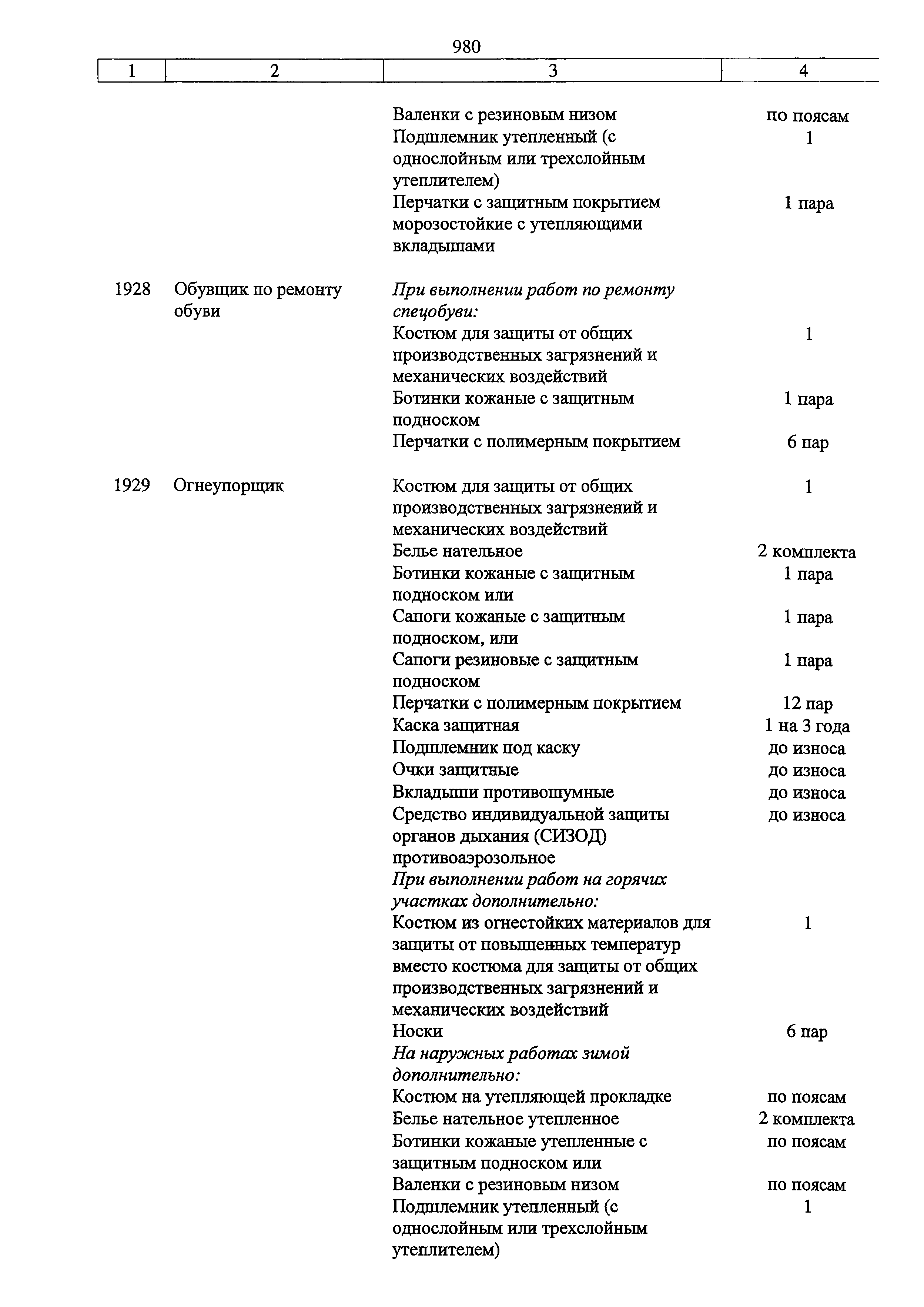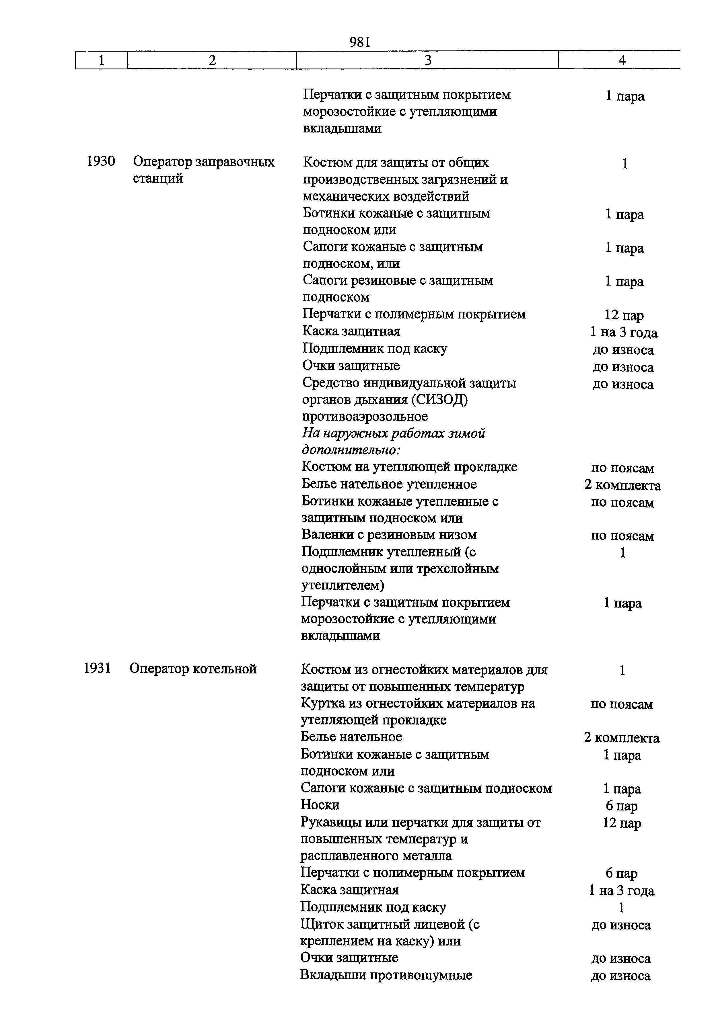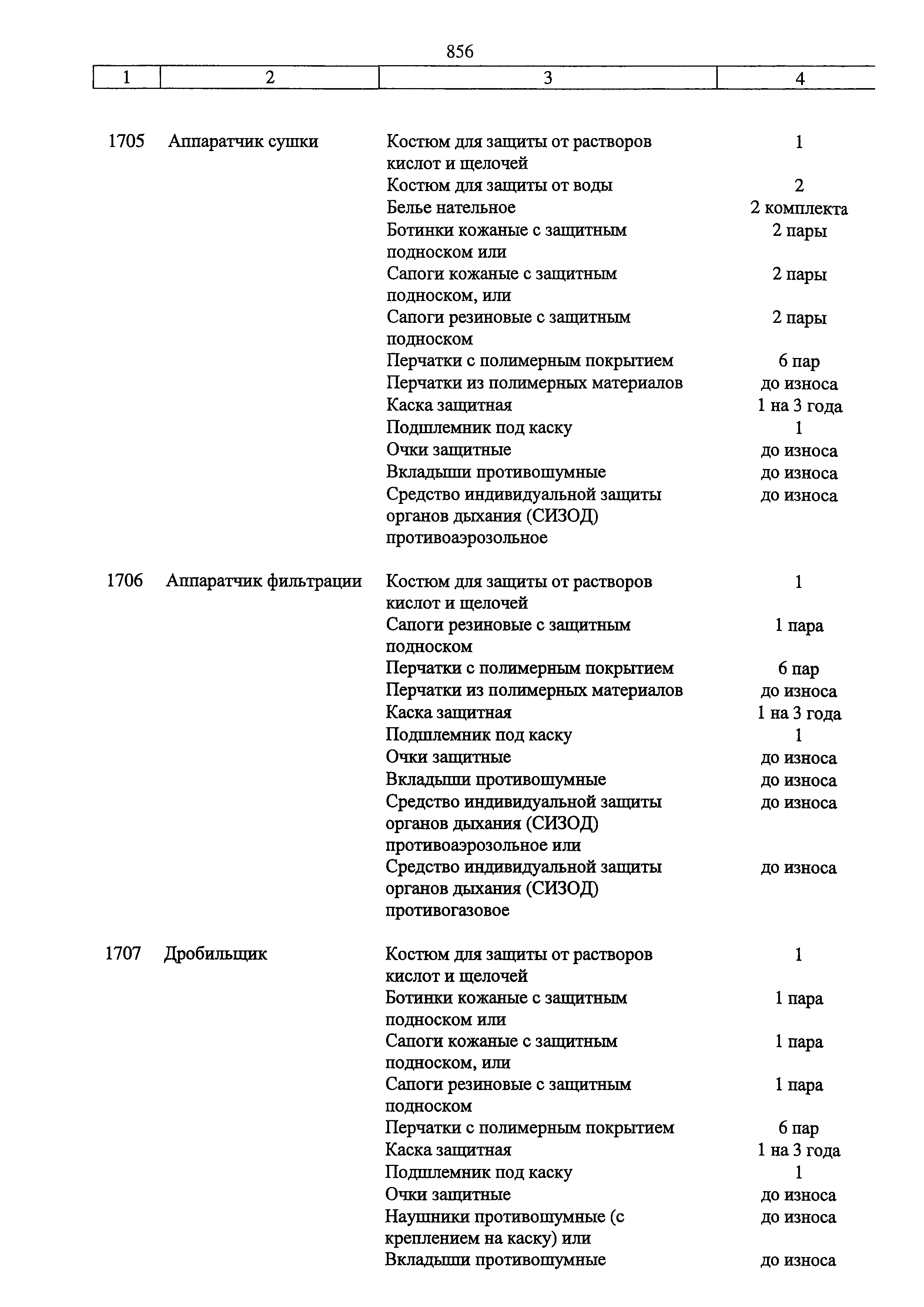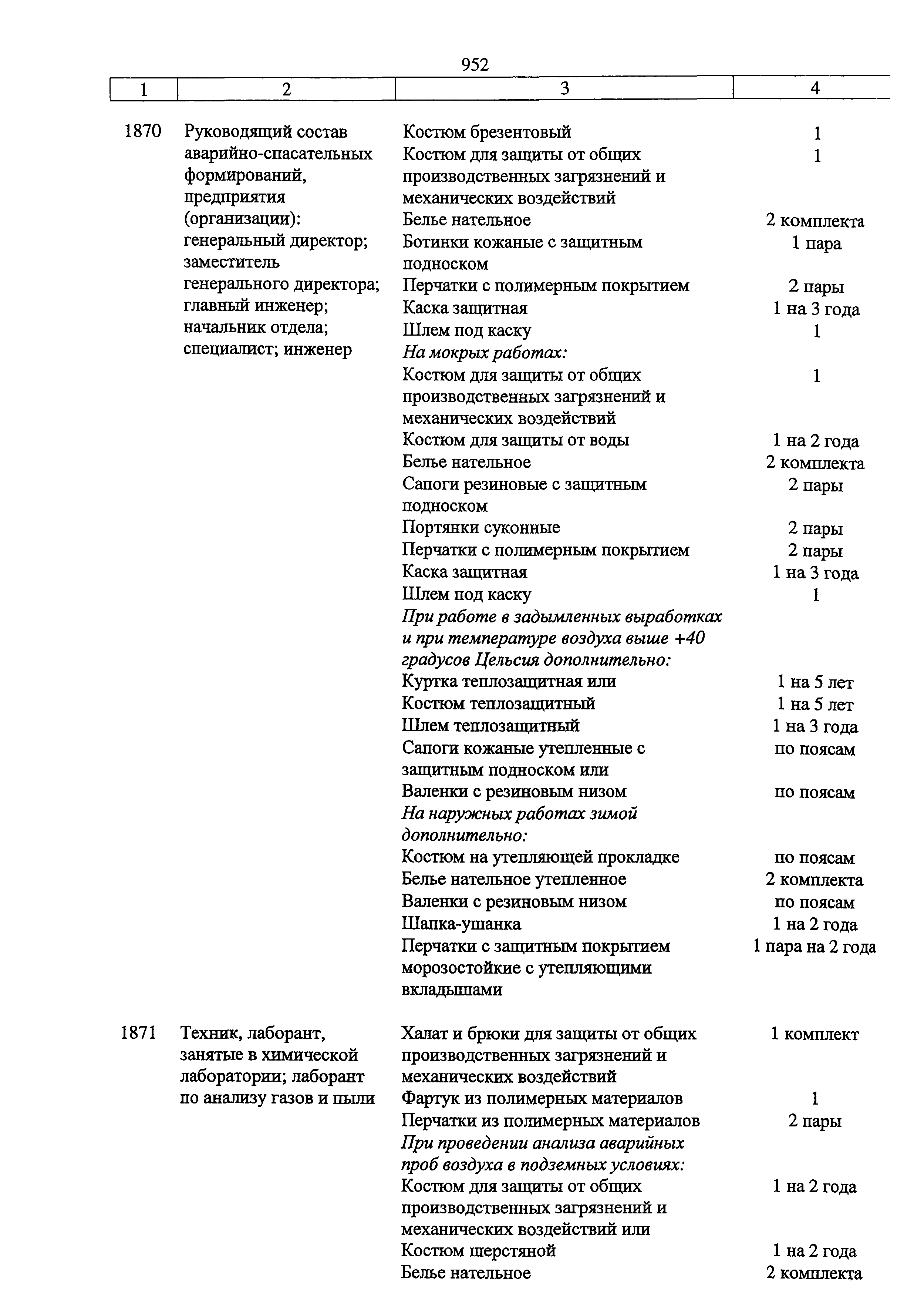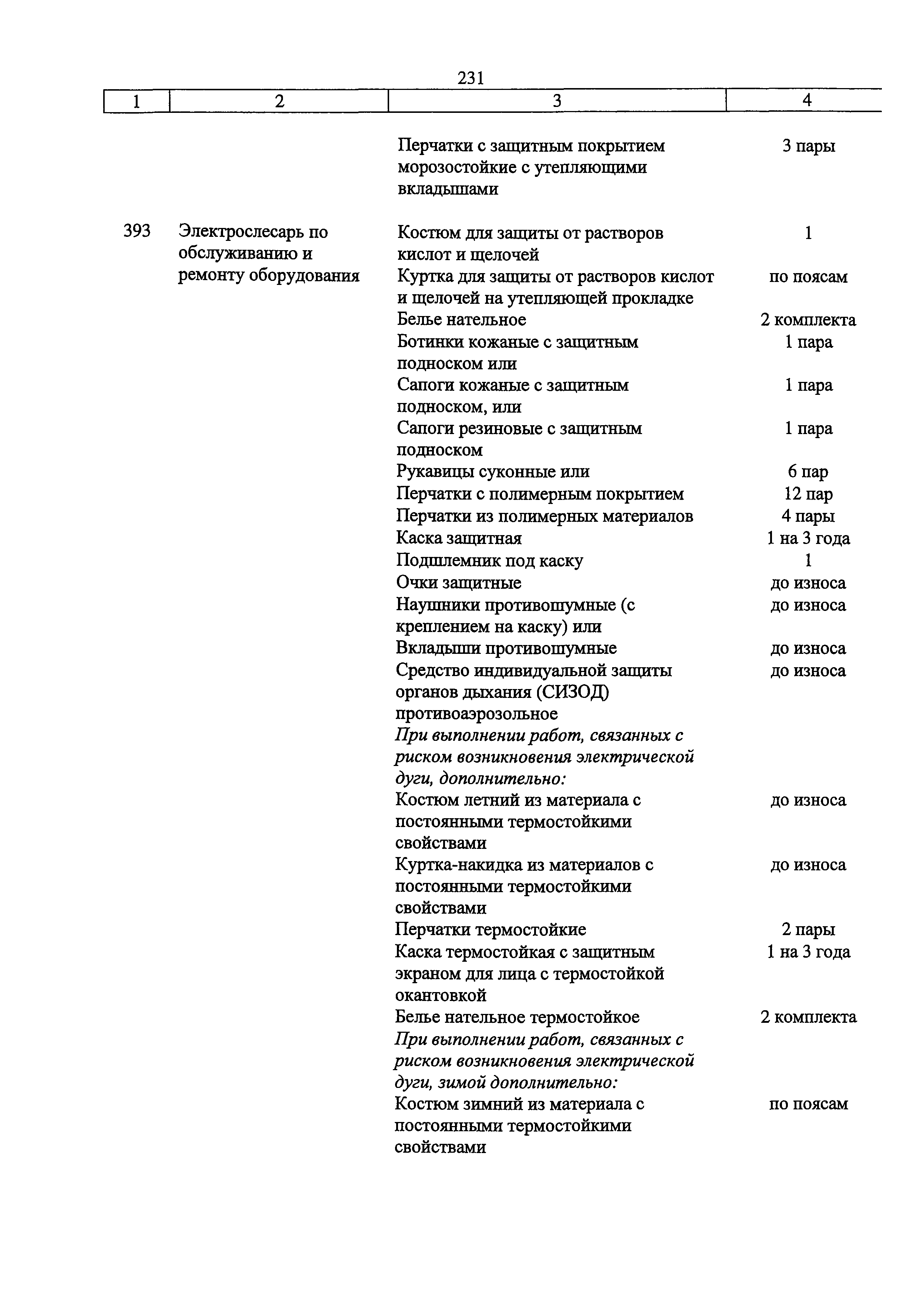 Типовые нормы бесплатной выдачи специальной одежды, специальной обуви и других средств индивидуальной защиты работникам горной и металлургической промышленности и металлургических производств других отраслей промышленности, занятым на работах с вредными и (или) опасными условиями труда, а также на работах, выполняемых в особых температурных условиях или связанных с загрязнением| Статус: | действует | | Название рус.: | Типовые нормы бесплатной выдачи специальной одежды, специальной обуви и других средств индивидуальной защиты работникам горной и металлургической промышленности и металлургических производств других отраслей промышленности, занятым на работах с вредными и (или) опасными условиями труда, а также на работах, выполняемых в особых температурных условиях или связанных с загрязнением | | Дата добавления в базу: | 01.02.2017 | | Дата актуализации: | 01.01.2021 | | Дата введения: | 14.02.2014 | | Область применения: | Нормы утверждаются локальными нормативными актами работодателя на основании результатов аттестации рабочих мест по условиям труда и могут быть включены в коллективный и (или) трудовой договор с указанием типовых норм, по сравнению с которыми улучшается обеспечение работников специальной одеждой, специальной обувью и другими средствами индивидуальной защиты. | | Оглавление: | I Горнодобывающая промышленность 1 Подземные горные работы (шахты) 2 Открытые горные работы и шахтная поверхность 3 Работа на гидравлических установках или с промывочными приборами 4 Дражные работы II Дробление, обогащение, брикетирование, обжиг, агломерация, извлечение металлов и сплавов III Черная металлургия 1 Коксохимическое производство 1.1 Углеподготовительные цеха 1.2 Углеобогатительные цеха 1.3 Производство каменноугольного кокса 1.4 Производство кристаллического нафталина, кумароновой смолы, смолоперерабатывающие цеха 1.5 Производство пиридиновых и фенольно-крезольных продуктов 1.6 Цеха улавливания химических продуктов и газовые цеха 1.7 Цеха ректификации сырого бензола 1.8 Цеха очистки коксового газа от сероводорода 1.9 Производство пекового кокса 1.10 Производство термоантрацита 2 Доменное производство 3 Сталеплавильное производство 3.1 Установки непрерывной разливки стали 4 Производство ферросплавов 4.1 Электролитическое производство 4.2 Производство электролитического хрома 4.3 Производство феррованадия 4.4 Подготовка шихты, обжиг руд и концентратов 4.5 Разливка и разделка ферросплавов 4.6 Обжиг извести 4.7 Общие профессии и должности ферросплавного производства 5 Прокатное производство 6 Производство труб (прокатка, сварка и волочение) 7 Колесопрокатное и бандажное производства 8 Валопрокатное производство 9 Производство рельсовых скреплений 10 Производство баллонов 11 Труболитейное производство 12 Производство метизов 12.1 Производство металлических канатов, сеток, пружин и пружинной ленты, щеток, цепей, колючей проволоки и других метизов 12.2 Волочение проволоки, калибровка и шлифовка металла 12.3 Изготовление волок 12.4 Холодноштамповочные и кузнечно-прессовые работы 12.5 Термическая обработка 12.6 Травление металла, защитные покрытия проволоки и извлечение железного купороса 12.7 Производство металлических электродов и порошковой проволоки 13 Производство огнеупоров 13.1 Огнеупоры 13.2 Карборундовые стержни 13.3 Высокоогнеупорные окислы 14 Ремонт 