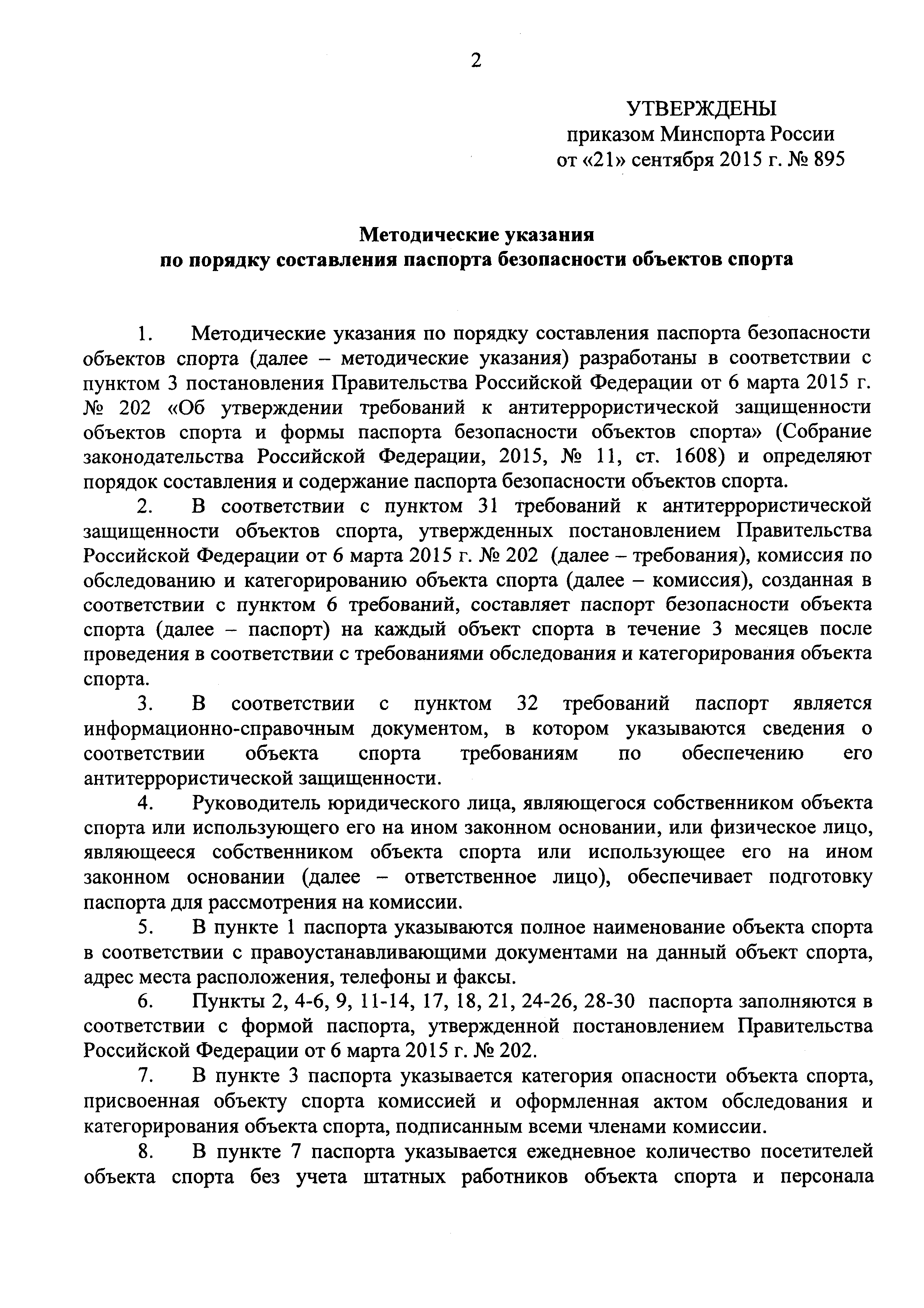 | Название рус.: | Методические указания по порядку составления паспорта безопасности объектов спорта |