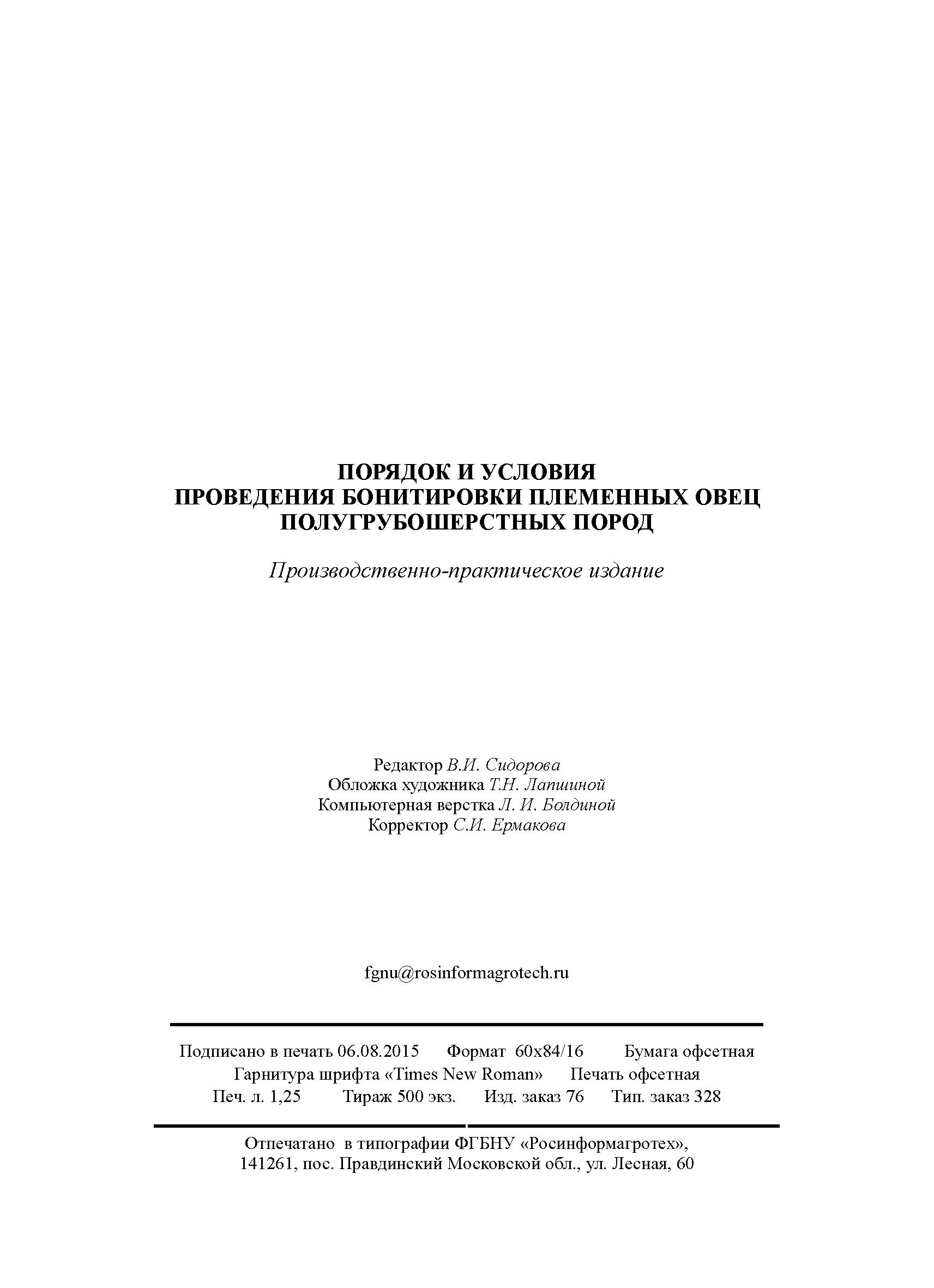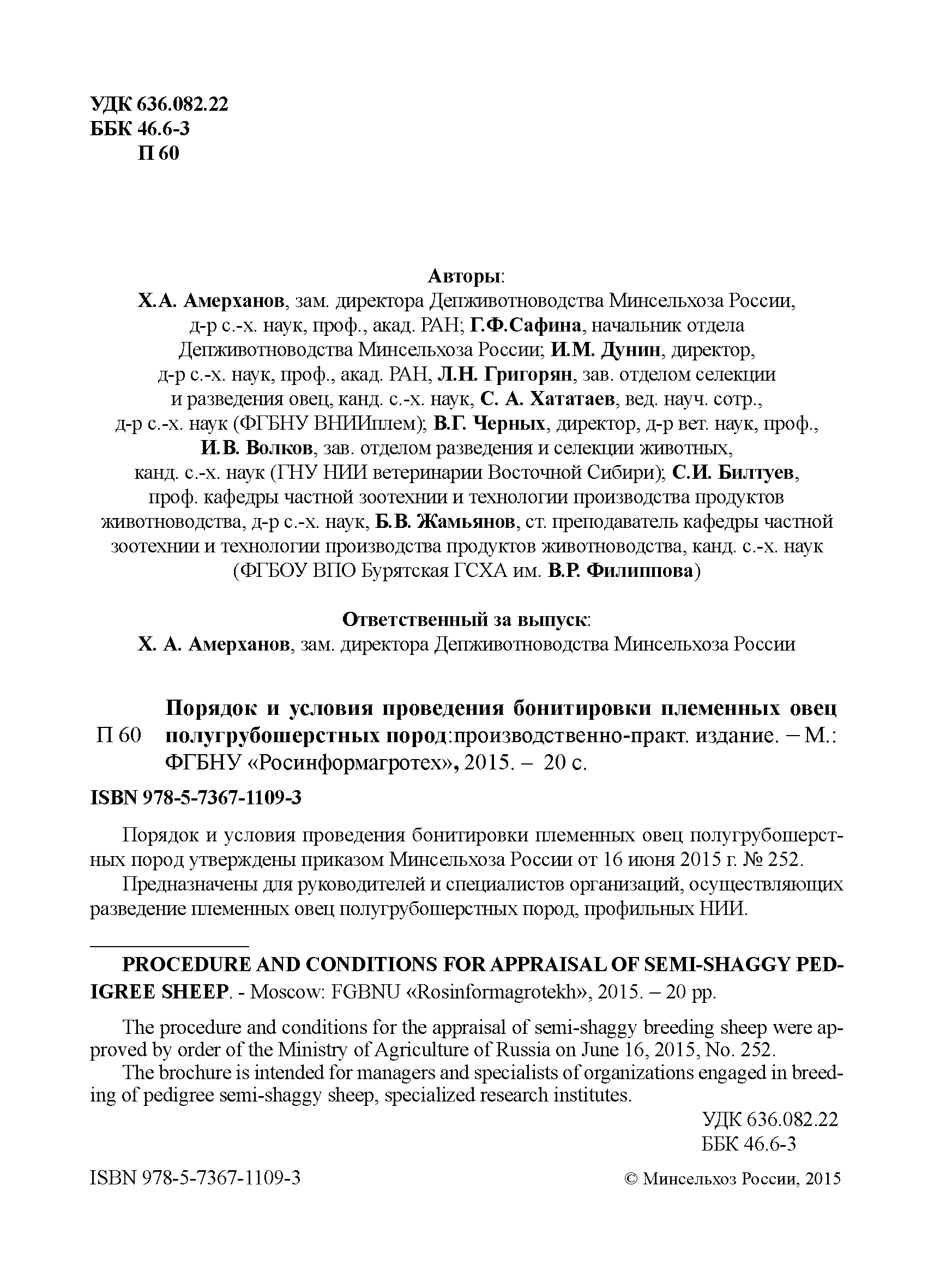 | Название рус.: | Порядок и условия проведения бонитировки племенных овец полугрубошерстных пород |