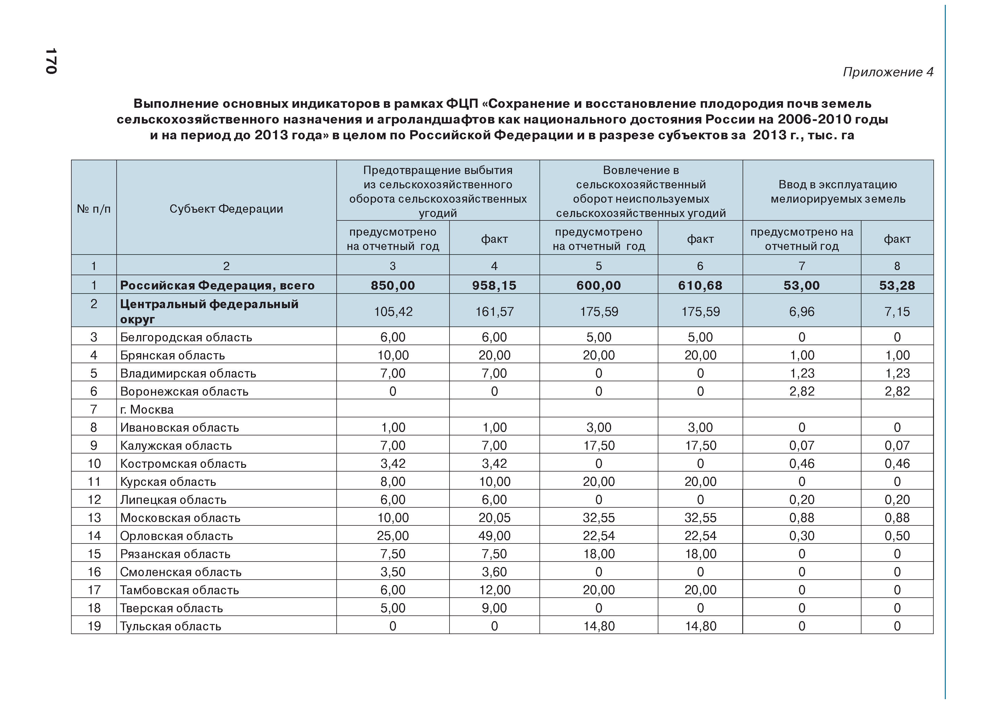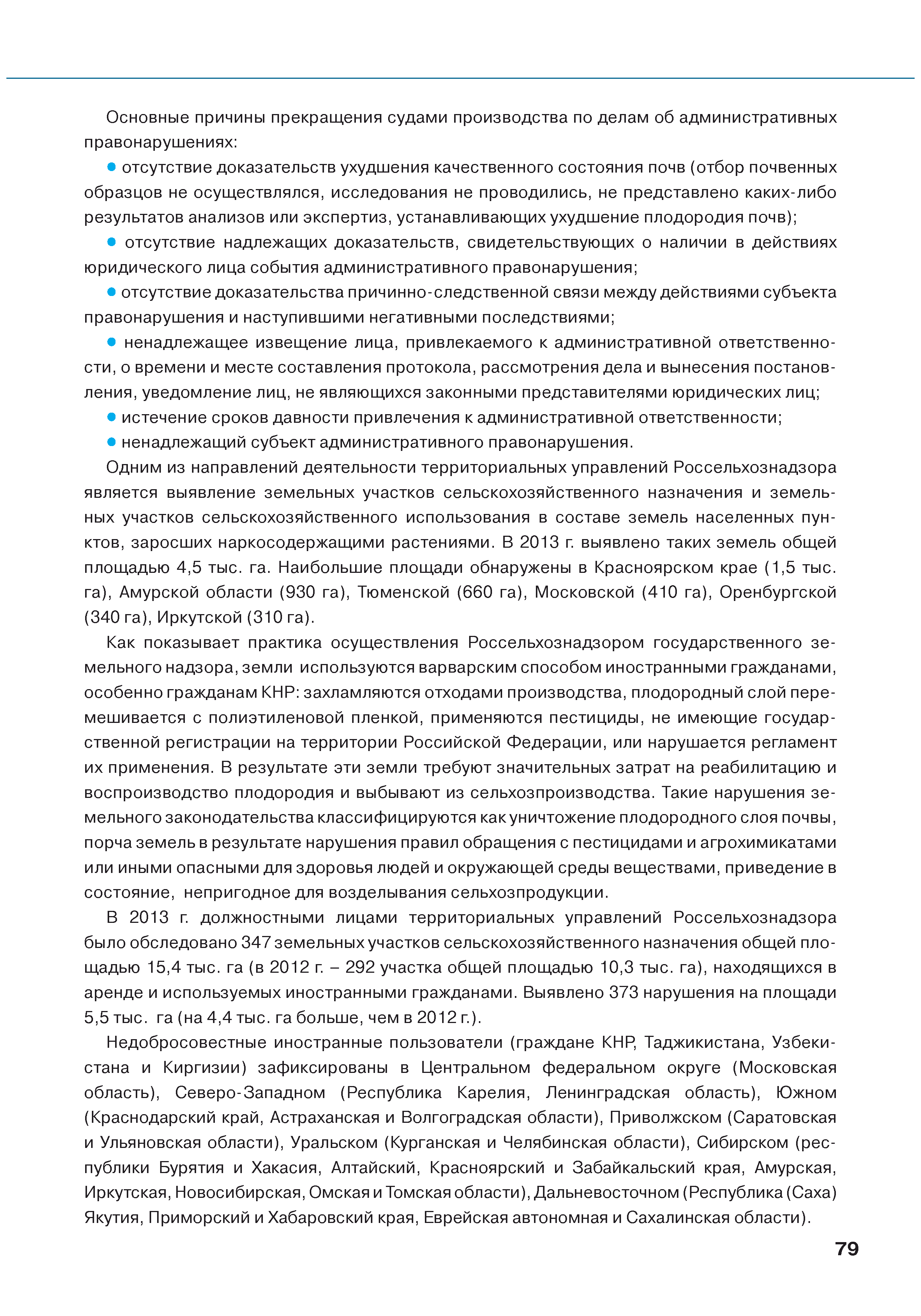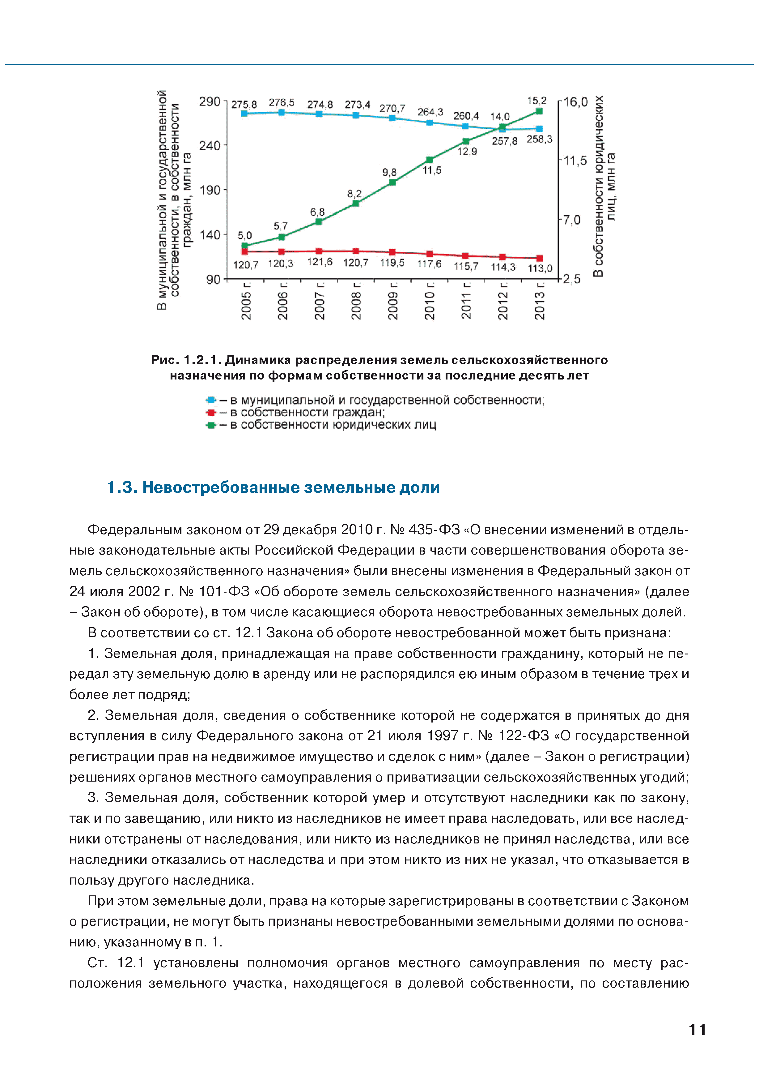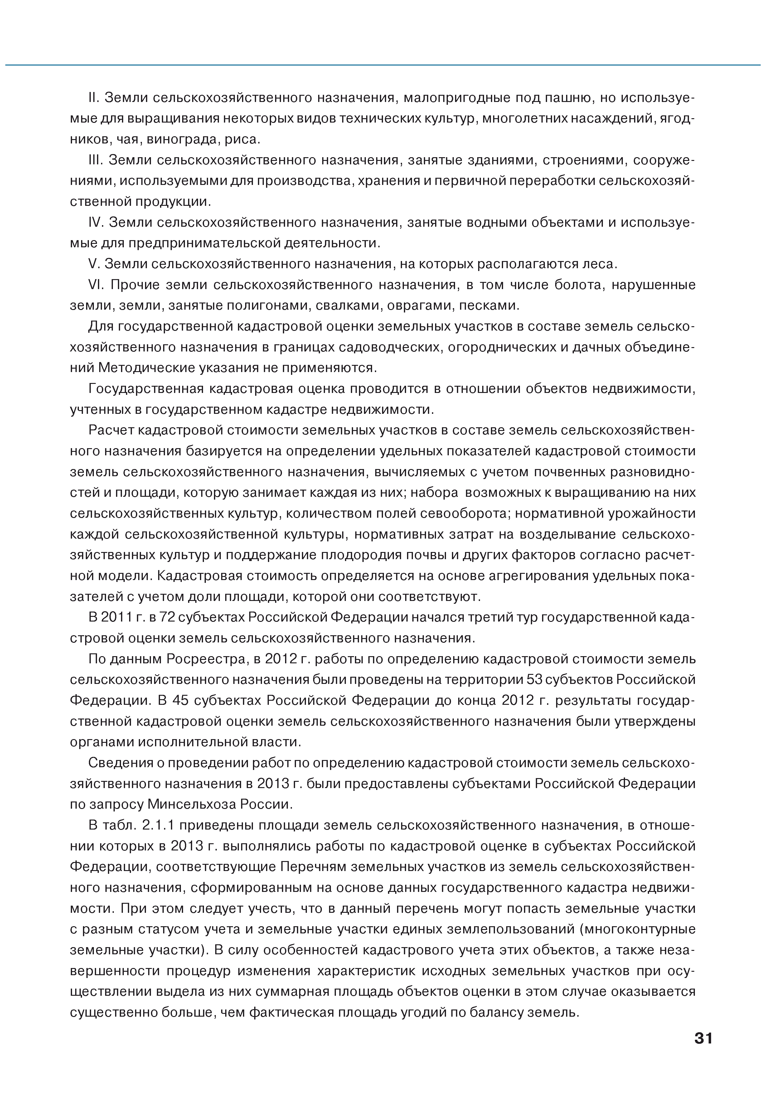 | Оглавление: | Введение 1. Использование земель сельскохозяйственного назначения в Российской Федерации 1.1. Структура земель сельскохозяйственного назначения в Российской Федерации и динамика их площадей с оценкой влияния различных факторов 1.2. Динамика распределения земель сельскохозяйственного назначения по формам собственности 1.3. Невостребованные земельные доли 1.4. Неиспользуемые земли сельскохозяйственного назначения и их вовлечение в сельскохозяйственный оборот 2. Состояние земель сельскохозяйственного назначения в Российской Федерации 2.1. Государственная кадастровая оценка земель сельскохозяйственного назначения 2.2. Состояние плодородия земель сельскохозяйственного назначения 2.3. Мониторинг (оценка) негативных процессов на землях сельскохозяйственного назначения 2.4. Состояние посевных площадей и урожайность сельскохозяйственных угодий 2.5. Состояние и использование мелиорированных земель 2.6. Особо ценные сельскохозяйственные земли 3. Нормативно-правовое регупирование использования земель сельскохозяйственного назначения 3.1. Совершенствование нормативной правовой базы в части использования земель сельскохозяйственного назначения 3.2. Государственная поддержка крестьянских (фермерских) хозяйств при оформлении земельных участков в собственность 4. Результаты деятельности россельхознадзора по осуществлению государственного земельного надзора на землях сельскохозяйственного назначения 5. Развитие государственного мониторинга земель сельскохозяйственного назначения 5.1. Совершенствование нормативной правовой базы государственного мониторинга земель сельскохозяйственного назначения 5.2. Формирование государственных информационных ресурсов о землях сельскохозяйственного назначения 5.3. Региональный опыт работы по осуществлению государственного мониторинга земель, используемых или предоставленных для ведения сельского хозяйства 6. Инвентаризация и мониторинг земель сельскохозяйственного назначения, находящихся в федеральной собственности и закрепленных за федеральными органами исполнительной власти и подведомственными им организациями Заключение Приложение 1. Структура земель сельскохозяйственного назначения Российской Федерации Приложение 2. Сведения о переводах земель сельскохозяйственного назначения в другие категории земель на основании решений органов власти субъектов Российской Федерации в 2013г. (по данным субъектов Российской Федерации) Приложение 3. Сведения о неиспользуемых землях сельскохозяйственного назначения Приложение 4. Выполнение основных индикаторов |