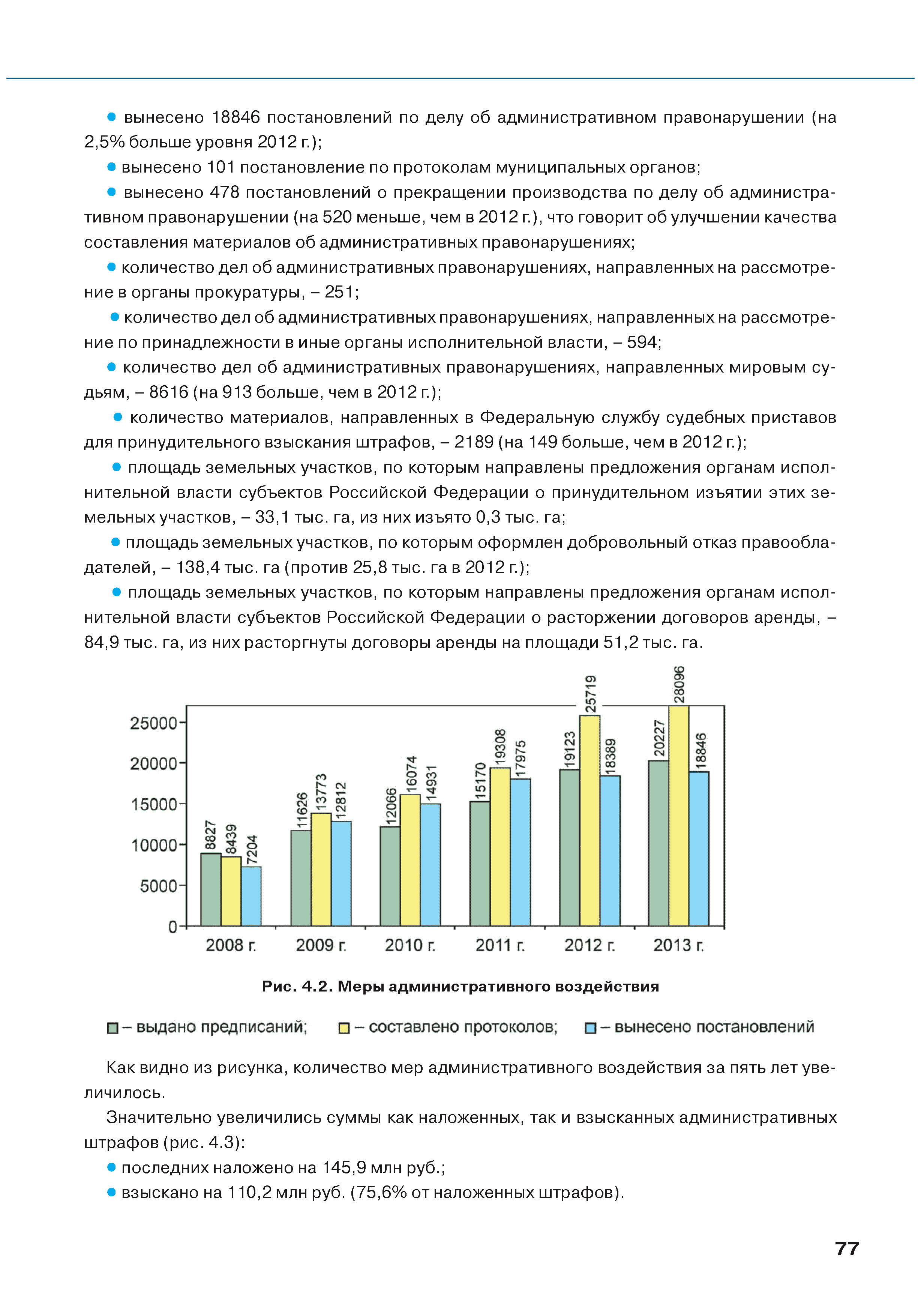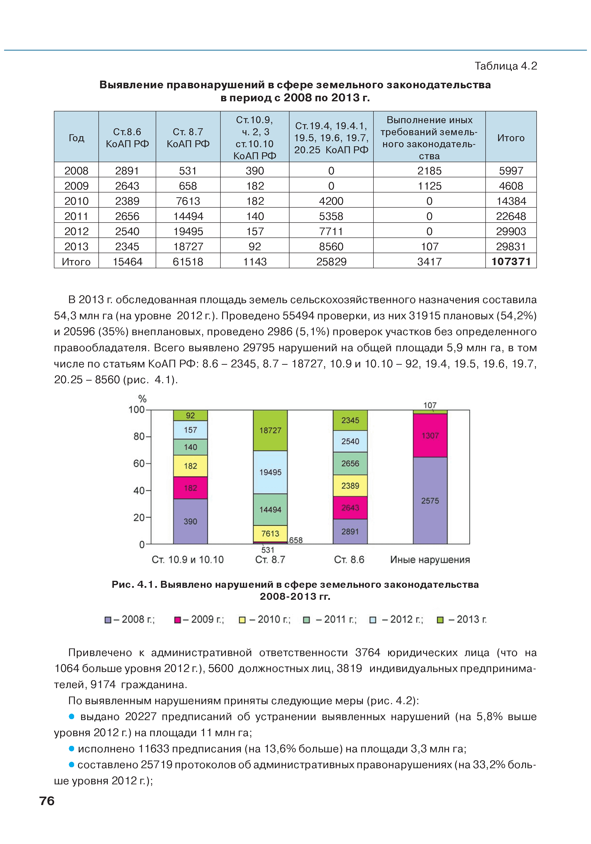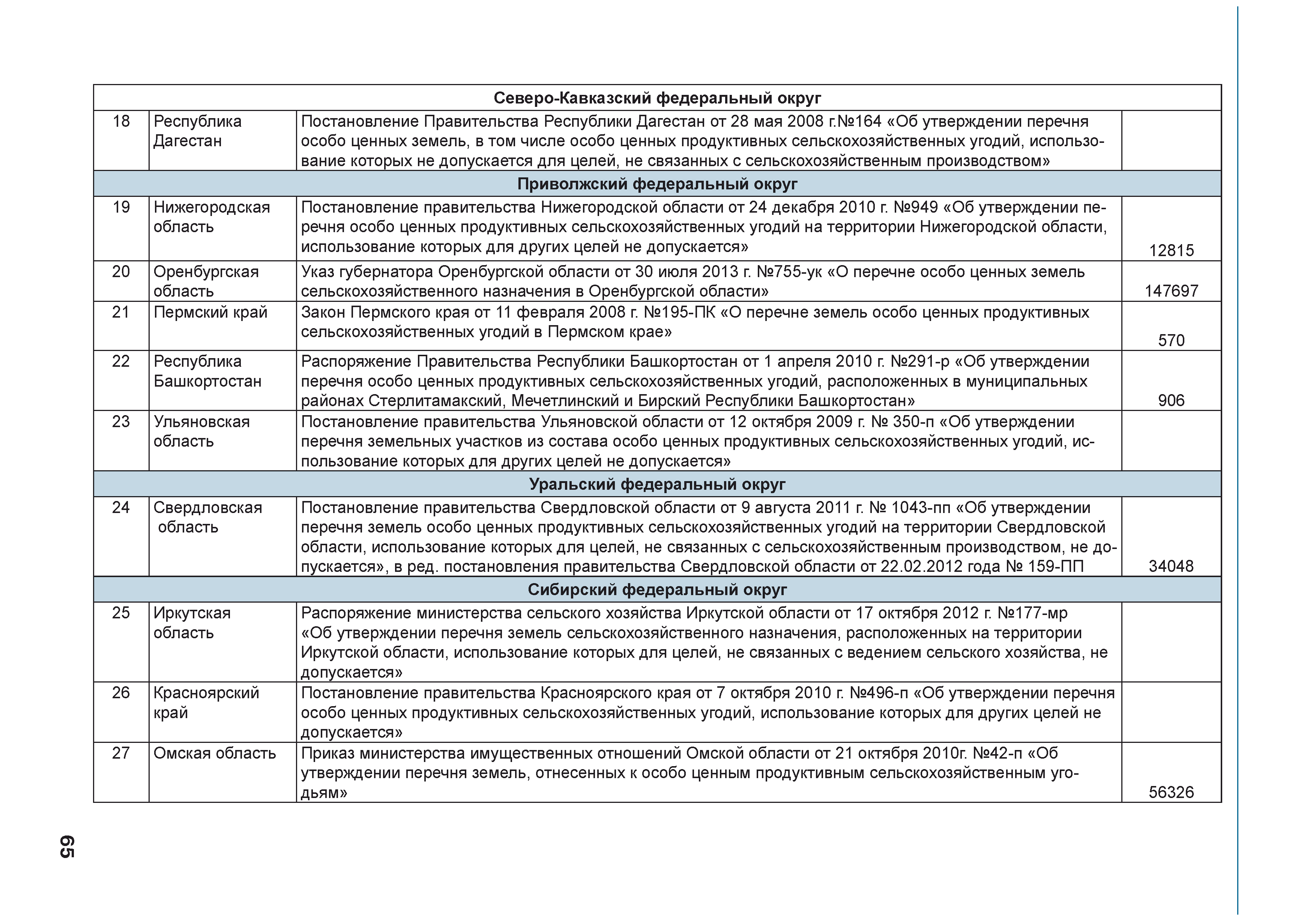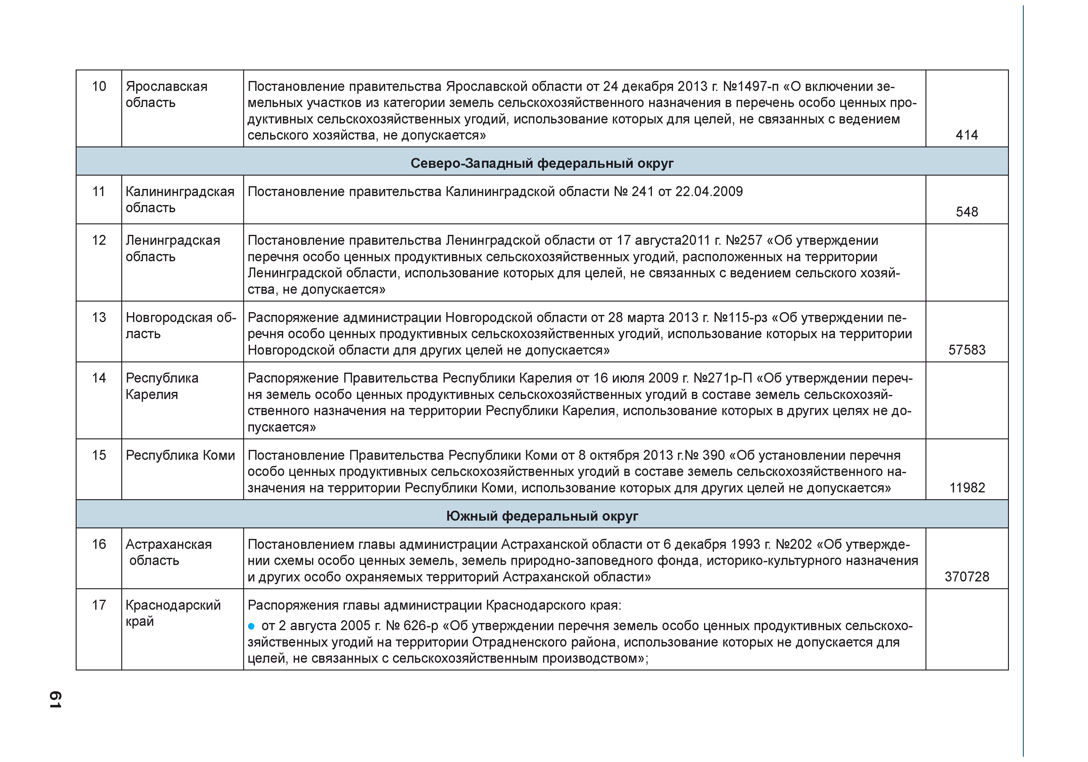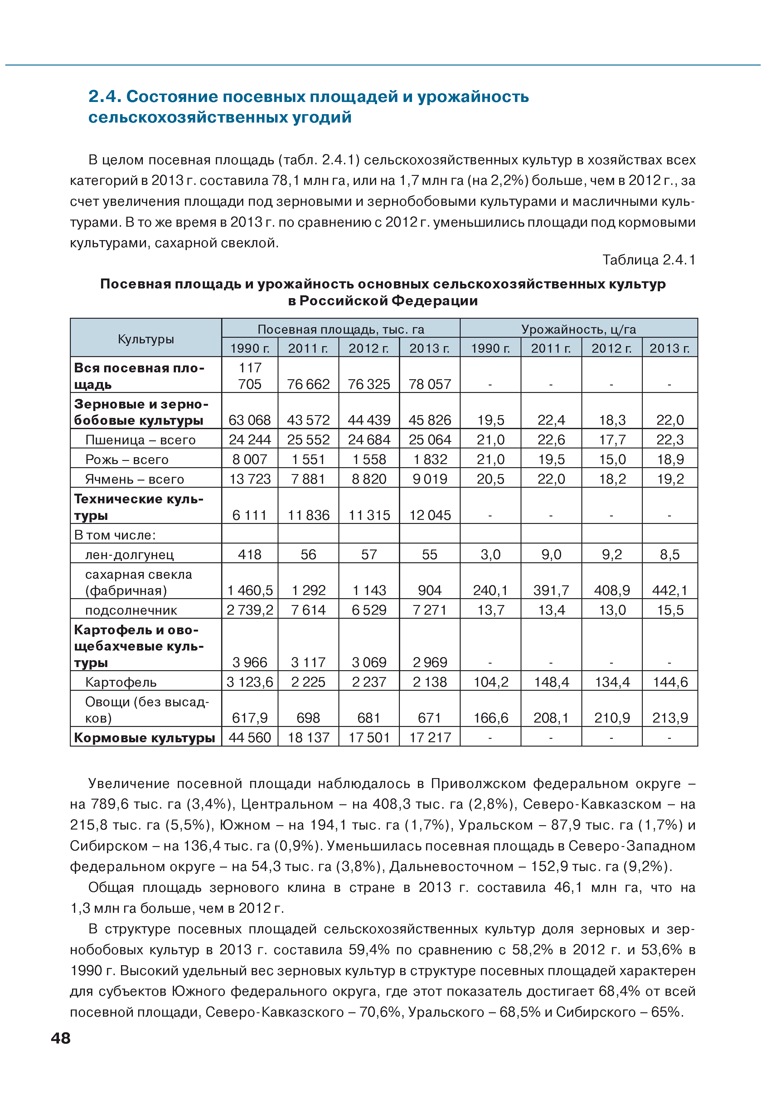 | Оглавление: | Введение 1. Использование земель сельскохозяйственного назначения в Российской Федерации 1.1. Структура земель сельскохозяйственного назначения в Российской Федерации и динамика их площадей с оценкой влияния различных факторов 1.2. Динамика распределения земель сельскохозяйственного назначения по формам собственности 1.3. Невостребованные земельные доли 1.4. Неиспользуемые земли сельскохозяйственного назначения и их вовлечение в сельскохозяйственный оборот 2. Состояние земель сельскохозяйственного назначения в Российской Федерации 2.1. Государственная кадастровая оценка земель сельскохозяйственного назначения 2.2. Состояние плодородия земель сельскохозяйственного назначения 2.3. Мониторинг (оценка) негативных процессов на землях сельскохозяйственного назначения 2.4. Состояние посевных площадей и урожайность сельскохозяйственных угодий 2.5. Состояние и использование мелиорированных земель 2.6. Особо ценные сельскохозяйственные земли 3. Нормативно-правовое регупирование использования земель сельскохозяйственного назначения 3.1. Совершенствование нормативной правовой базы в части использования земель сельскохозяйственного назначения 3.2. Государственная поддержка крестьянских (фермерских) хозяйств при оформлении земельных участков в собственность 4. Результаты деятельности россельхознадзора по осуществлению государственного земельного надзора на землях сельскохозяйственного назначения 5. Развитие государственного мониторинга земель сельскохозяйственного назначения 5.1. Совершенствование нормативной правовой базы государственного мониторинга земель сельскохозяйственного назначения 5.2. Формирование государственных информационных ресурсов о землях сельскохозяйственного назначения 5.3. Региональный опыт работы по осуществлению государственного мониторинга земель, используемых или предоставленных для ведения сельского хозяйства 6. Инвентаризация и мониторинг земель сельскохозяйственного назначения, находящихся в федеральной собственности и закрепленных за федеральными органами исполнительной власти и подведомственными им организациями Заключение Приложение 1. Структура земель сельскохозяйственного назначения Российской Федерации Приложение 2. Сведения о переводах земель сельскохозяйственного назначения в другие категории земель на основании решений органов власти субъектов Российской Федерации в 2013г. (по данным субъектов Российской Федерации) Приложение 3. Сведения о неиспользуемых землях сельскохозяйственного назначения Приложение 4. Выполнение основных индикаторов |