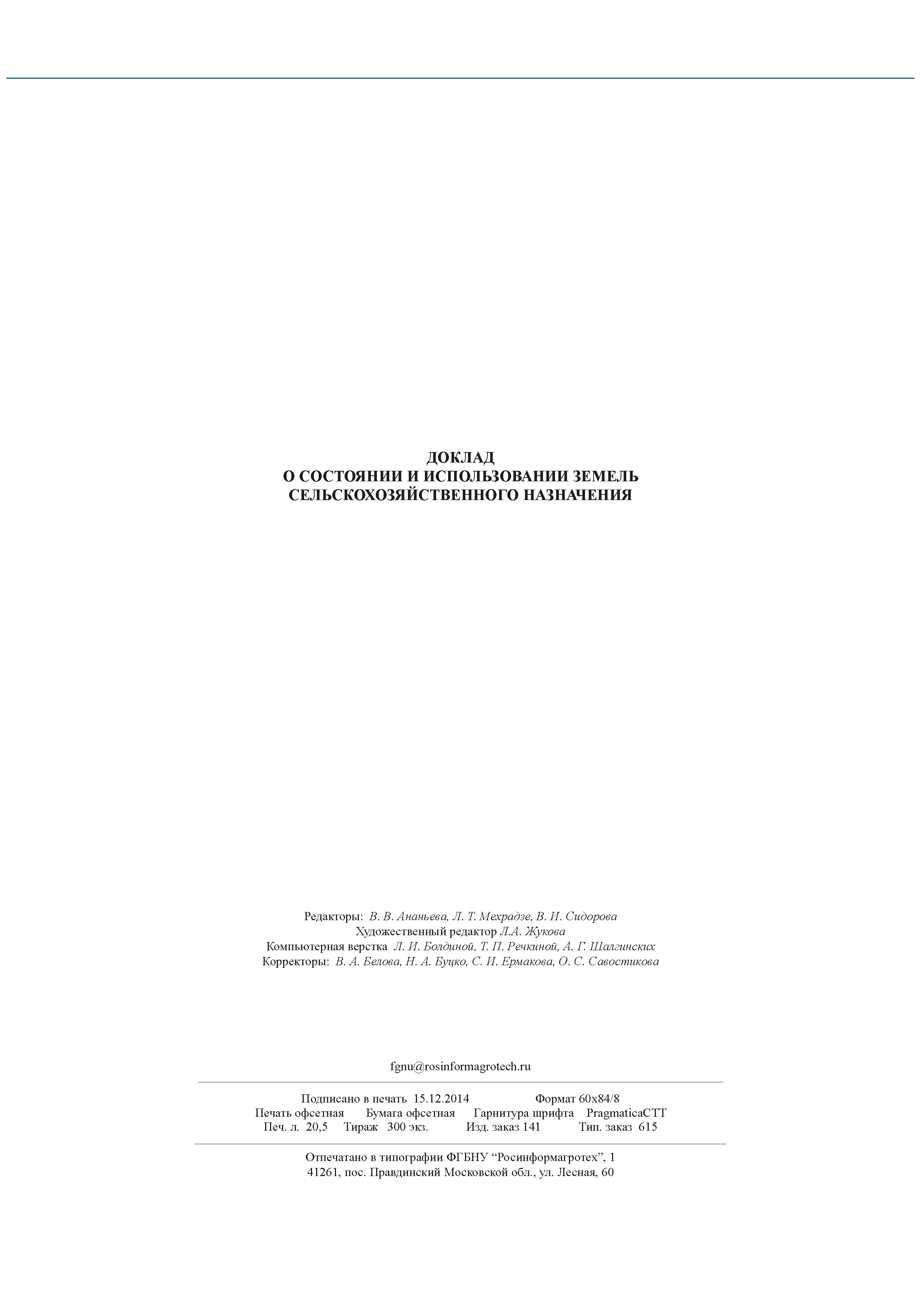 | Название рус.: | Доклад о состоянии и использовании земель сельскохозяйственного назначения |