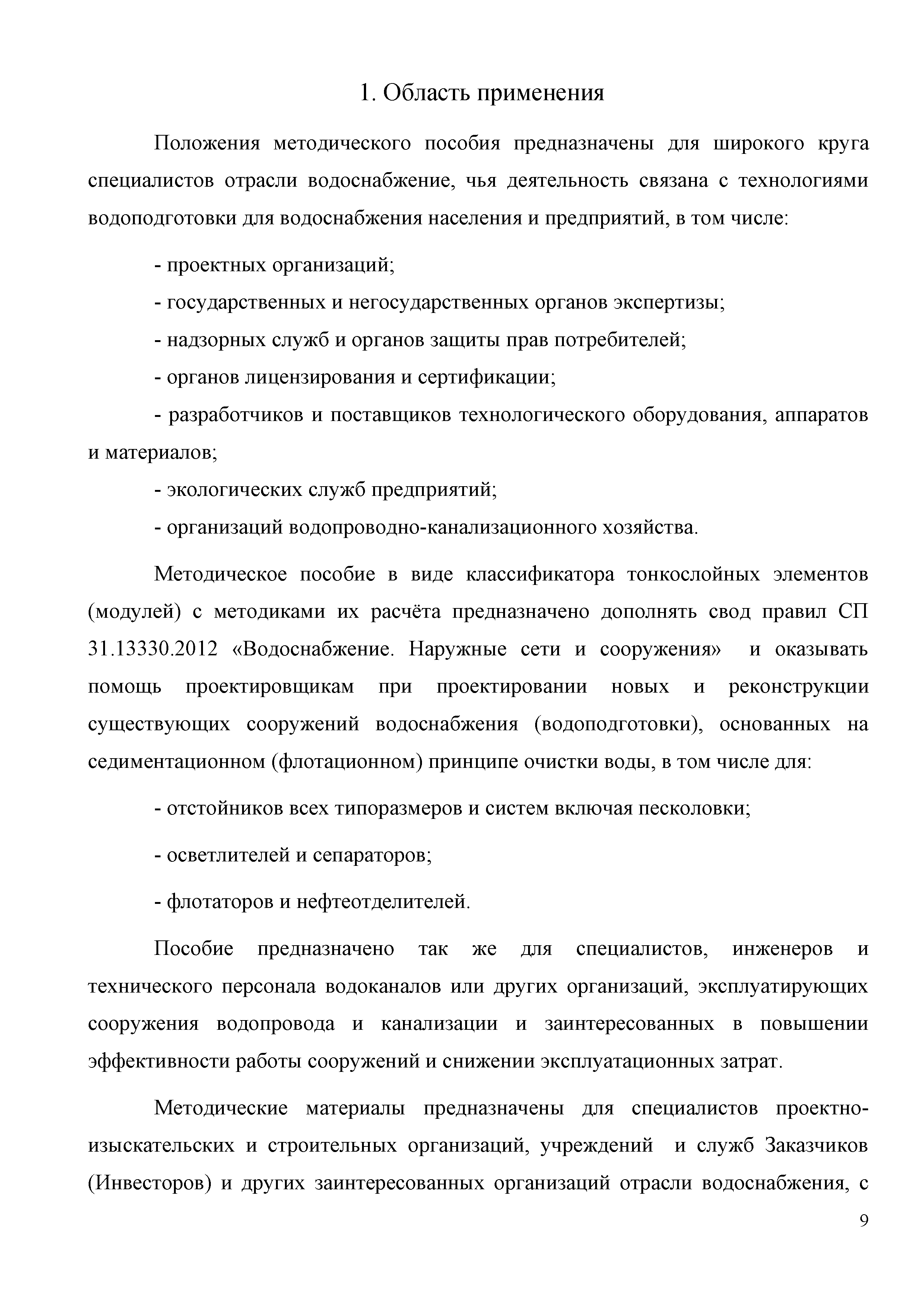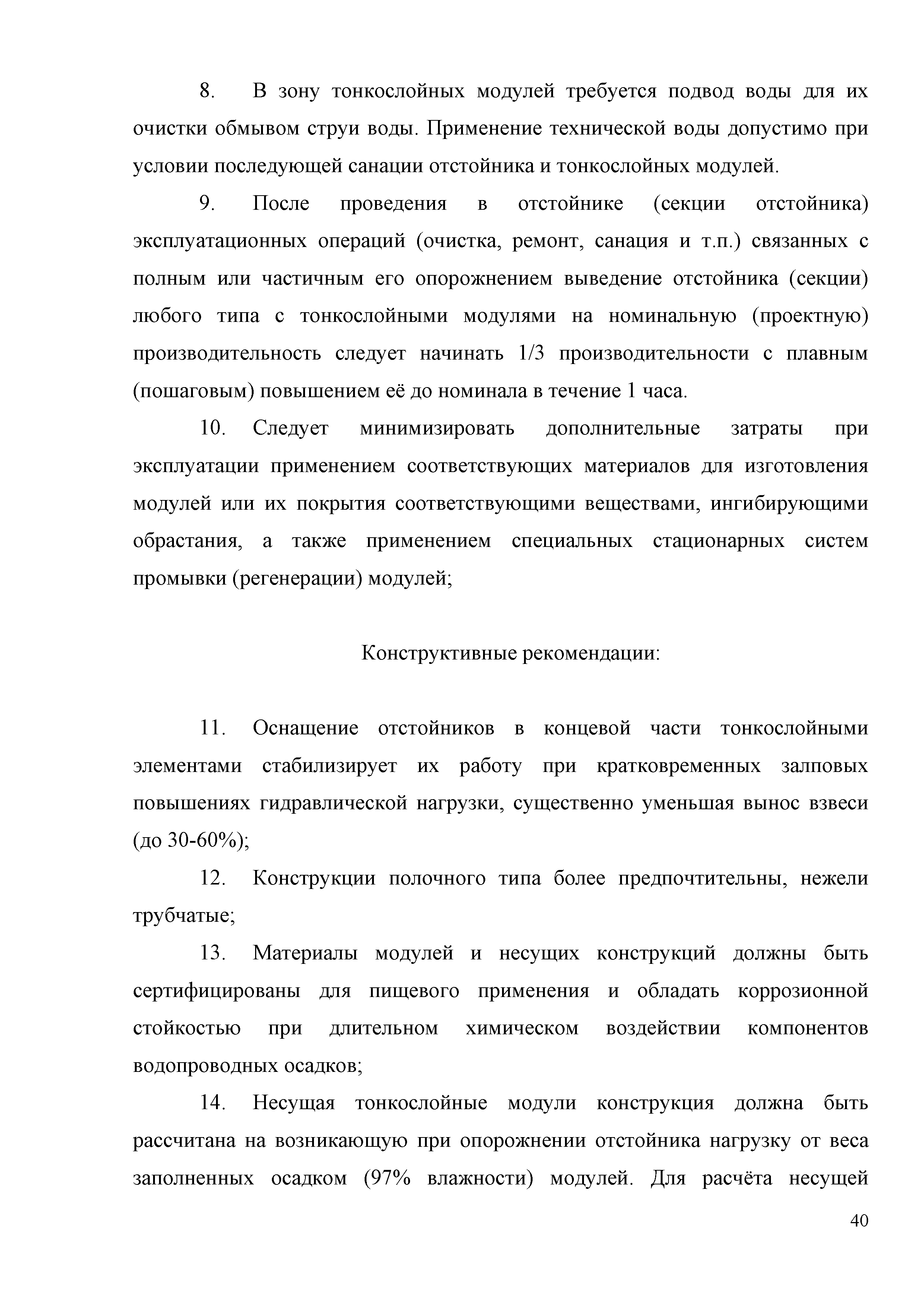 | Оглавление: | Аннотация 1 Область применения 2 Общие положения 3 Классификатор с основными расчётными параметрами 3.1 Основные классификационные признаки тонкослойных модулей 3.2 Методика расчёта конструктивных параметров тонкослойных модулей для новых сооружений 3.3 Расчёт тонкослойного модуля с учётом сноса осадка 3.4 Методика расчёта конструктивных параметров тонкослойных модулей при реконструкции существующих сооружений 3.5 Технико- экономическое обоснование применения нормируемых параметров и методик расчёта 4 Рекомендации по конструированию, проектированию, строительству и эксплуатации тонкослойных модулей Приложение 1. Основные понятия, термины и определения Приложение 2. Нормативные ссылки Список использованных источников |