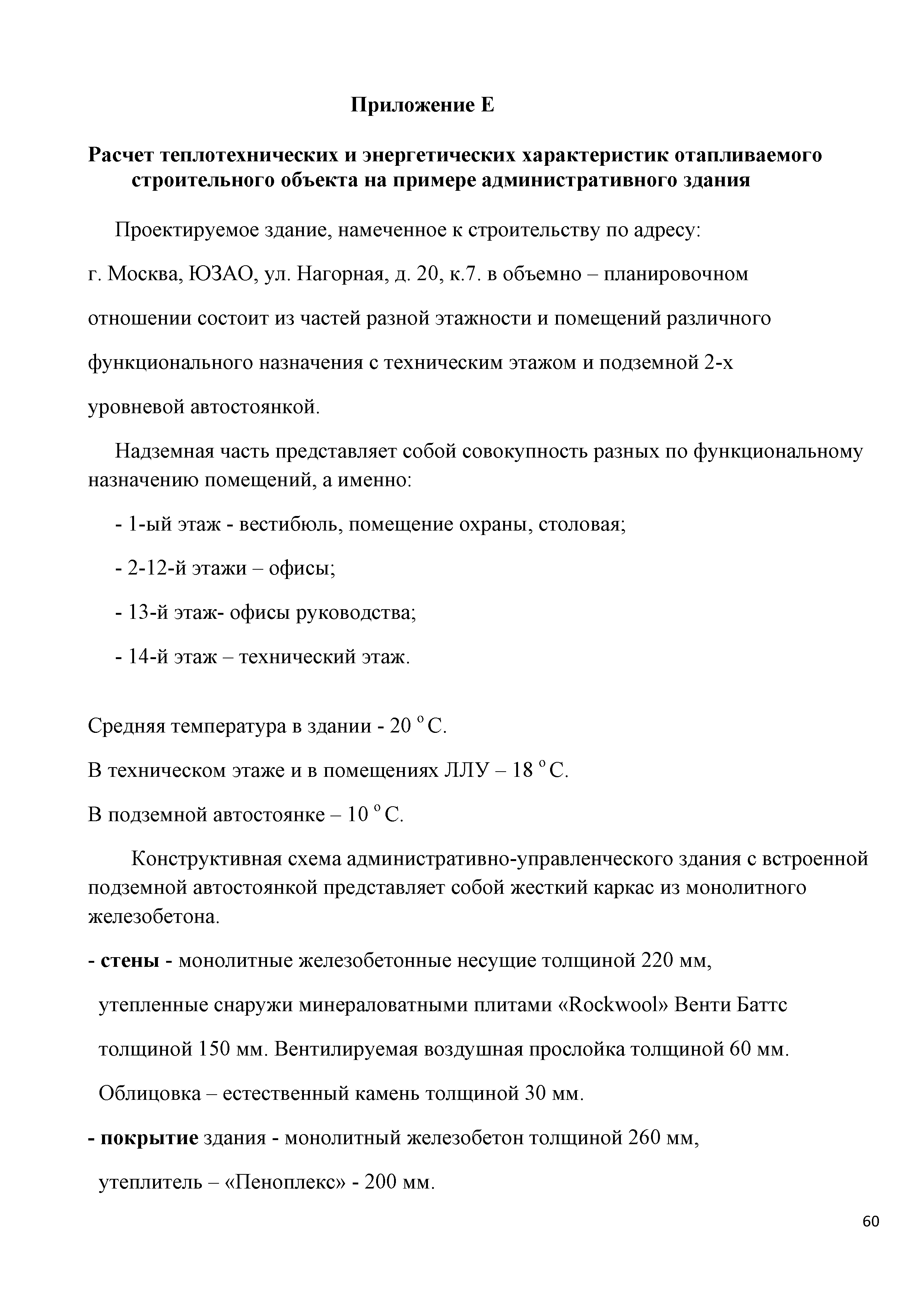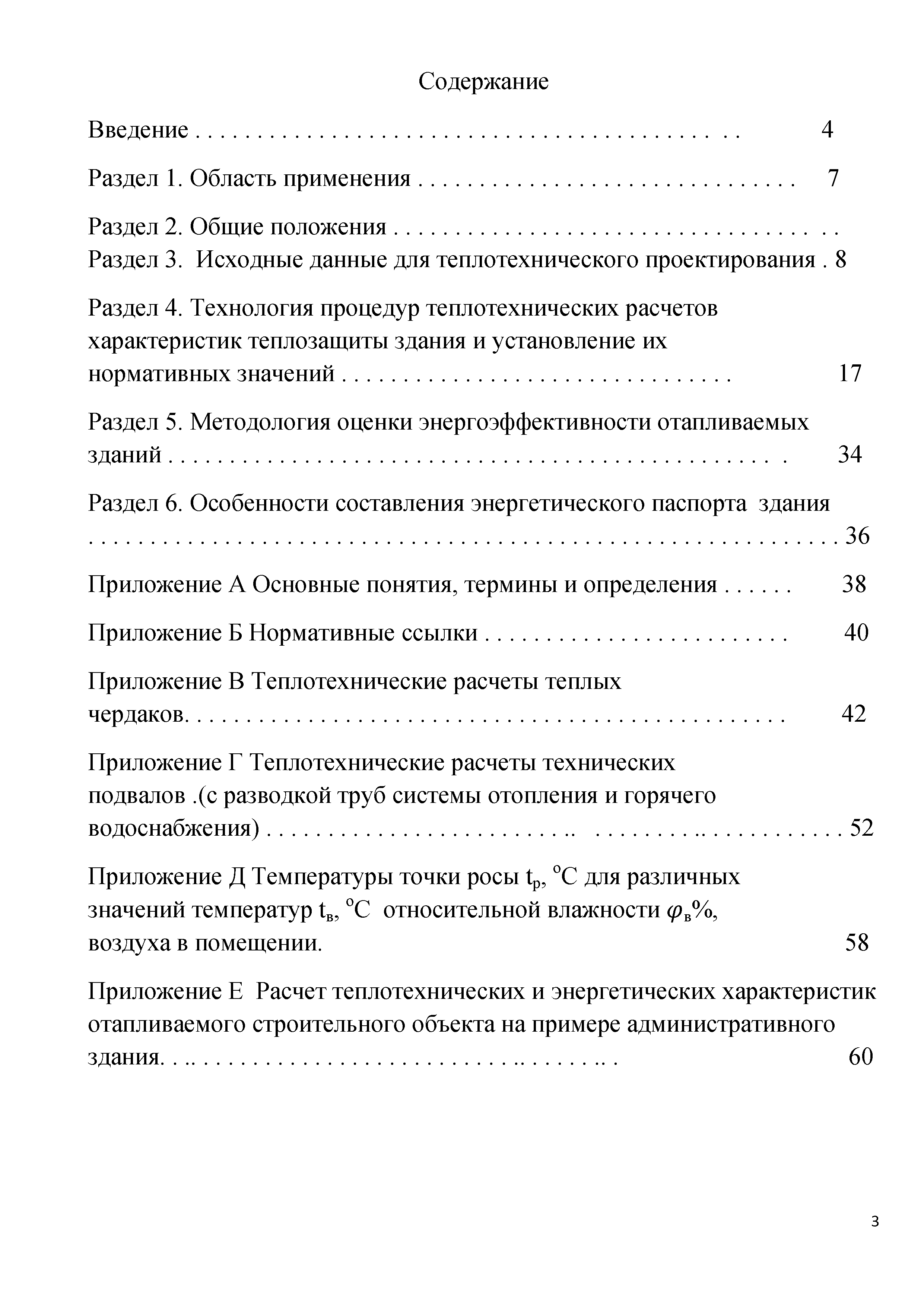 | Оглавление: | Введение Раздел 1. Область применения Раздел 2. Общие положения Раздел 3. Исходные данные для теплотехнического проектирования Раздел 4. Технология процедур теплотехнических расчетов характеристик теплозащиты здания и установление их нормативных значений Раздел 5. Методология оценки энергоэффективности отапливаемых зданий Раздел 6. Особенности составления энергетического паспорта здания Приложение А. Основные понятия, термины и определения Приложение Б. Нормативные ссылки Приложение В. Теплотехнические расчеты теплых чердаков Приложение Г. Теплотехнические расчеты технических подвалов (с разводкой труб системы отопления и горячего водоснабжения) Приложение Д. Температуры точки росы t градусов Цельсия для различных значений температур относительной влажности воздуха в помещений Приложение Е. Расчет теплотехнических и энергетических характеристик отапливаемого строительного объекта на примере административного здания |