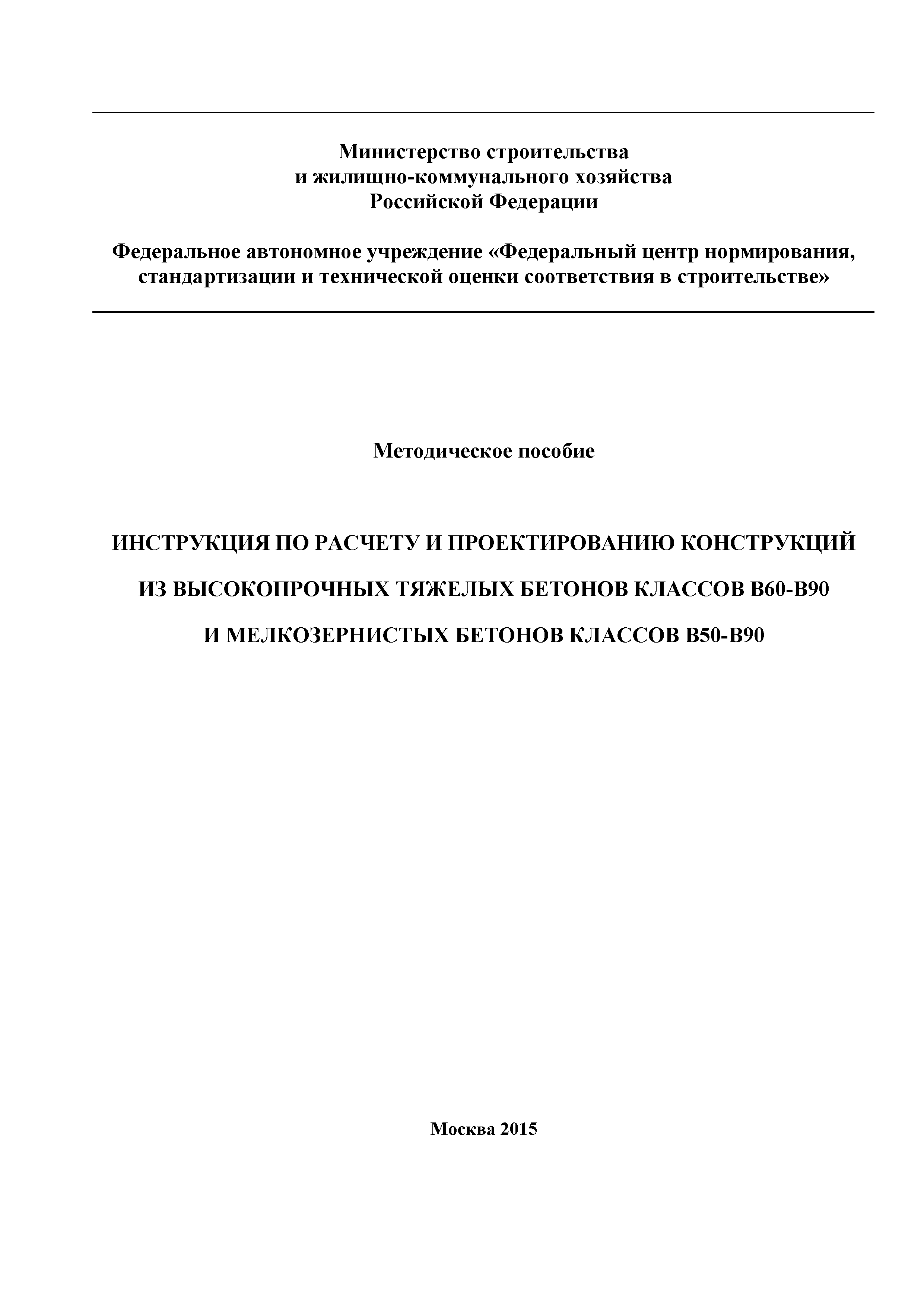 | Название рус.: | Методическое пособие. Инструкция по расчету и проектированию конструкций из высокопрочных тяжелых бетонов классов В60 - В90 и мелкозернистых бетонов классов В50 - В90 |