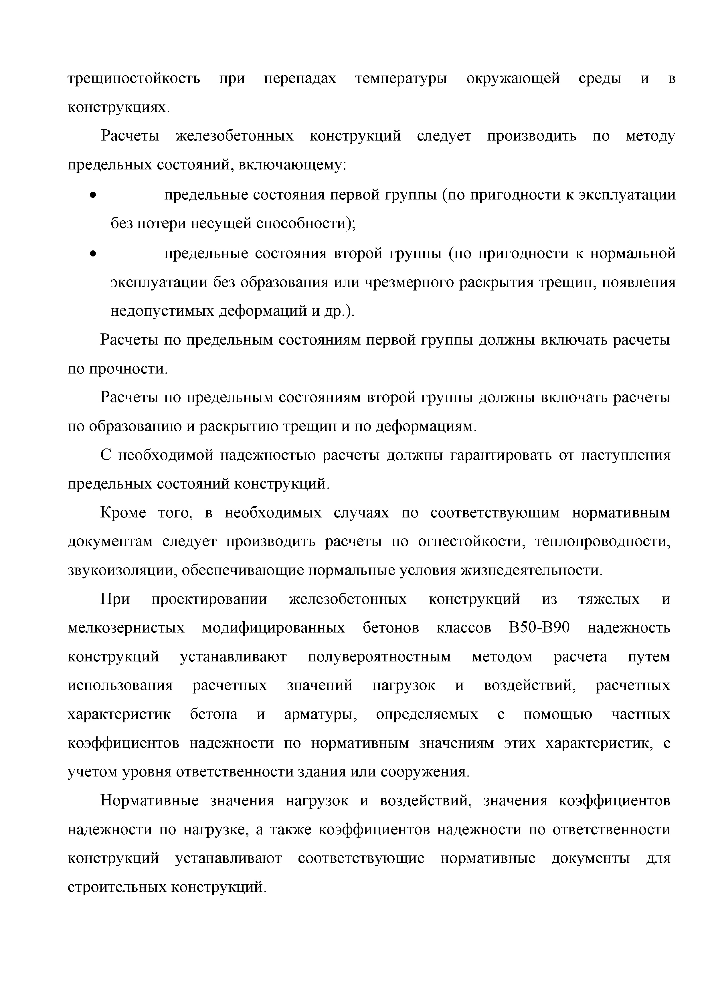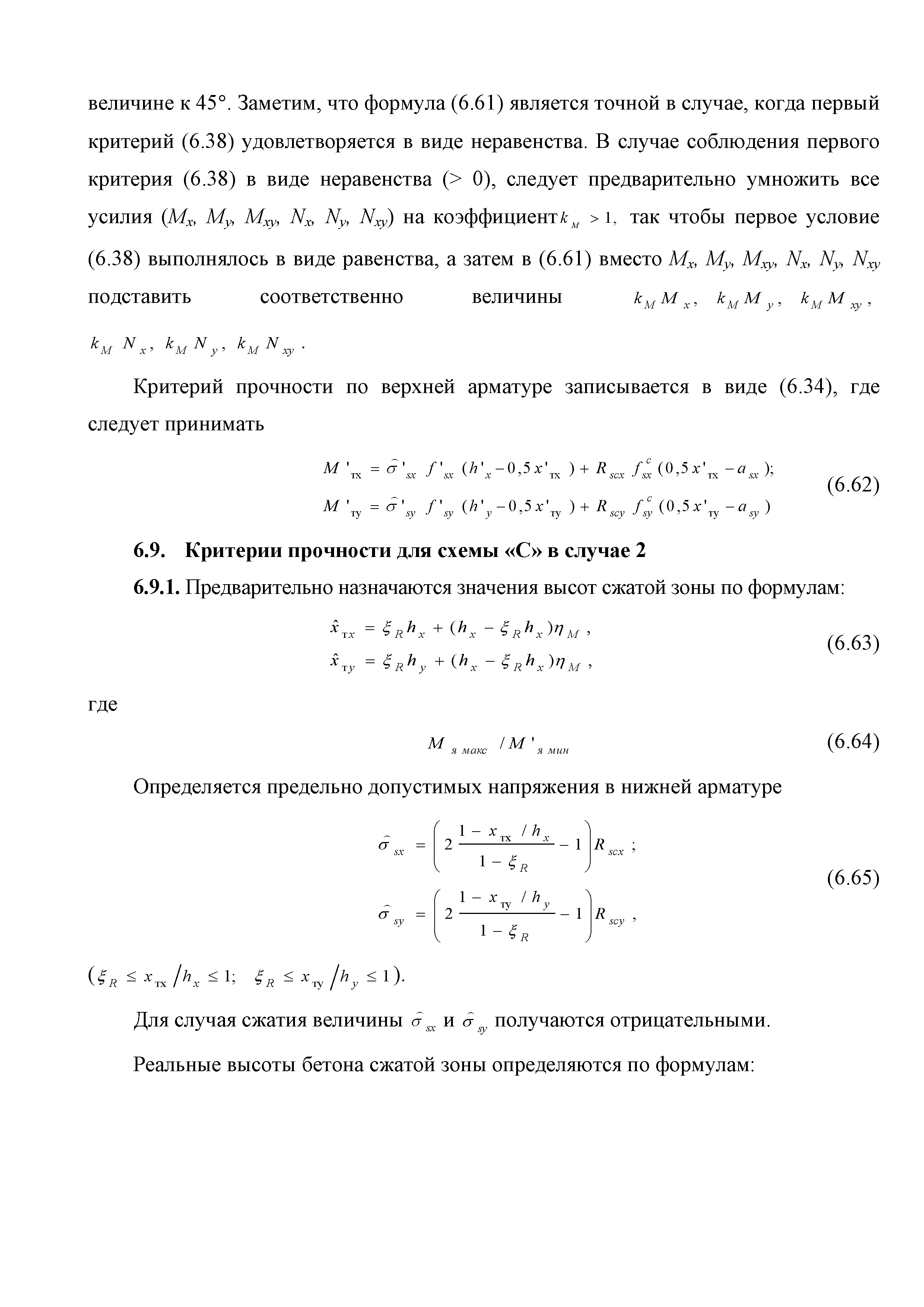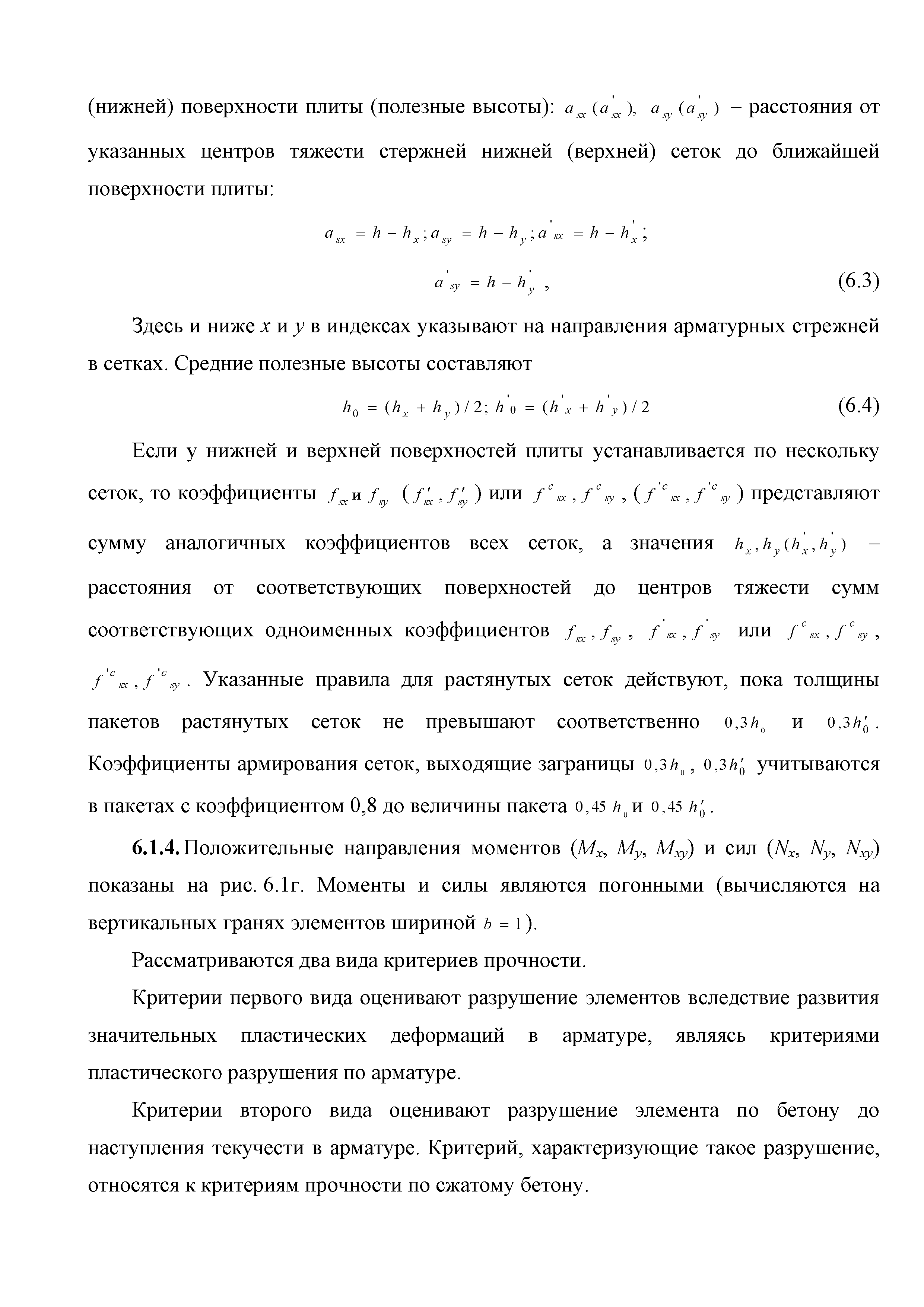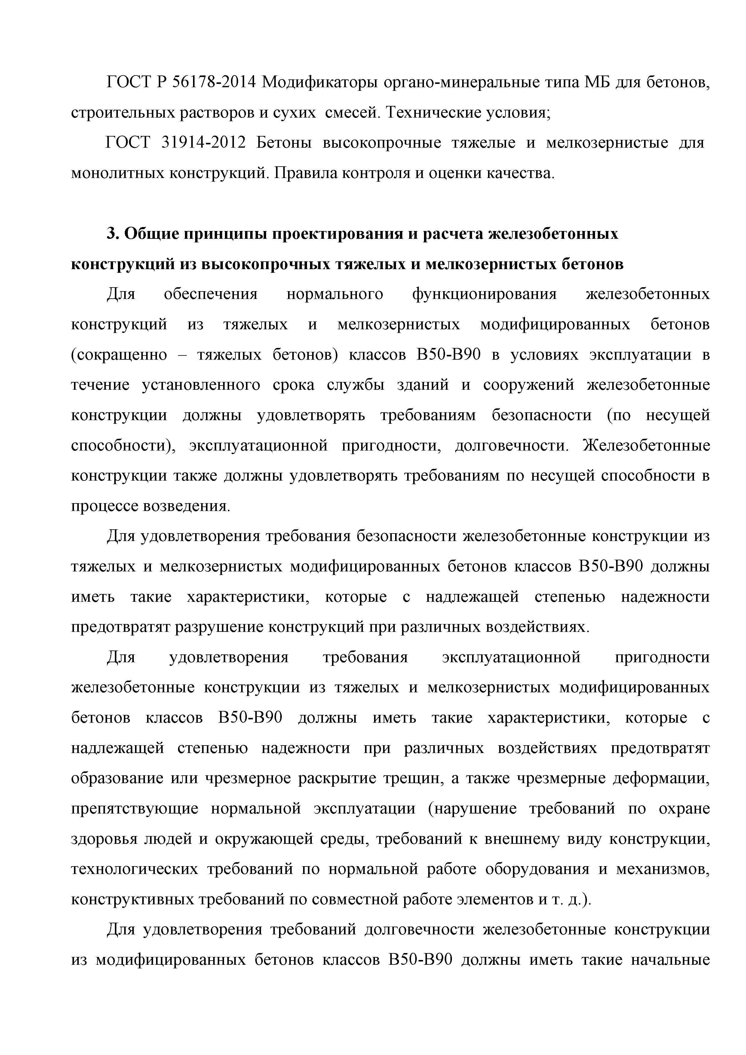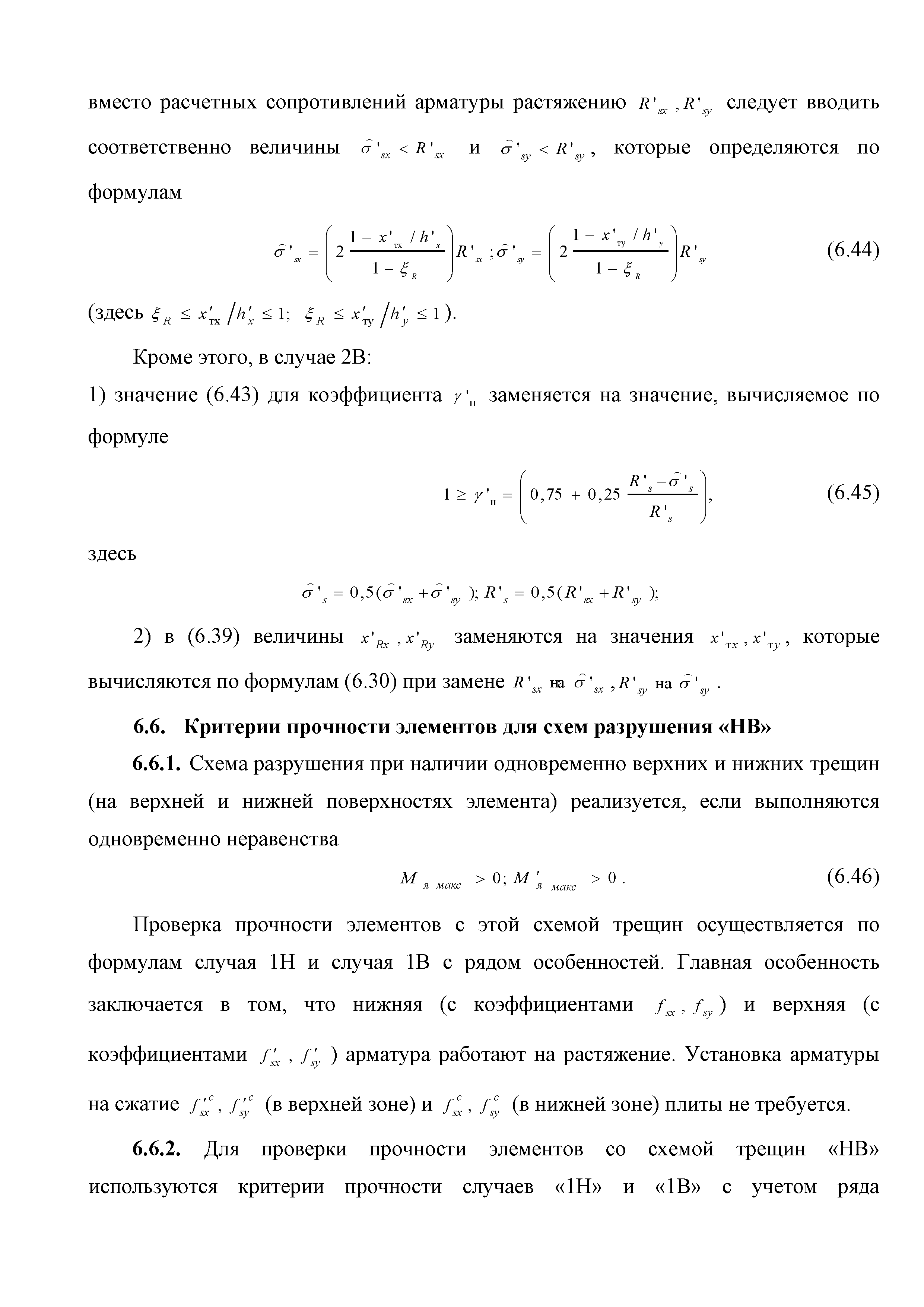 | Оглавление: | Введение 1. Область применения 2. Общие положения 3. Общие принципы проектирования и расчета железобетонных конструкций из высокопрочных тяжелых и мелкозернистых бетонов 4. Определение физико-механических и реологических (усадка, ползучесть) характеристик высокопрочных бетонов 4.1. Общие положения 4.2. Нормативные сопротивления бетона 4.3. Расчетные сопротивления бетона 4.4. Кратковременные деформационные характеристики бетона 4.5. Диаграммы состояния бетона 4.6 Учет деформаций ползучести 4.7. Учет усадки бетона 4.8. Общие требования к арматуре 4.9. Диаграммы состояния арматуры 5. Особенности расчета железобетонных конструкций из высокопрочных бетонов по двум группам предельных состояний 5.1. Общие положения 5.2. Общие условия нелинейной диаграммной модели 5.3. Основные уравнения деформационной диаграммной модели 5.4. Расчет конструкций по прочности (по первой группе предельных состояний) 5.5. Расчет деформаций, перемещений и напряжений конструкций на длительное действие нагрузки (по второй группе предельных состояний) 5.6. Расчет приращений деформаций, перемещений и напряжений конструкций на действие кратковременной нагрузки (по второй групп предельных состояний) 5.7. Определение полных деформаций, перемещений и напряжений от действия кратковременной и длительной нагрузки 5.8. Учет деформаций усадки 6. Общие критерии прочности железобетонных плоских и оболочечных элементов при совместном действии изгибающих и крутящих моментов, нормальных и касательных сил 6.1. Общие положения 6.2. Критерии прочности для схем разрушения "Н" 6.3. Критерии прочности для схем разрушения "В" 6.4. Критерии прочности для случая 1В 6.5. Критерии прочности для случая 2В 6.6. Критерии прочности элементов для схем разрушения "НВ" 6.7. Критерии прочности элементов для схемы разрушения "С" 6.8. Критерий прочности элементов для схемы "С" в случае 1 6.9. Критерии прочности для схемы "С" в случае 2 7. Дополнительные рекомендации по конструированию 7.1. Требования к поперечному и продольному армированию 7.2. Требования к соединениям арматуры внахлест и их расположению 7.3. Требования к механическим соединениям арматуры и их расположению 8. Требования к материалам для производства бетонных смесей тяжелых и мелкозернистых модифицированных бетонов классов В50-В100 Приложение. Основные понятия, термины и определения Приложение. Перечень нормативной документации |