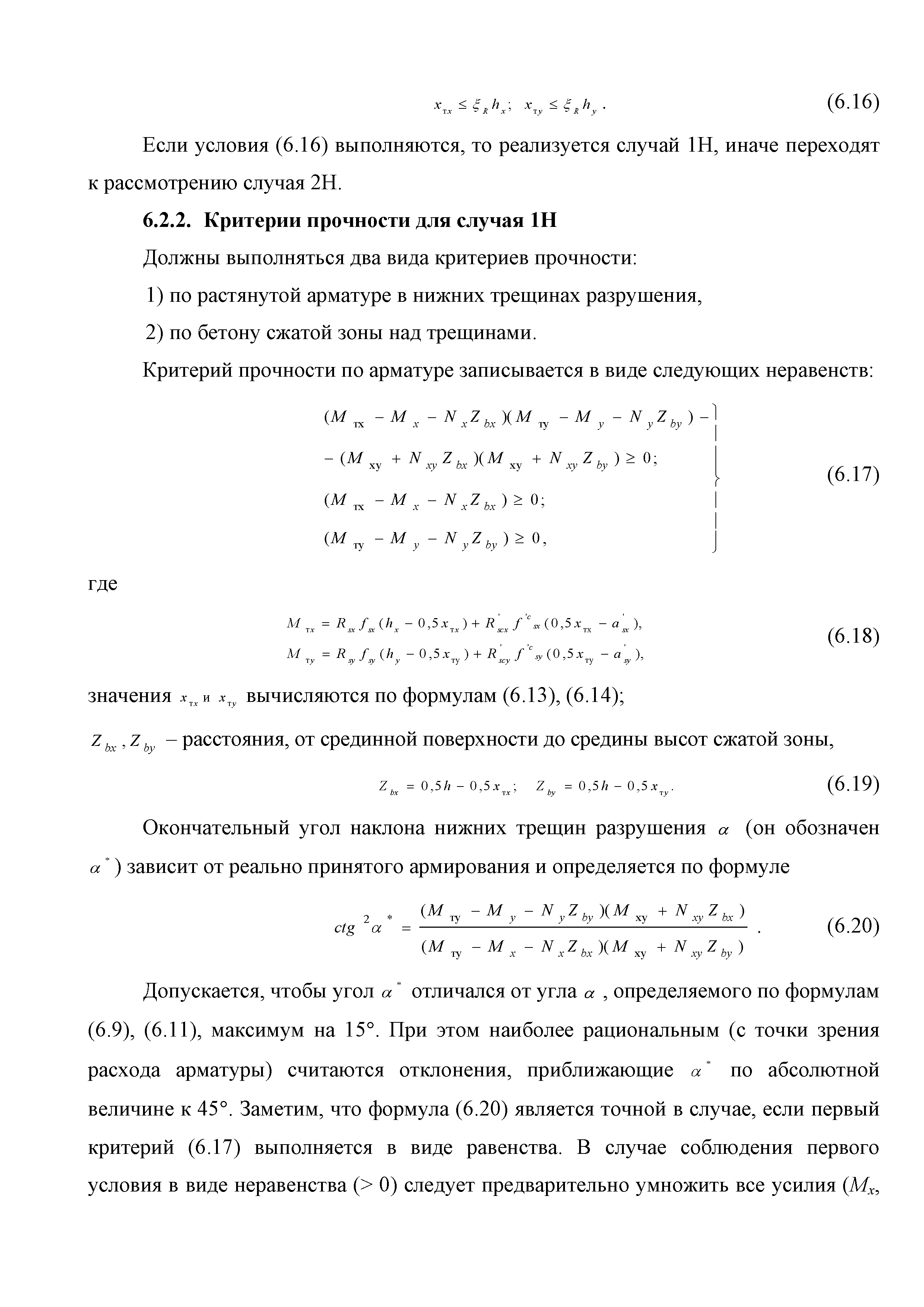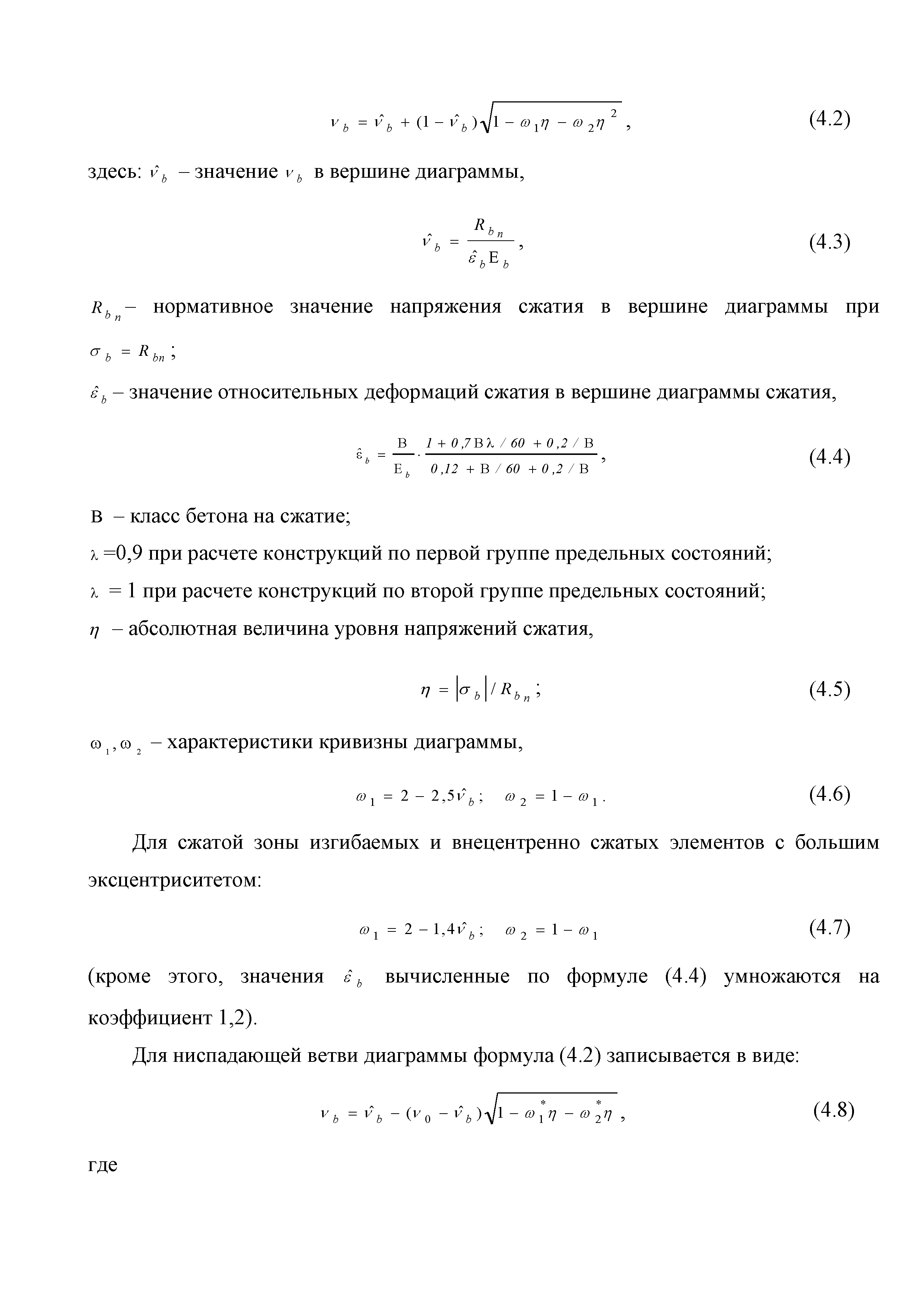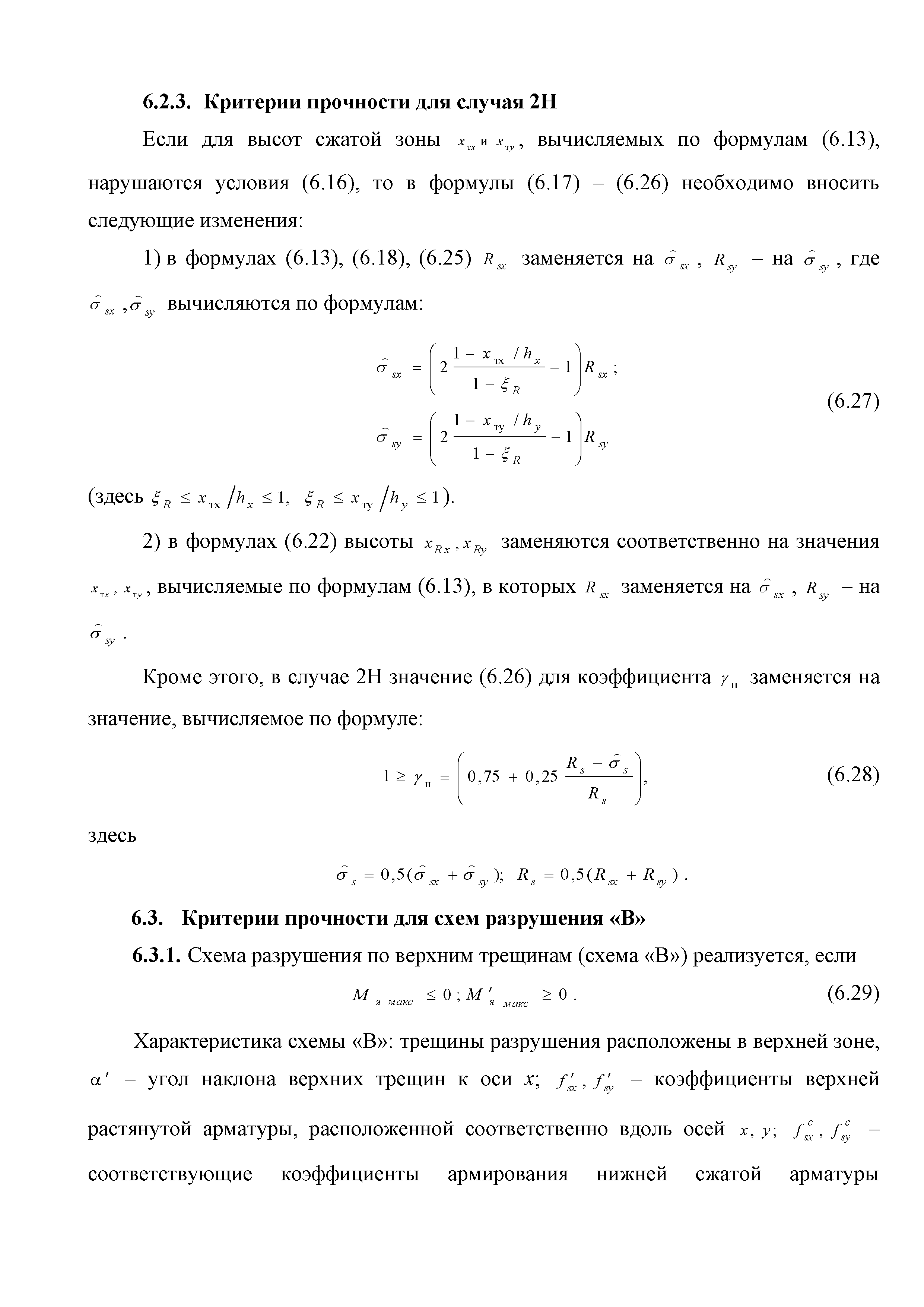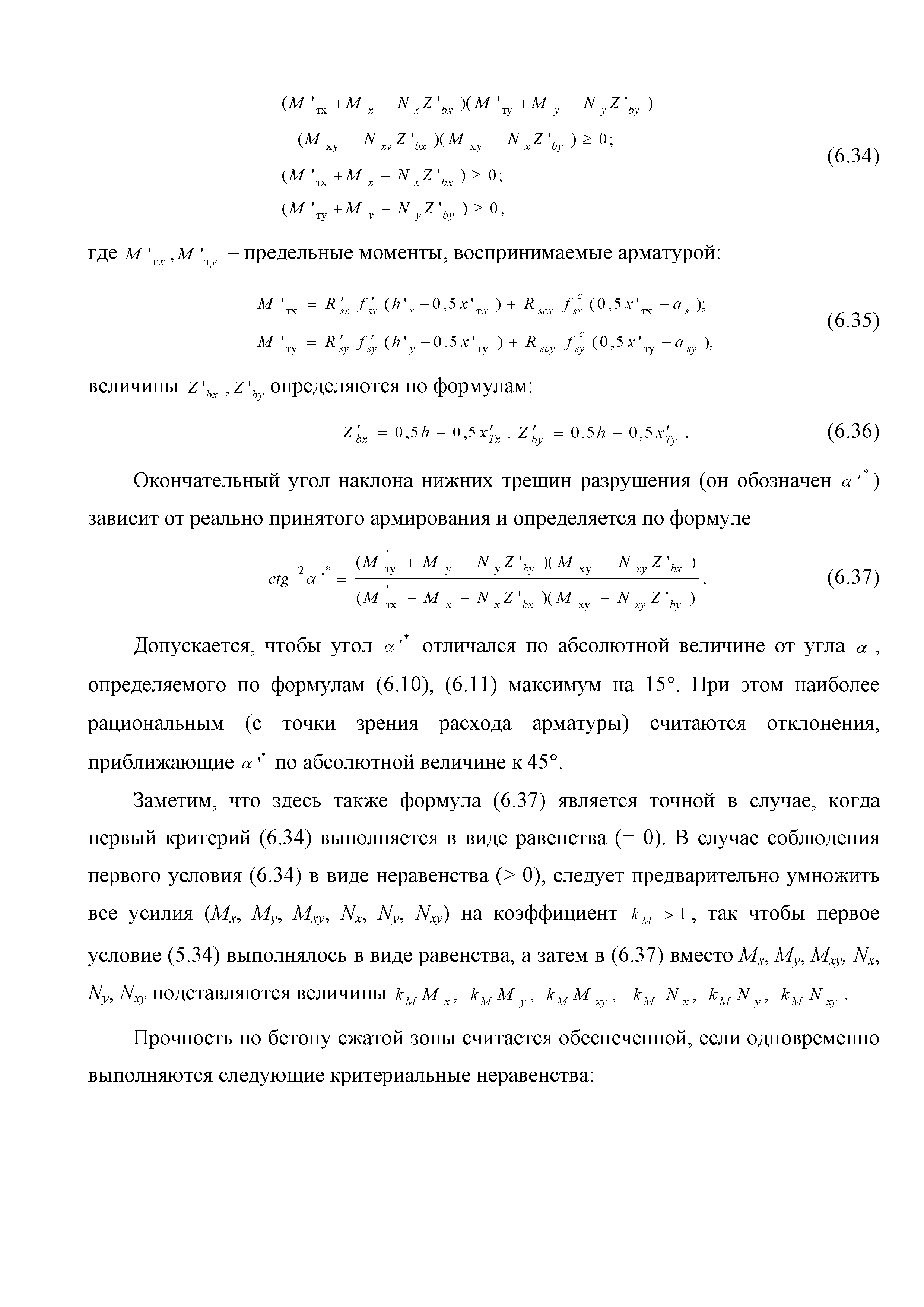 | Оглавление: | Введение 1. Область применения 2. Общие положения 3. Общие принципы проектирования и расчета железобетонных конструкций из высокопрочных тяжелых и мелкозернистых бетонов 4. Определение физико-механических и реологических (усадка, ползучесть) характеристик высокопрочных бетонов 4.1. Общие положения 4.2. Нормативные сопротивления бетона 4.3. Расчетные сопротивления бетона 4.4. Кратковременные деформационные характеристики бетона 4.5. Диаграммы состояния бетона 4.6 Учет деформаций ползучести 4.7. Учет усадки бетона 4.8. Общие требования к арматуре 4.9. Диаграммы состояния арматуры 5. Особенности расчета железобетонных конструкций из высокопрочных бетонов по двум группам предельных состояний 5.1. Общие положения 5.2. Общие условия нелинейной диаграммной модели 5.3. Основные уравнения деформационной диаграммной модели 5.4. Расчет конструкций по прочности (по первой группе предельных состояний) 5.5. Расчет деформаций, перемещений и напряжений конструкций на длительное действие нагрузки (по второй группе предельных состояний) 5.6. Расчет приращений деформаций, перемещений и напряжений конструкций на действие кратковременной нагрузки (по второй групп предельных состояний) 5.7. Определение полных деформаций, перемещений и напряжений от действия кратковременной и длительной нагрузки 5.8. Учет деформаций усадки 6. Общие критерии прочности железобетонных плоских и оболочечных элементов при совместном действии изгибающих и крутящих моментов, нормальных и касательных сил 6.1. Общие положения 6.2. Критерии прочности для схем разрушения "Н" 6.3. Критерии прочности для схем разрушения "В" 6.4. Критерии прочности для случая 1В 6.5. Критерии прочности для случая 2В 6.6. Критерии прочности элементов для схем разрушения "НВ" 6.7. Критерии прочности элементов для схемы разрушения "С" 6.8. Критерий прочности элементов для схемы "С" в случае 1 6.9. Критерии прочности для схемы "С" в случае 2 7. Дополнительные рекомендации по конструированию 7.1. Требования к поперечному и продольному армированию 7.2. Требования к соединениям арматуры внахлест и их расположению 7.3. Требования к механическим соединениям арматуры и их расположению 8. Требования к материалам для производства бетонных смесей тяжелых и мелкозернистых модифицированных бетонов классов В50-В100 Приложение. Основные понятия, термины и определения Приложение. Перечень нормативной документации |