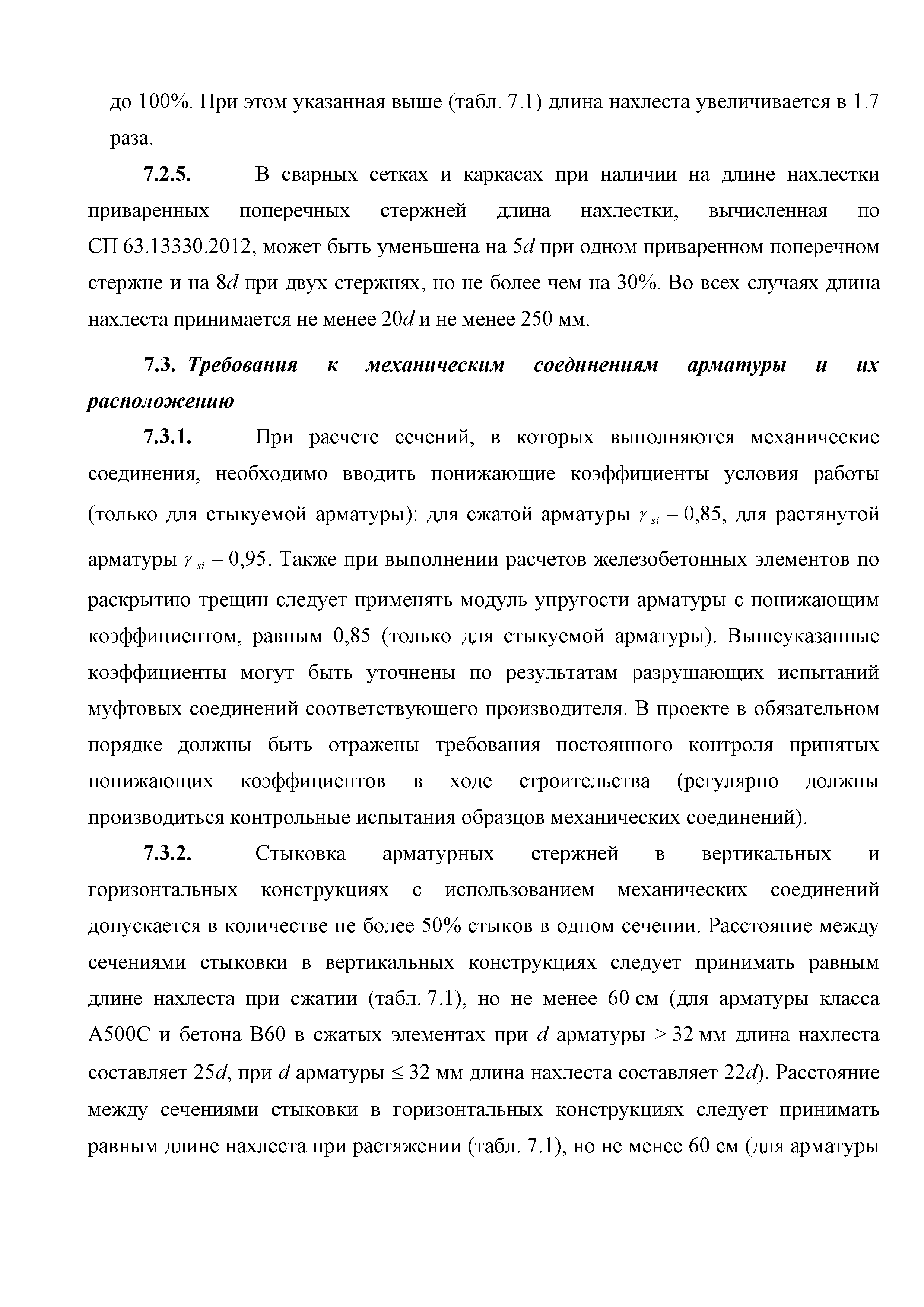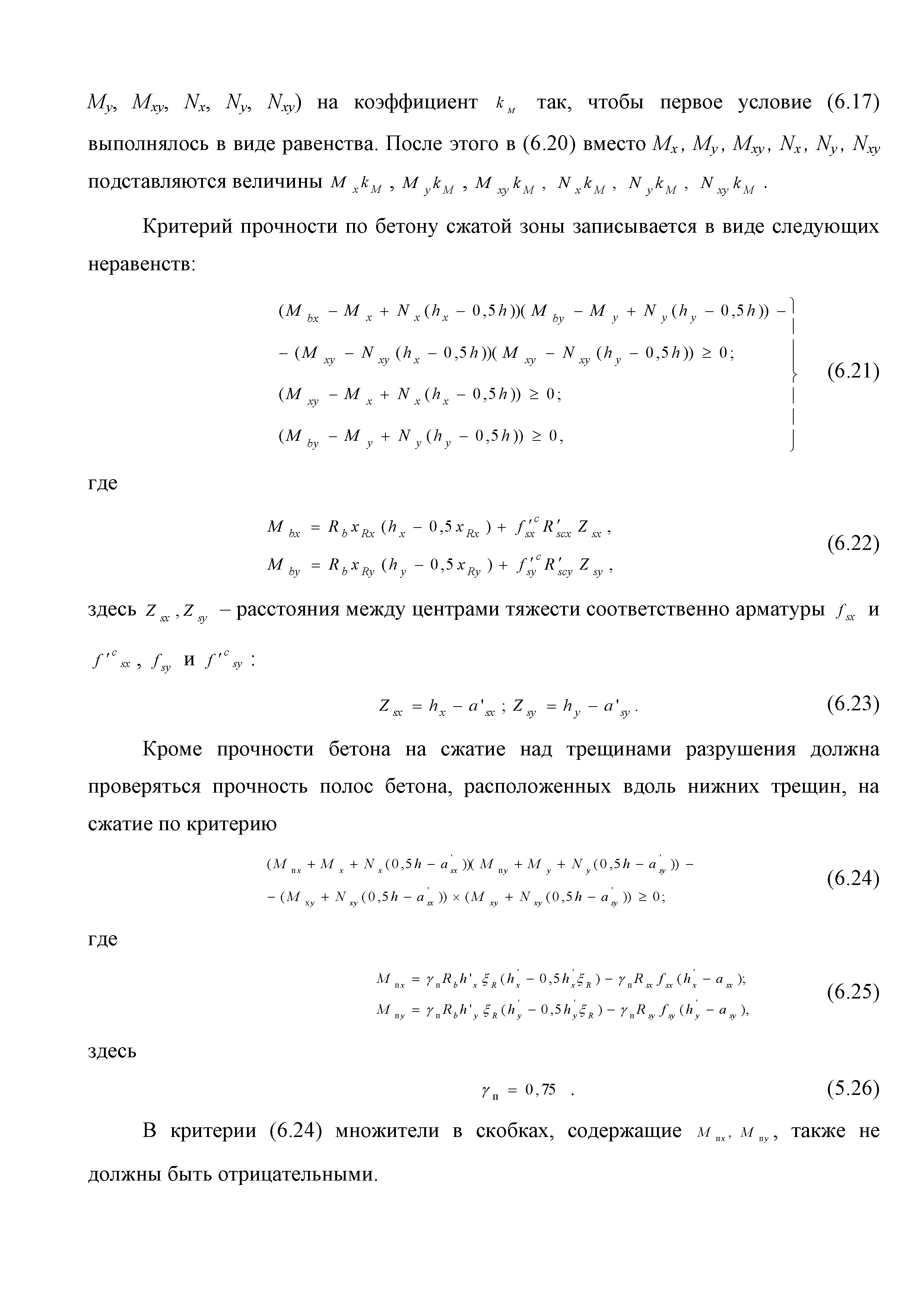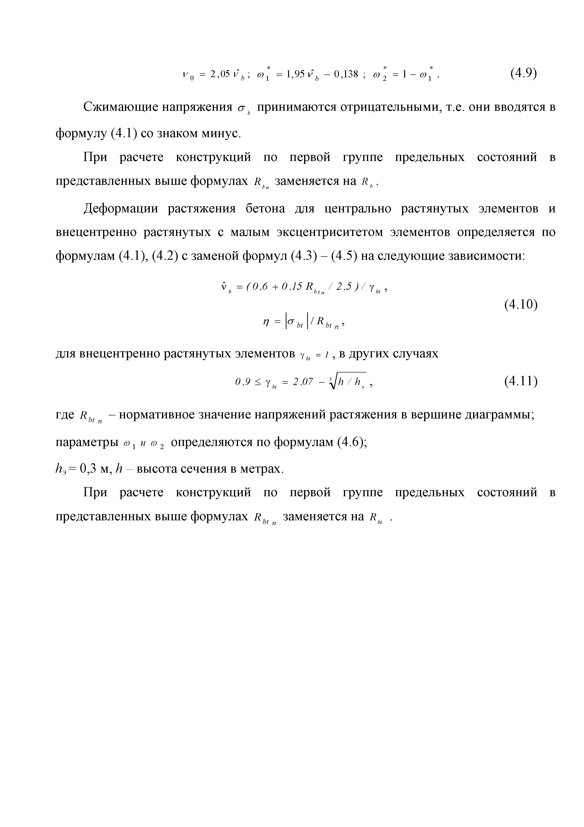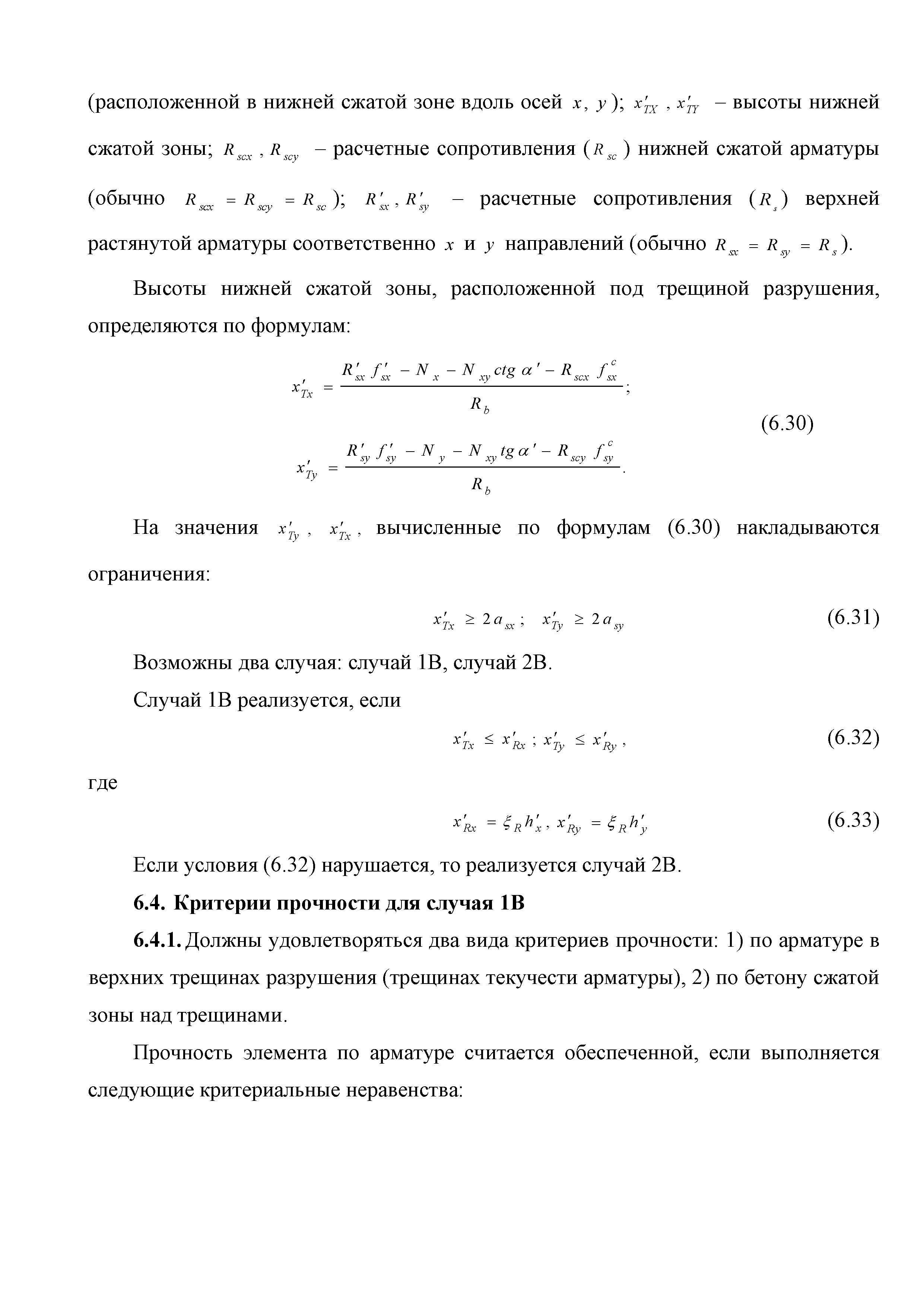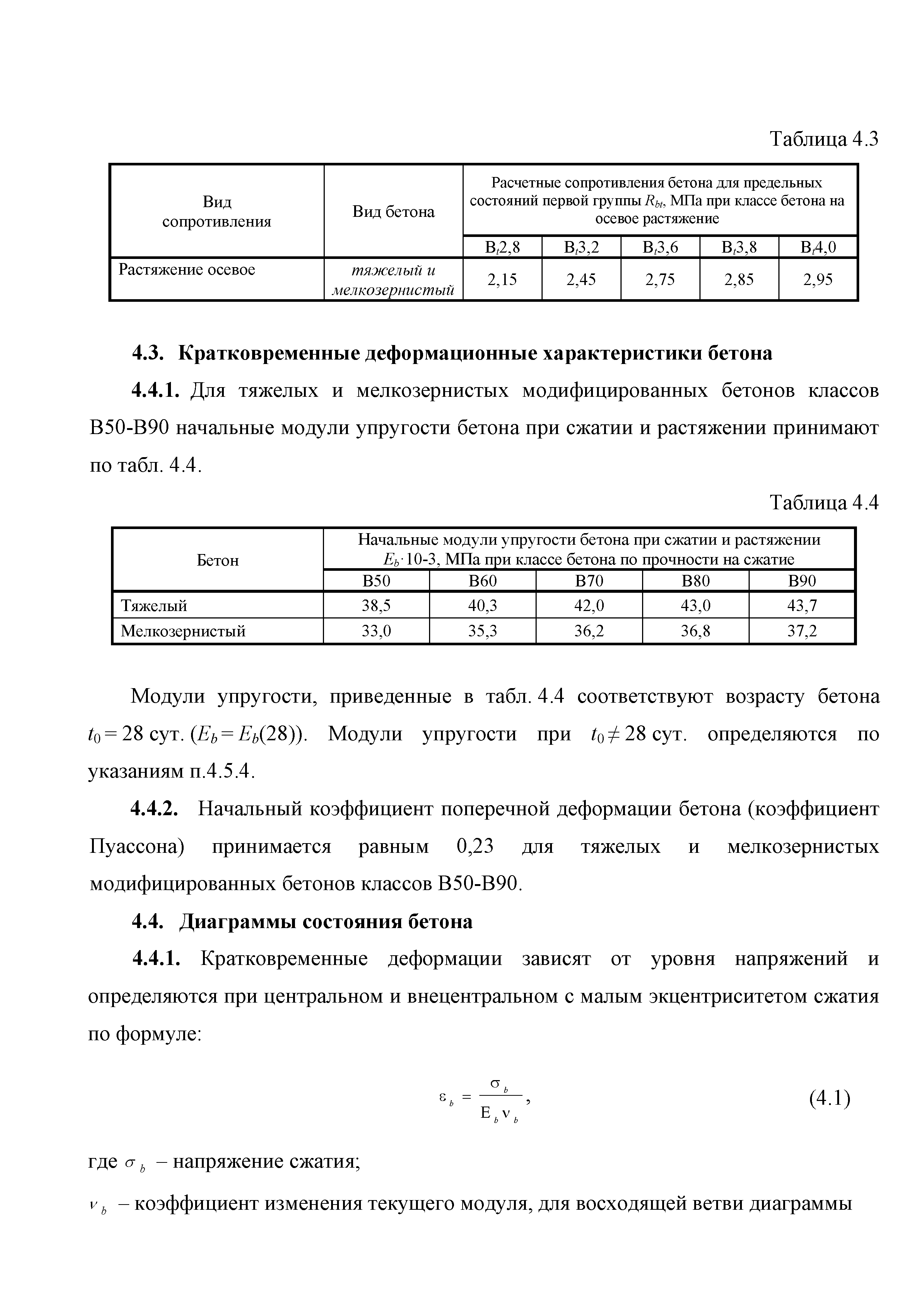 | Оглавление: | Введение 1. Область применения 2. Общие положения 3. Общие принципы проектирования и расчета железобетонных конструкций из высокопрочных тяжелых и мелкозернистых бетонов 4. Определение физико-механических и реологических (усадка, ползучесть) характеристик высокопрочных бетонов 4.1. Общие положения 4.2. Нормативные сопротивления бетона 4.3. Расчетные сопротивления бетона 4.4. Кратковременные деформационные характеристики бетона 4.5. Диаграммы состояния бетона 4.6 Учет деформаций ползучести 4.7. Учет усадки бетона 4.8. Общие требования к арматуре 4.9. Диаграммы состояния арматуры 5. Особенности расчета железобетонных конструкций из высокопрочных бетонов по двум группам предельных состояний 5.1. Общие положения 5.2. Общие условия нелинейной диаграммной модели 5.3. Основные уравнения деформационной диаграммной модели 5.4. Расчет конструкций по прочности (по первой группе предельных состояний) 5.5. Расчет деформаций, перемещений и напряжений конструкций на длительное действие нагрузки (по второй группе предельных состояний) 5.6. Расчет приращений деформаций, перемещений и напряжений конструкций на действие кратковременной нагрузки (по второй групп предельных состояний) 5.7. Определение полных деформаций, перемещений и напряжений от действия кратковременной и длительной нагрузки 5.8. Учет деформаций усадки 6. Общие критерии прочности железобетонных плоских и оболочечных элементов при совместном действии изгибающих и крутящих моментов, нормальных и касательных сил 6.1. Общие положения 6.2. Критерии прочности для схем разрушения "Н" 6.3. Критерии прочности для схем разрушения "В" 6.4. Критерии прочности для случая 1В 6.5. Критерии прочности для случая 2В 6.6. Критерии прочности элементов для схем разрушения "НВ" 6.7. Критерии прочности элементов для схемы разрушения "С" 6.8. Критерий прочности элементов для схемы "С" в случае 1 6.9. Критерии прочности для схемы "С" в случае 2 7. Дополнительные рекомендации по конструированию 7.1. Требования к поперечному и продольному армированию 7.2. Требования к соединениям арматуры внахлест и их расположению 7.3. Требования к механическим соединениям арматуры и их расположению 8. Требования к материалам для производства бетонных смесей тяжелых и мелкозернистых модифицированных бетонов классов В50-В100 Приложение. Основные понятия, термины и определения Приложение. Перечень нормативной документации |