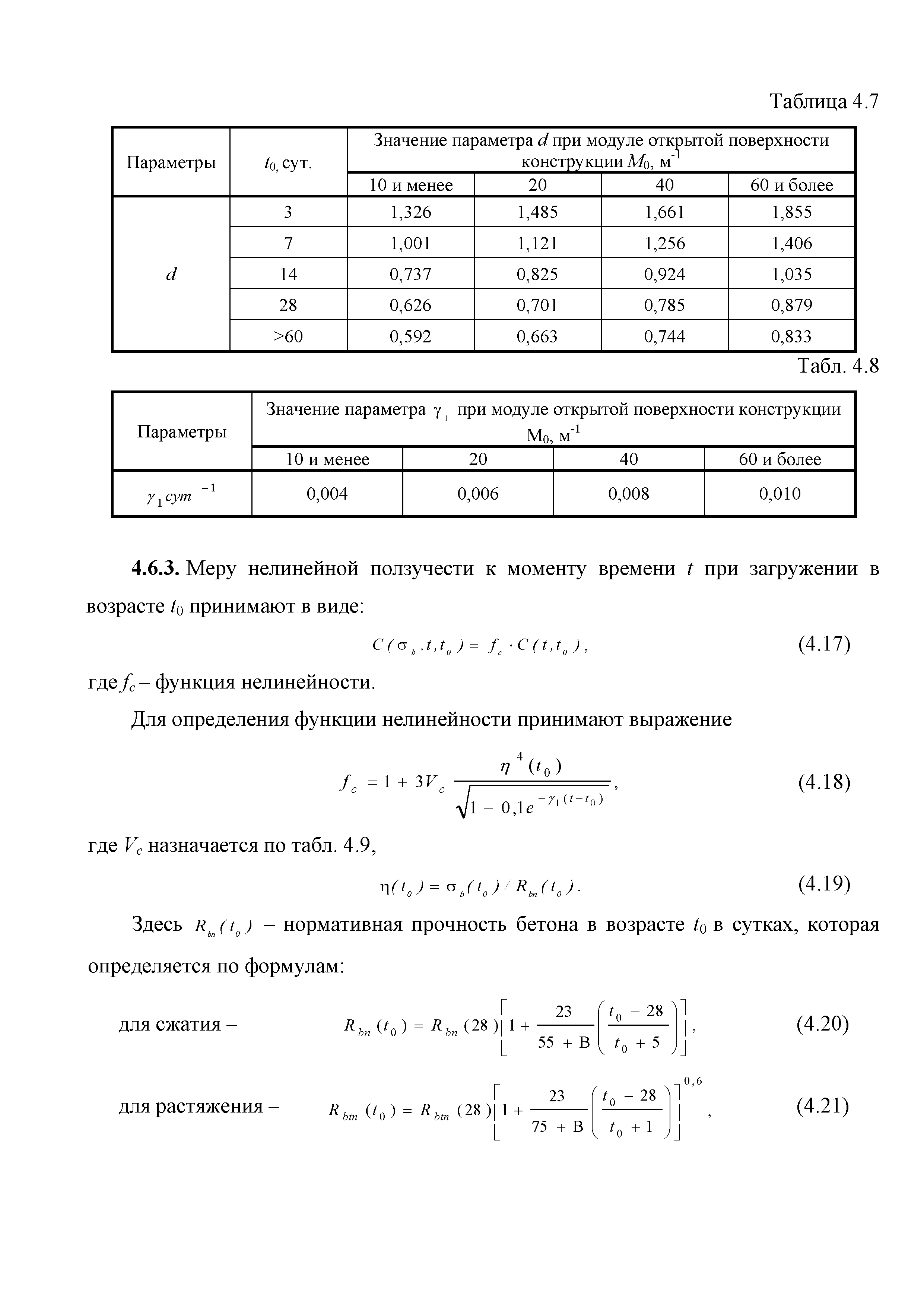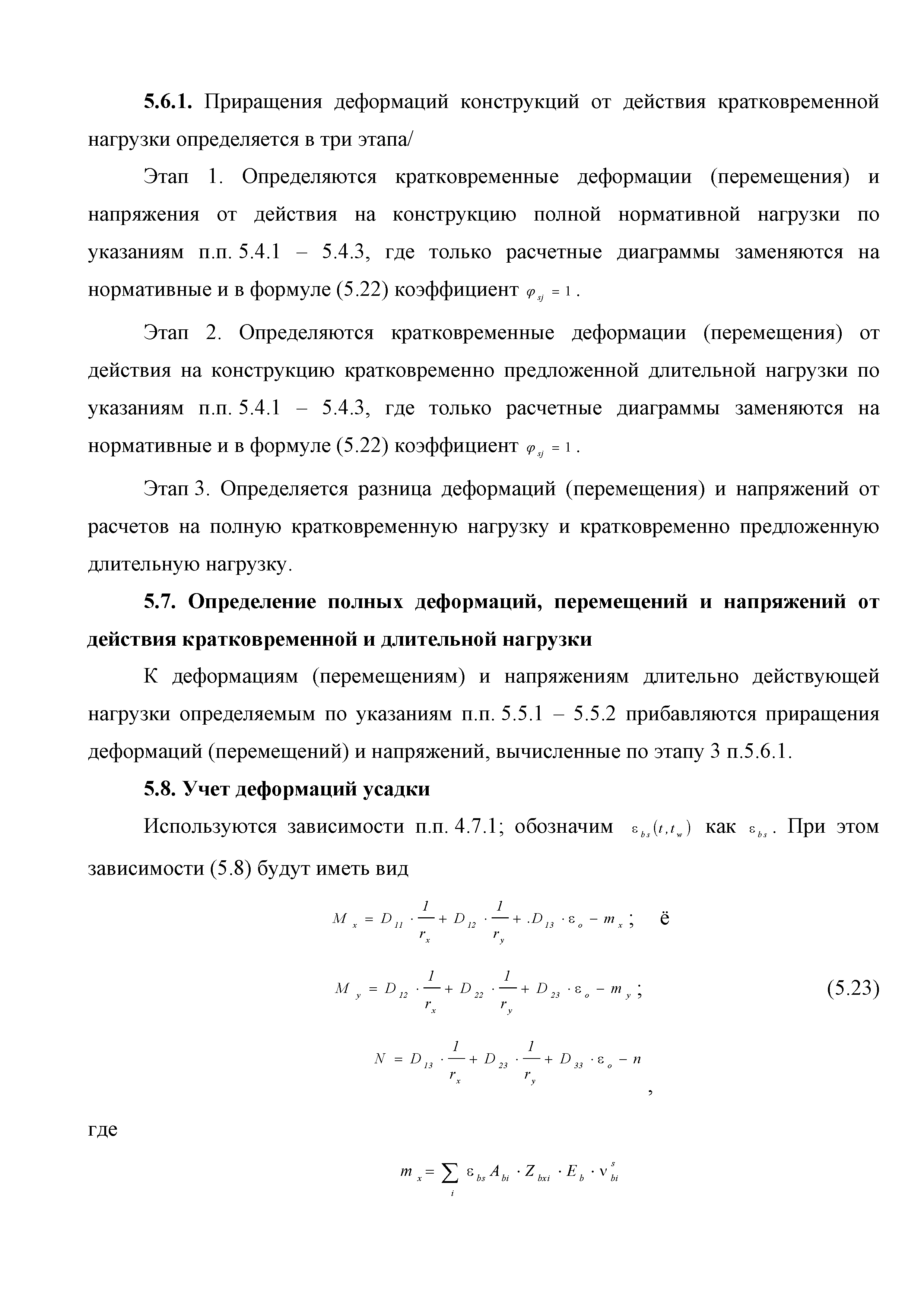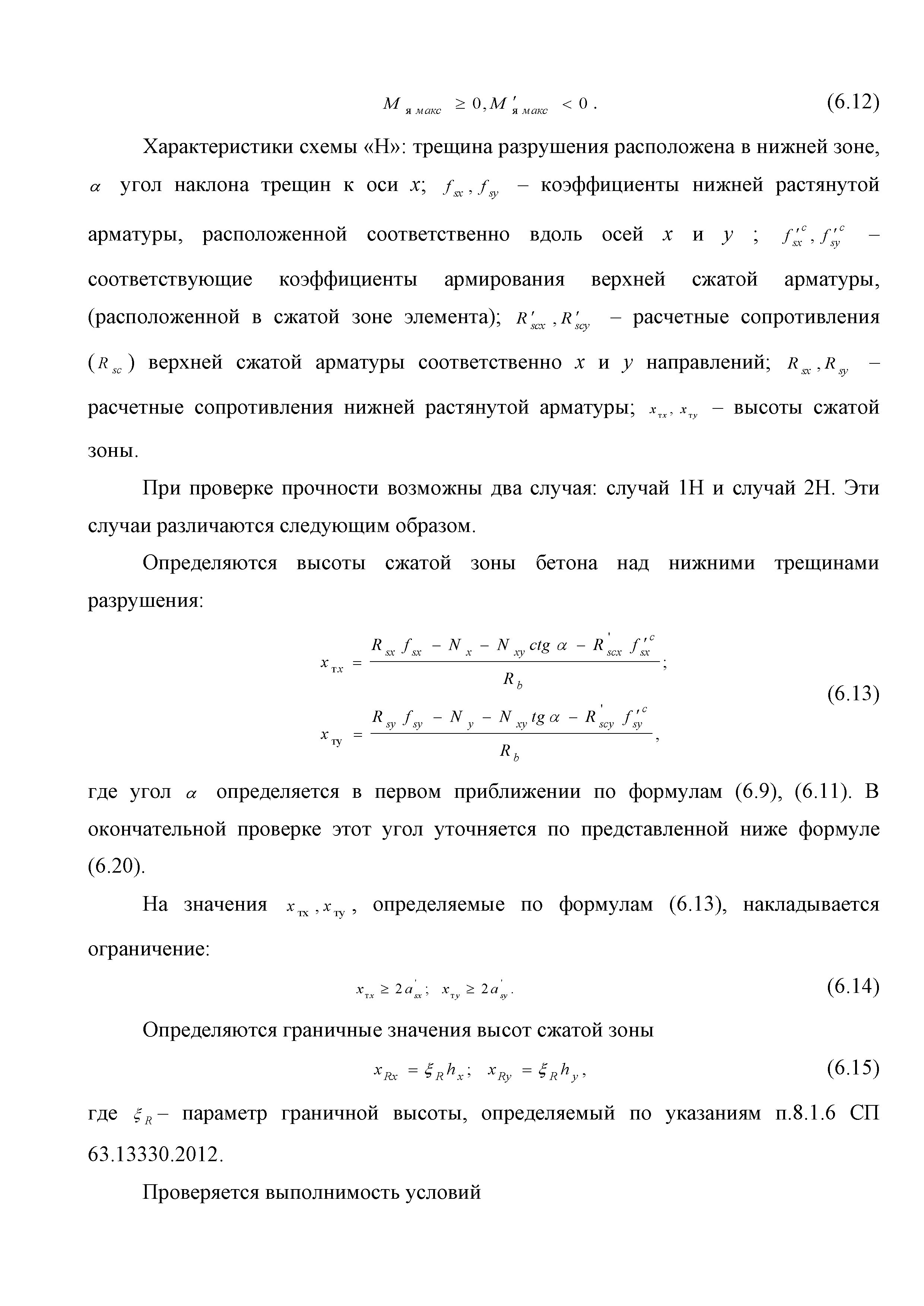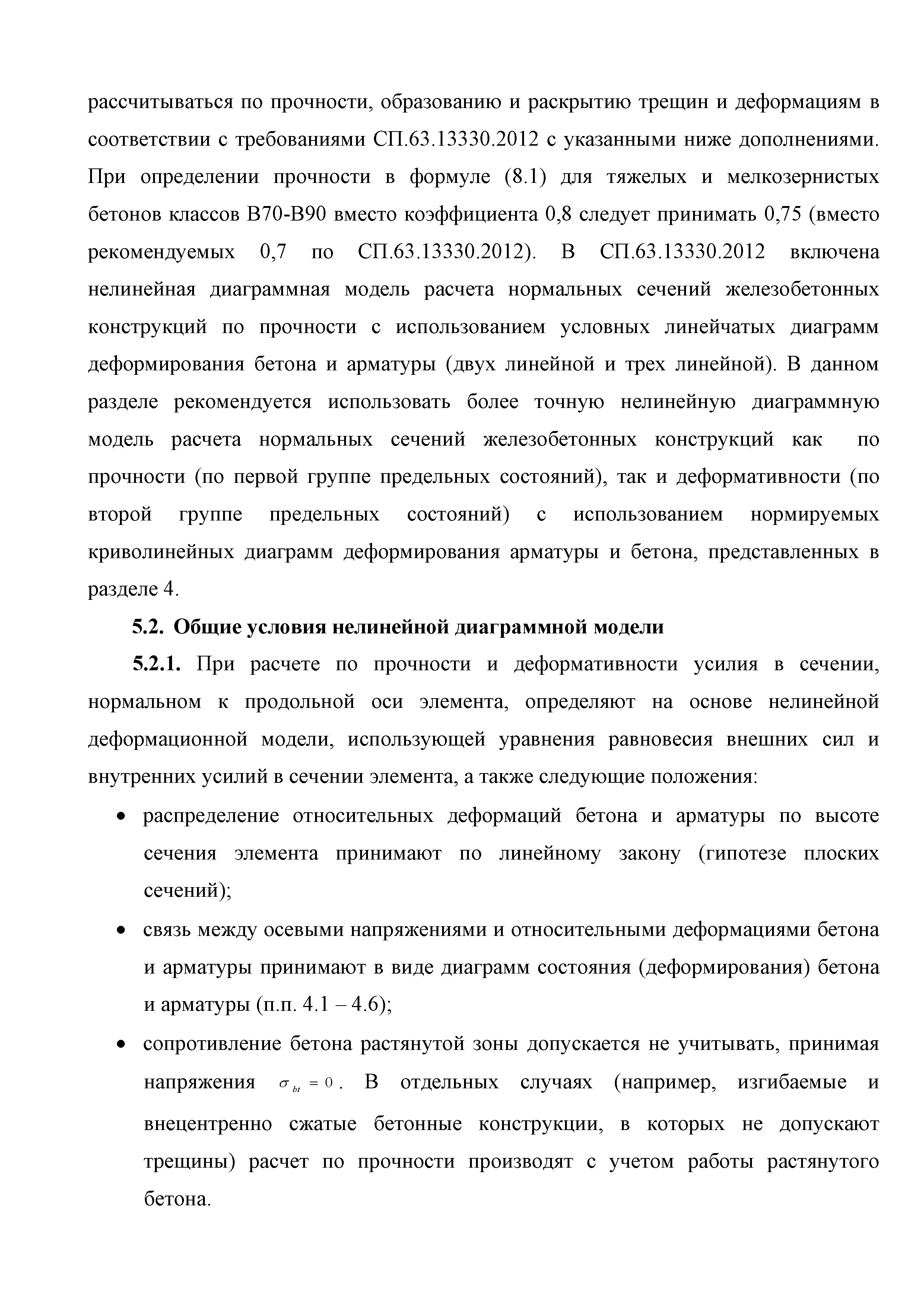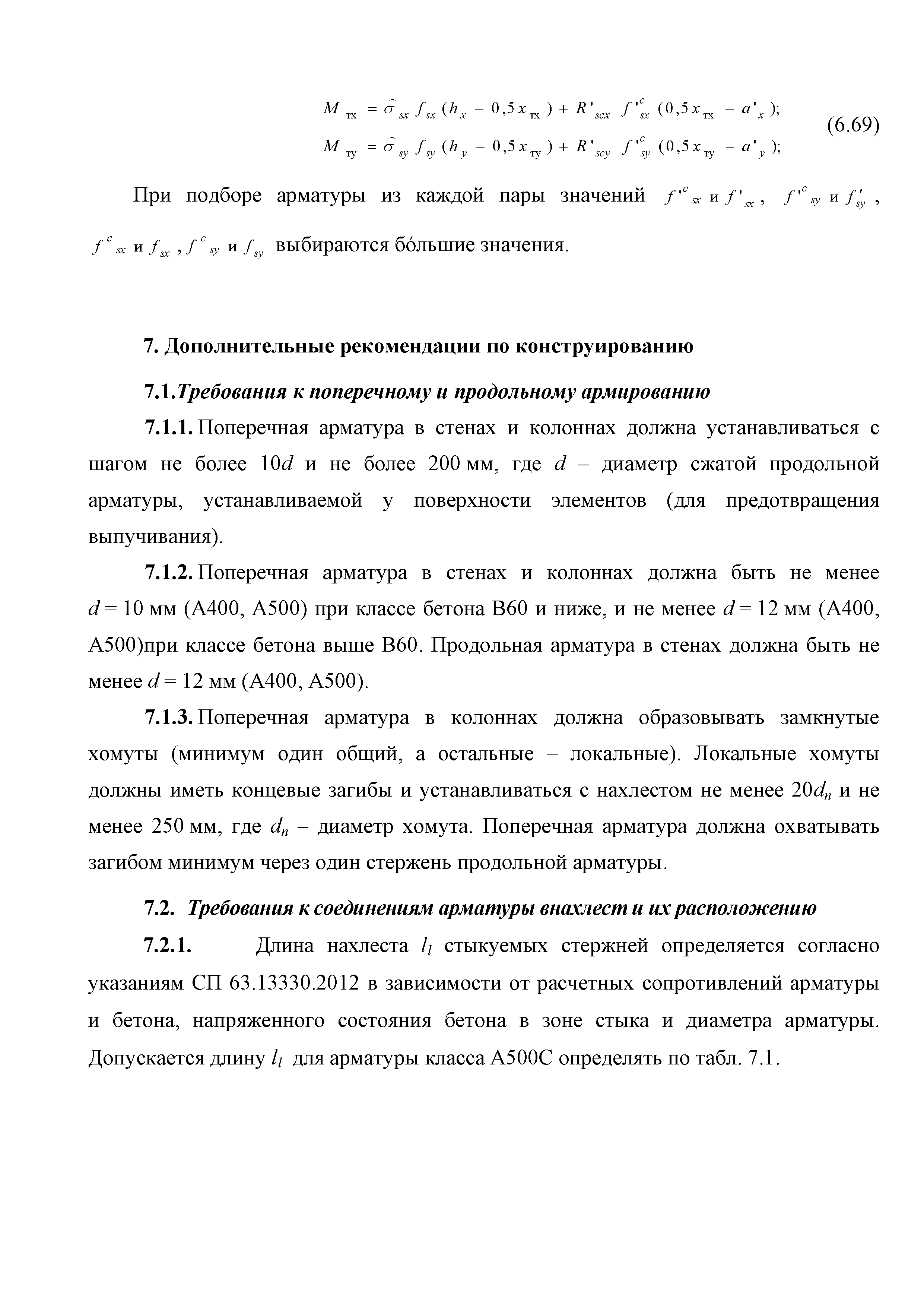| Оглавление: | Введение 1. Область применения 2. Общие положения 3. Общие принципы проектирования и расчета железобетонных конструкций из высокопрочных тяжелых и мелкозернистых бетонов 4. Определение физико-механических и реологических (усадка, ползучесть) характеристик высокопрочных бетонов 4.1. Общие положения 4.2. Нормативные сопротивления бетона 4.3. Расчетные сопротивления бетона 4.4. Кратковременные деформационные характеристики бетона 4.5. Диаграммы состояния бетона 4.6 Учет деформаций ползучести 4.7. Учет усадки бетона 4.8. Общие требования к арматуре 4.9. Диаграммы состояния арматуры 5. Особенности расчета железобетонных конструкций из высокопрочных бетонов по двум группам предельных состояний 5.1. Общие положения 5.2. Общие условия нелинейной диаграммной модели 5.3. Основные уравнения деформационной диаграммной модели 5.4. Расчет конструкций по прочности (по первой группе предельных состояний) 5.5. Расчет деформаций, перемещений и напряжений конструкций на длительное действие нагрузки (по второй группе предельных состояний) 5.6. Расчет приращений деформаций, перемещений и напряжений конструкций на действие кратковременной нагрузки (по второй групп предельных состояний) 5.7. Определение полных деформаций, перемещений и напряжений от действия кратковременной и длительной нагрузки 5.8. Учет деформаций усадки 6. Общие критерии прочности железобетонных плоских и оболочечных элементов при совместном действии изгибающих и крутящих моментов, нормальных и касательных сил 6.1. Общие положения 6.2. Критерии прочности для схем разрушения "Н" 6.3. Критерии прочности для схем разрушения "В" 6.4. Критерии прочности для случая 1В 6.5. Критерии прочности для случая 2В 6.6. Критерии прочности элементов для схем разрушения "НВ" 6.7. Критерии прочности элементов для схемы разрушения "С" 6.8. Критерий прочности элементов для схемы "С" в случае 1 6.9. Критерии прочности для схемы "С" в случае 2 7. Дополнительные рекомендации по конструированию 7.1. Требования к поперечному и продольному армированию 7.2. Требования к соединениям арматуры внахлест и их расположению 7.3. Требования к механическим соединениям арматуры и их расположению 8. Требования к материалам для производства бетонных смесей тяжелых и мелкозернистых модифицированных бетонов классов В50-В100 Приложение. Основные понятия, термины и определения Приложение. Перечень нормативной документации |
