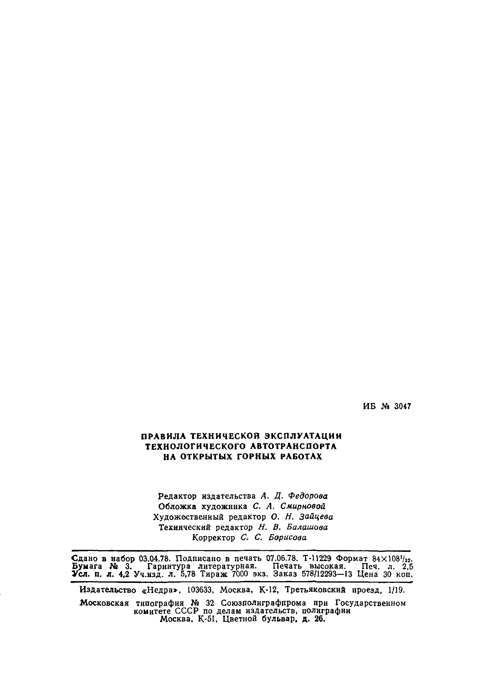 | Название рус.: | Правила технической эксплуатации технологического автотранспорта на открытых горных работах |