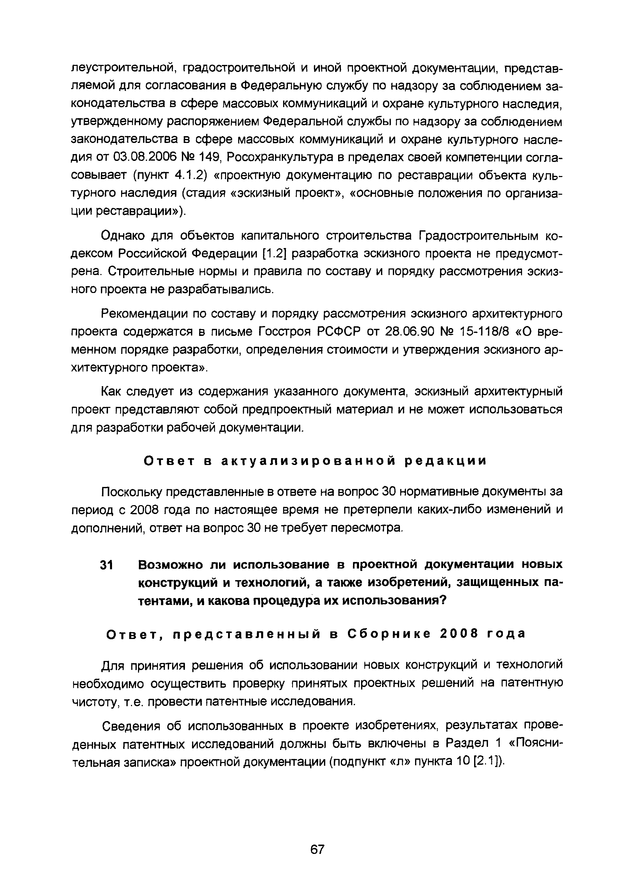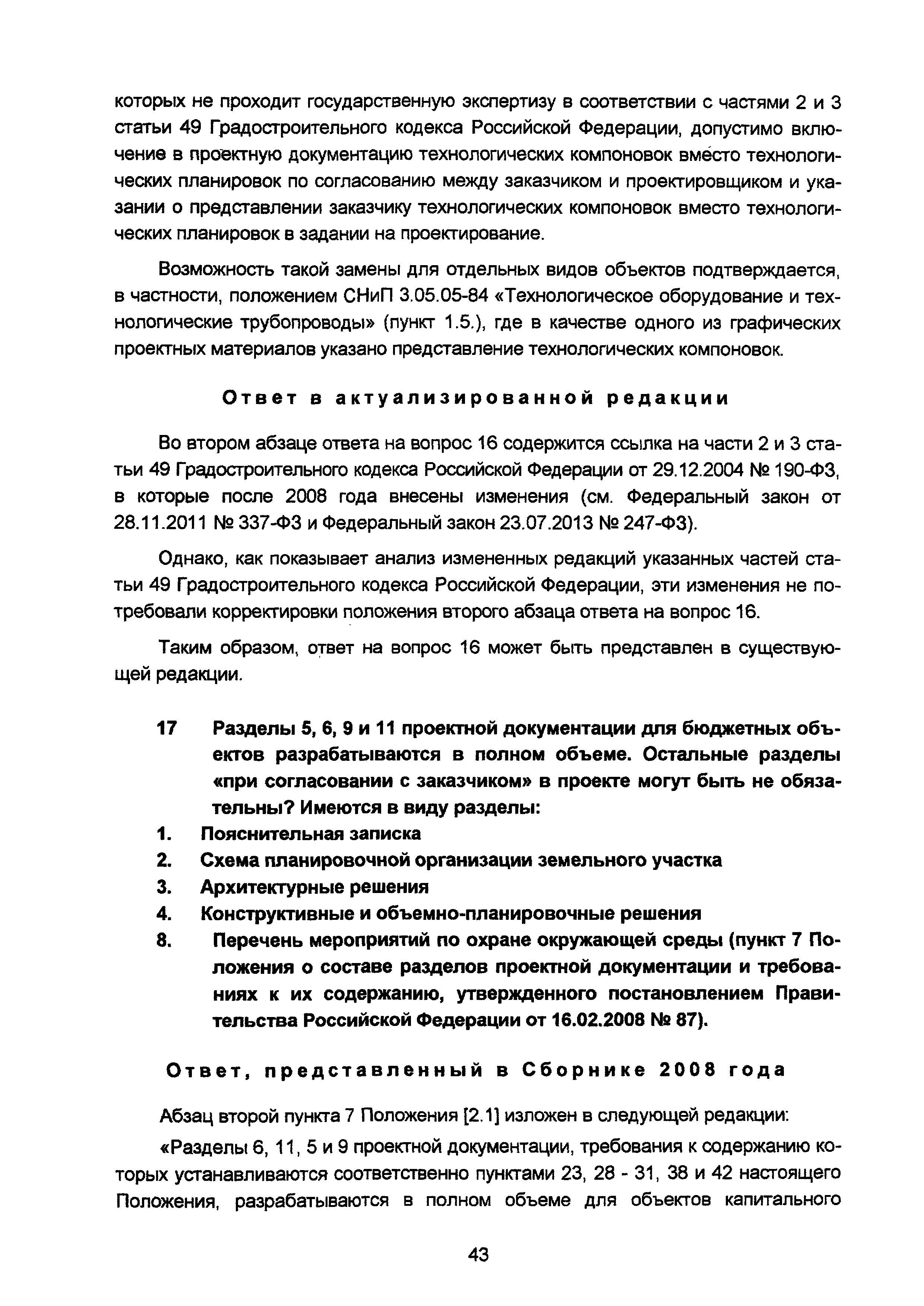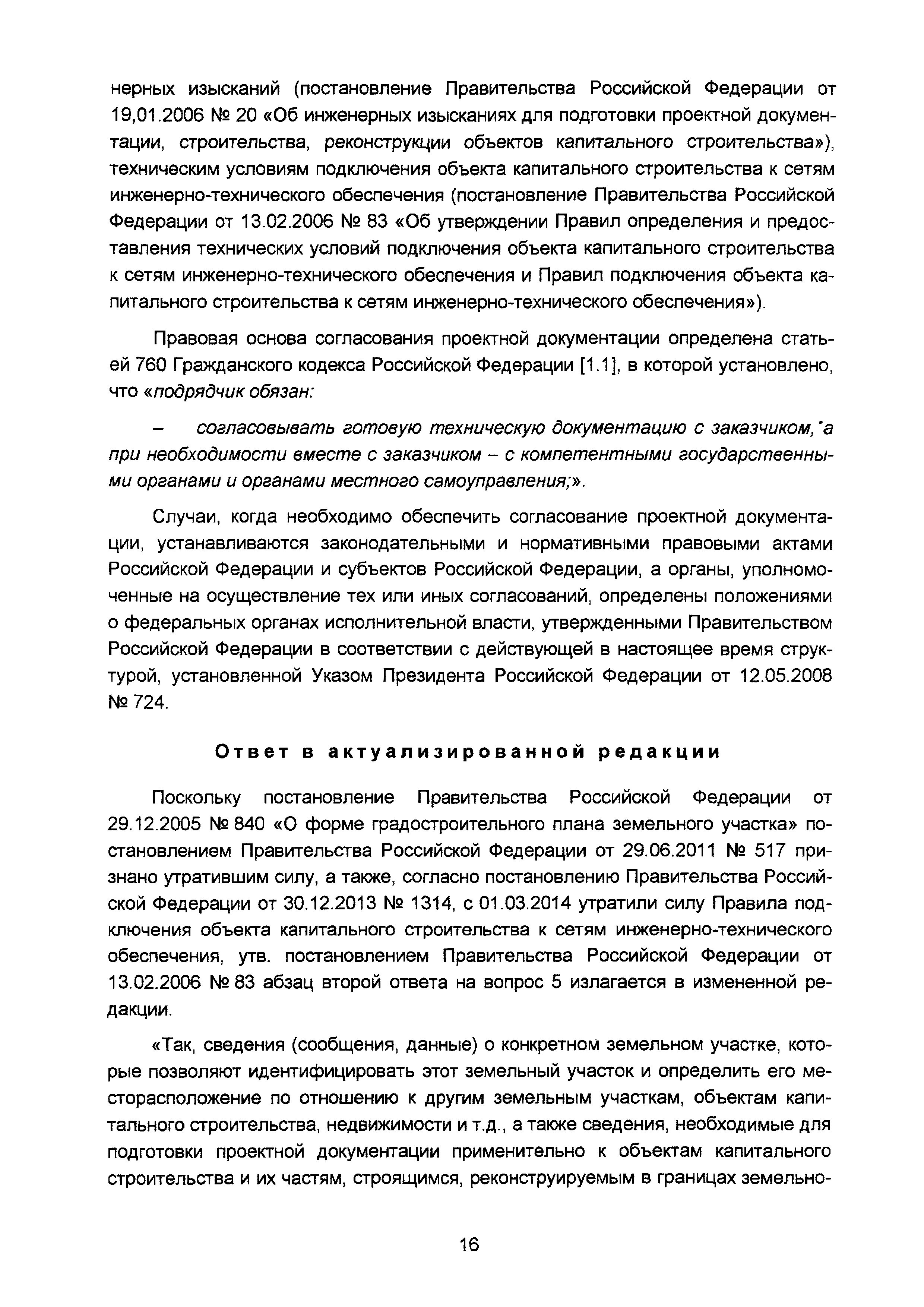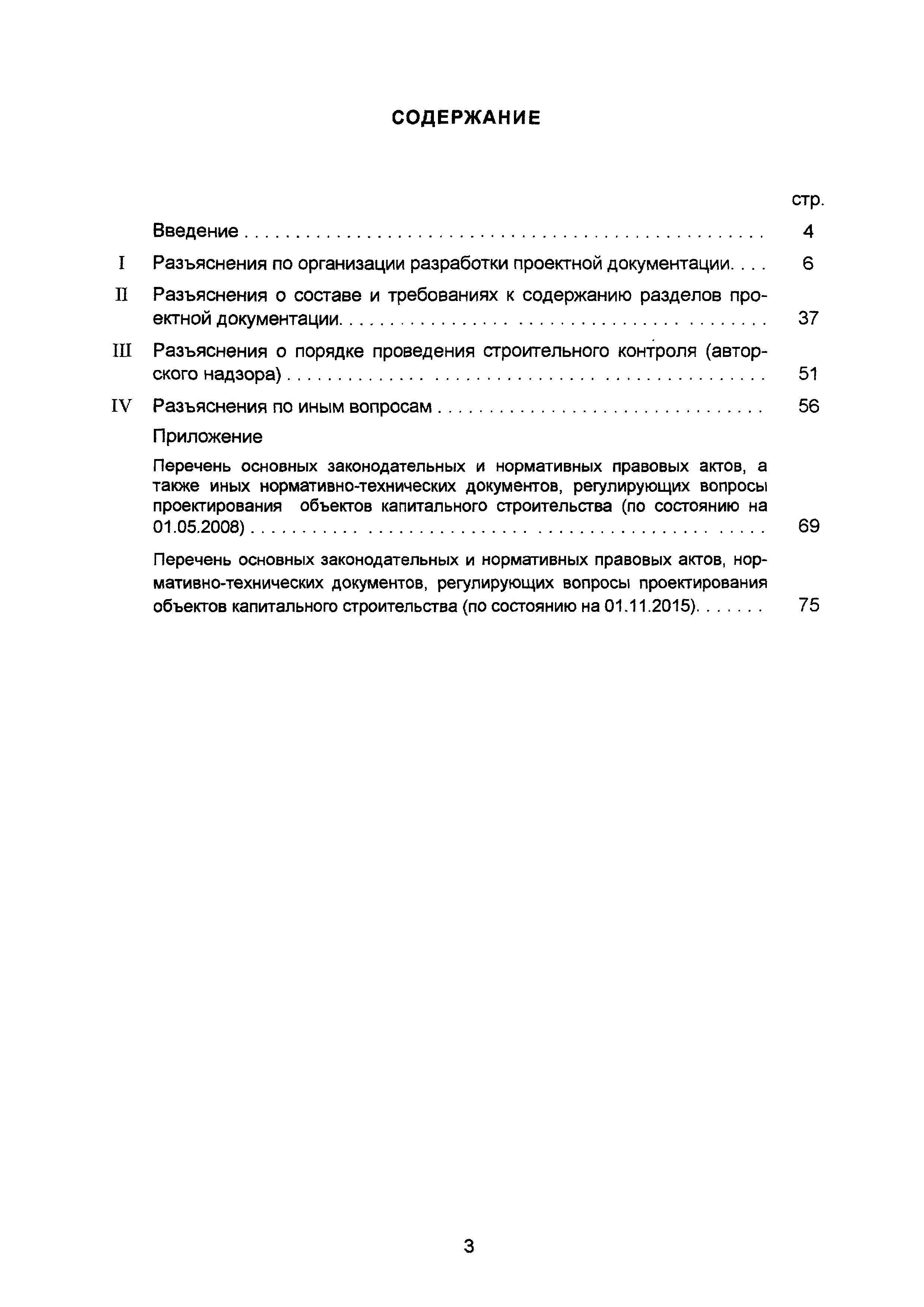 | Оглавление: | Введение I Разъяснения по организации разработки проектной документации II Разъяснения о составе и требованиях к содержанию разделов проектной документации III Разъяснения о порядке проведения строительного контроля (авторского надзора) IV Разъяснения по иным вопросам Приложение. Перечень основных законодательных и нормативных правовых актов, а также иных нормативно-технических документов, регулирующих вопросы проектирования объектов капитального строительства (по состоянию на 01.05.2008) Приложение Перечень основных законодательных и нормативных правовых актов, нормативно-технических документов, регулирующих вопросы проектирования объектов капитального строительства (по состоянию на 01.11.2015) |