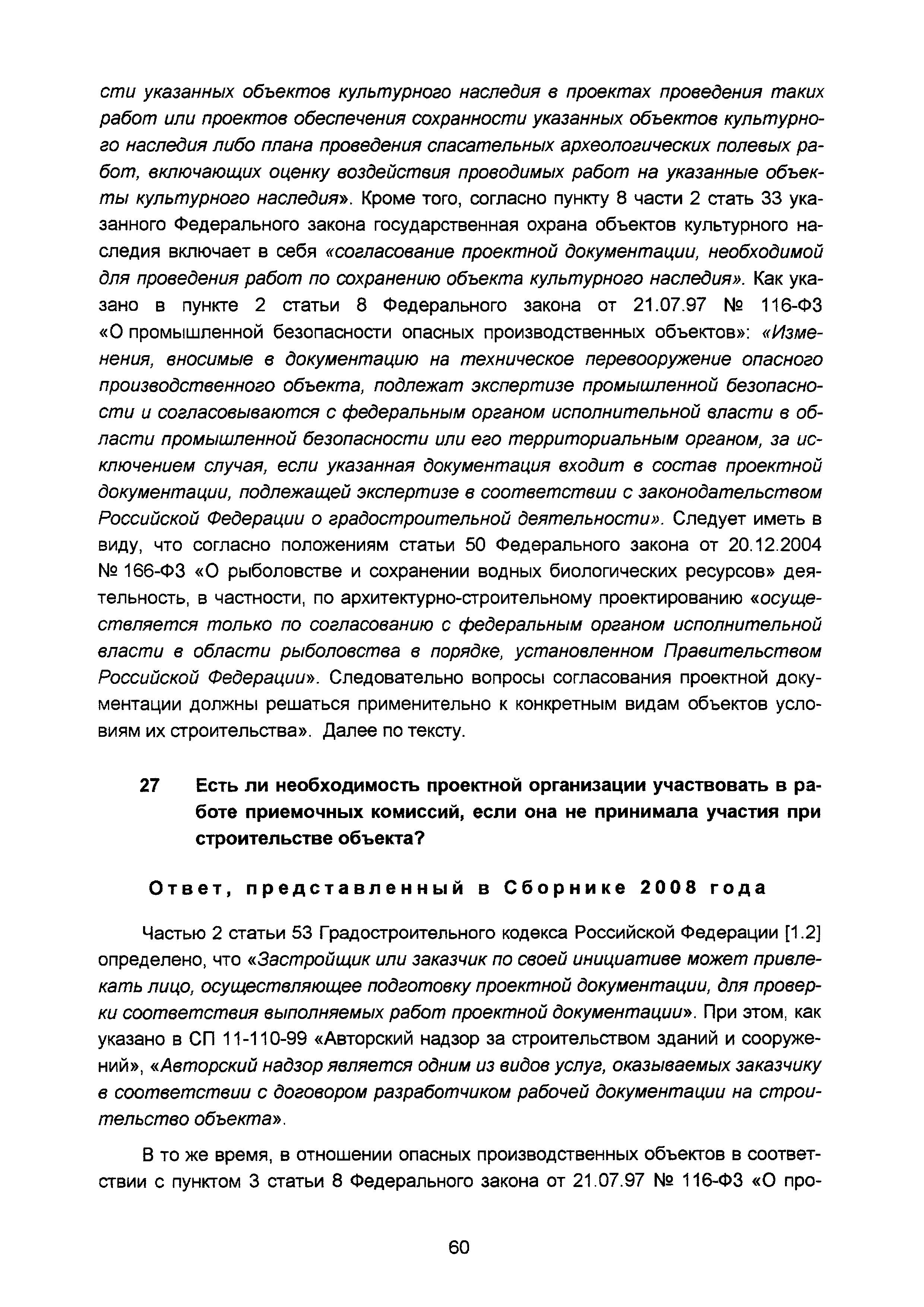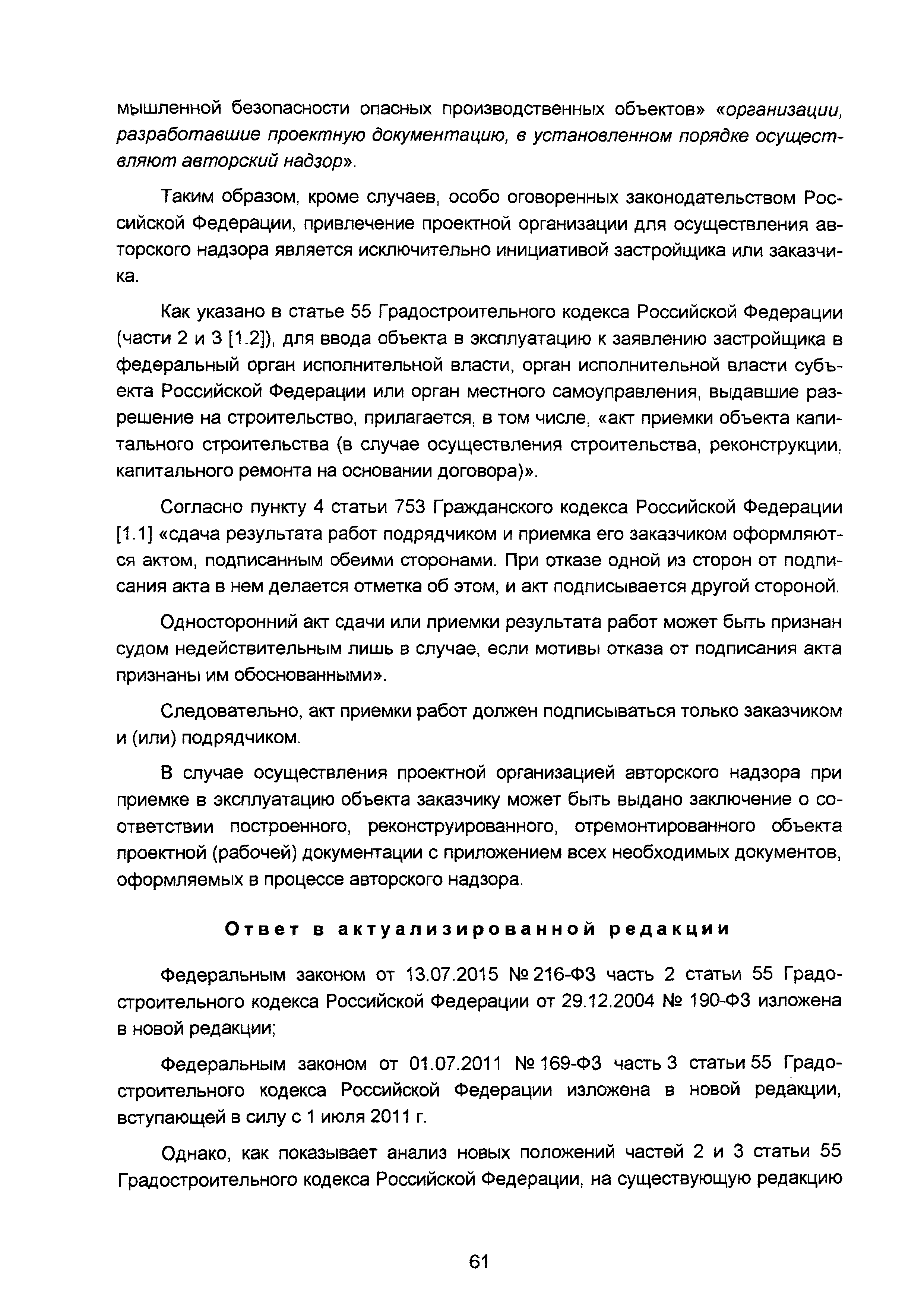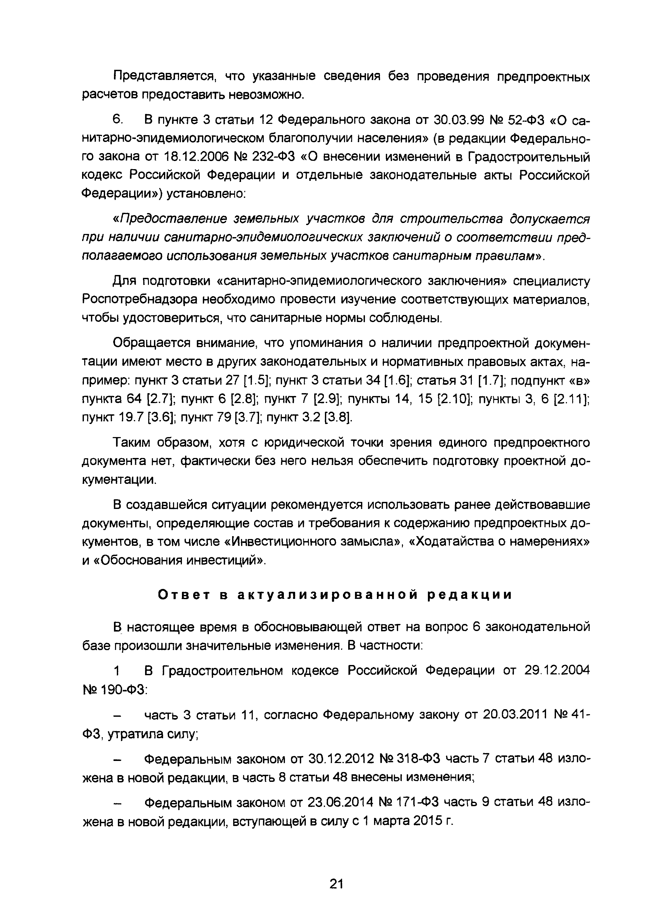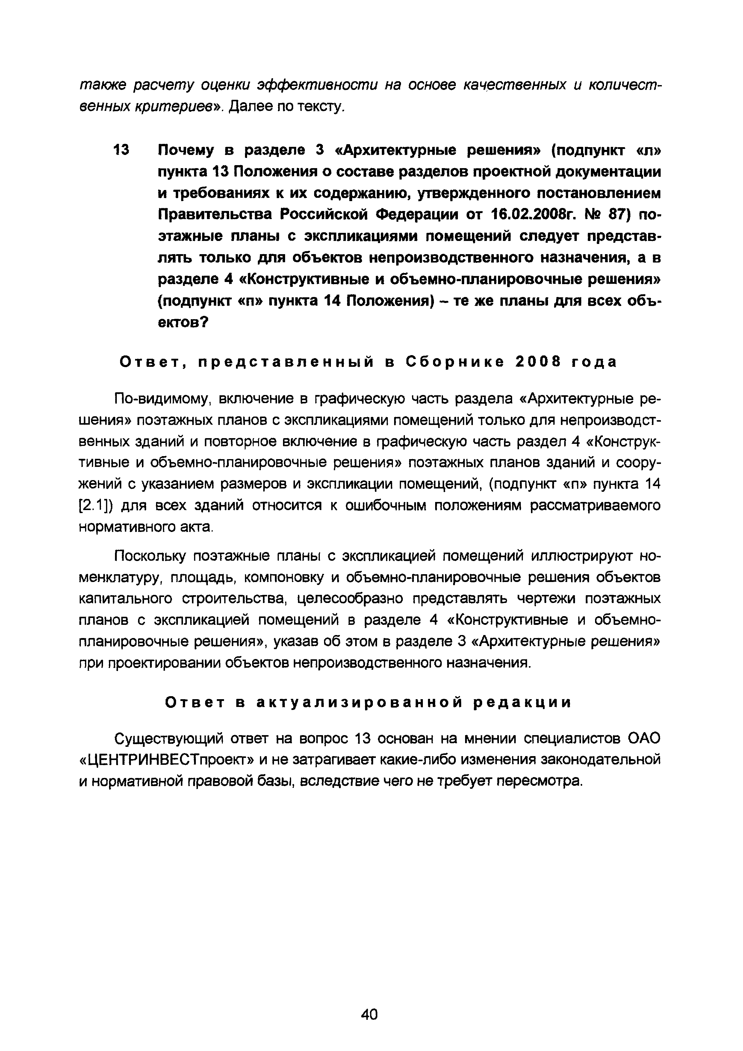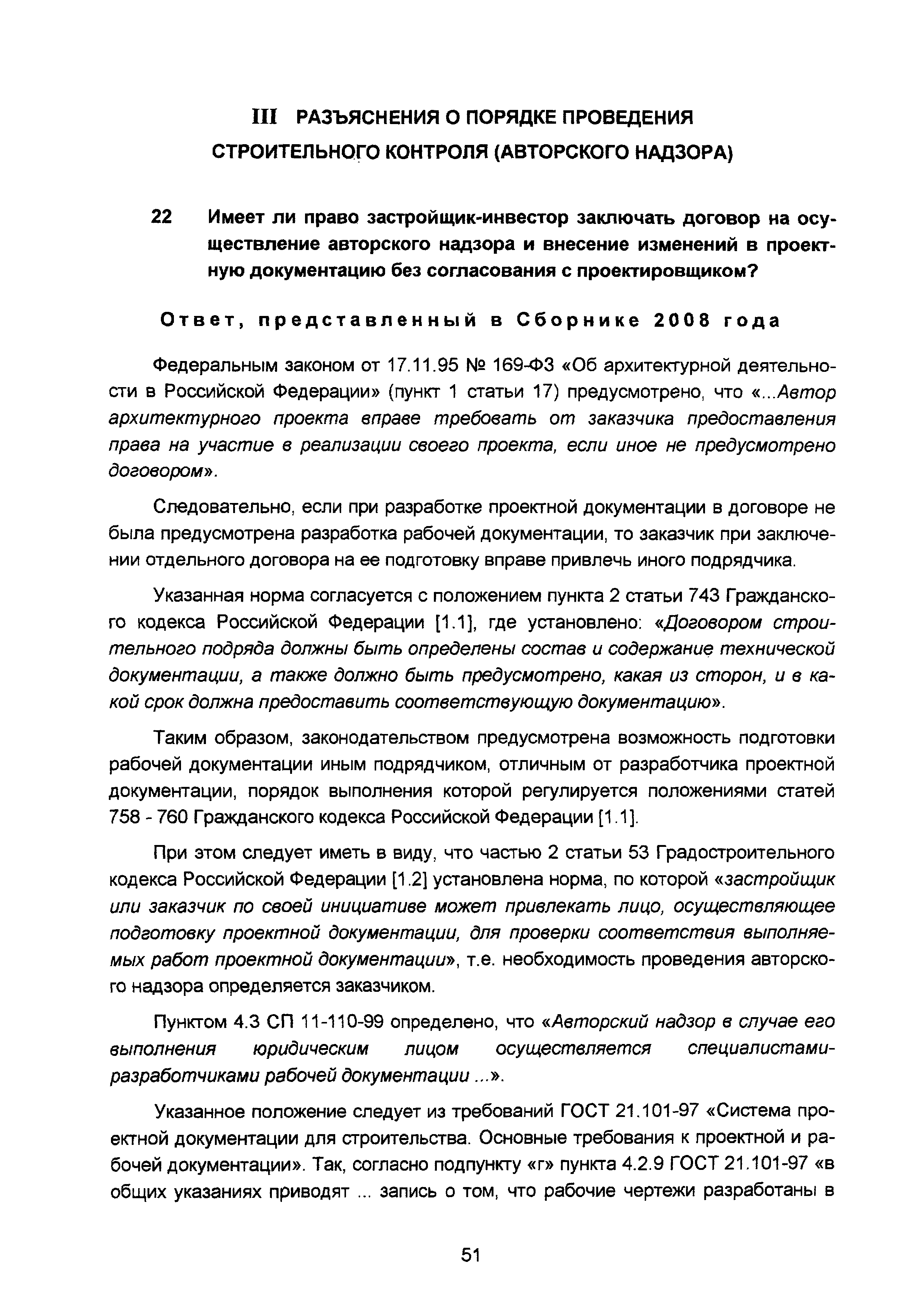 | Оглавление: | Введение I Разъяснения по организации разработки проектной документации II Разъяснения о составе и требованиях к содержанию разделов проектной документации III Разъяснения о порядке проведения строительного контроля (авторского надзора) IV Разъяснения по иным вопросам Приложение. Перечень основных законодательных и нормативных правовых актов, а также иных нормативно-технических документов, регулирующих вопросы проектирования объектов капитального строительства (по состоянию на 01.05.2008) Приложение Перечень основных законодательных и нормативных правовых актов, нормативно-технических документов, регулирующих вопросы проектирования объектов капитального строительства (по состоянию на 01.11.2015) |