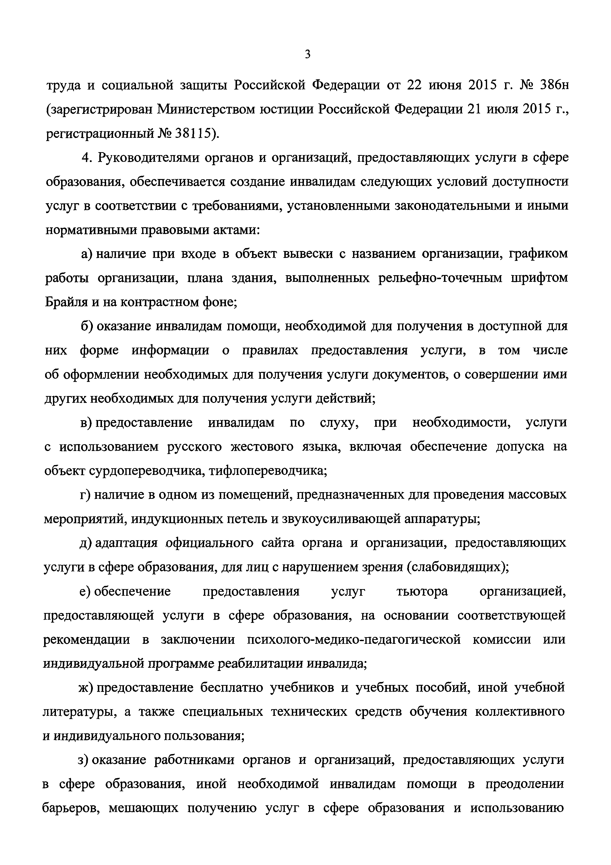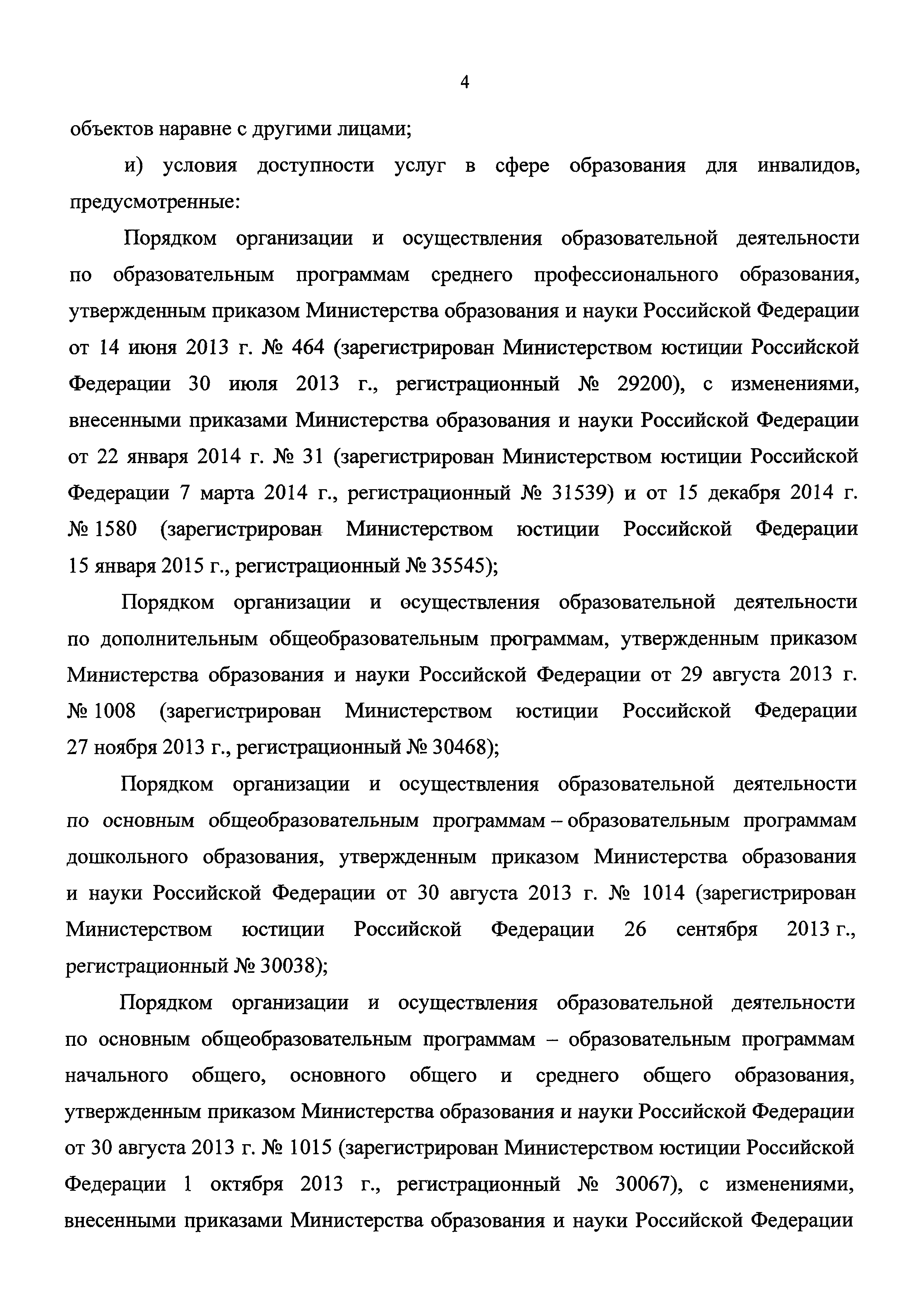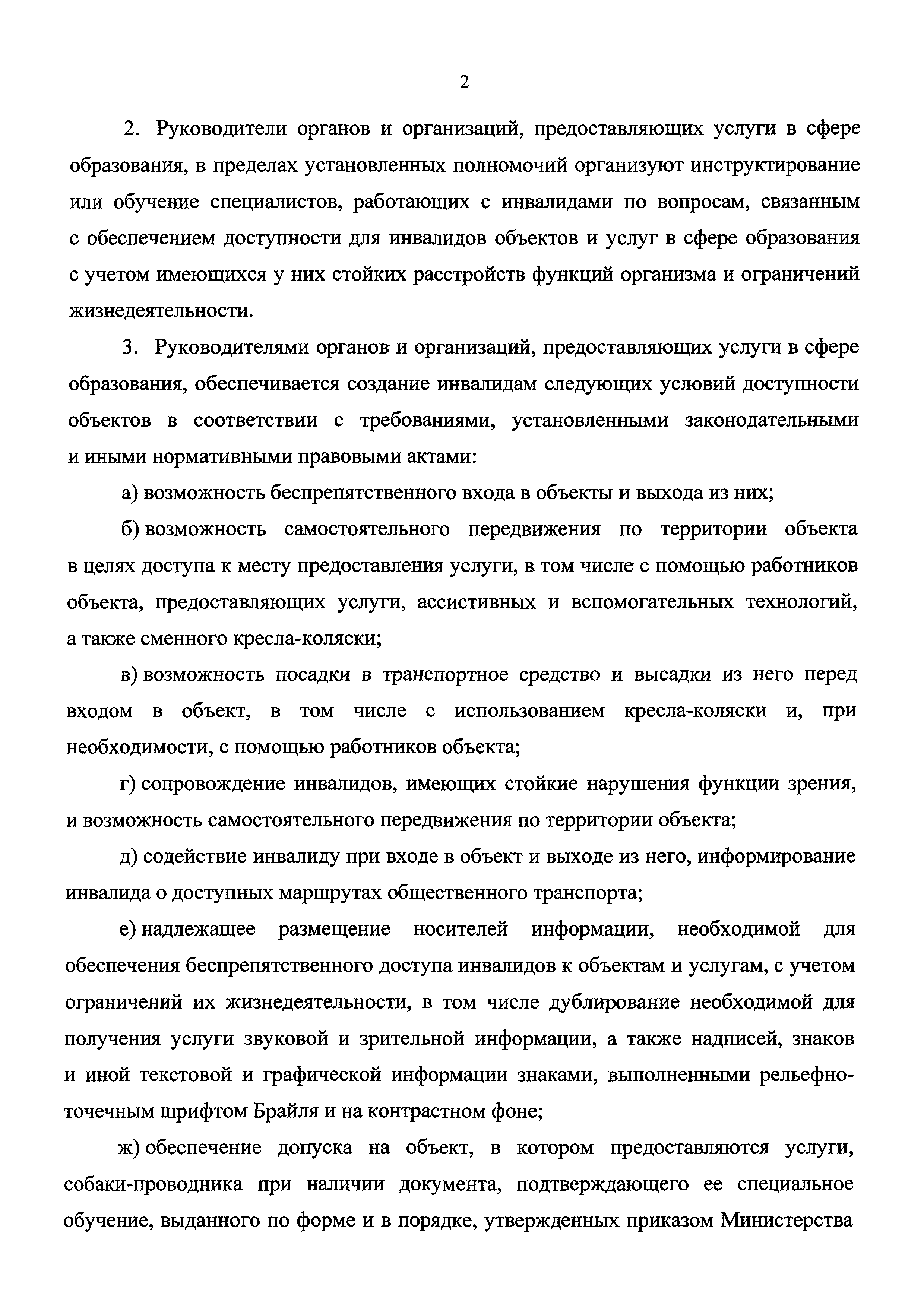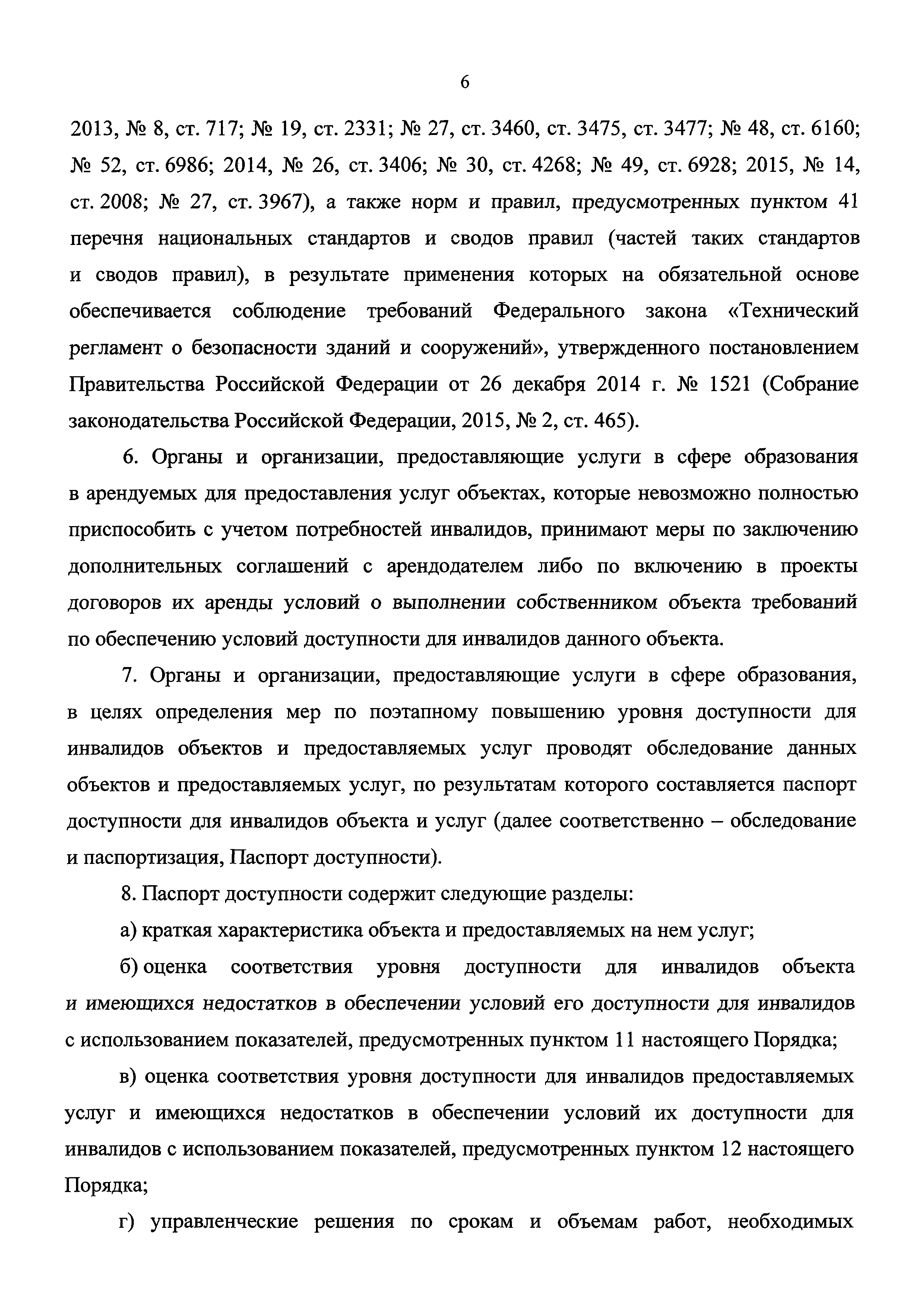 | Область применения: | Порядок определяет правила обеспечения условий доступности для инвалидов объектов (административные здания, строения, сооружения и помещения) Министерства образования и науки Российской Федерации, Федеральной службы по надзору в сфере образования и науки, Федерального агентства по делам молодежи, органов государственной власти субъектов РФ, осуществляющих государственное управление в сфере образования, органов местного самоуправления, осуществляющих управление в сфере образования, подведомственных организаций; услуг в сфере образования, предоставляемых органами и организациями в соответствии с Федеральным законом от 27 июля 2010 г. № 210-ФЗ, а также оказания инвалидам при этом необходимой помощи в преодолении барьеров, мешающих получению услуг в сфере образования и использованию объектов наравне с другими лицами |