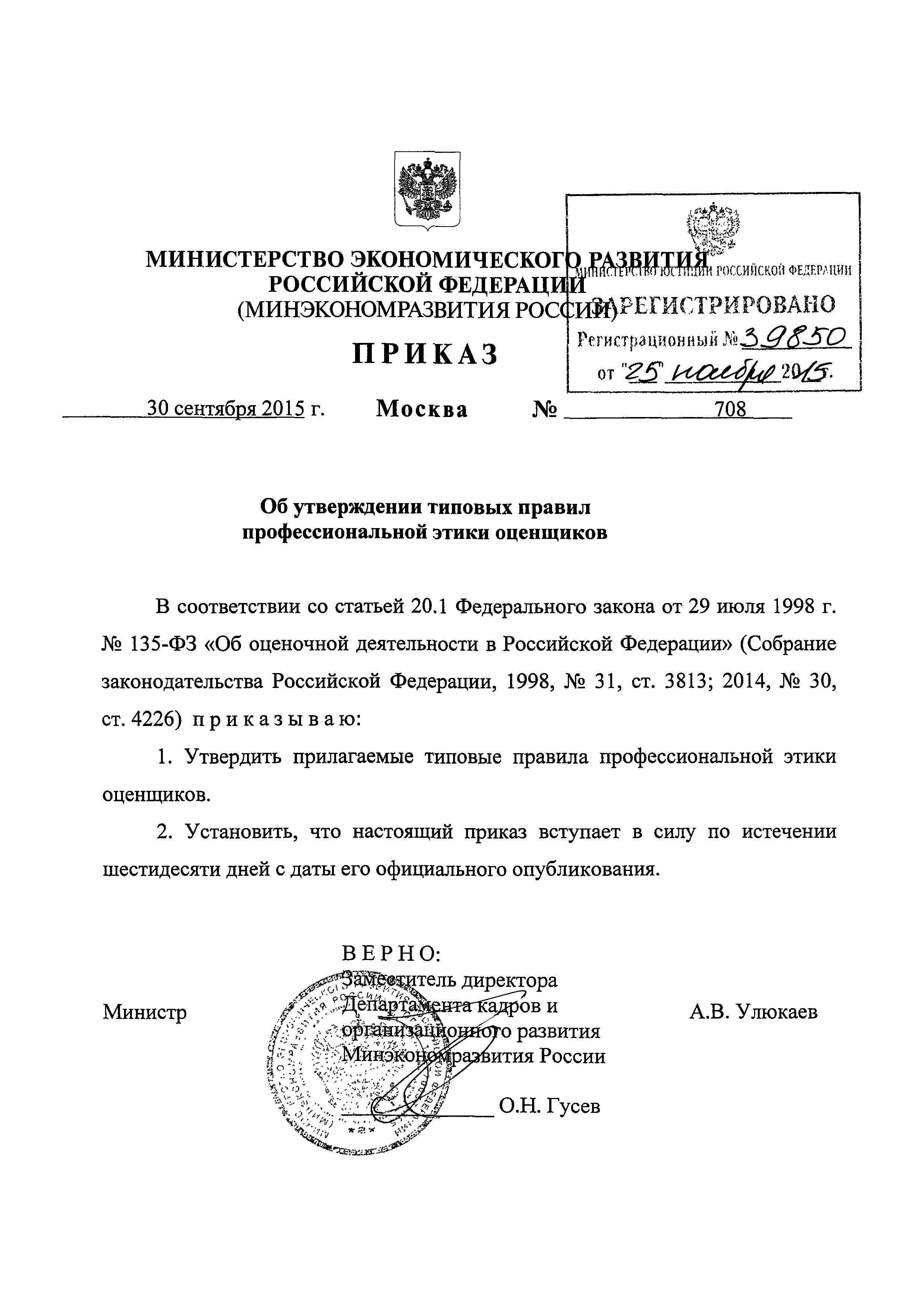 | Утверждён: | 30.09.2015 Министерство экономического развития РФ (708)