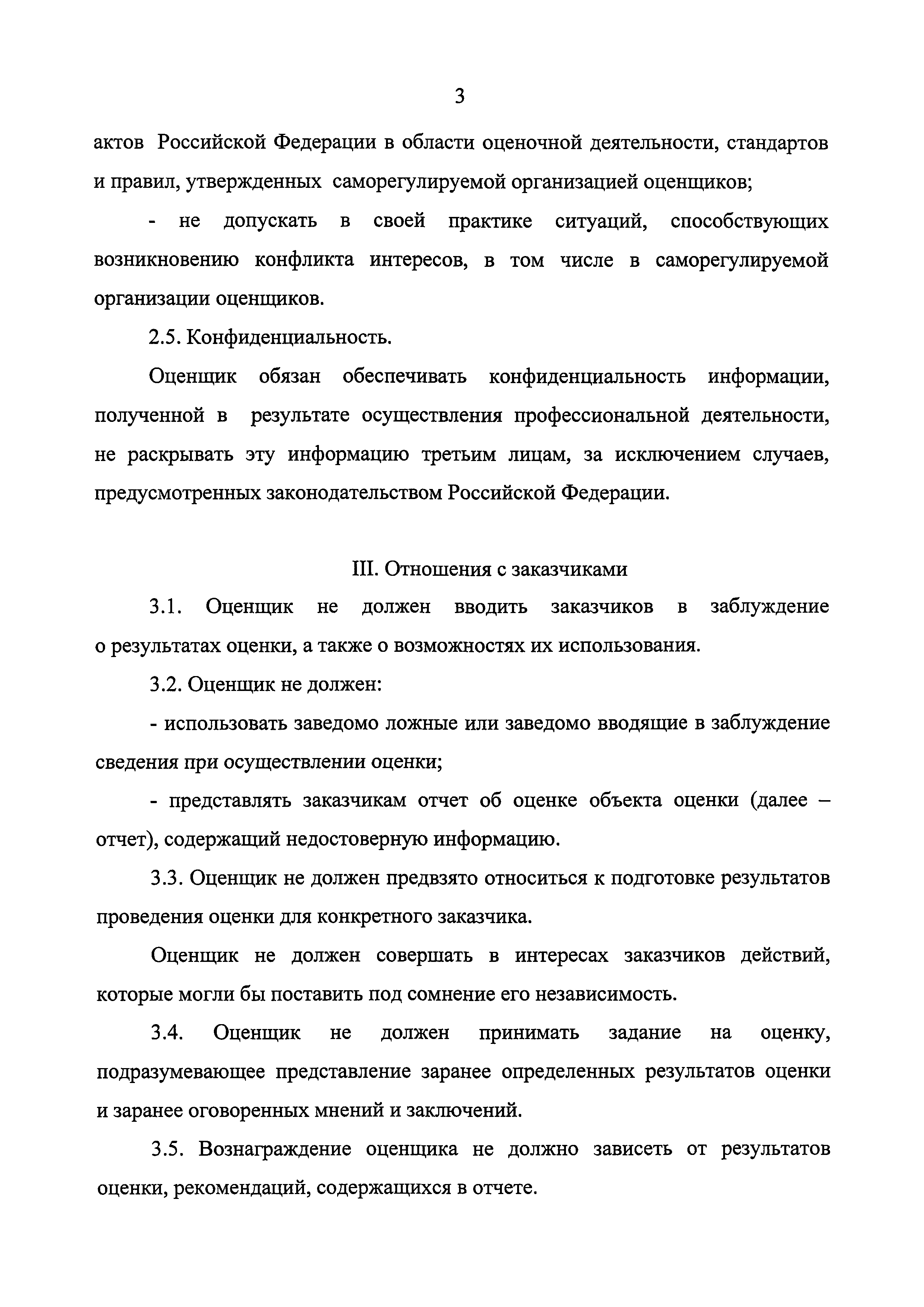 | Оглавление: | I. Общие положения II. Основные принципы профессиональной этики оценщиков III. Отношения с заказчиками IV. Отношения между оценщиками V. Отношения оценщиков - членов саморегулируемой организации оценщиков с оценщиками - членами выборных органов саморегулируемой организации оценщиков VI. Взаимоотношения оценщиков со средствами массовой информации и рейтинговыми агентствами VII. Отношения оценщиков с работодателями |