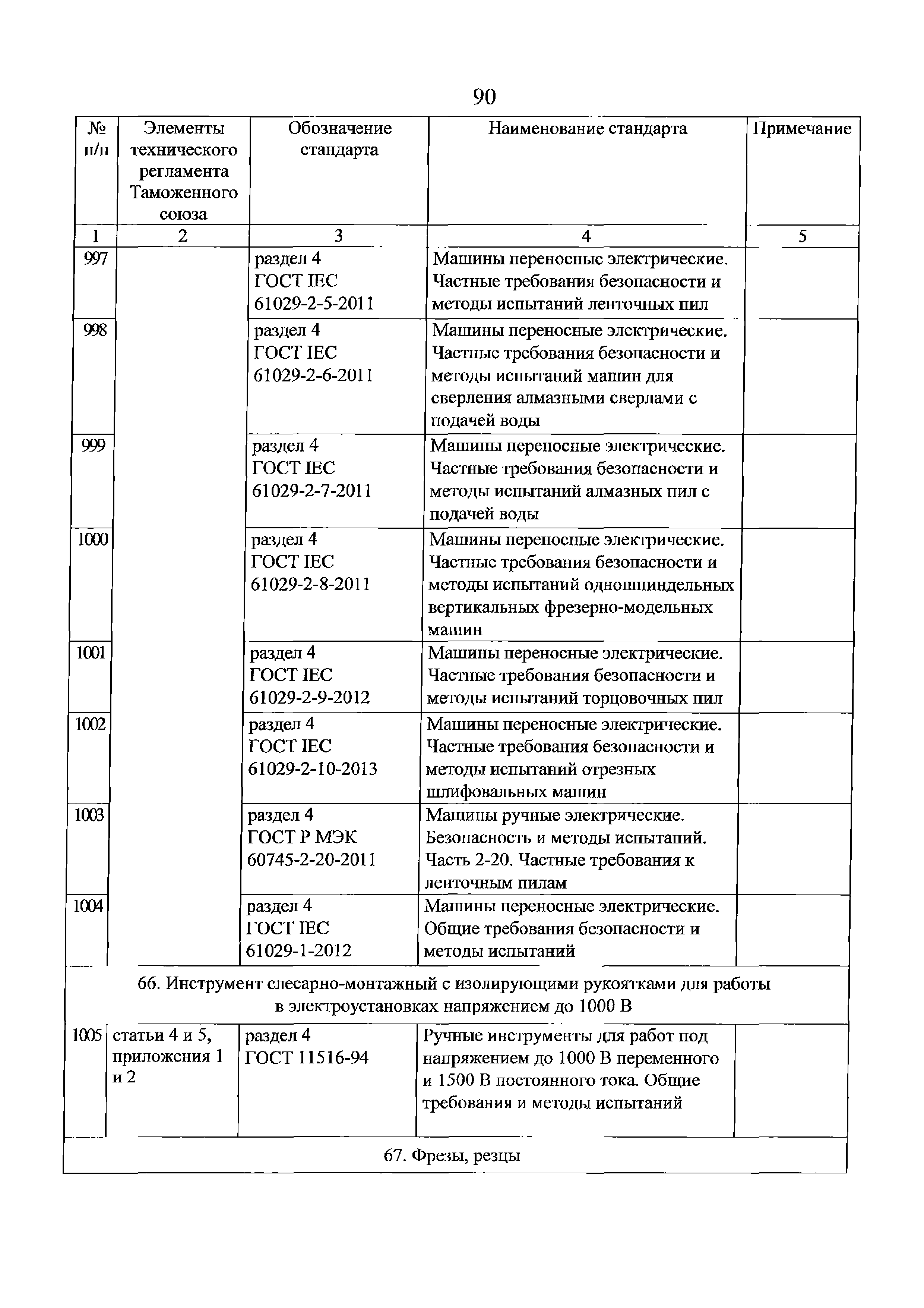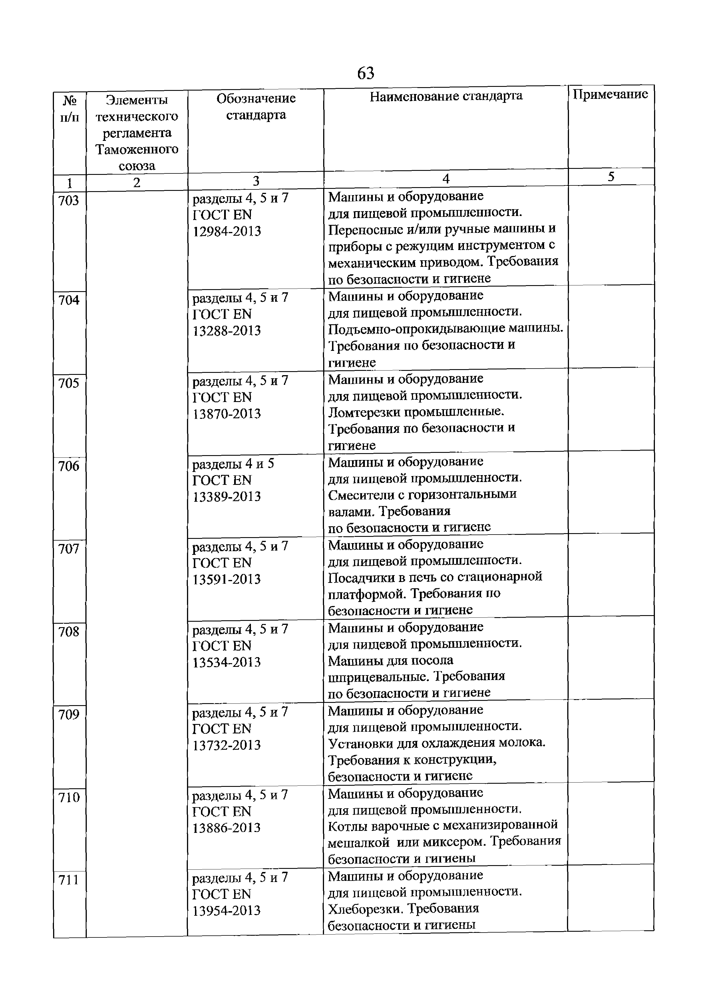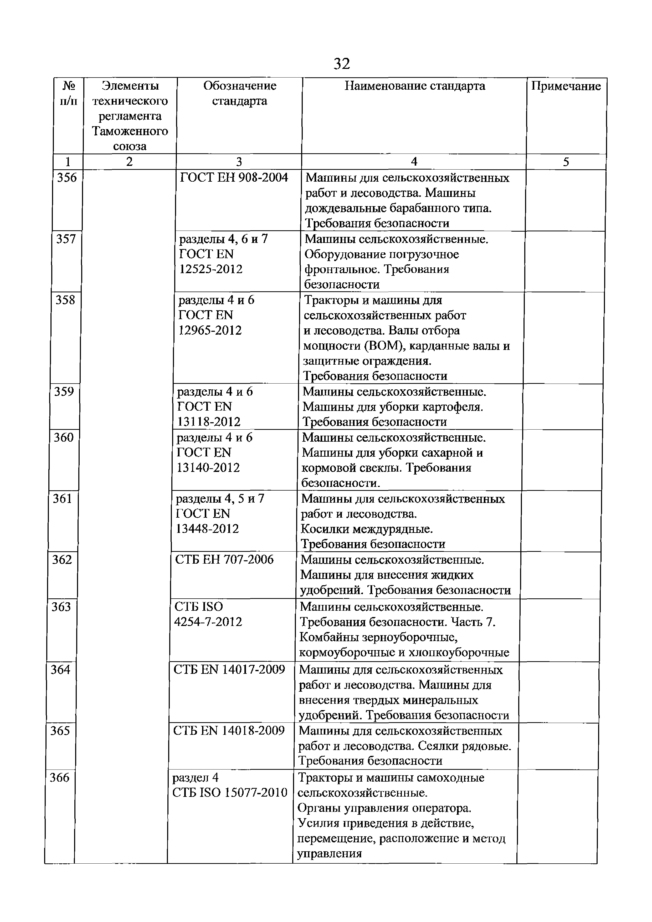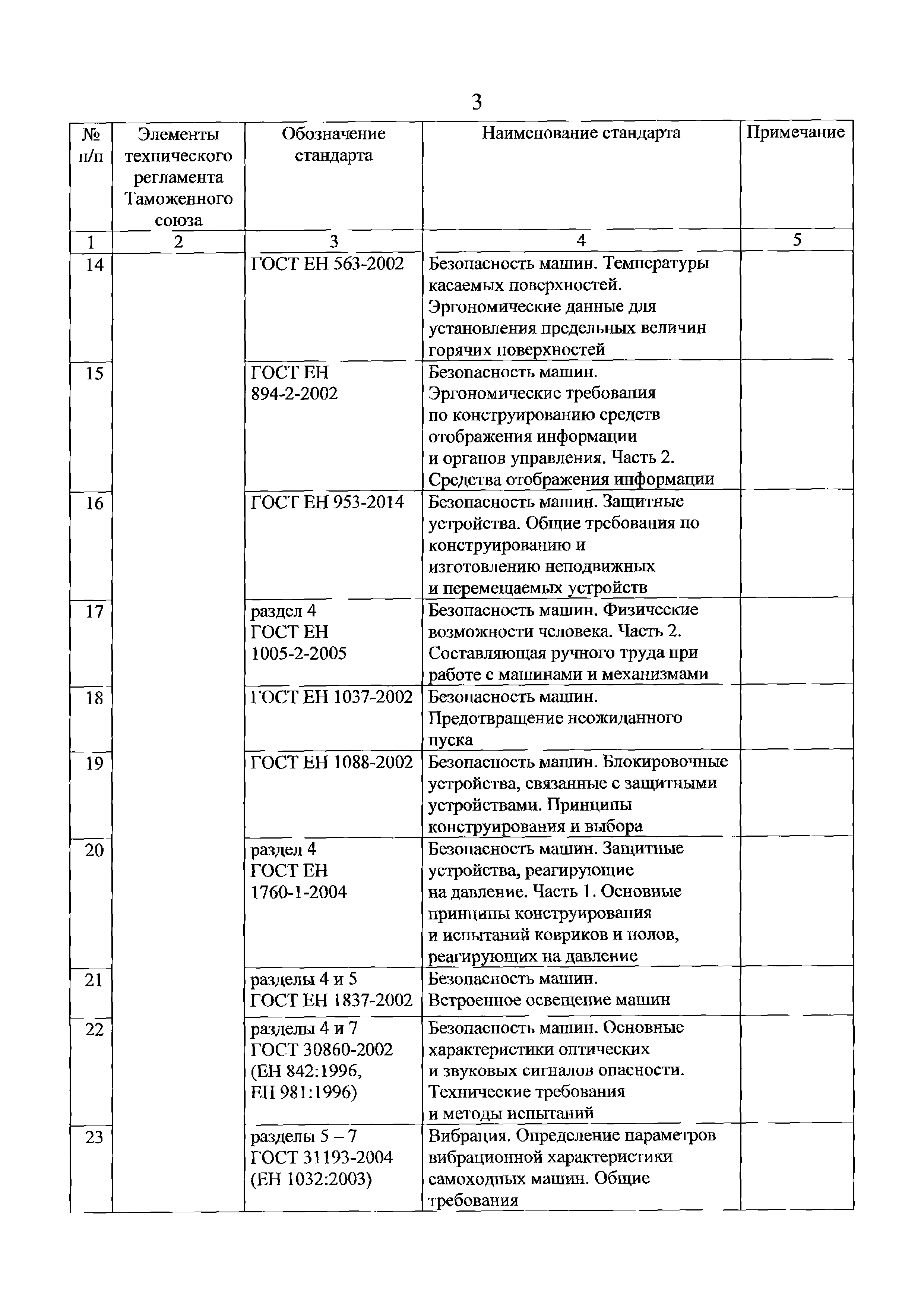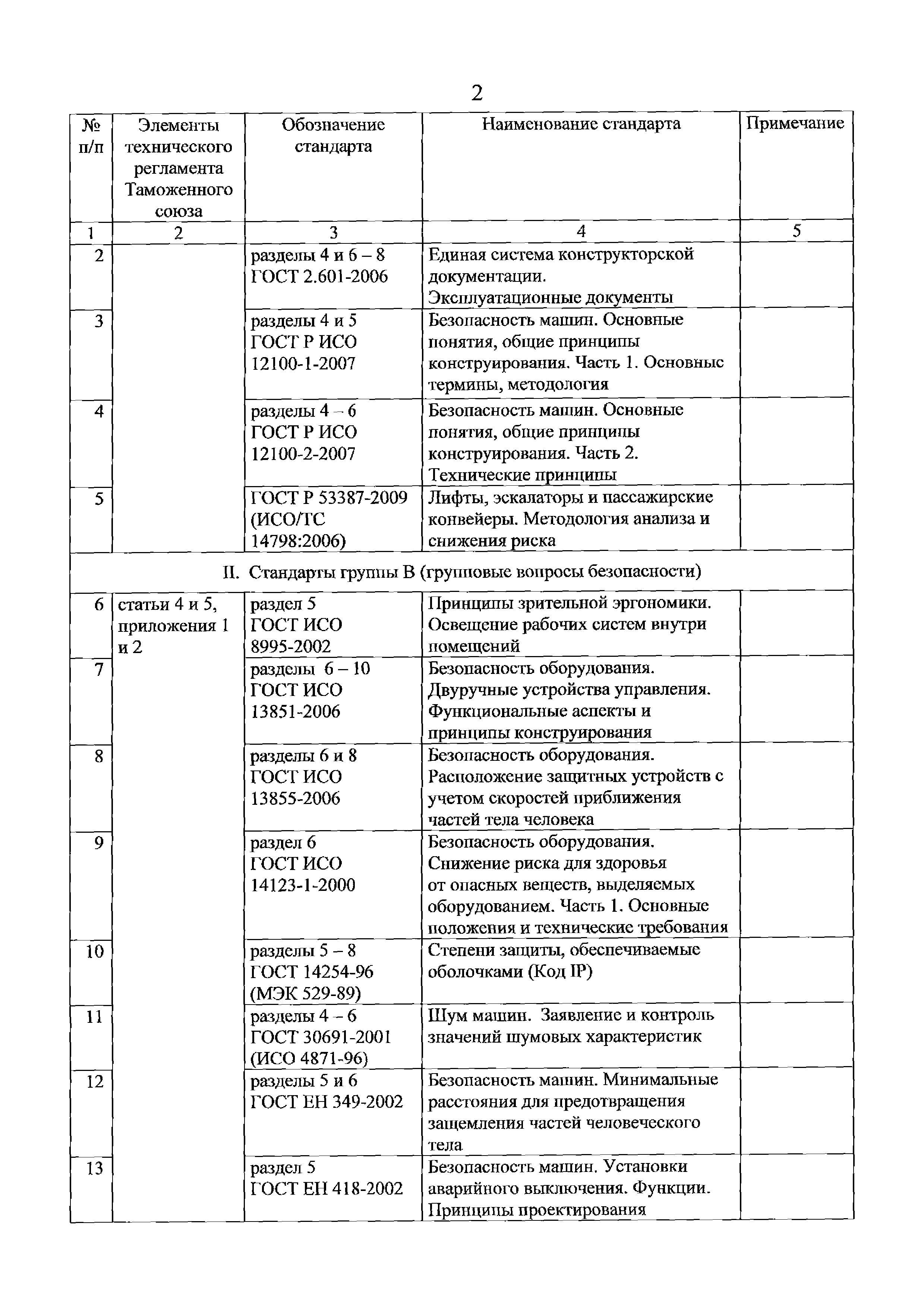 Перечень стандартов, в результате применения которых на добровольной основе обеспечивается соблюдение требований технического регламента Таможенного союза "О безопасности машин и оборудования" (ТР ТС 010/2011). Редакция 2