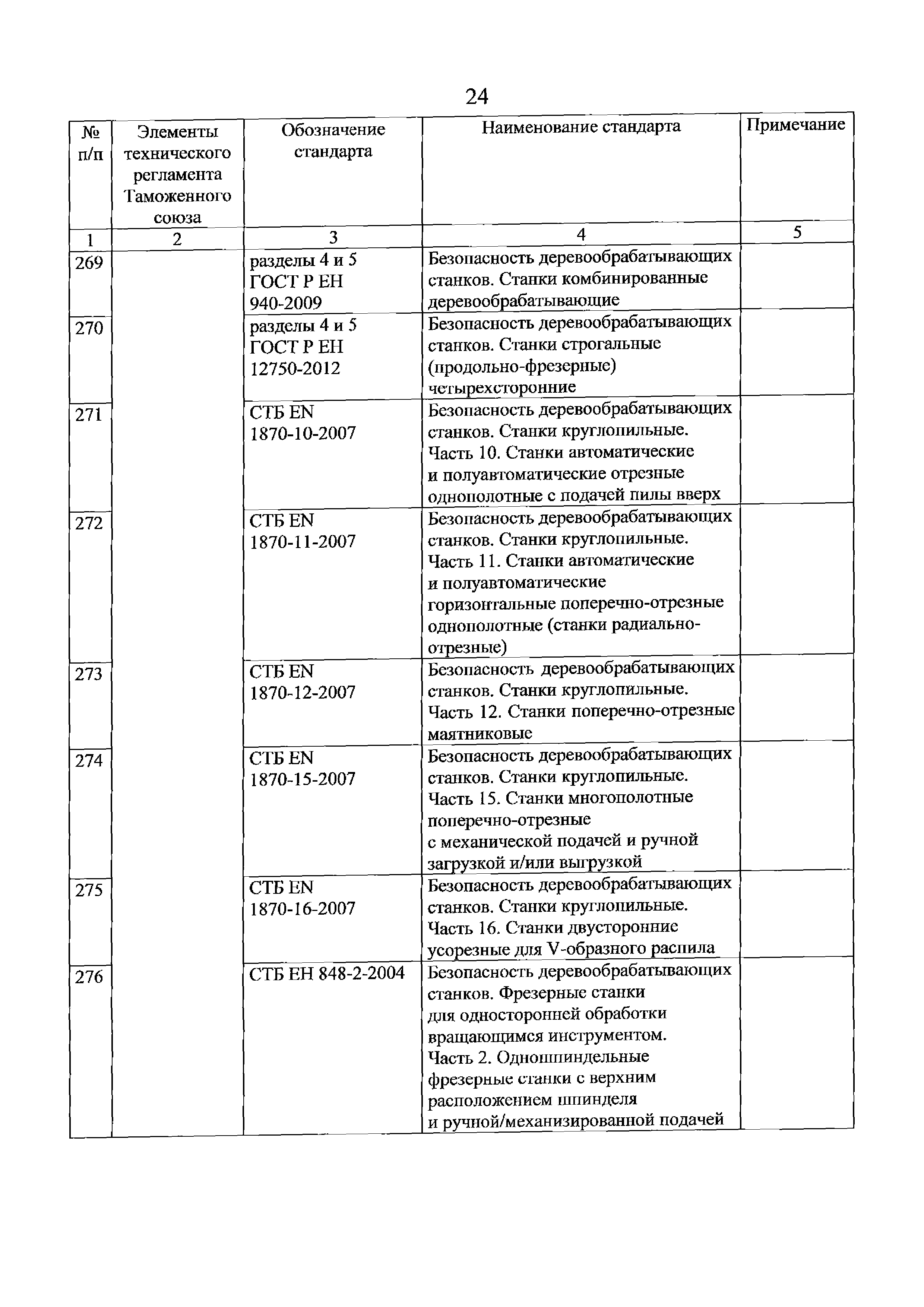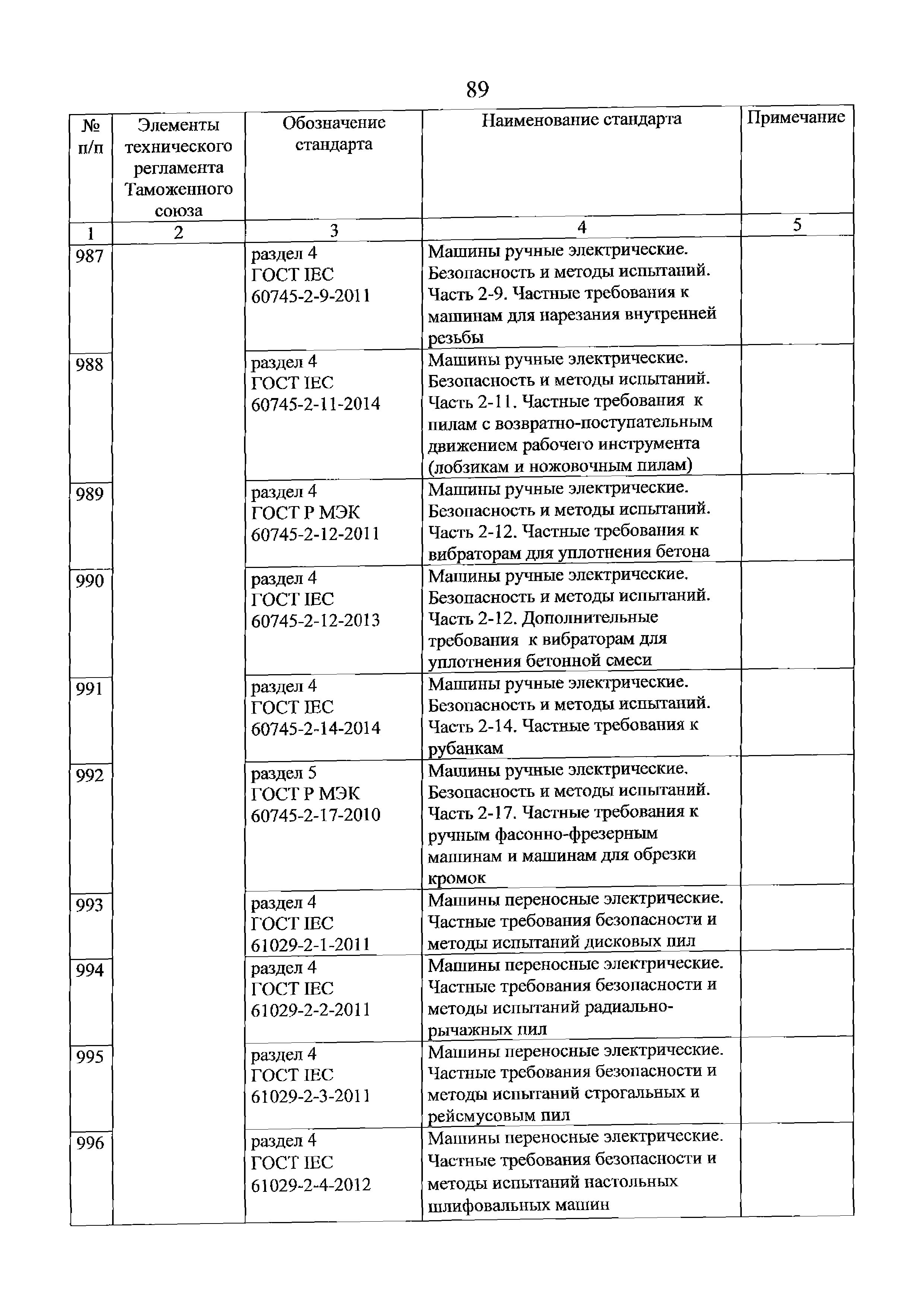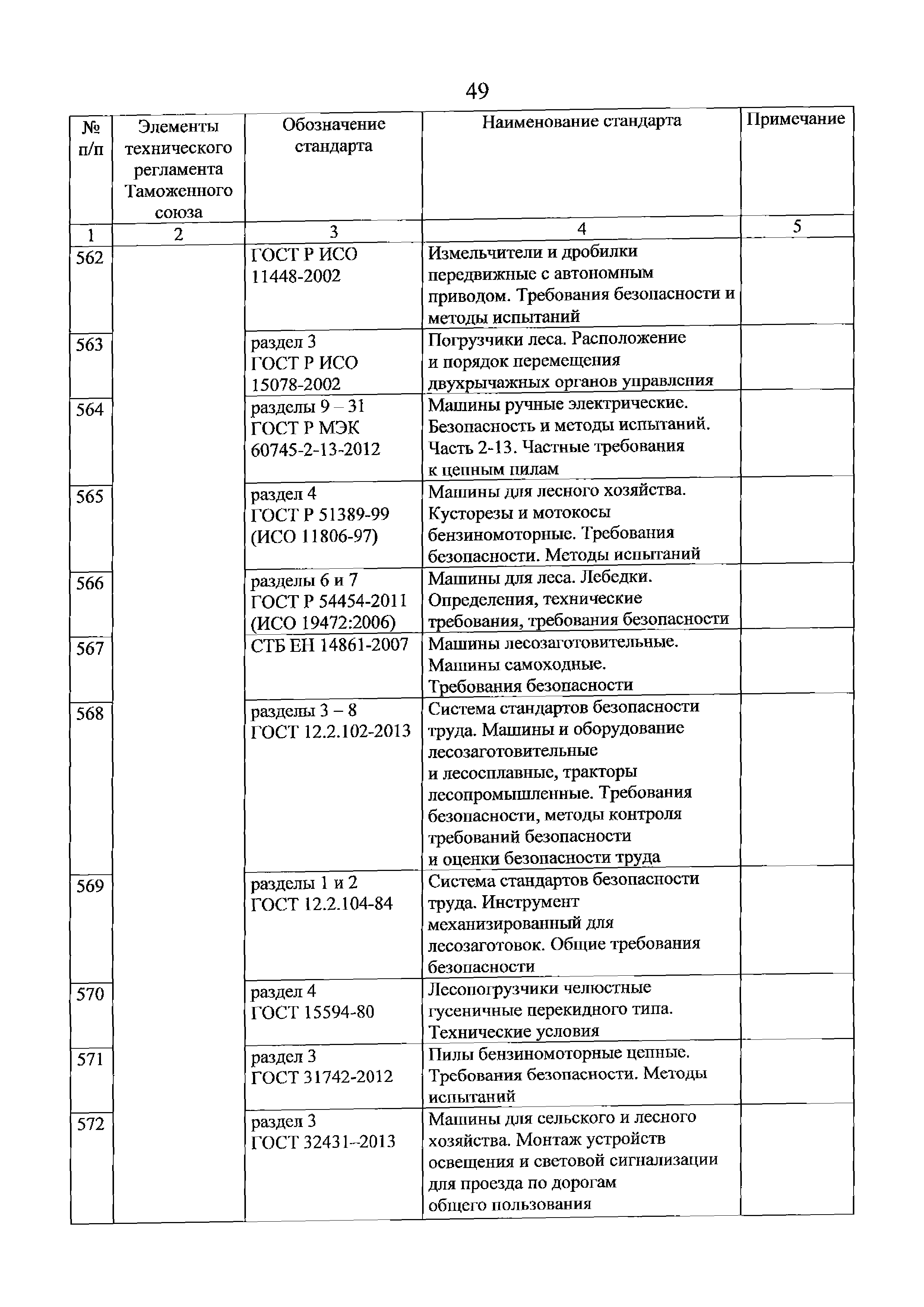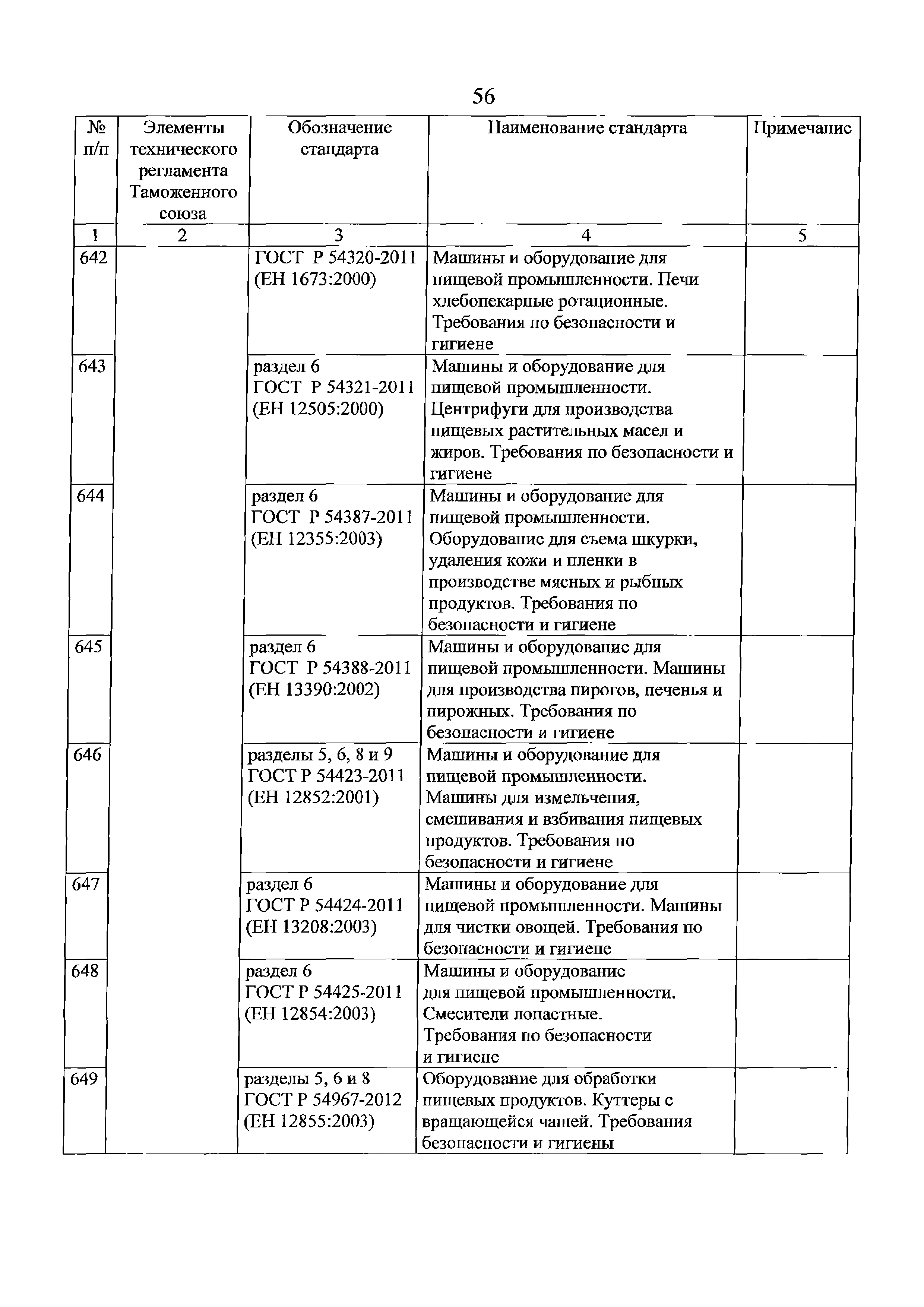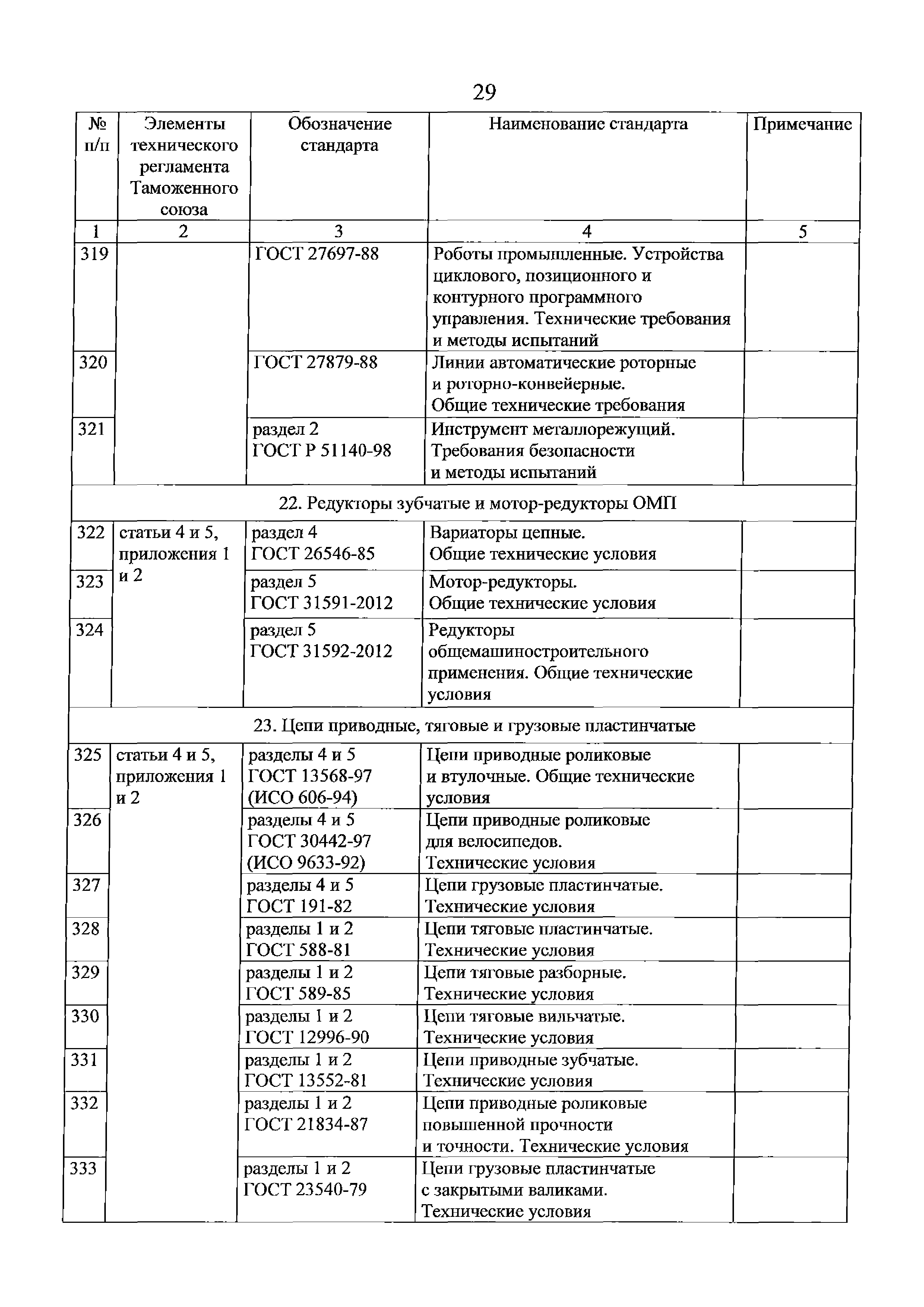 Перечень стандартов, в результате применения которых на добровольной основе обеспечивается соблюдение требований технического регламента Таможенного союза "О безопасности машин и оборудования" (ТР ТС 010/2011). Редакция 2