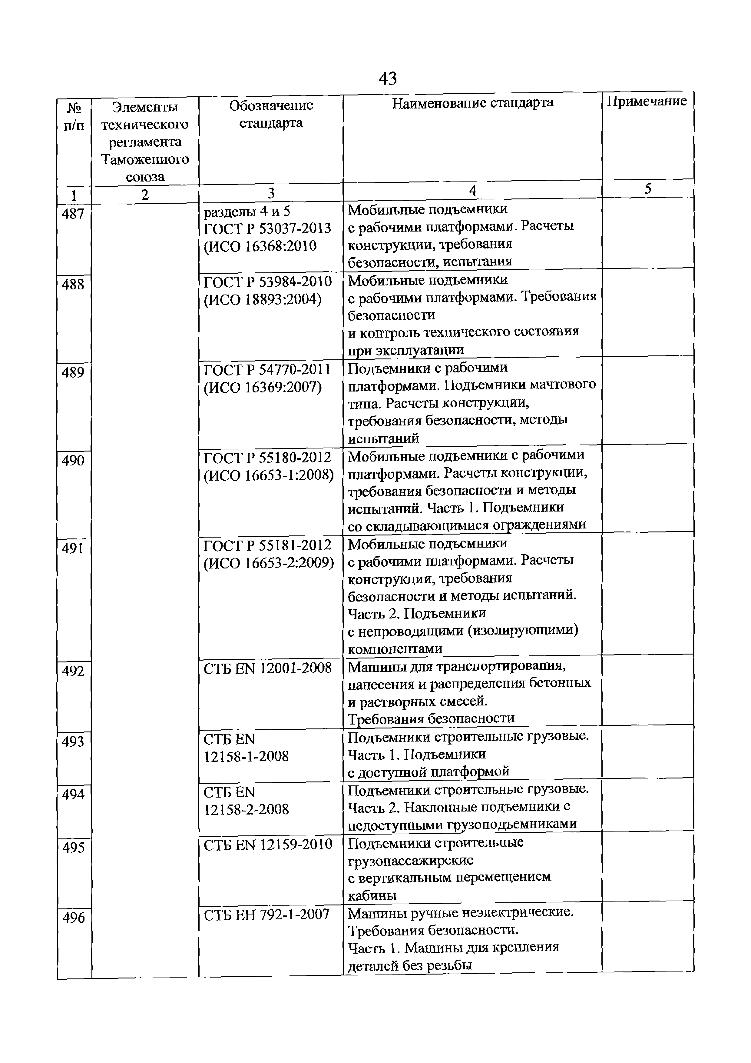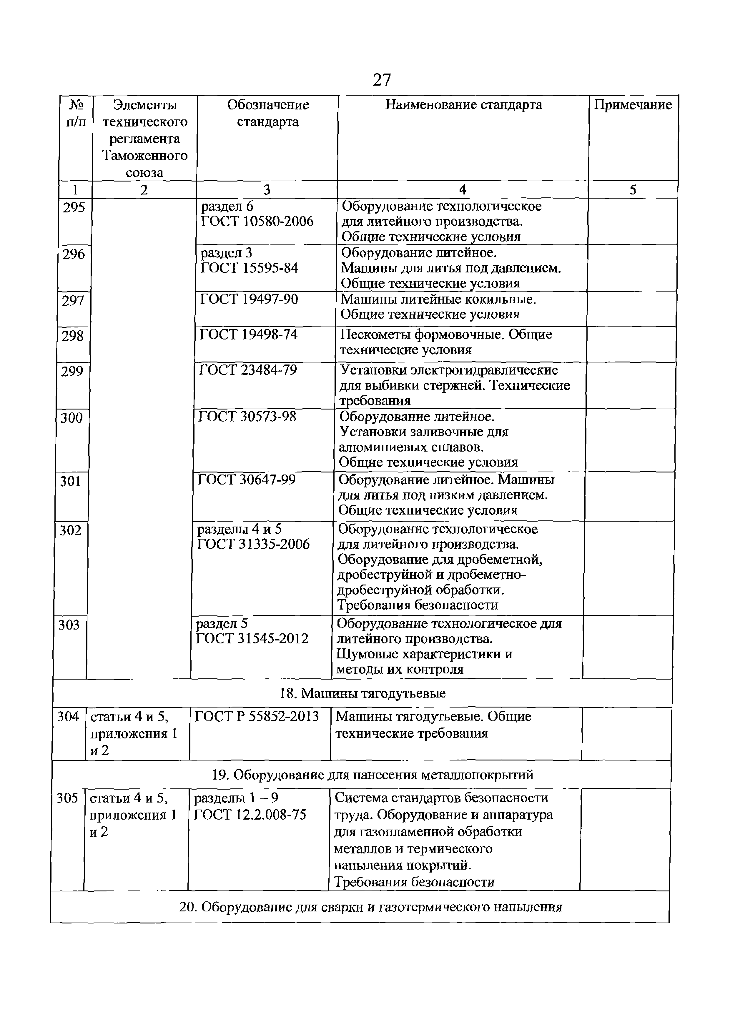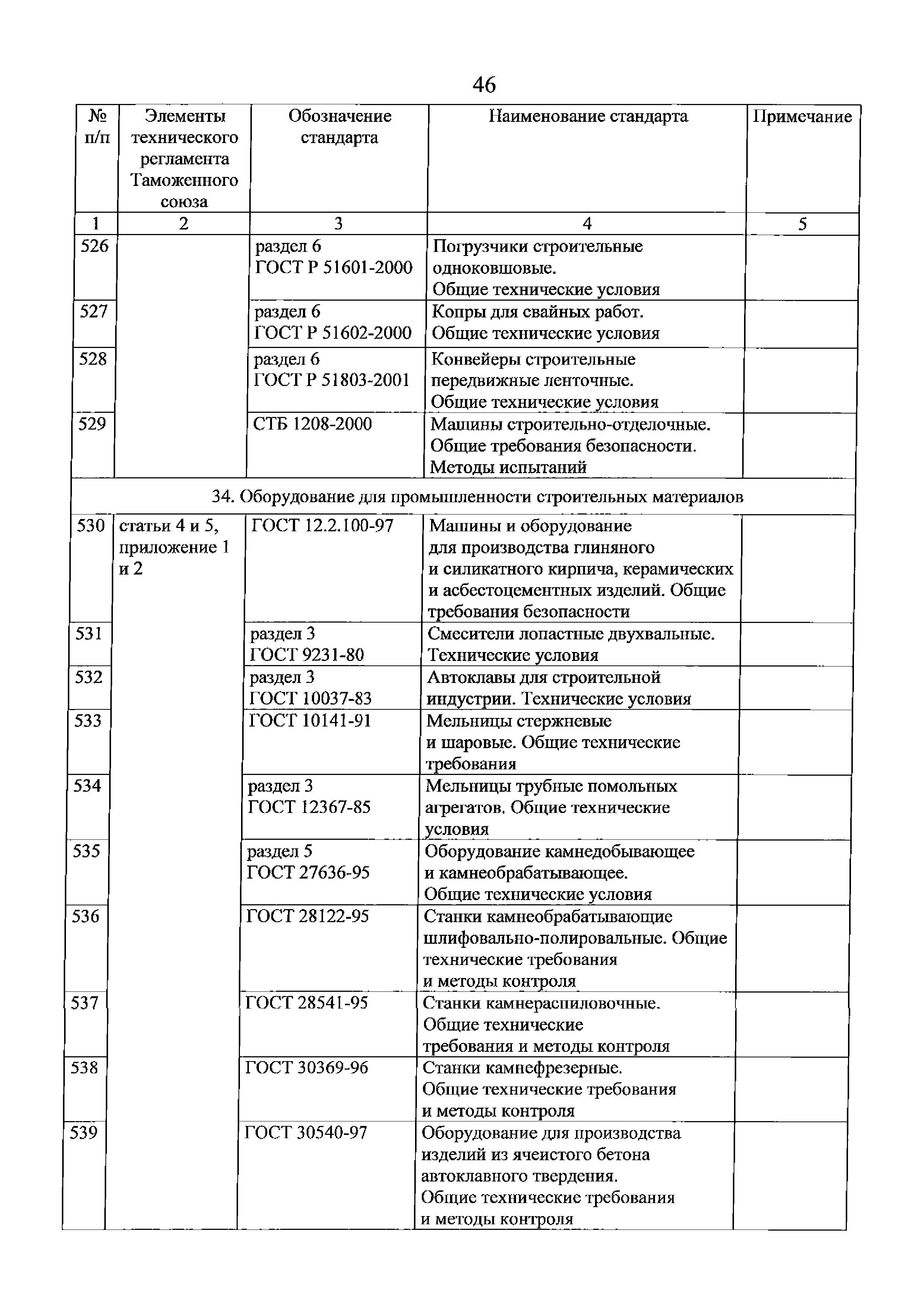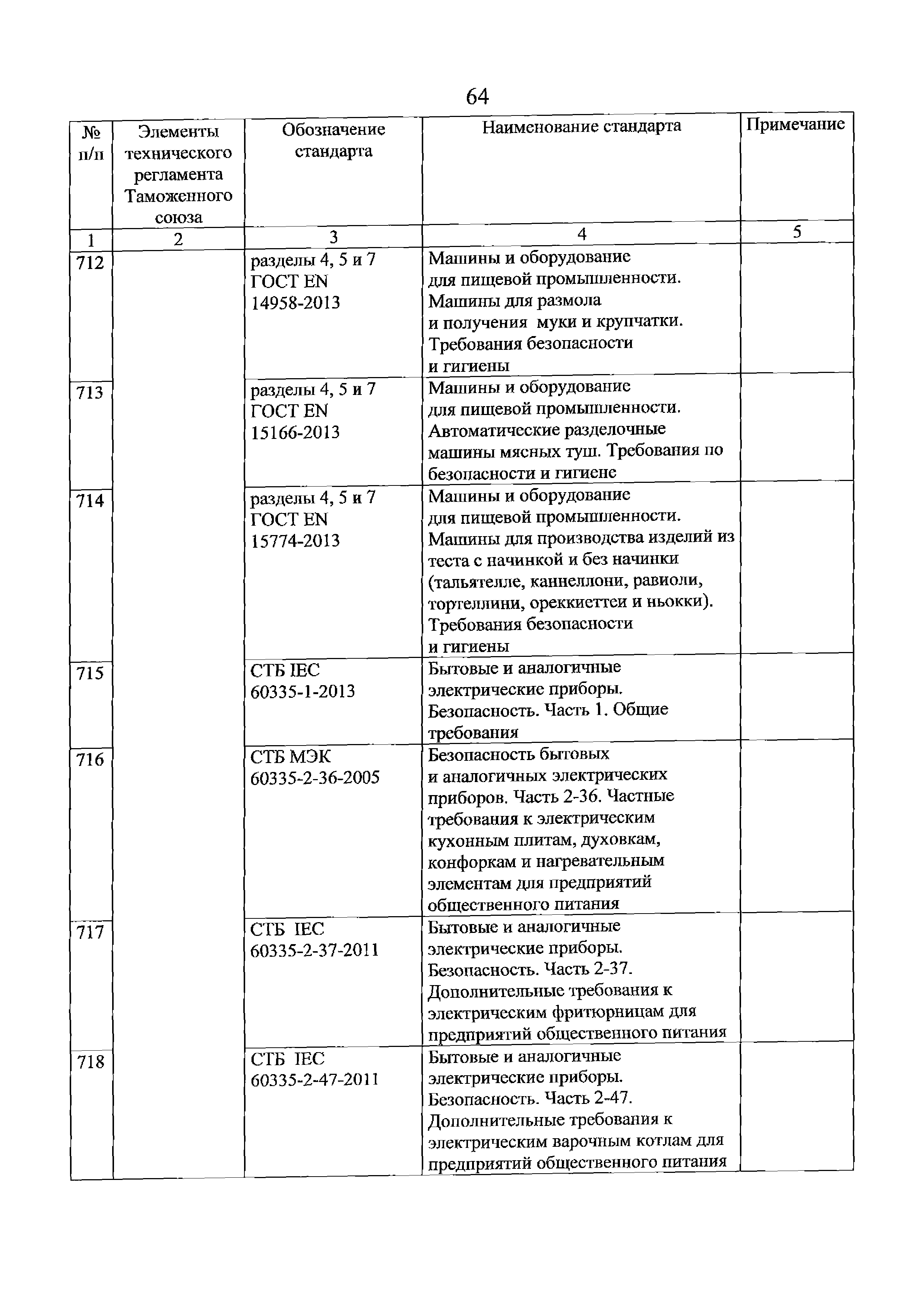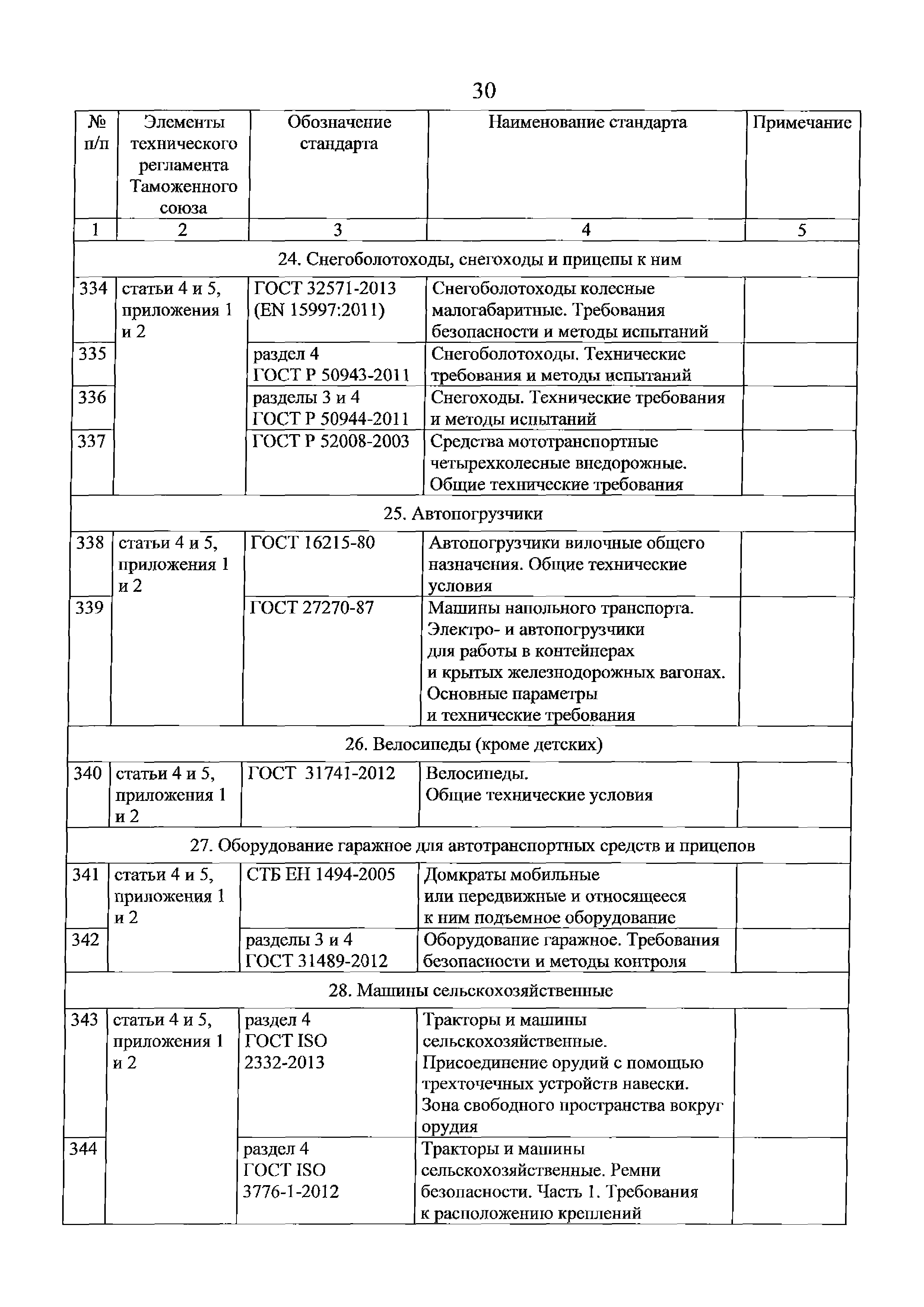 Перечень стандартов, в результате применения которых на добровольной основе обеспечивается соблюдение требований технического регламента Таможенного союза "О безопасности машин и оборудования" (ТР ТС 010/2011). Редакция 2