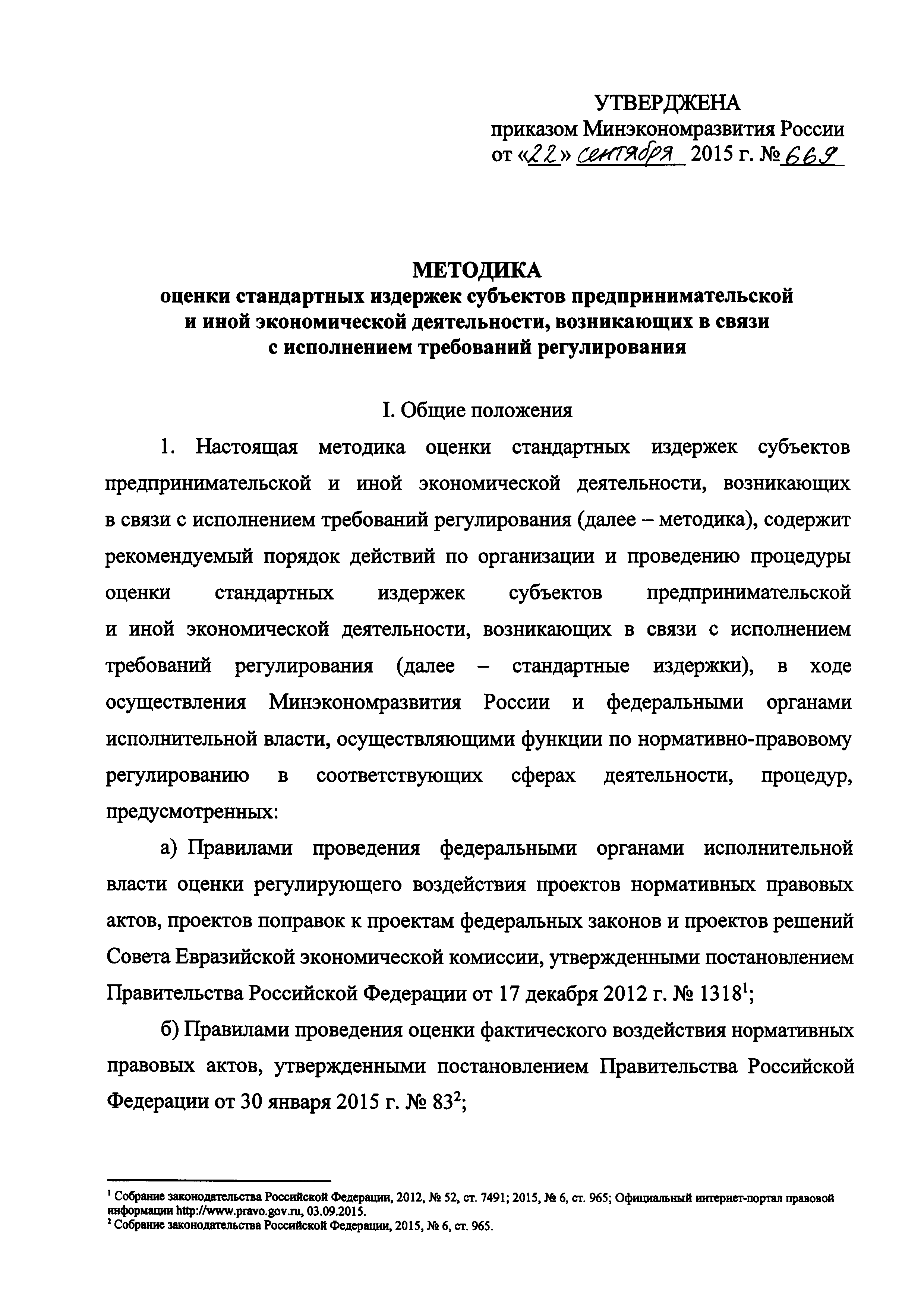 | Утверждён: | 22.09.2015 Министерство экономического развития РФ (669) |