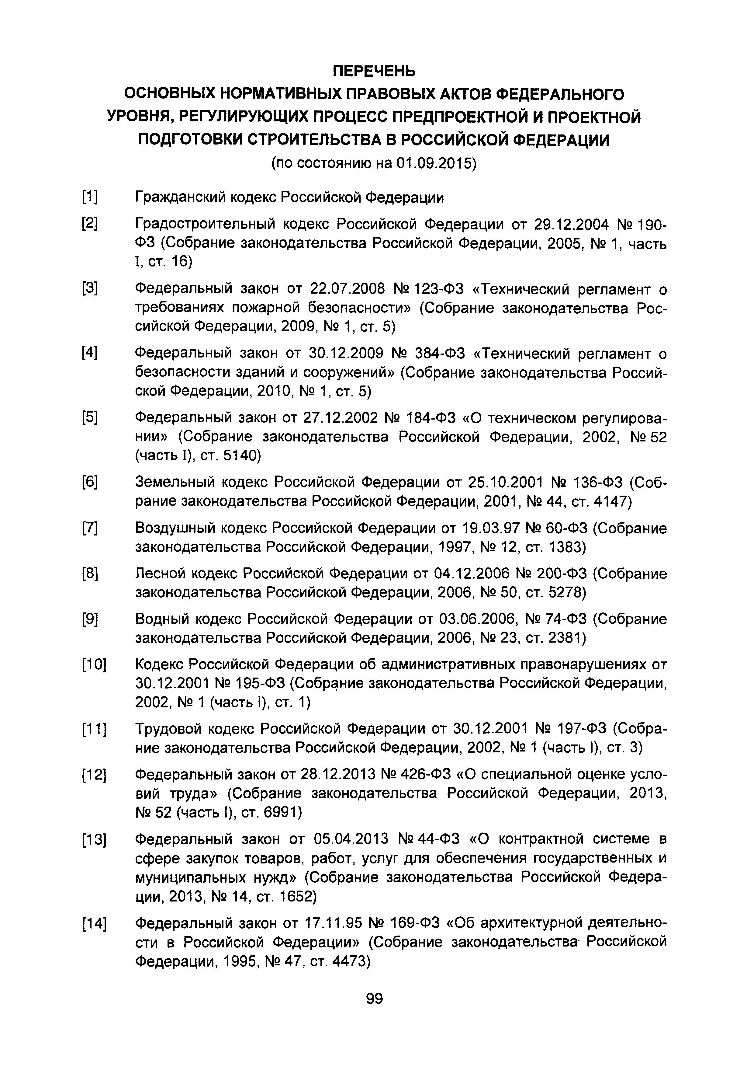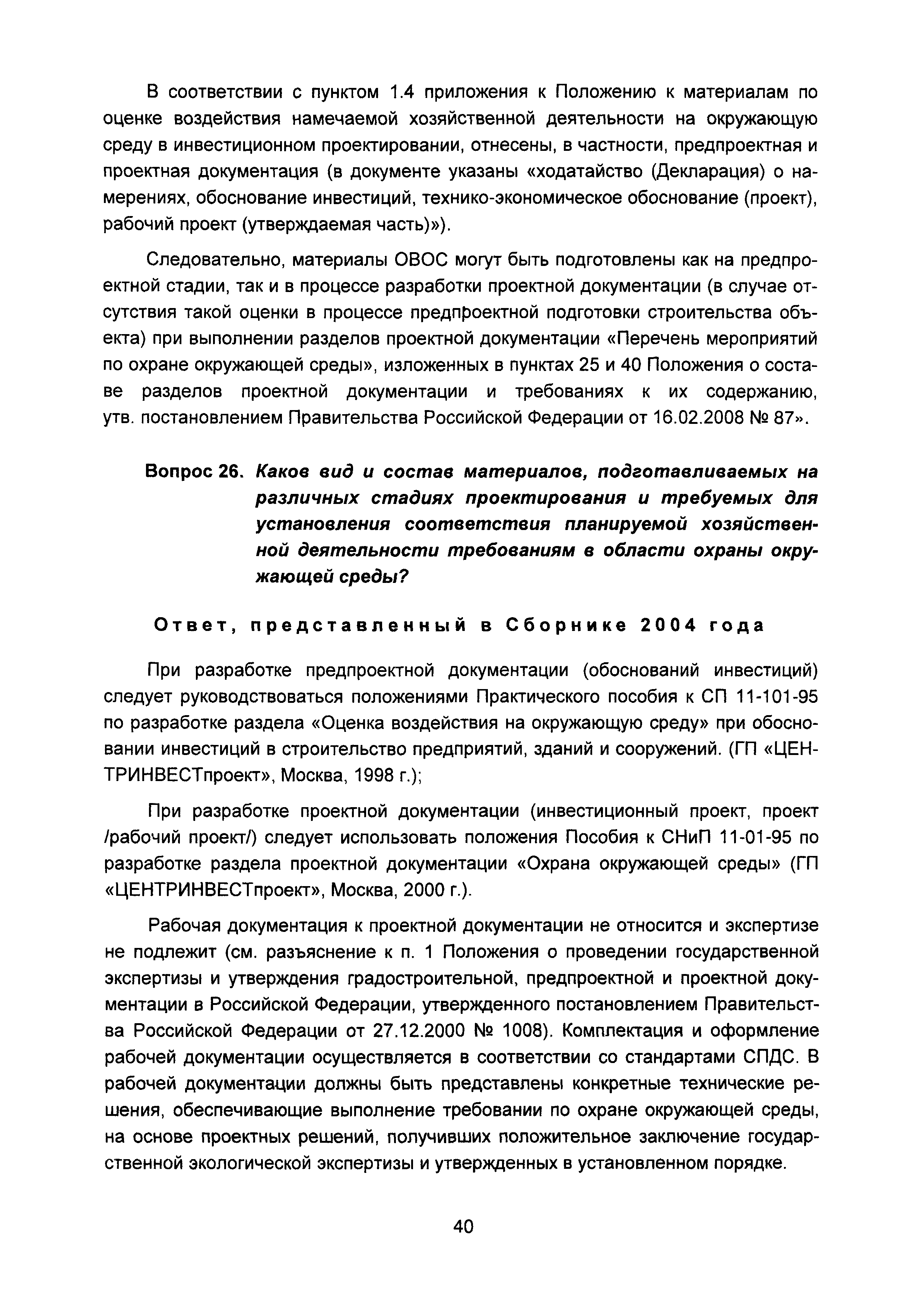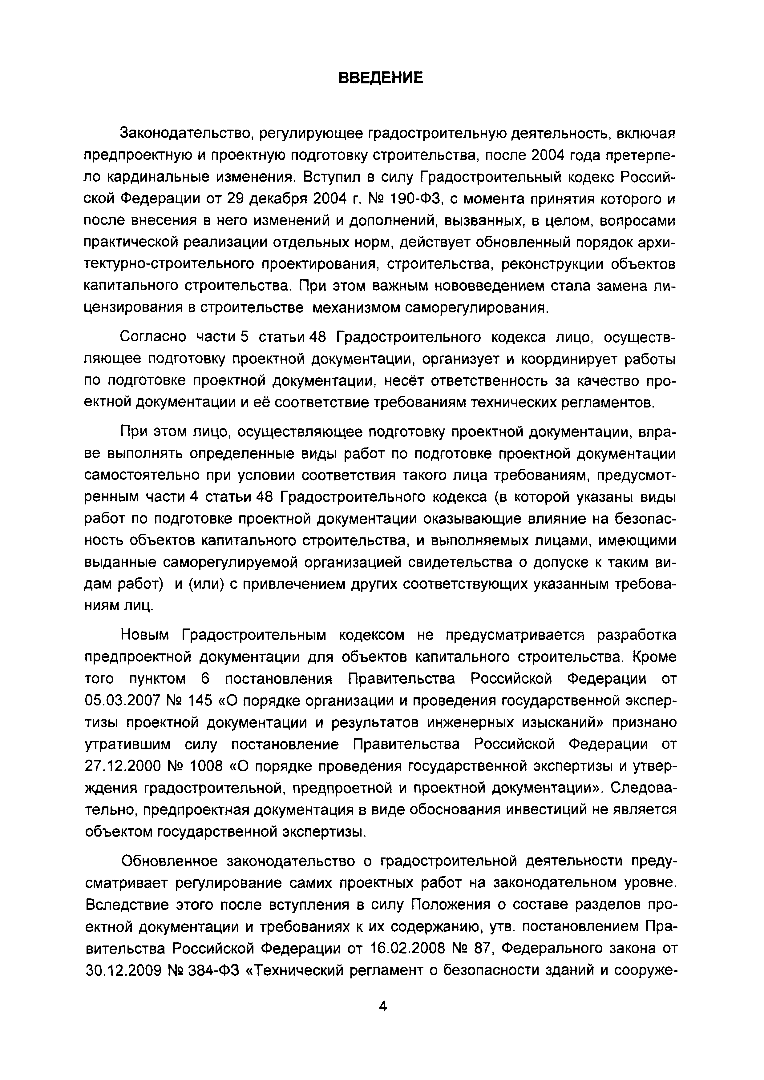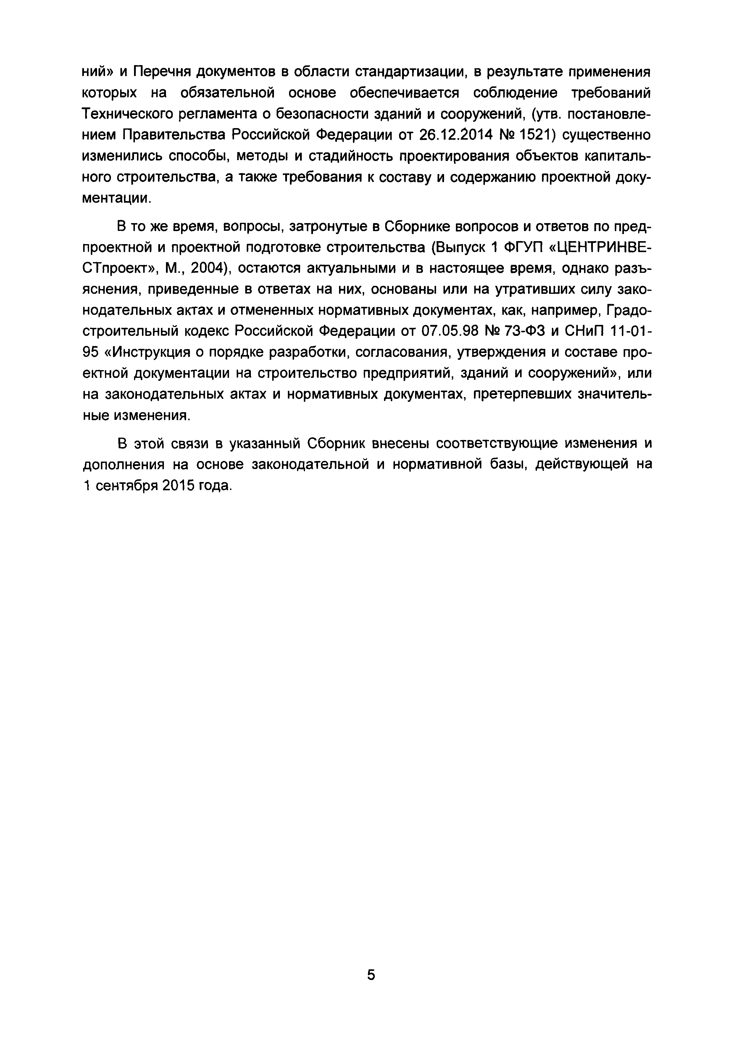| Оглавление: | Введение I Состав и порядок оформления предпроектной документации II Состав и порядок оформления проектной документации III Состав и порядок оформления рабочей документации IV Природоохранные решения в предпроектной и проектной документации VI Сбор исходных данных, согласование предпроектной и проектной документации, внесение в документацию изменений, авторский надзор VII Выделение земельного участка для строительства объекта VIII Иные вопросы Приложение 1 Перечень основных нормативных правовых актов федерального уровня, регулирующих процесс предпроектной и проектной подготовки строительства в Российской Федерации (по состоянию на 01.01.2004) Перечень основных нормативных правовых актов федерального уровня, регулирующих процесс предпроектной и проектной подготовки строительства в Российской Федерации (по состоянию на 01 .09.2015) Приложение 2 (Исключено) Приложение 3 (Исключено) |