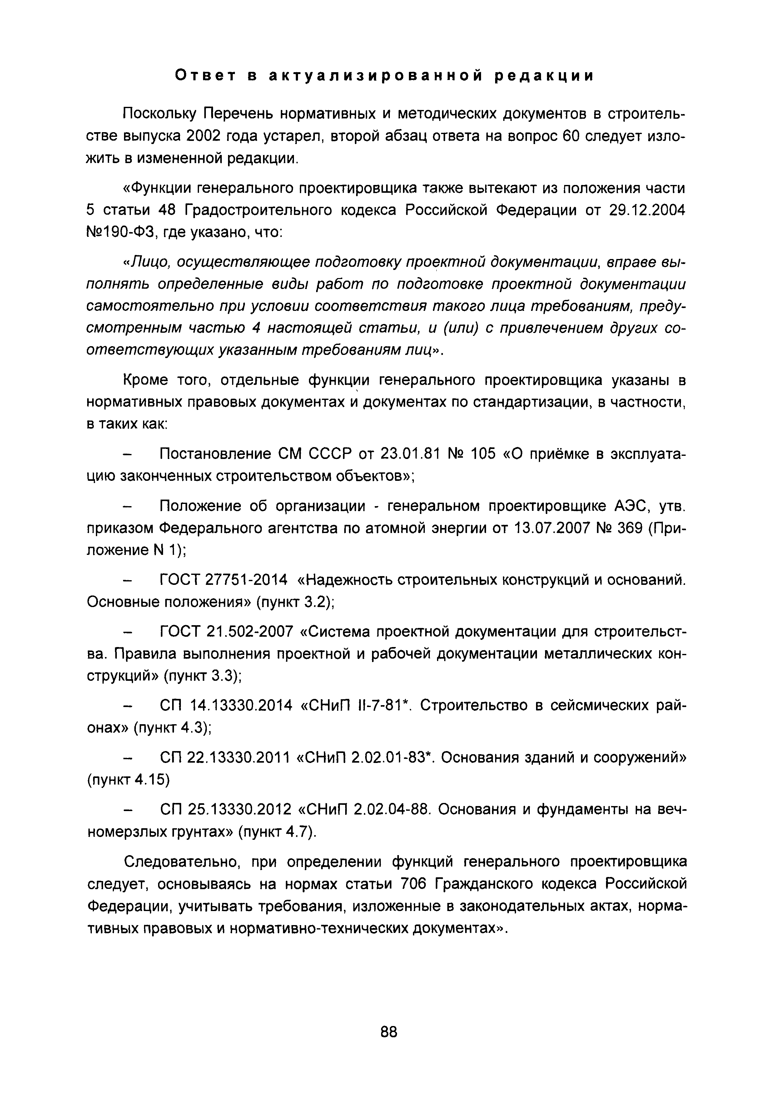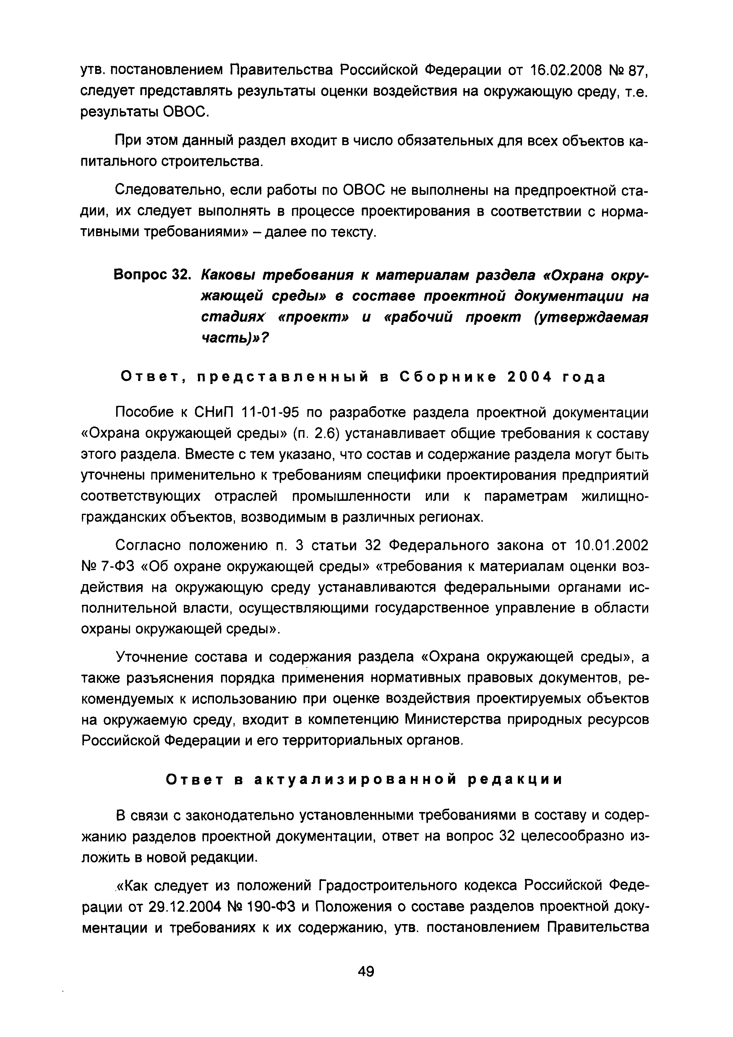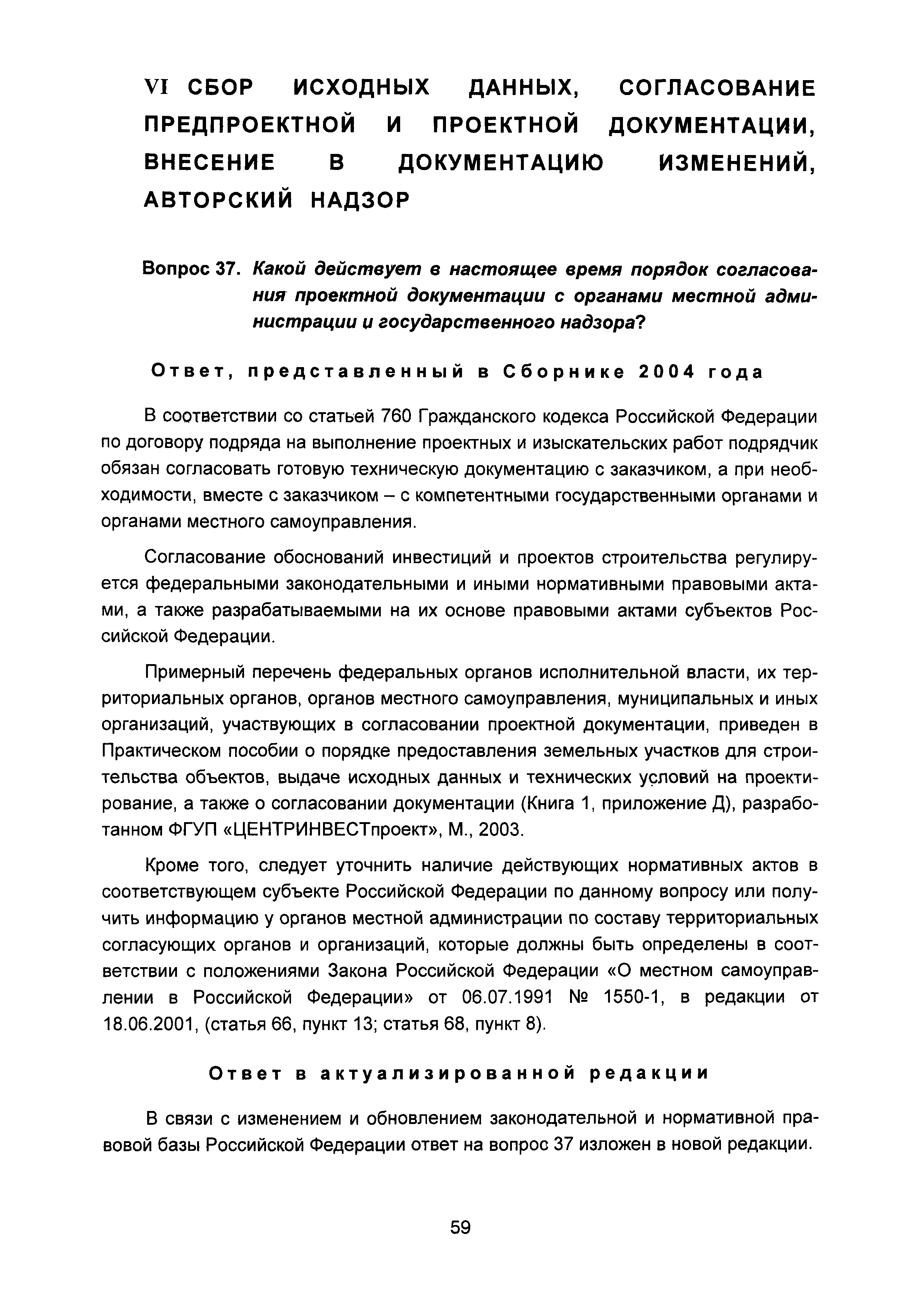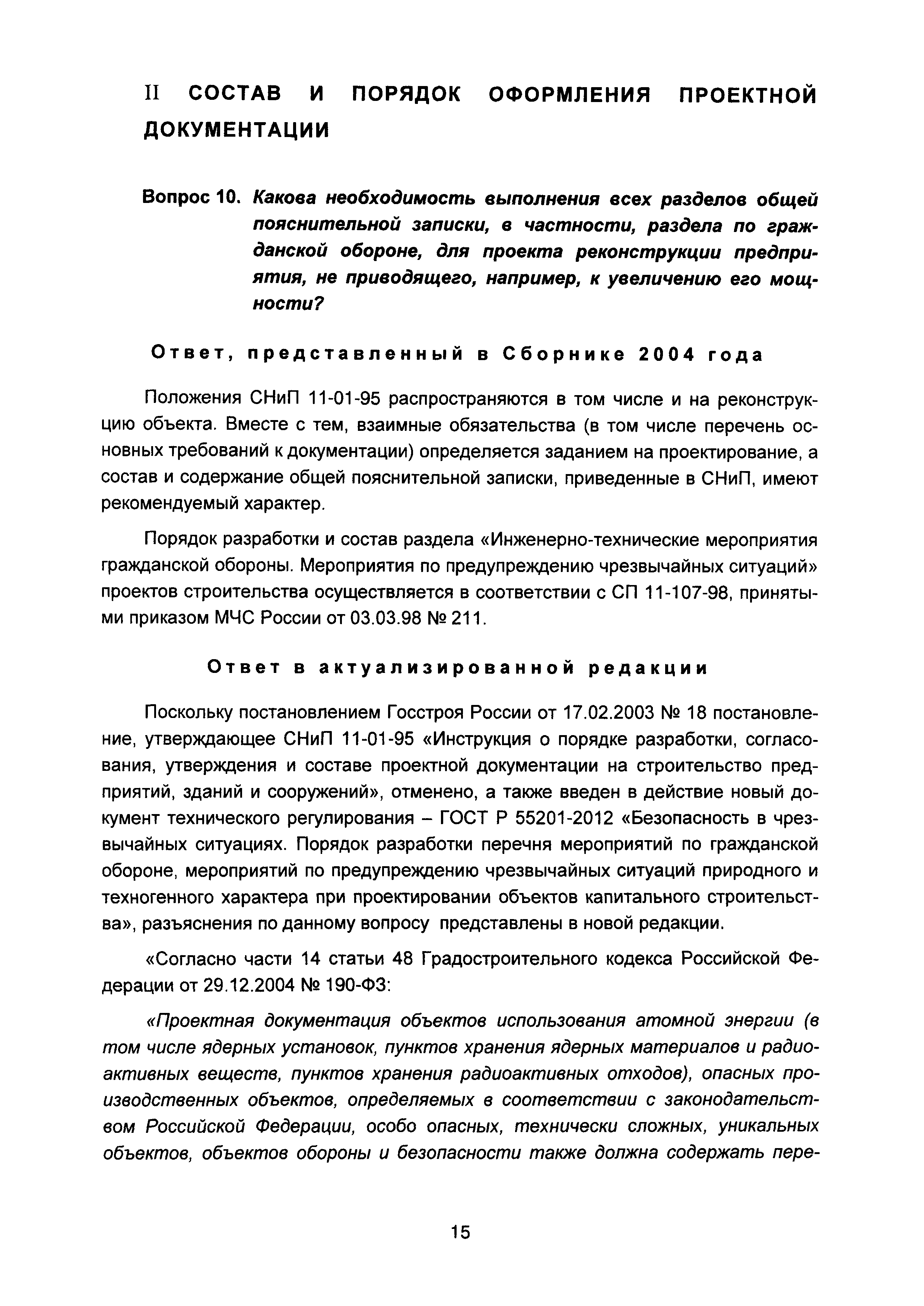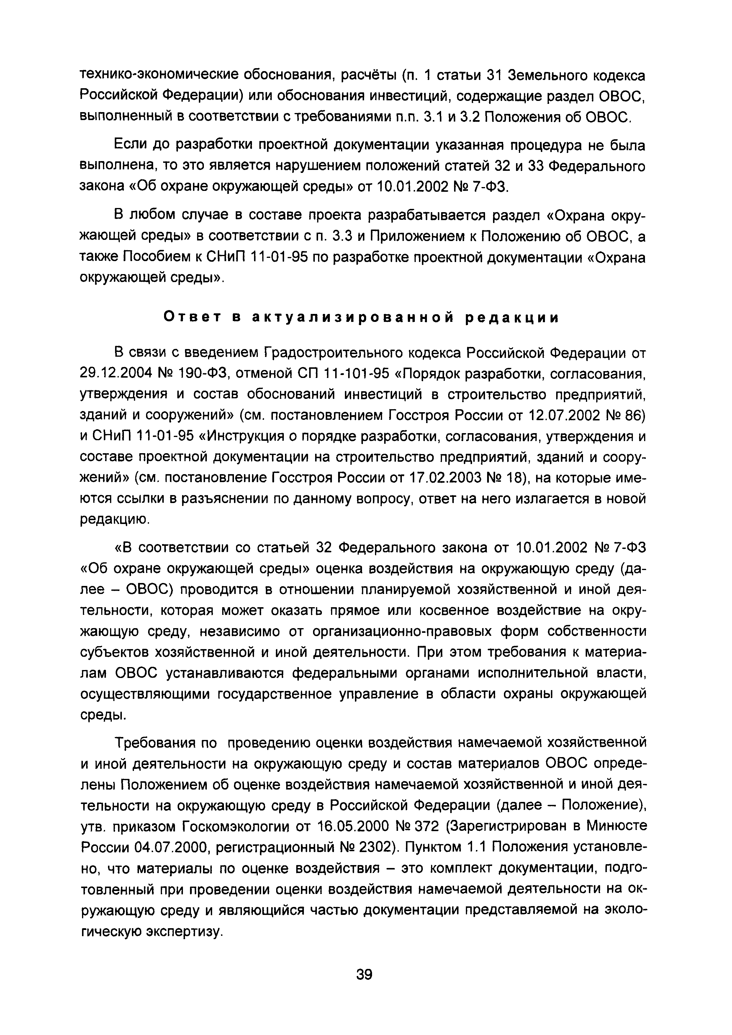 | Оглавление: | Введение I Состав и порядок оформления предпроектной документации II Состав и порядок оформления проектной документации III Состав и порядок оформления рабочей документации IV Природоохранные решения в предпроектной и проектной документации VI Сбор исходных данных, согласование предпроектной и проектной документации, внесение в документацию изменений, авторский надзор VII Выделение земельного участка для строительства объекта VIII Иные вопросы Приложение 1 Перечень основных нормативных правовых актов федерального уровня, регулирующих процесс предпроектной и проектной подготовки строительства в Российской Федерации (по состоянию на 01.01.2004) Перечень основных нормативных правовых актов федерального уровня, регулирующих процесс предпроектной и проектной подготовки строительства в Российской Федерации (по состоянию на 01 .09.2015) Приложение 2 (Исключено) Приложение 3 (Исключено) |
