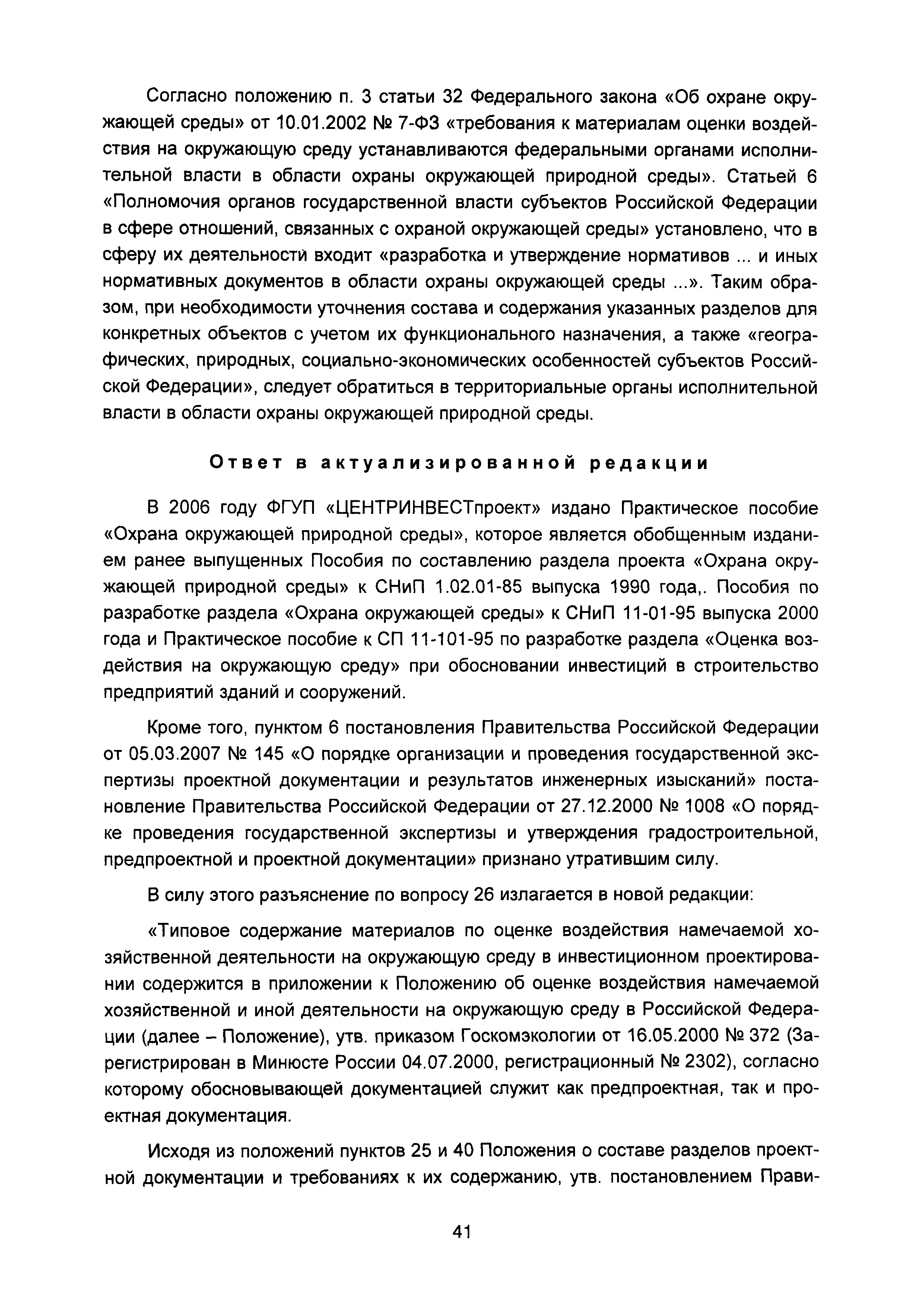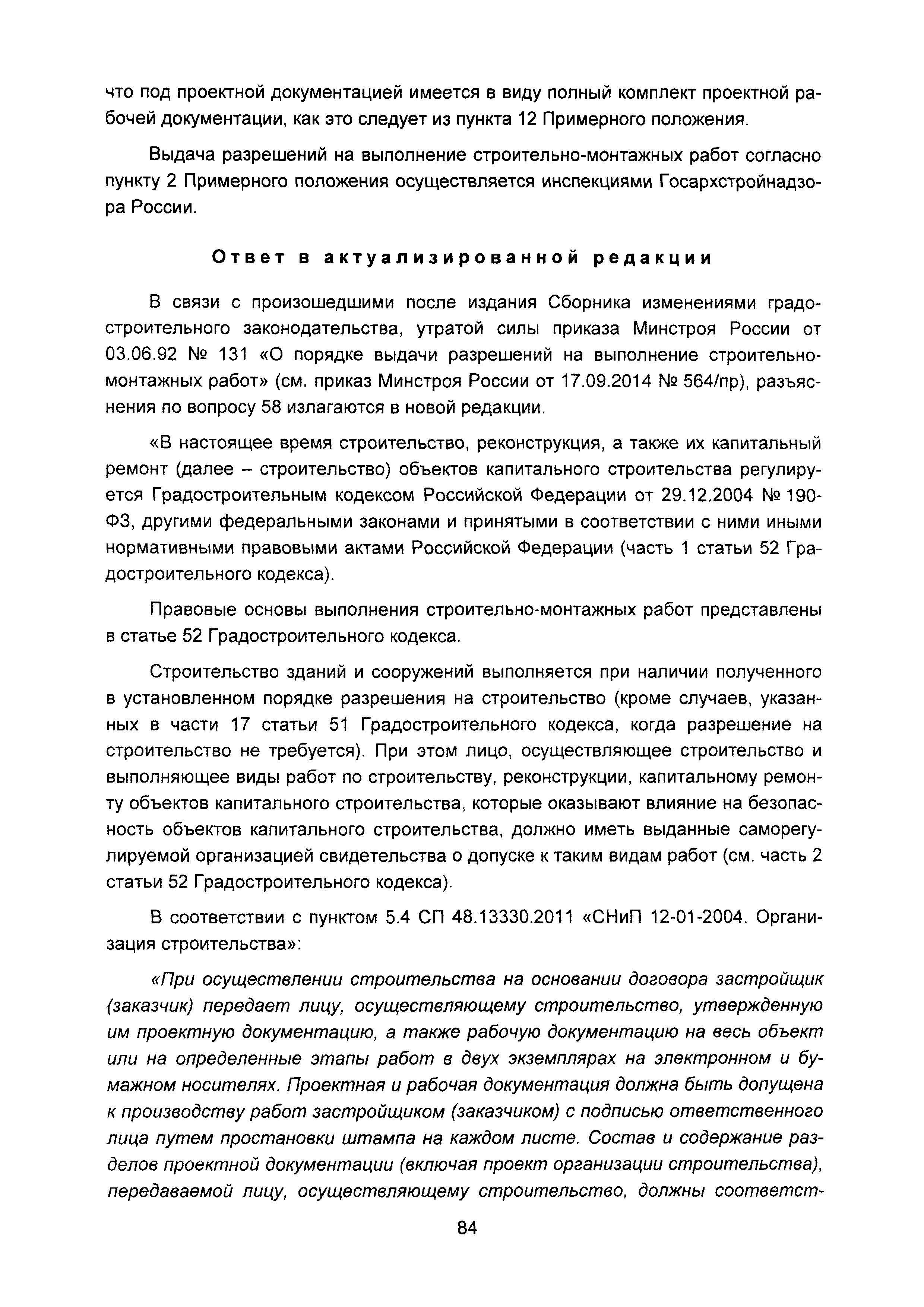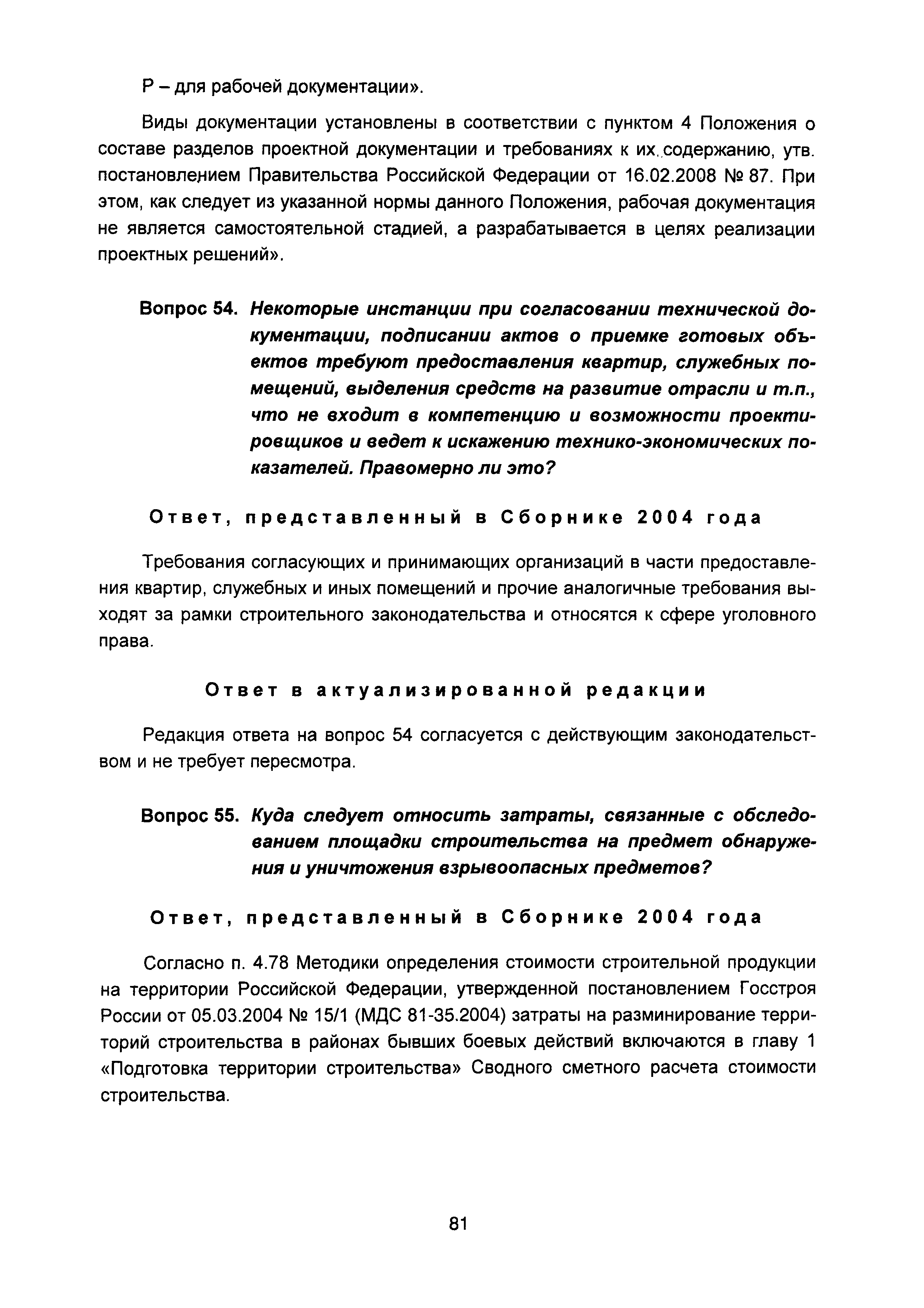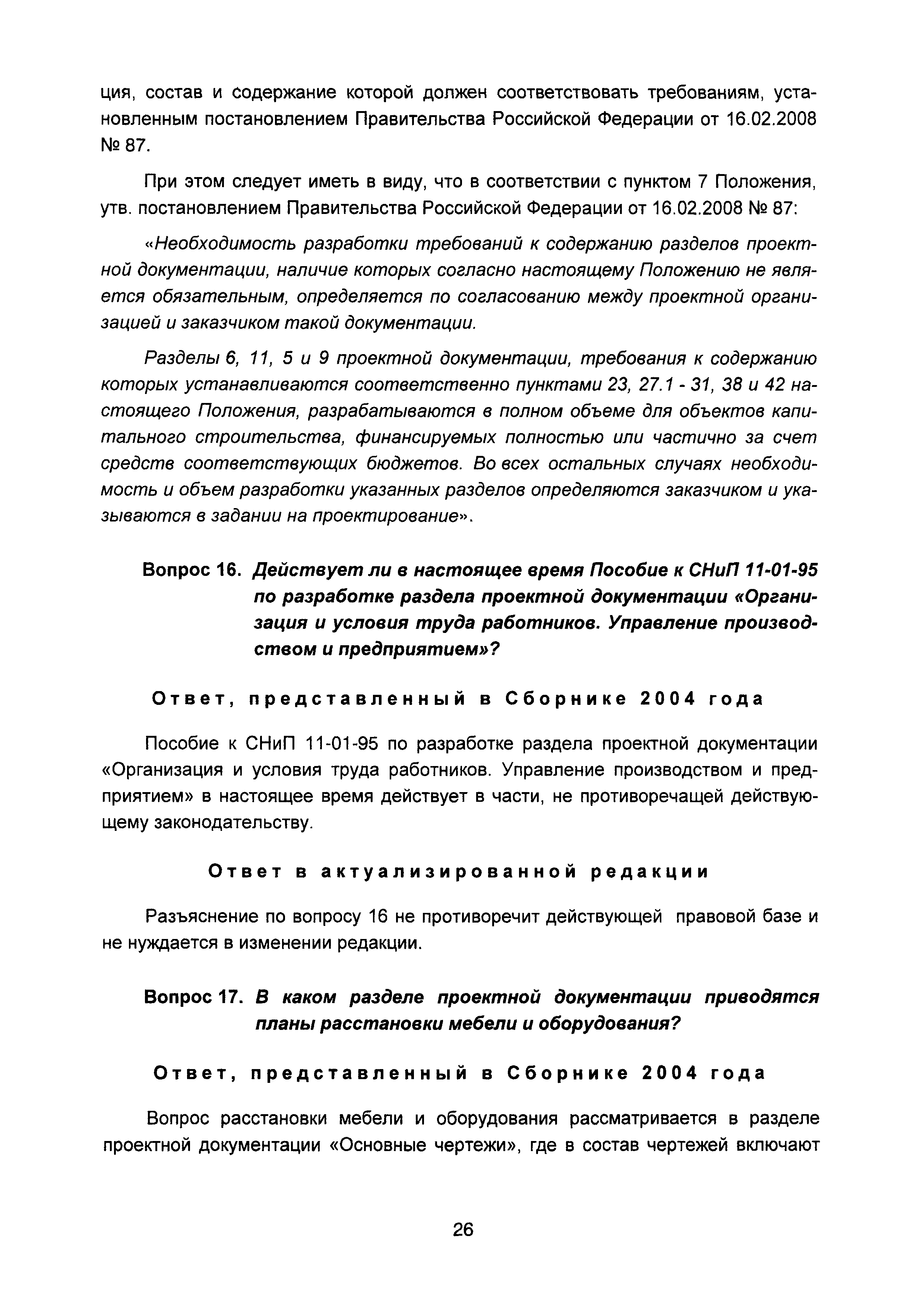 | Оглавление: | Введение I Состав и порядок оформления предпроектной документации II Состав и порядок оформления проектной документации III Состав и порядок оформления рабочей документации IV Природоохранные решения в предпроектной и проектной документации VI Сбор исходных данных, согласование предпроектной и проектной документации, внесение в документацию изменений, авторский надзор VII Выделение земельного участка для строительства объекта VIII Иные вопросы Приложение 1 Перечень основных нормативных правовых актов федерального уровня, регулирующих процесс предпроектной и проектной подготовки строительства в Российской Федерации (по состоянию на 01.01.2004) Перечень основных нормативных правовых актов федерального уровня, регулирующих процесс предпроектной и проектной подготовки строительства в Российской Федерации (по состоянию на 01 .09.2015) Приложение 2 (Исключено) Приложение 3 (Исключено) |