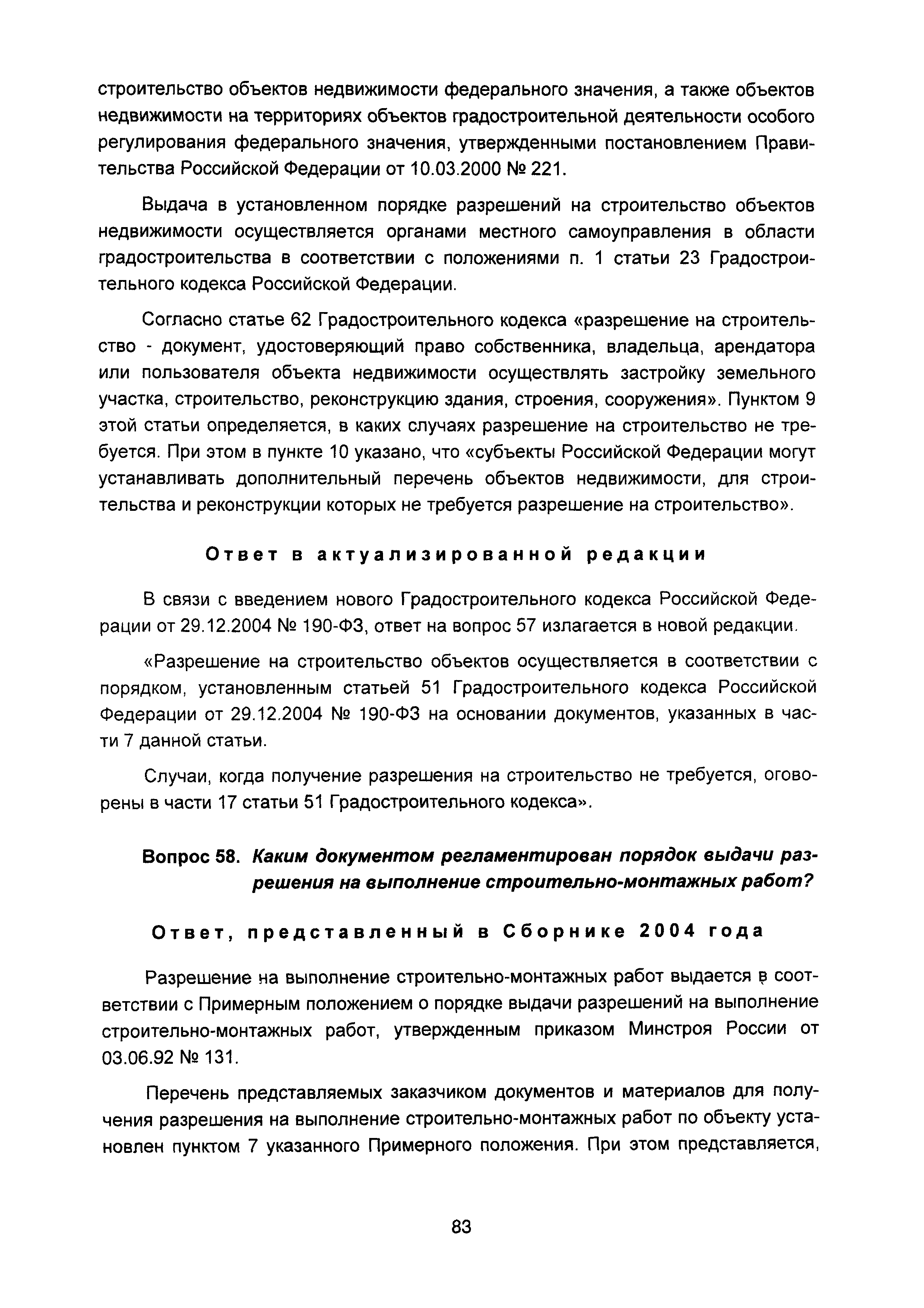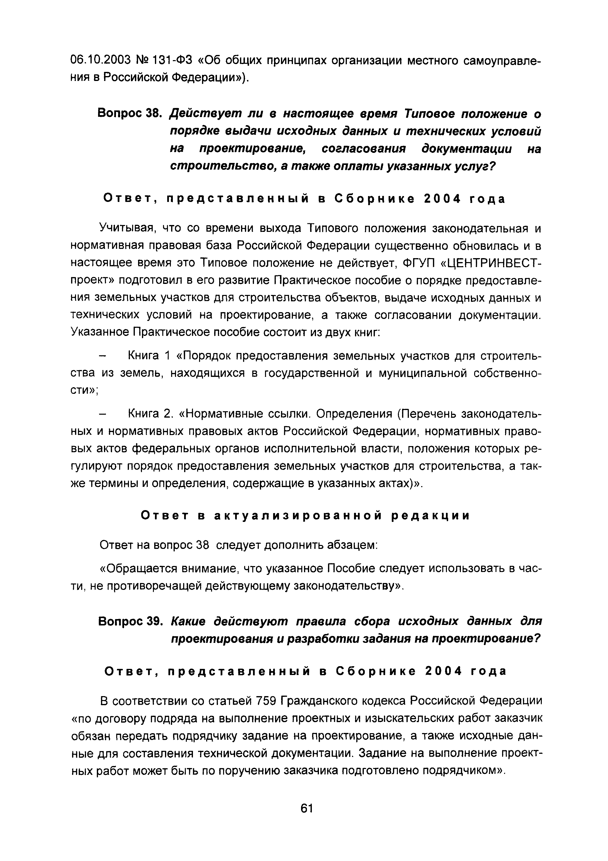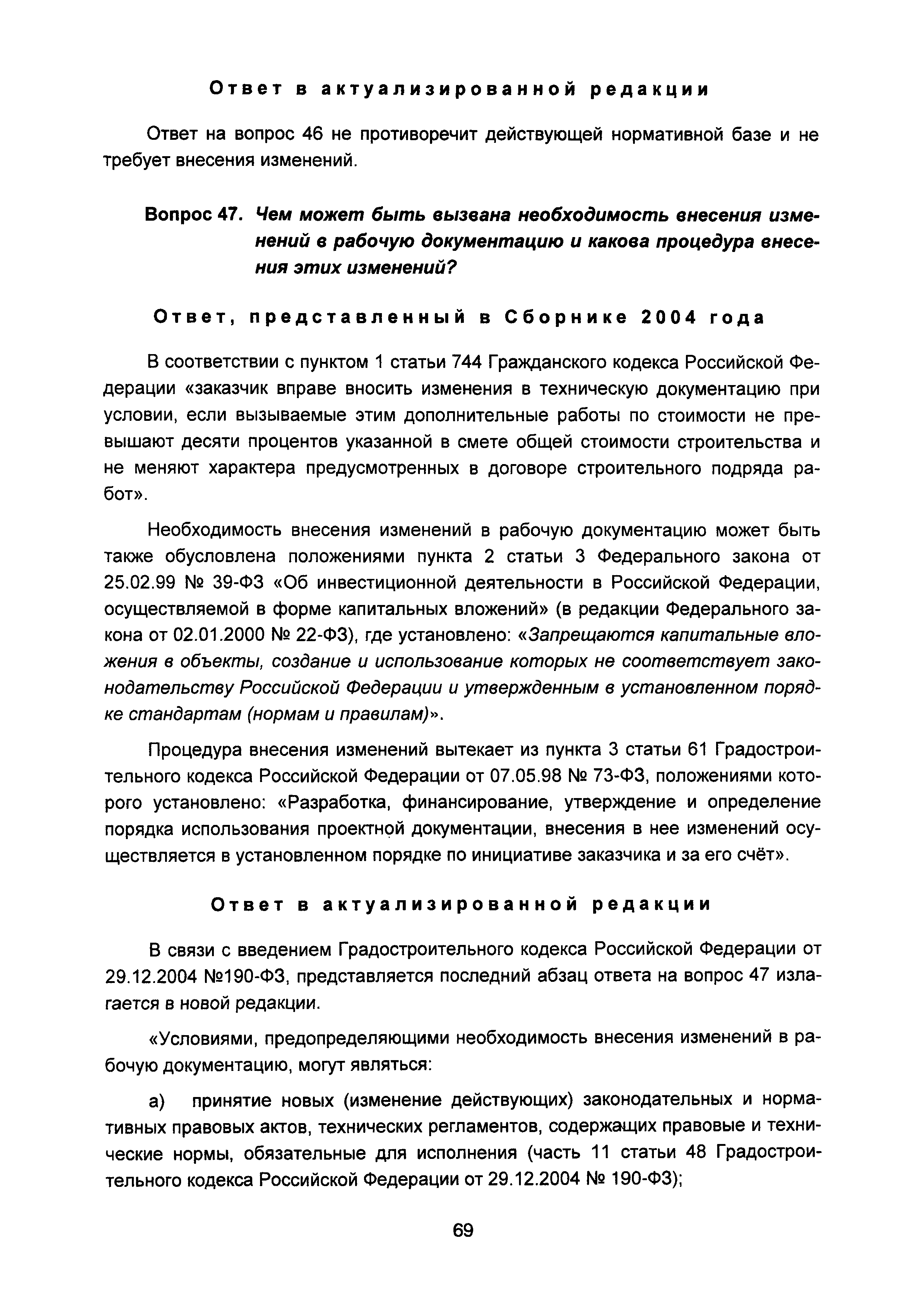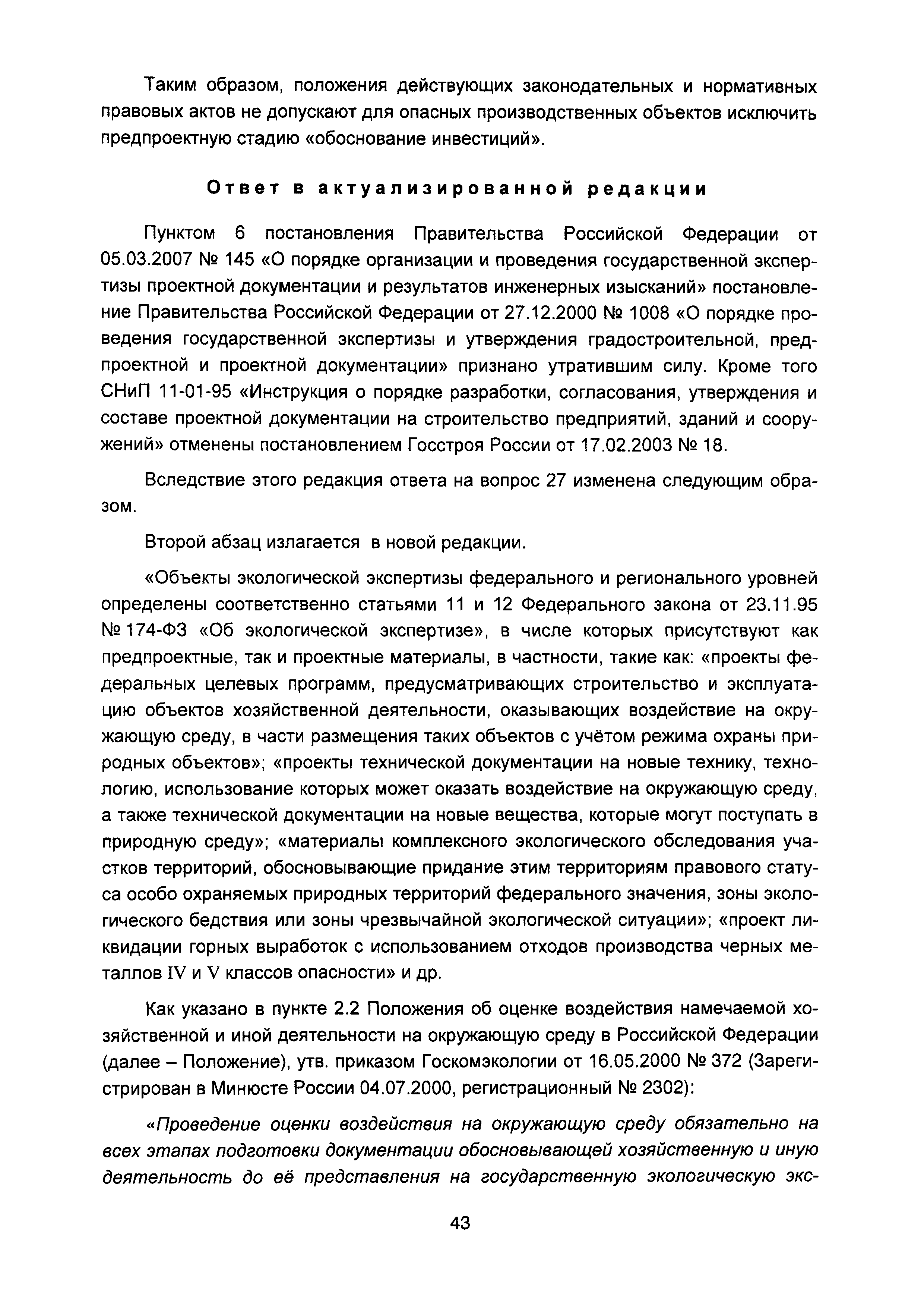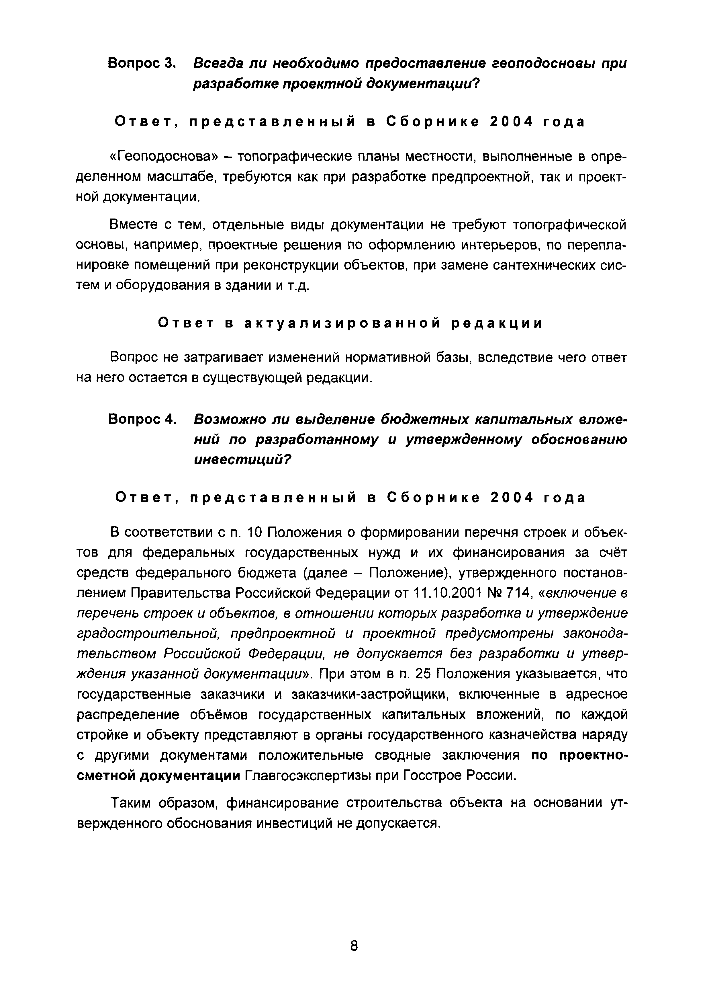 | Оглавление: | Введение I Состав и порядок оформления предпроектной документации II Состав и порядок оформления проектной документации III Состав и порядок оформления рабочей документации IV Природоохранные решения в предпроектной и проектной документации VI Сбор исходных данных, согласование предпроектной и проектной документации, внесение в документацию изменений, авторский надзор VII Выделение земельного участка для строительства объекта VIII Иные вопросы Приложение 1 Перечень основных нормативных правовых актов федерального уровня, регулирующих процесс предпроектной и проектной подготовки строительства в Российской Федерации (по состоянию на 01.01.2004) Перечень основных нормативных правовых актов федерального уровня, регулирующих процесс предпроектной и проектной подготовки строительства в Российской Федерации (по состоянию на 01 .09.2015) Приложение 2 (Исключено) Приложение 3 (Исключено) |