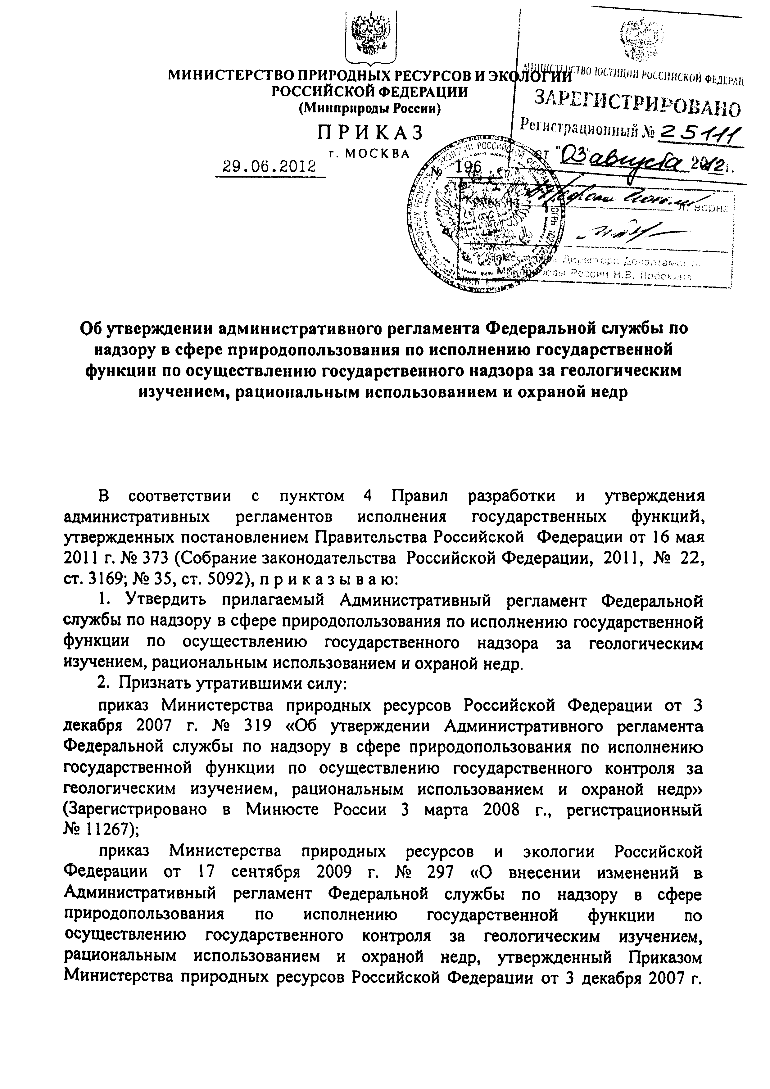 | Название рус.: | Административный регламент Федеральной службы по надзору в сфере природопользования по исполнению государственной функции по осуществлению государственного надзора за геологическим изучением, рациональным использованием и охраной недр |