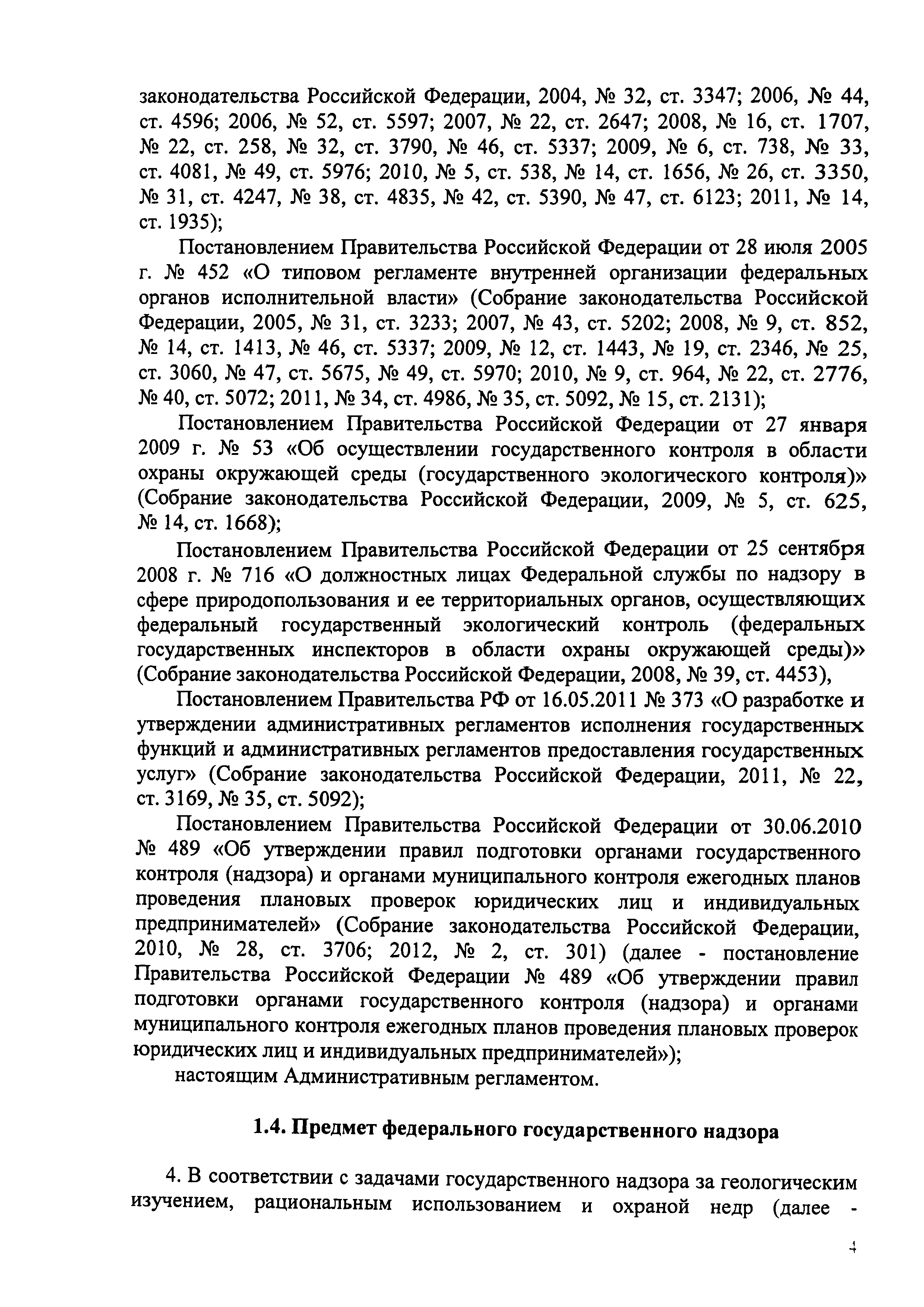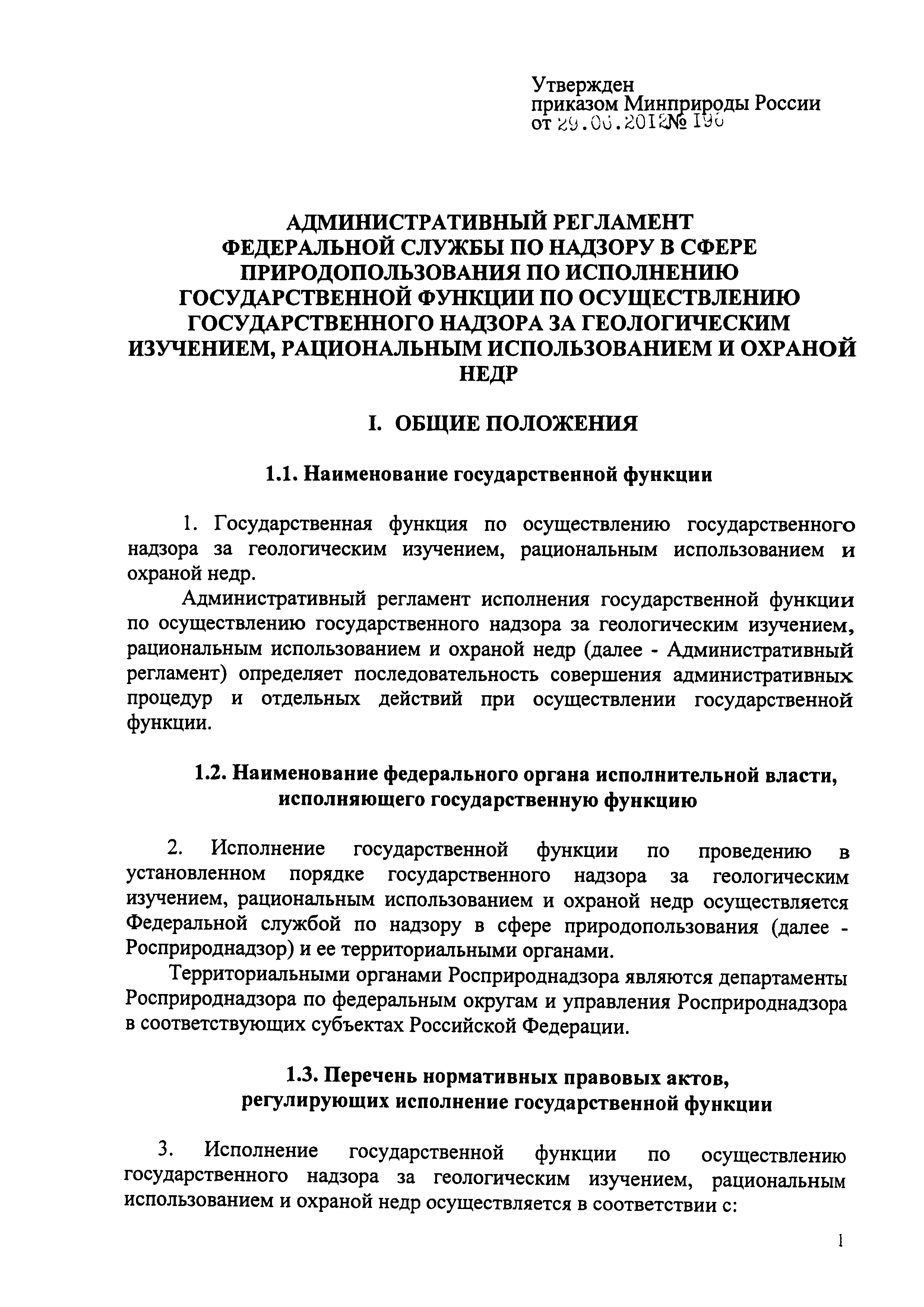 | Область применения: | Административный регламент исполнения государственной функции по осуществлению государственного надзора за геологическим изучением, рациональным использованием и охраной недр определяет последовательность совершения административных процедур и отдельных действий при осуществлении государственной функции |