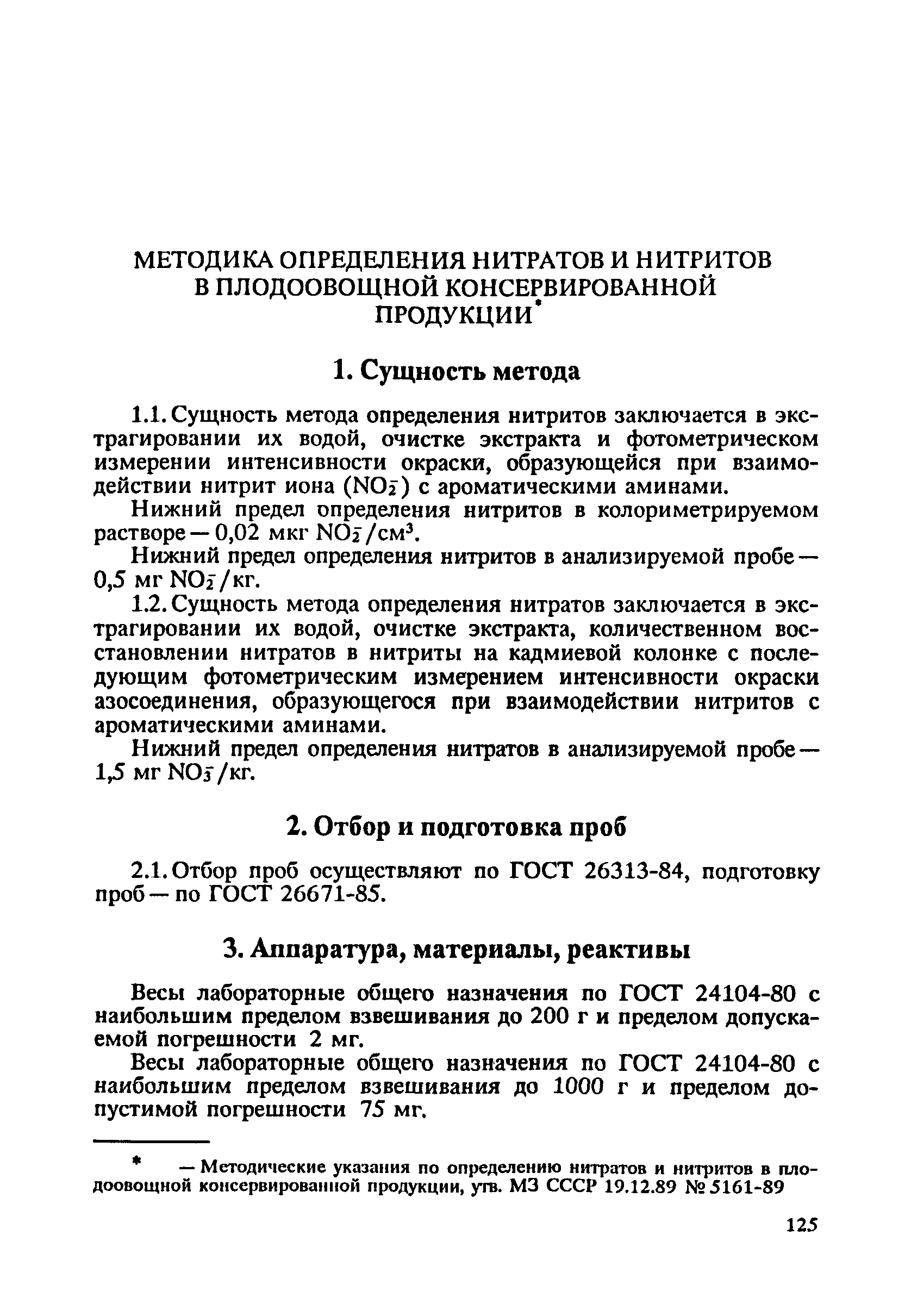 Методика определения нитратов и нитритов в плодоовощной консервированной продукции| Статус: | справочные материалы, мп, тпр | | Название рус.: | Методика определения нитратов и нитритов в плодоовощной консервированной продукции | | Дата добавления в базу: | 12.02.2016 | | Дата актуализации: | 01.01.2021 | | Оглавление: | 1. Сущность метода 2. Отбор и подготовка проб 3. Аппаратура, материалы, реактивы 4. Требования техники безопасности при проведении испытаний 5. Подготовка к испытанию 6. Проведение испытания 7. Обработка результатов | | Разработан: | Научно-исследовательский институт медицинского профиля