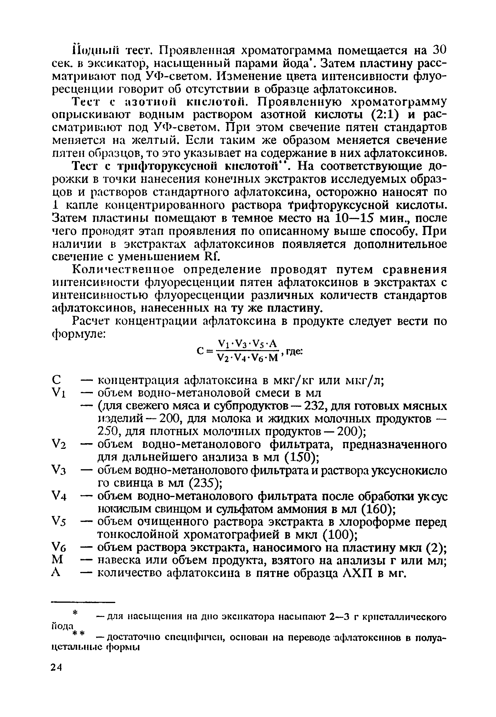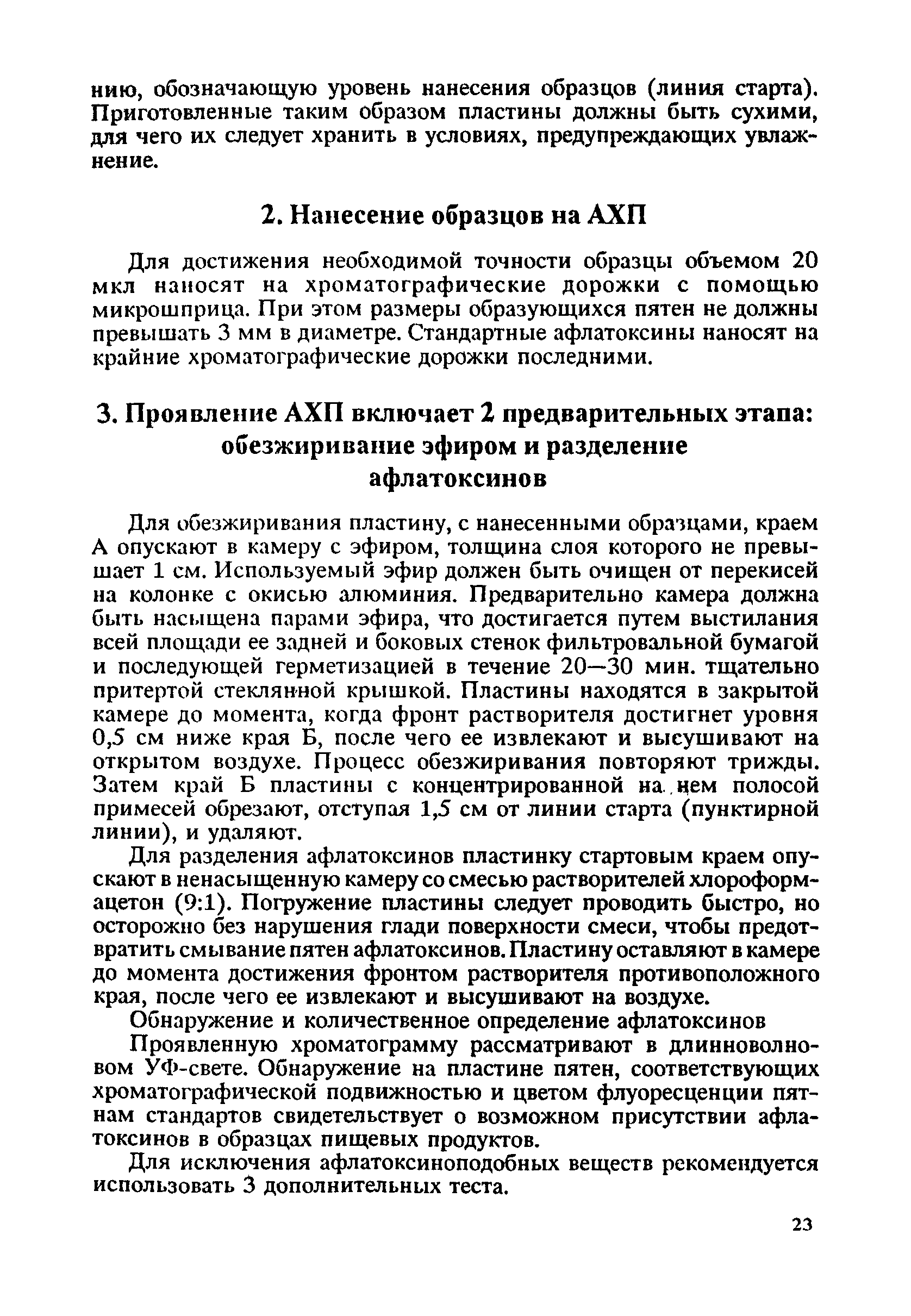 Методика определения афлатоксинов в продуктах животного происхождения| Статус: | справочные материалы, мп, тпр | | Название рус.: | Методика определения афлатоксинов в продуктах животного происхождения | | Дата добавления в базу: | 12.02.2016 | | Дата актуализации: | 01.01.2021 | | Оглавление: | Оборудование и материалы 1. Подготовка аналитической хроматографической пластины (АХП) 2. Нанесение образцов на АХП 3. Проявление АХП включает 2 предварительных этапа: обезжиривание эфиром и разделение афлатоксинов | | Разработан: | Научно-исследовательский институт медицинского профиля