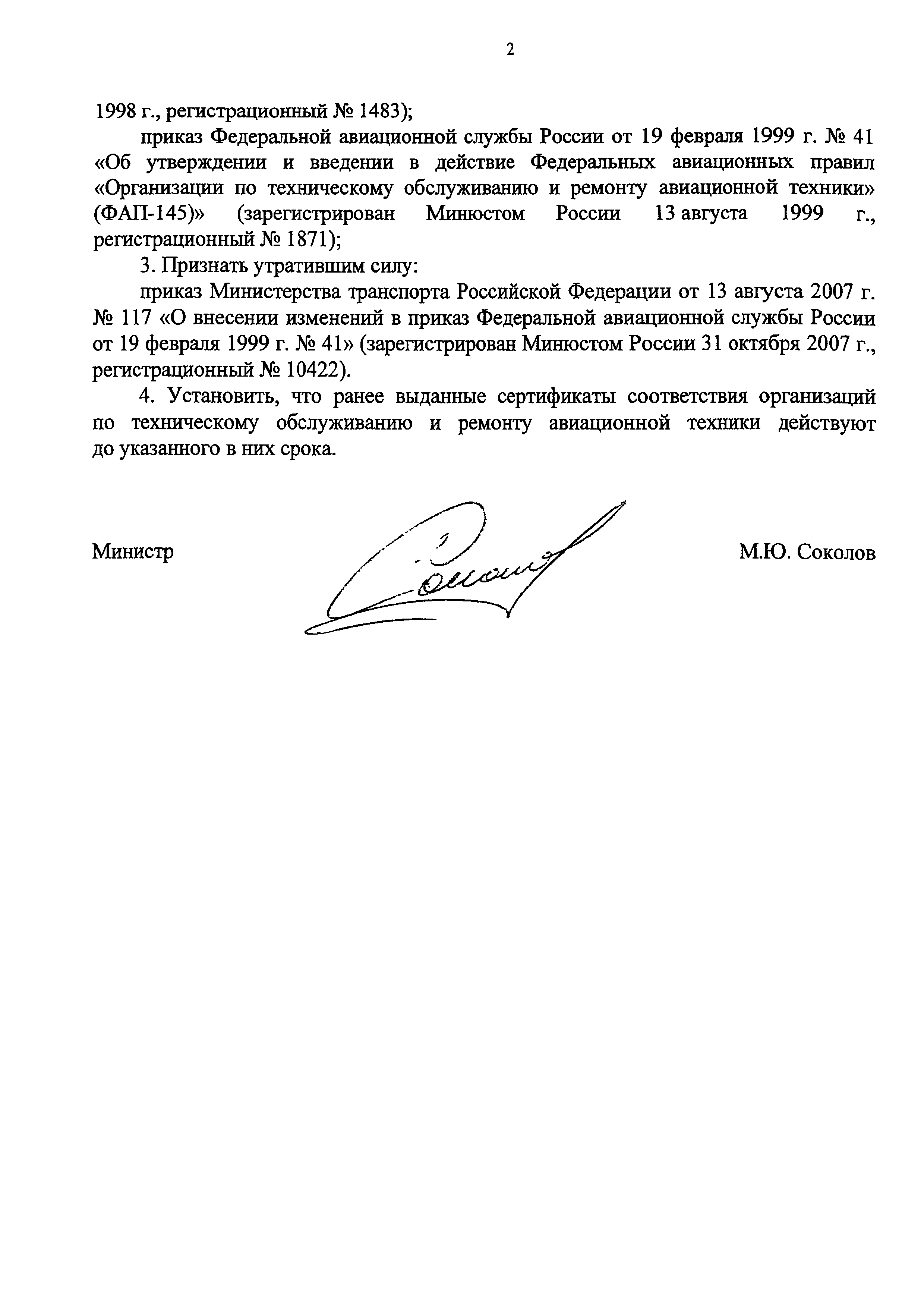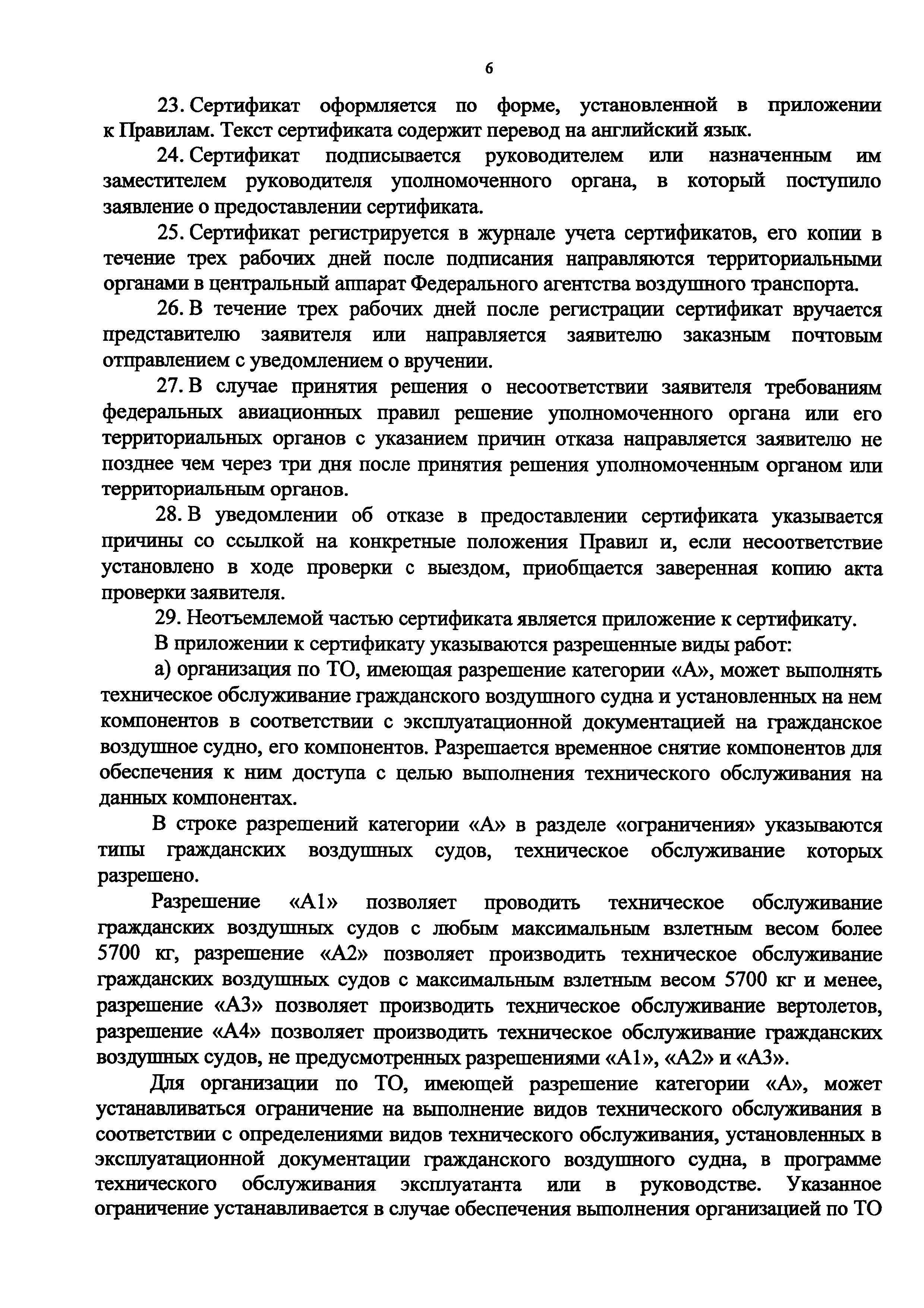 | Название рус.: | Федеральные авиационные правила "Требования к юридическим лицам, индивидуальным предпринимателям, осуществляющим техническое обслуживание гражданских воздушных судов. Форма и порядок выдачи документа, подтверждающего соответствие юридических лиц, индивидуальных предпринимателей, осуществляющих техническое обслуживание гражданских воздушных судов, требованиям федеральных авиационных правил" |