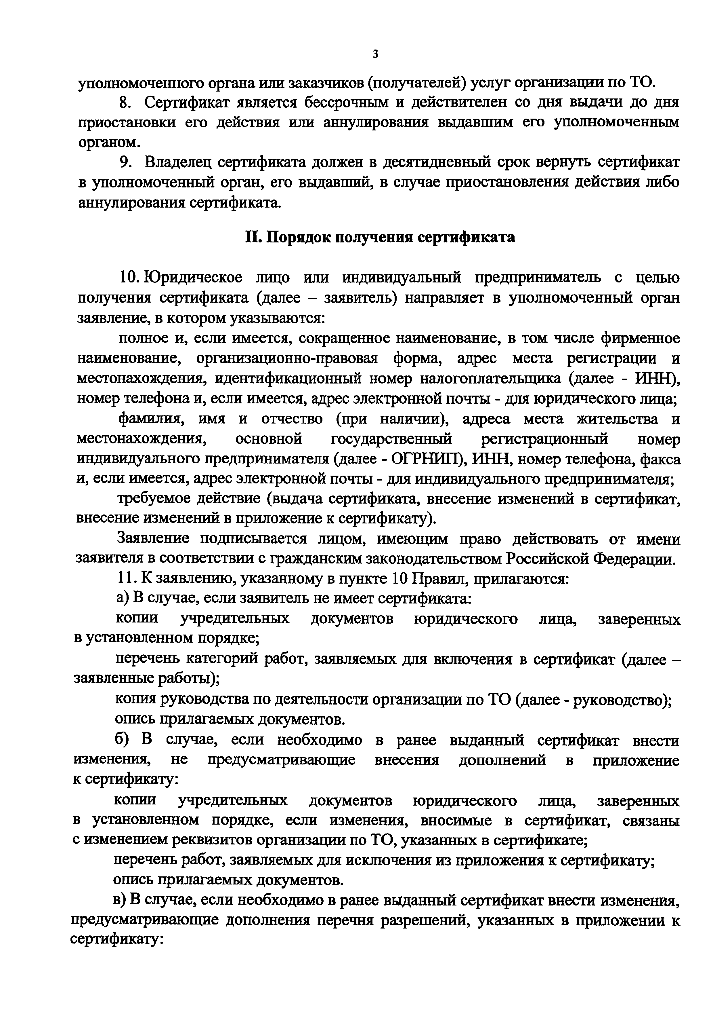 | Оглавление: | I. Общие положения II. Порядок получения сертификата III. Требования к помещениям, оборудованию и условиям выполнения работ в организации по ТО IV. Требования к персоналу организации по ТО V. Требования к организации деятельности организации по ТО Приложение. Форма сертификата организации по техническому обслуживанию |