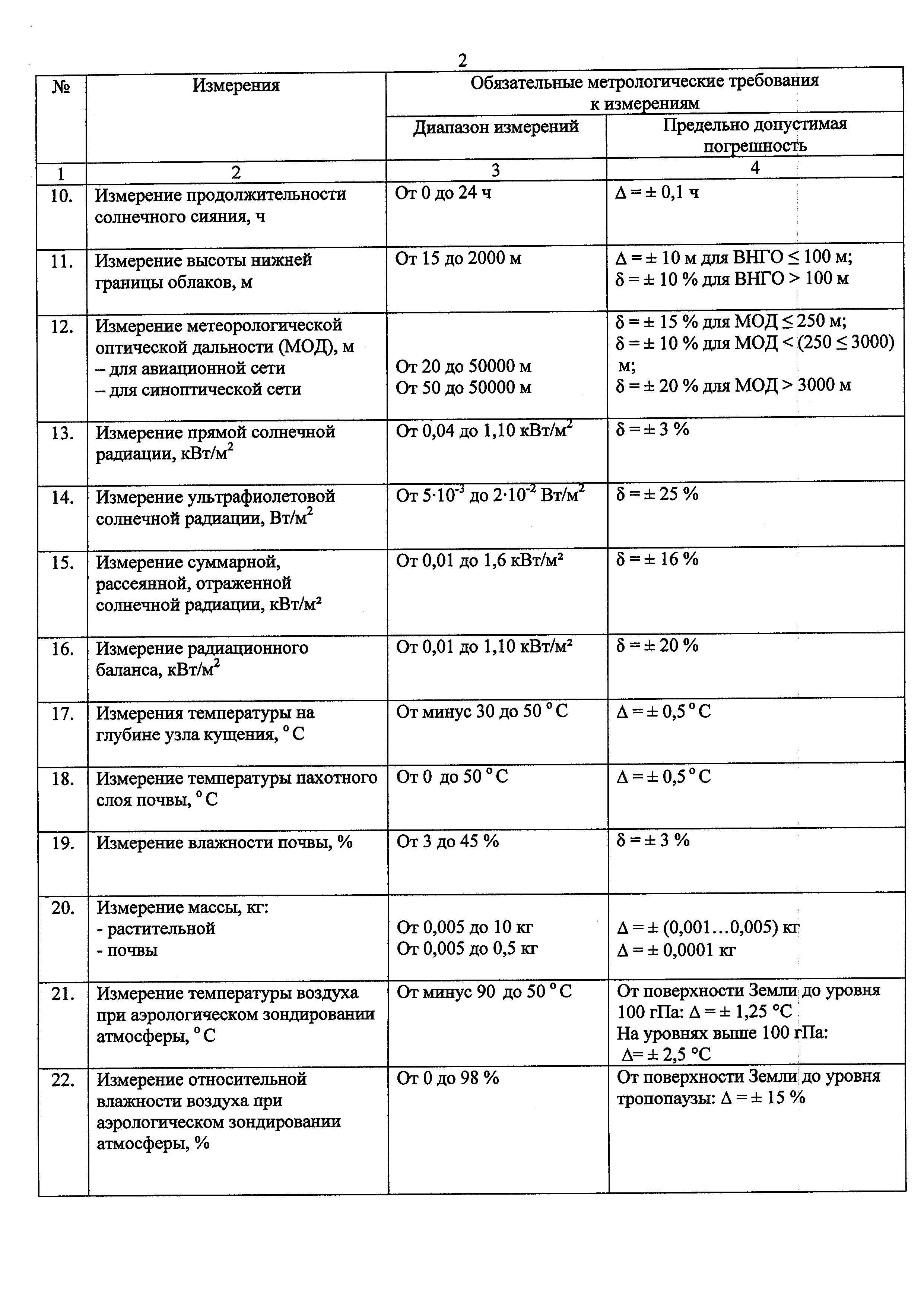 Скачать Перечень измерений, относящихся к сфере государственного регулирования обеспечения единства измерений и выполняемых при осуществлении деятельности в области гидрометеорологии и смежных с ней областях, и обязательных метрологических требований к ним, в том числе показателей точности измеренийДата актуализации: 01.01.2021