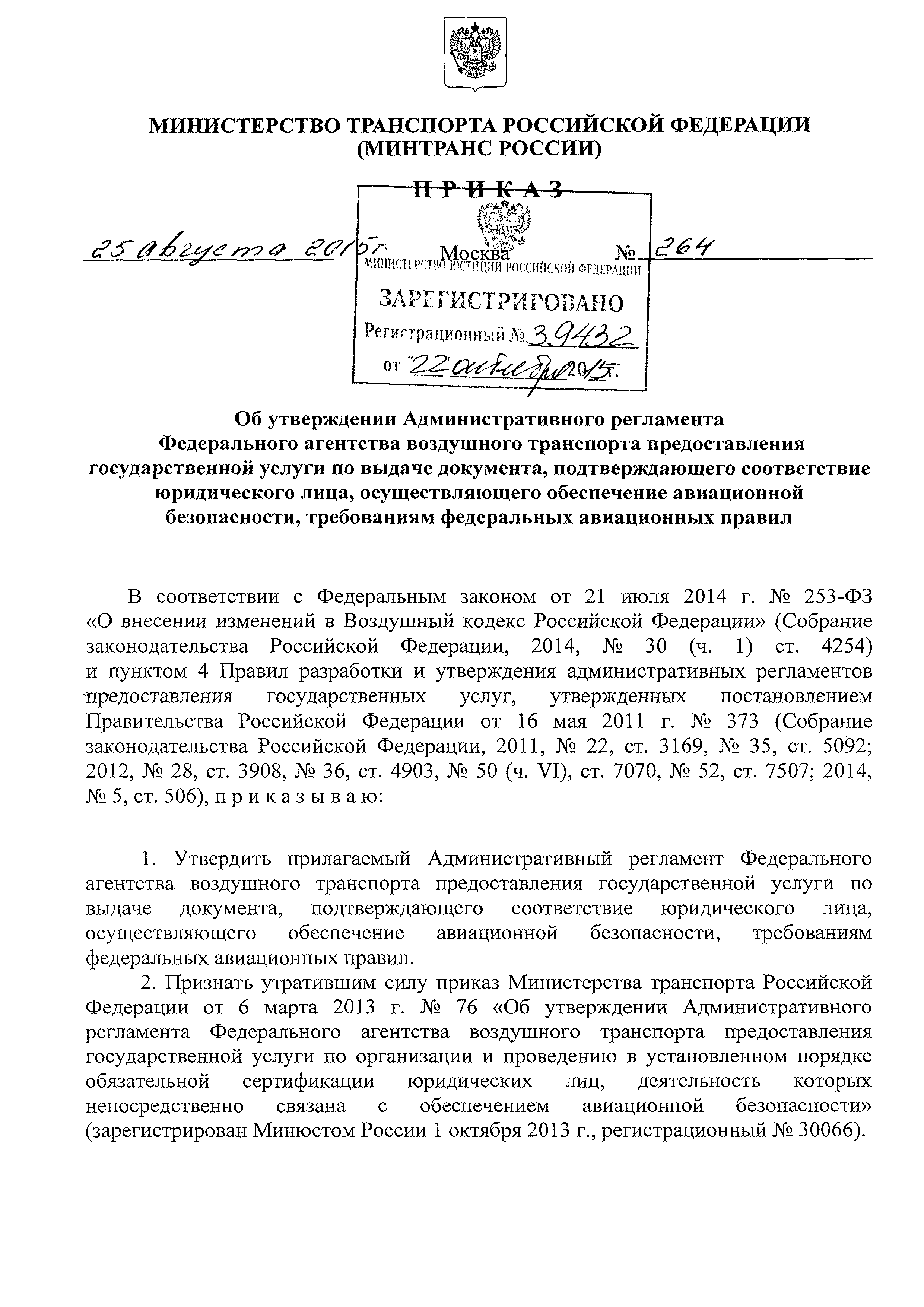 | Утверждён: | 25.08.2015 Министерство транспорта Российской Федерации (Russian Federation Ministry of Transportation 264) |