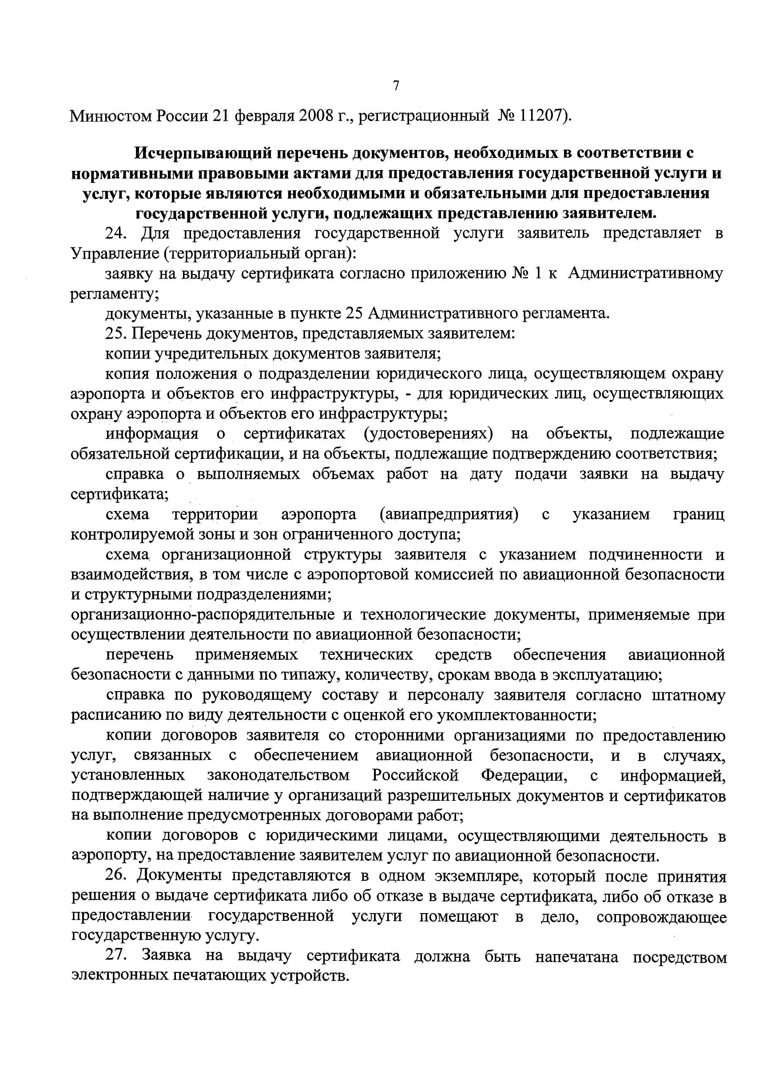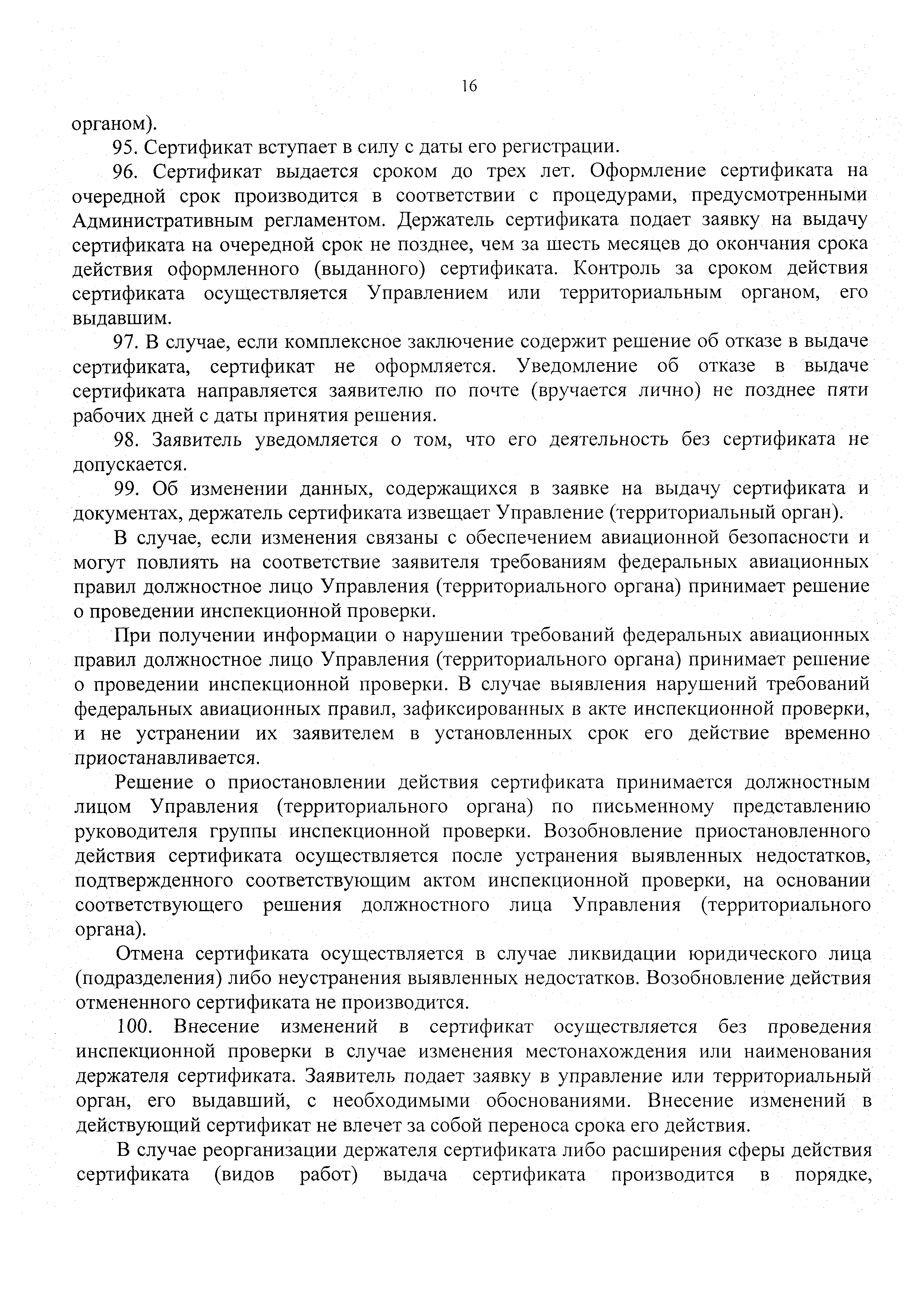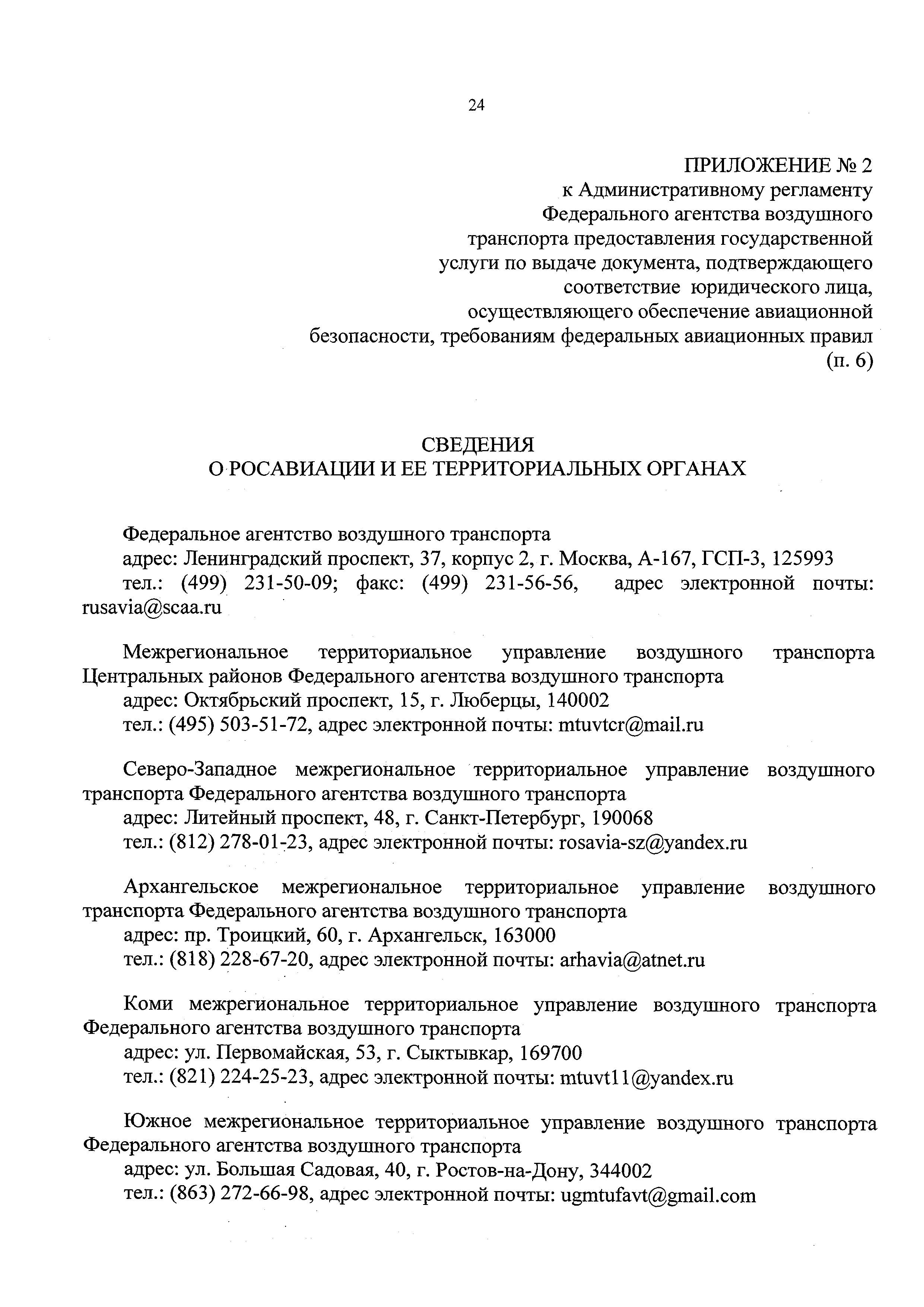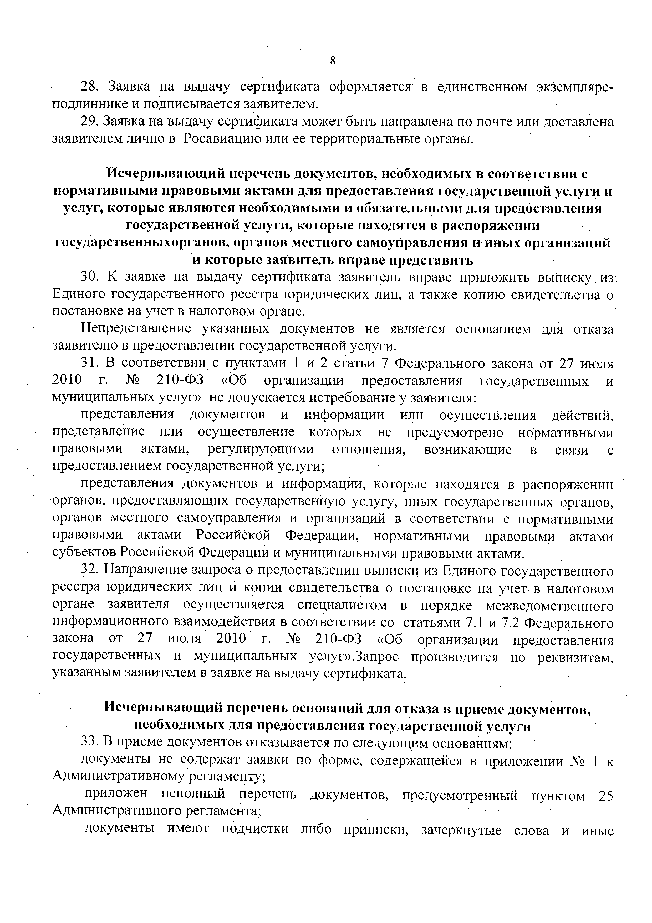 | Оглавление: | I. Общие положения II. Стандарт предоставления государственной услуги III. Состав, последовательность и сроки выполнения административных процедур (действий), требования к порядку их выполнения, в том числе особенности выполнения административных процедур (действий) в электронной форме IV. Формы контроля за исполнением регламента V. Досудебный (внесудебный) порядок обжалования решений и действий (бездействия) федерального органа исполнительной власти, предоставляющего государственную услугу, а также его должностных лиц Приложение № 1. Заявка на выдачу сертификата Приложение № 2. Сведения о Росавиации и ее территориальных органах Приложение № 3. Блок-схема предоставления государственной услуги Приложение № 4. Сертификат |