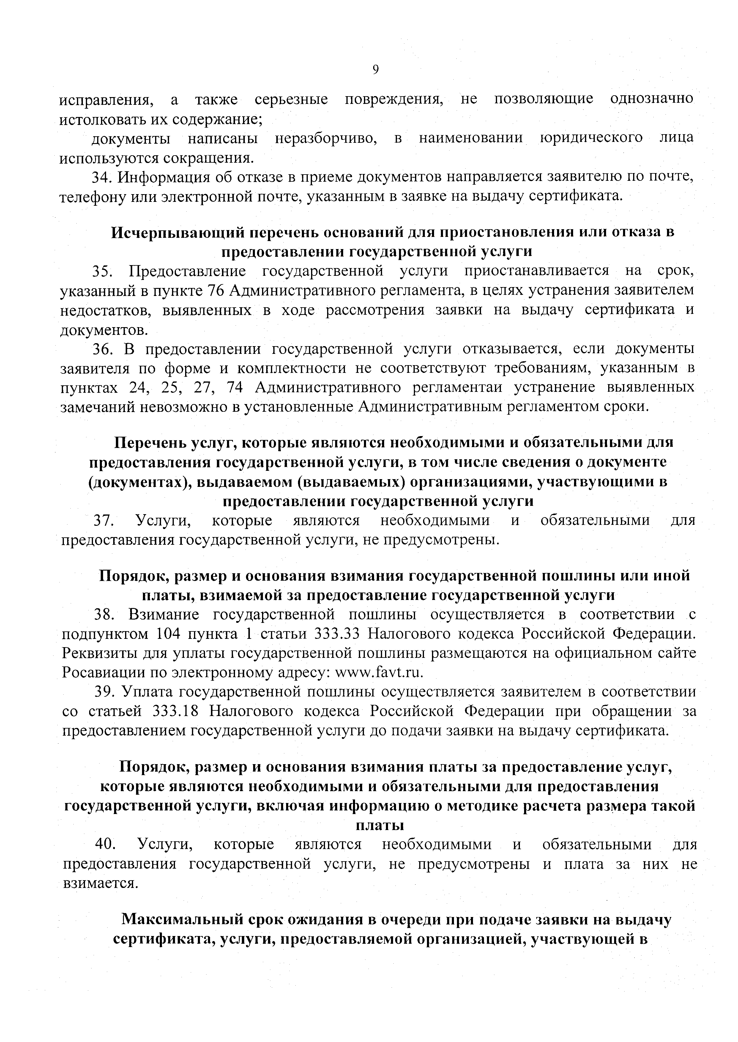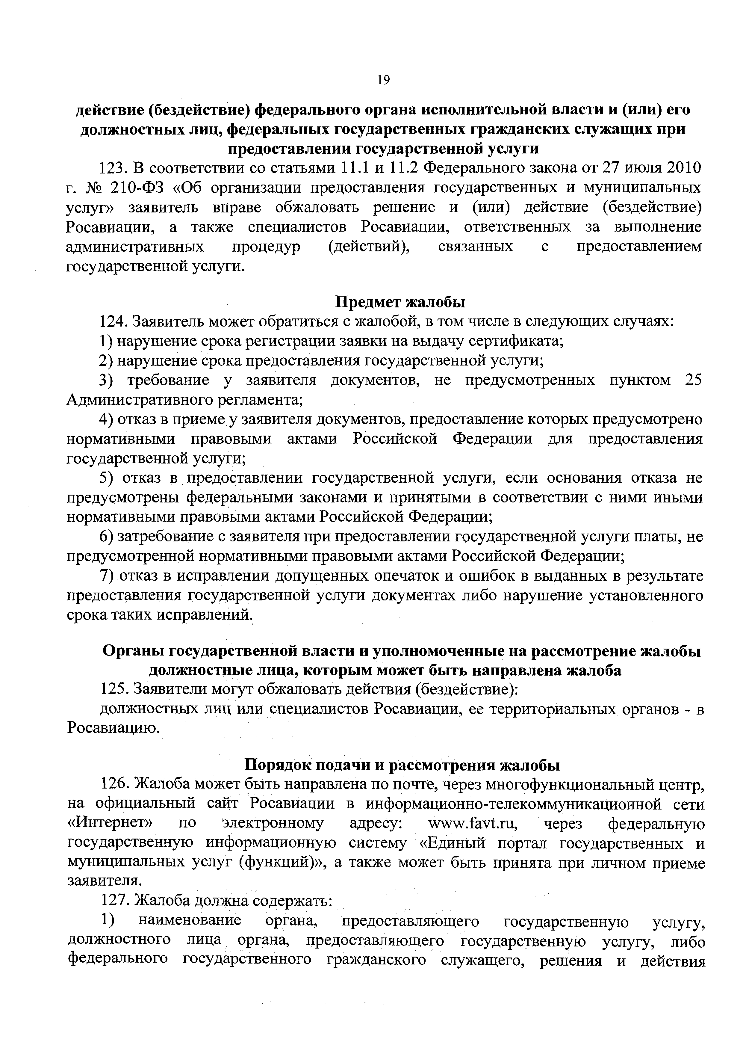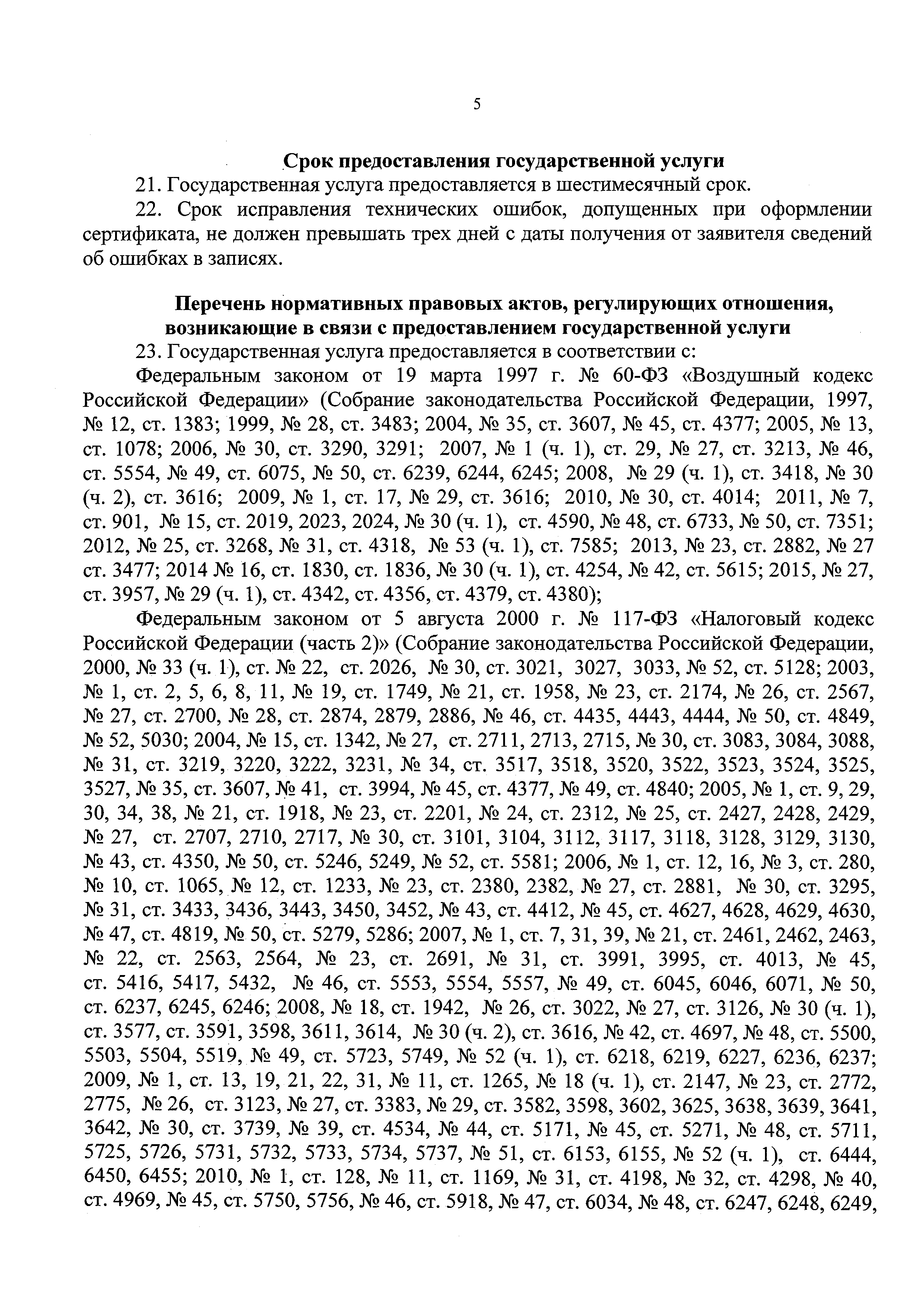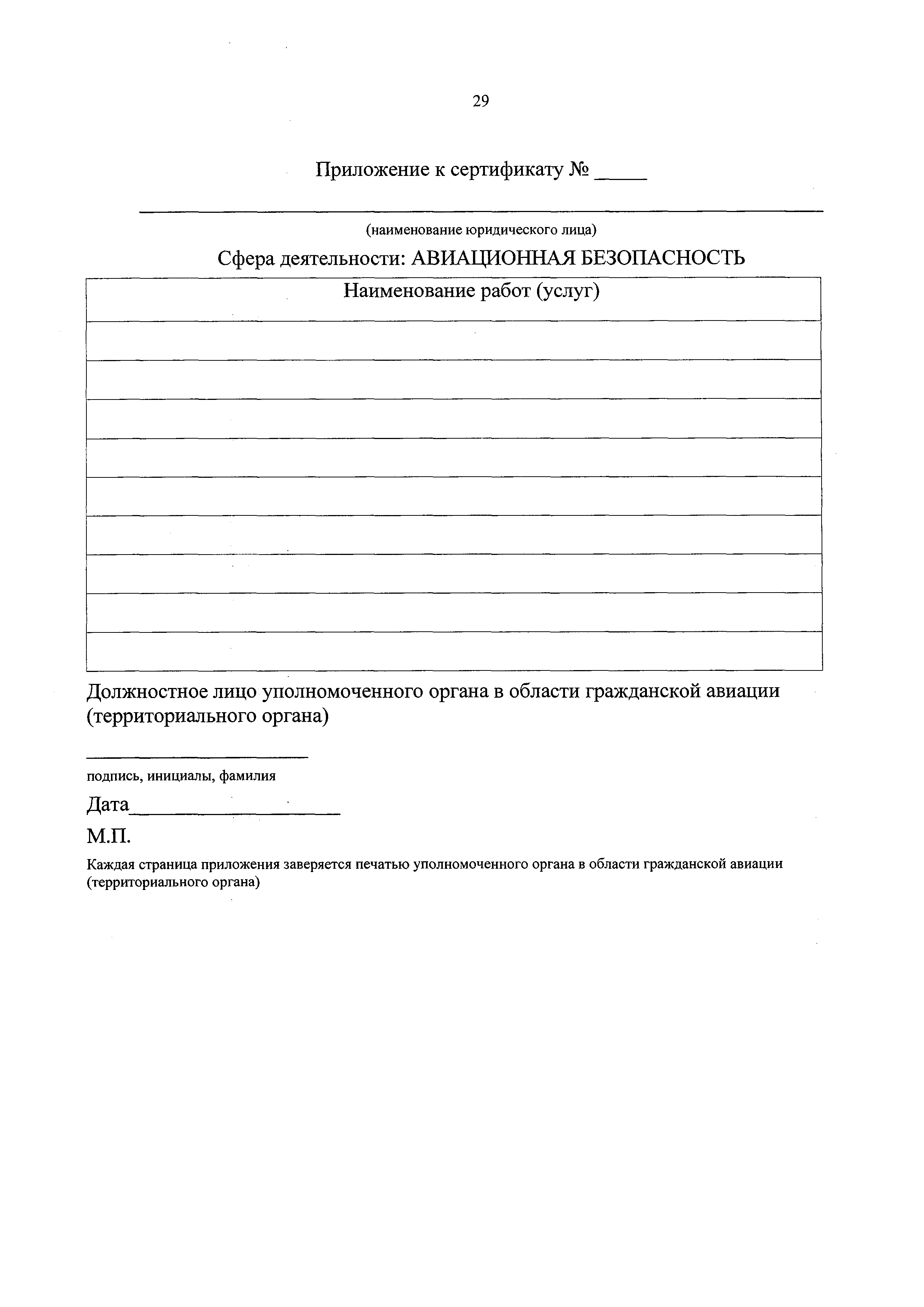 | Оглавление: | I. Общие положения II. Стандарт предоставления государственной услуги III. Состав, последовательность и сроки выполнения административных процедур (действий), требования к порядку их выполнения, в том числе особенности выполнения административных процедур (действий) в электронной форме IV. Формы контроля за исполнением регламента V. Досудебный (внесудебный) порядок обжалования решений и действий (бездействия) федерального органа исполнительной власти, предоставляющего государственную услугу, а также его должностных лиц Приложение № 1. Заявка на выдачу сертификата Приложение № 2. Сведения о Росавиации и ее территориальных органах Приложение № 3. Блок-схема предоставления государственной услуги Приложение № 4. Сертификат |