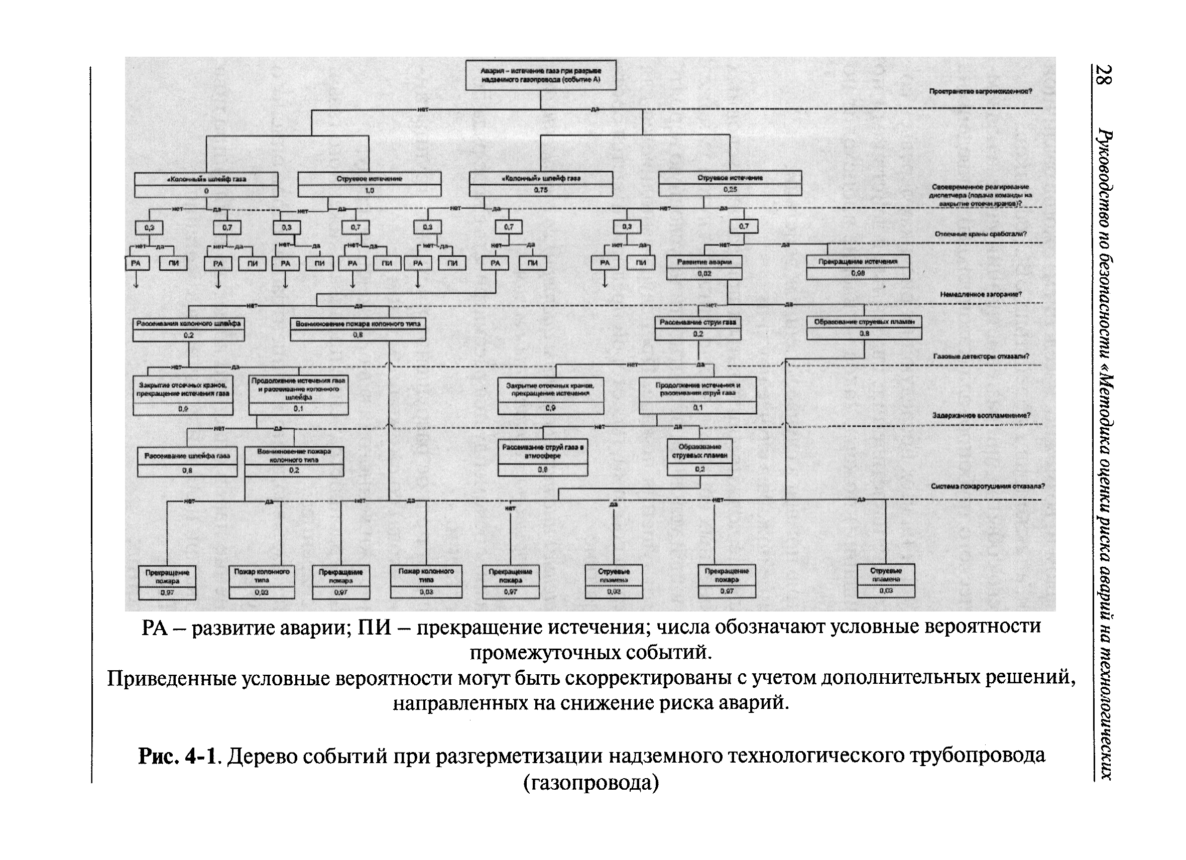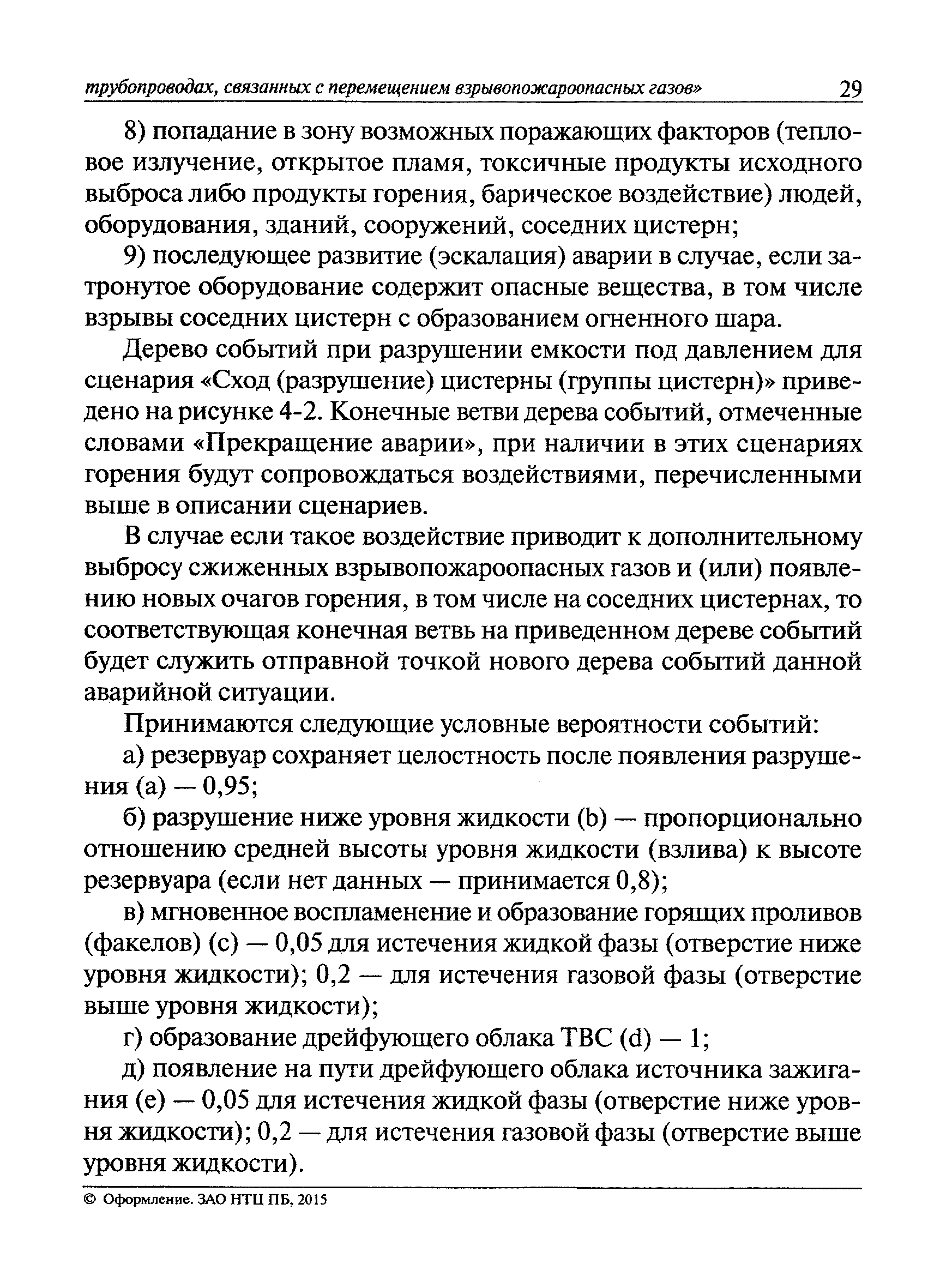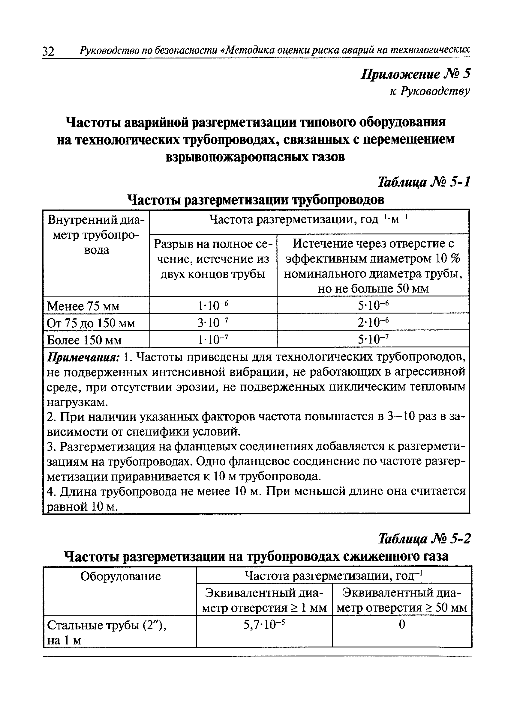 | Оглавление: | I Общие положения II Общие рекомендации по оценке риска аварий на технологических трубопроводах, связанных с перемещением взрывопожароопасных газов III Планирование и организация работ IV Идентификация опасностей аварий V Оценка риска аварий VI Определение степени опасности технологических трубопроводов, связанных с перемещением взрывопожароопасных газов VII Рекомендации по снижению риска аварий Приложение № 1. Список сокращений Приложение № 2. Термины и определения Приложение № 3. Исходная информация, необходимая для оценки степени риска аварий на технологических трубопроводах, связанных с перемещением взрывопожароопасных газов Приложение № 4. Рекомендации по выделению типовых сценариев аварий на технологических трубопроводах, связанных с перемещением взрывопожароопасных газов Приложение № 5. Частоты аварийной разгерметизации типового оборудования на технологических трубопроводах, связанных с перемещением взрывопожароопасных газов Приложение № 6. Рекомендуемый порядок расчета истечения пожаровзрывоопасных газов из технологических трубопроводов Приложение № 7. Методические документы для оценки возможных последствий аварий Приложение № 8. Условные вероятности воспламенения аварийных выбросов взрывопожароопасных веществ с учетом размещения источников зажигания |
