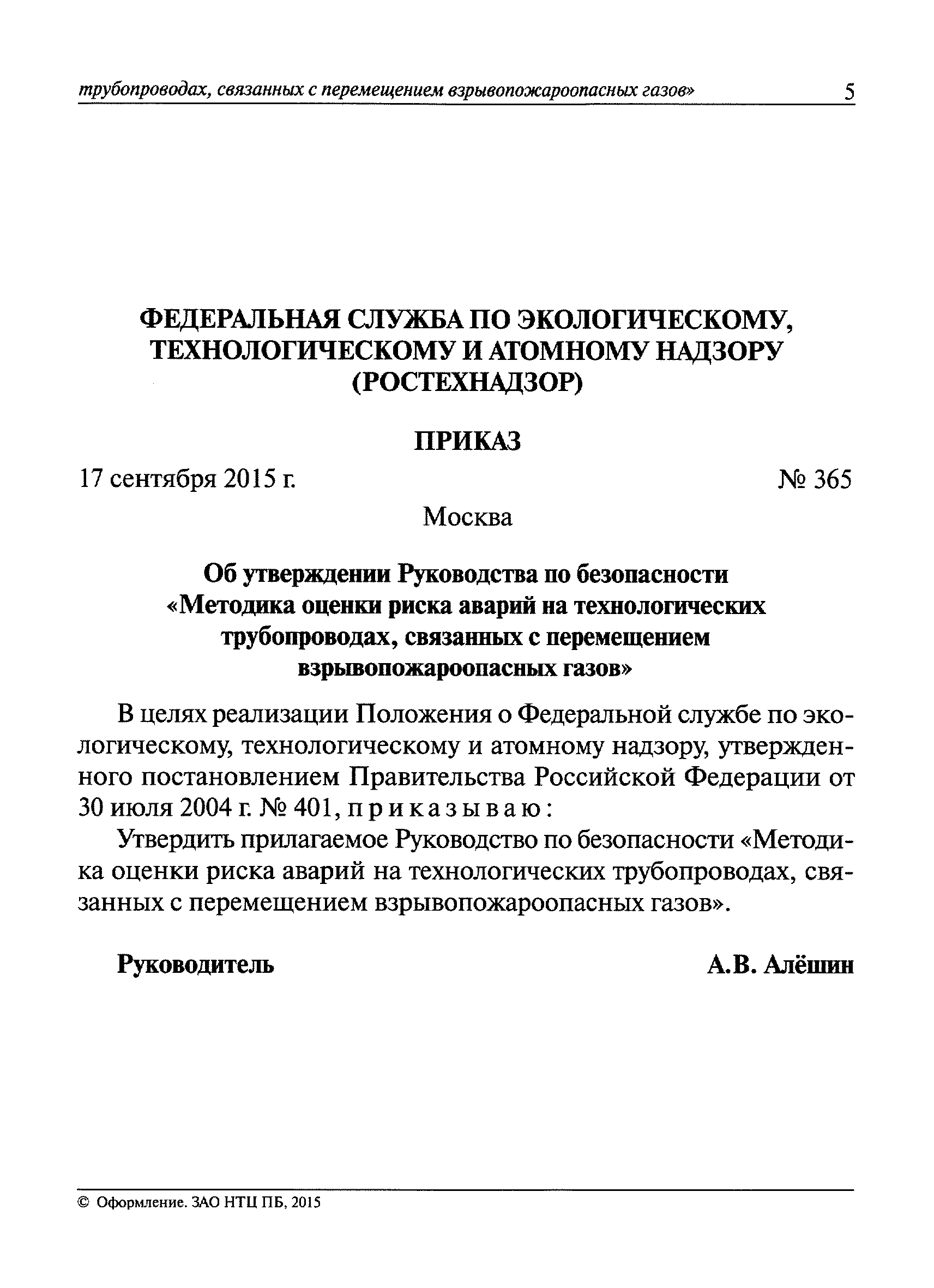 | Утверждён: | 17.09.2015 Федеральная служба по экологическому, технологическому и атомному надзору (365) |