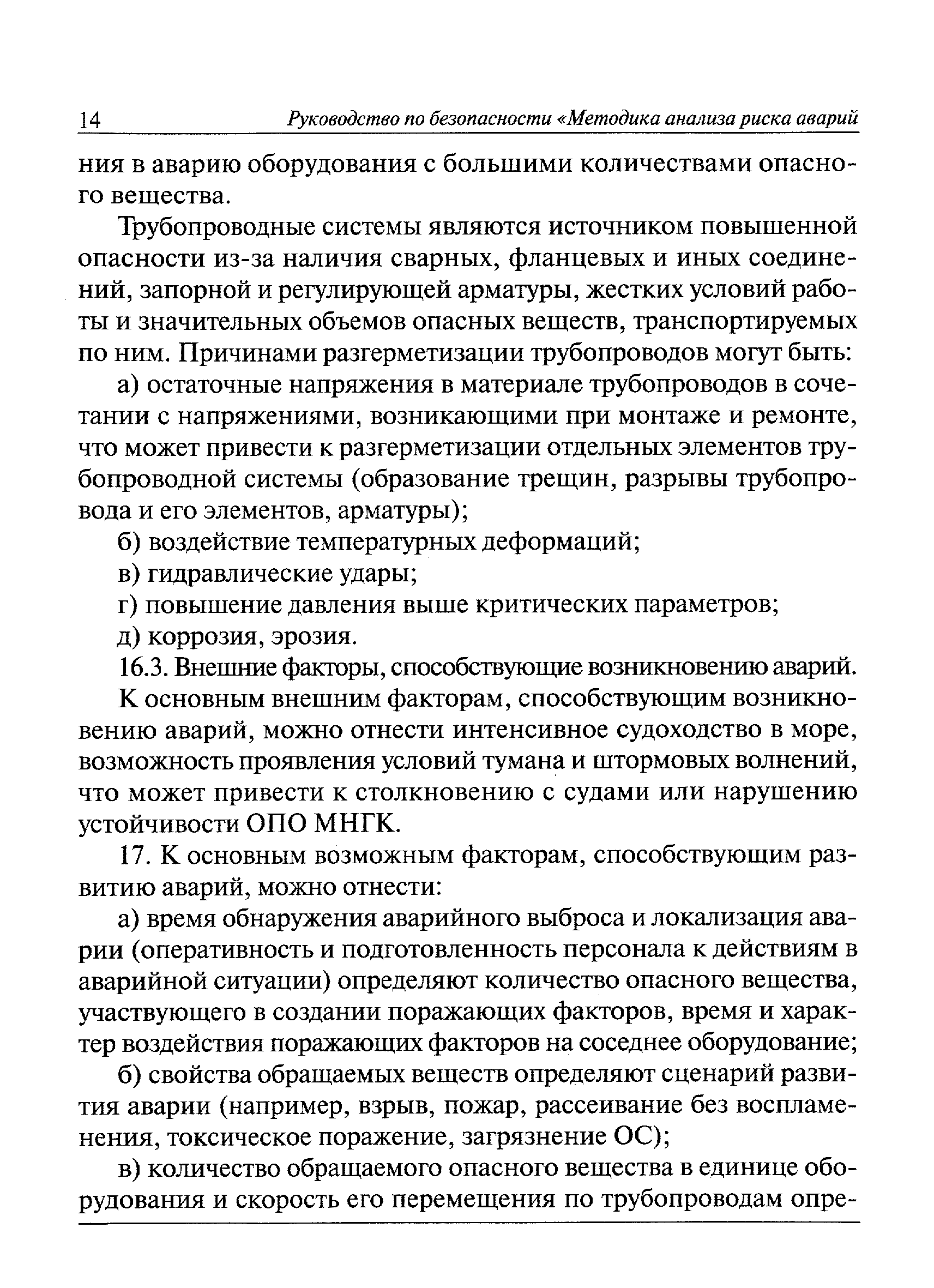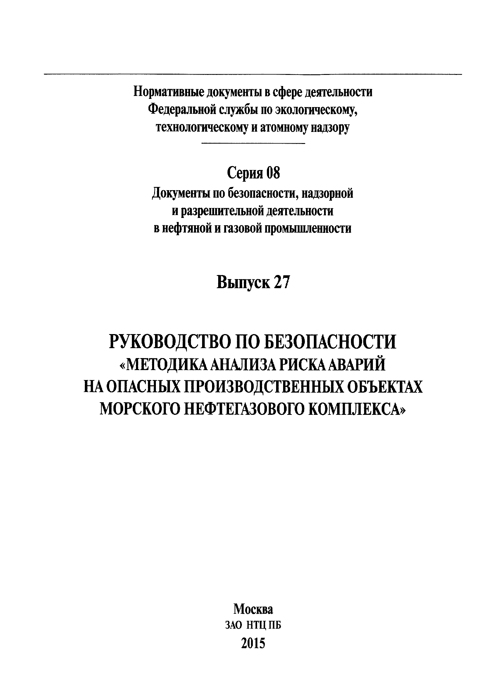 | Название рус.: | Руководство по безопасности "Методика анализа риска аварий на опасных производственных объектах морского нефтегазового комплекса" |