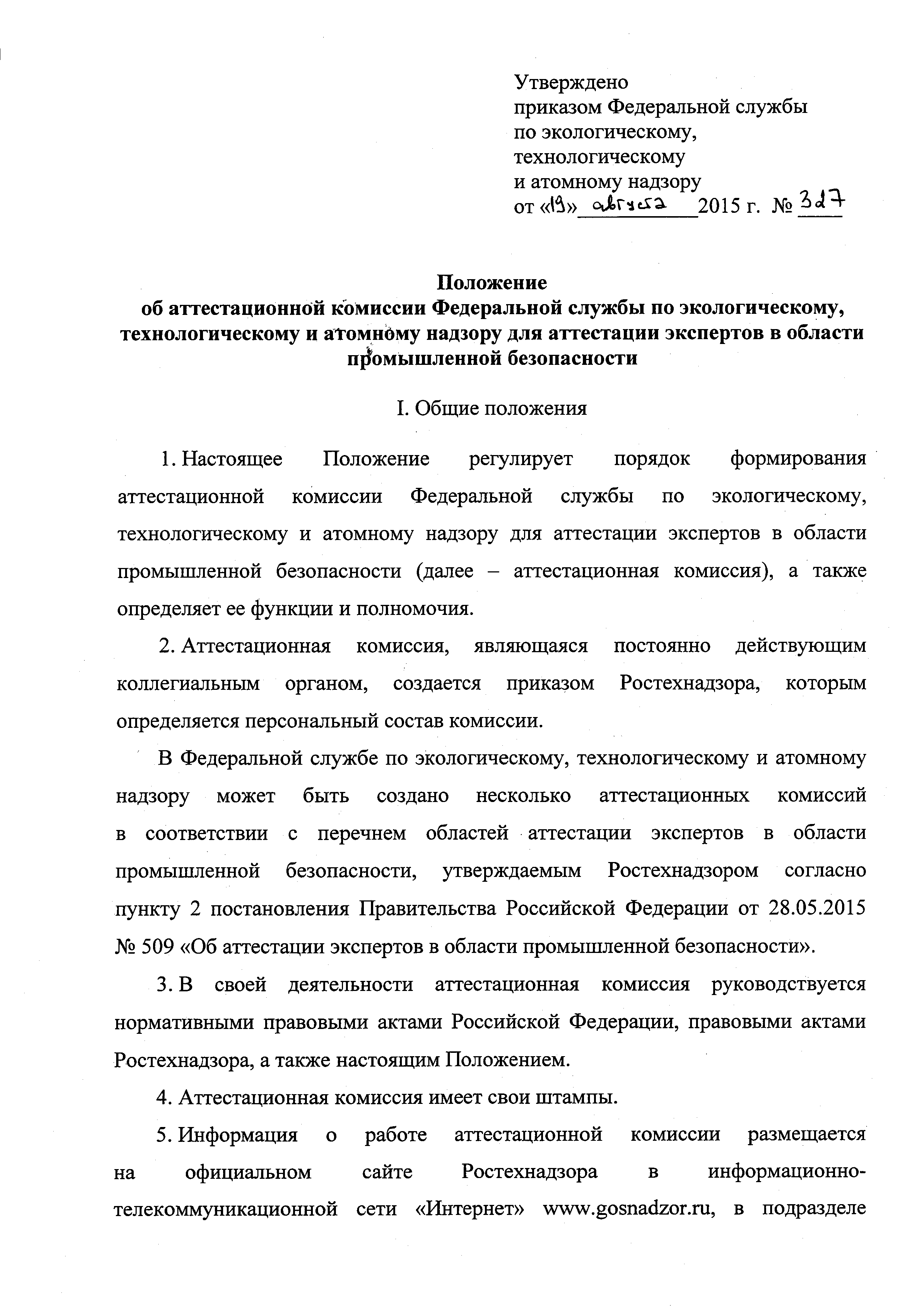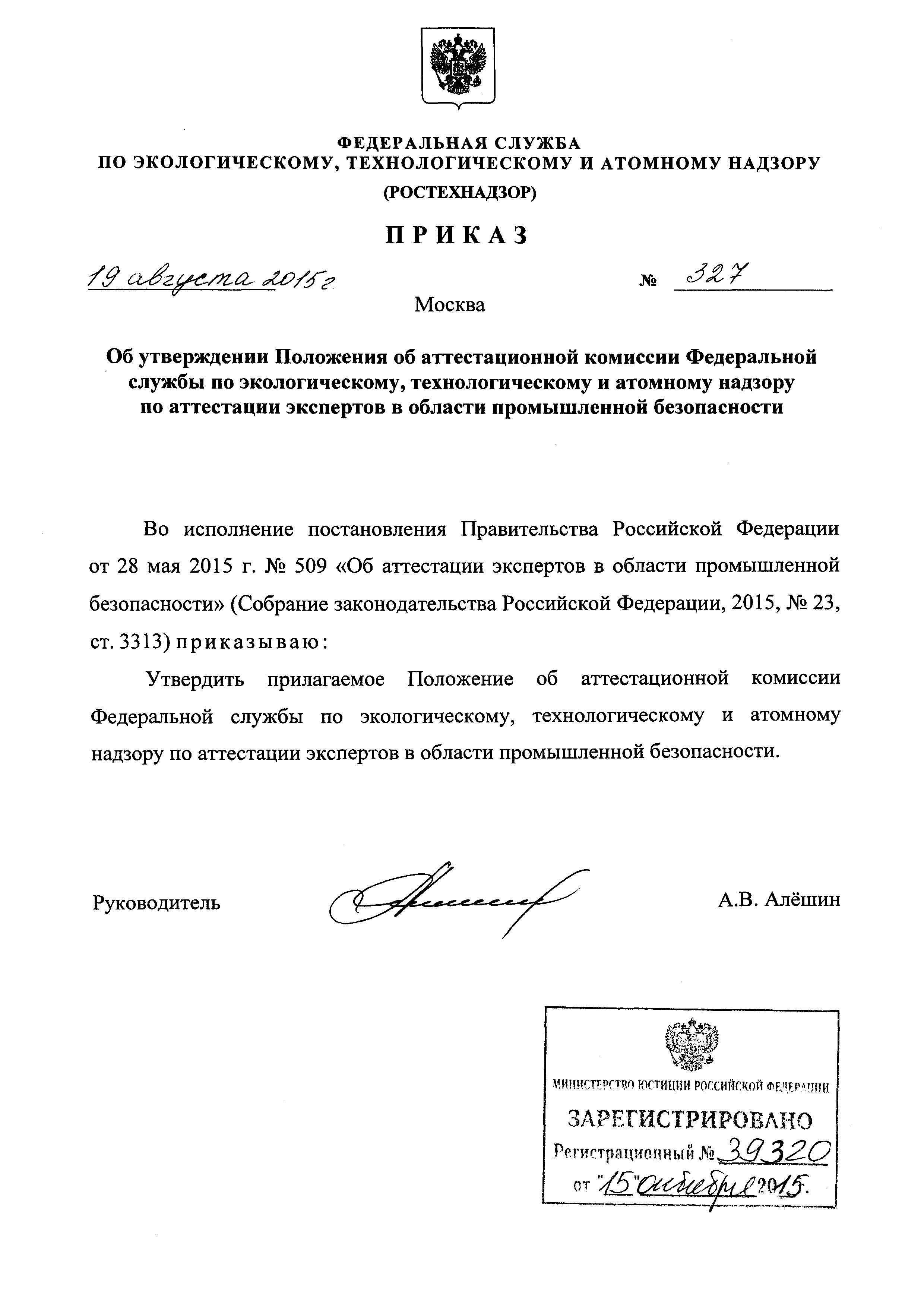 | Утверждён: | 19.08.2015 Федеральная служба по экологическому, технологическому и атомному надзору (327)