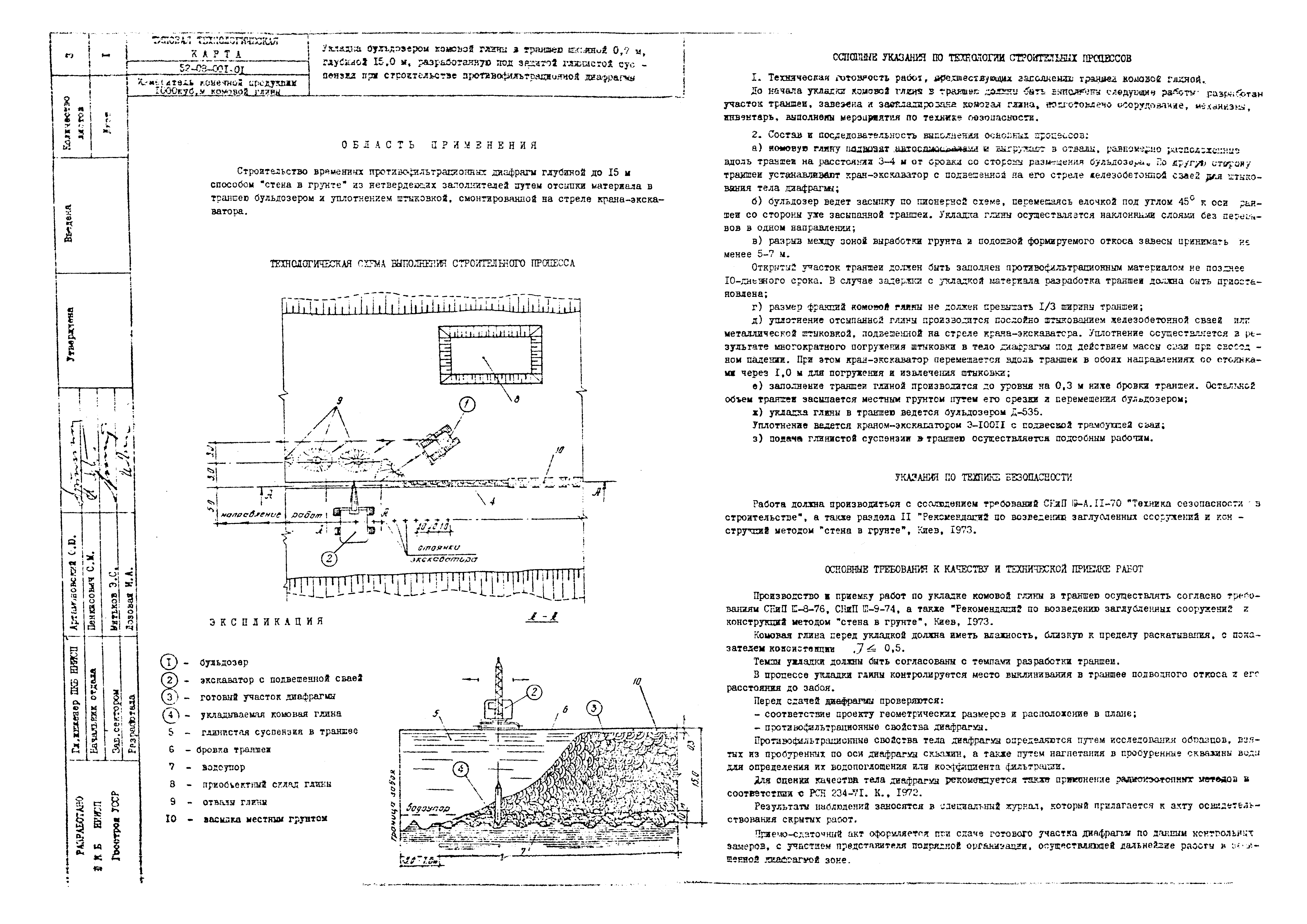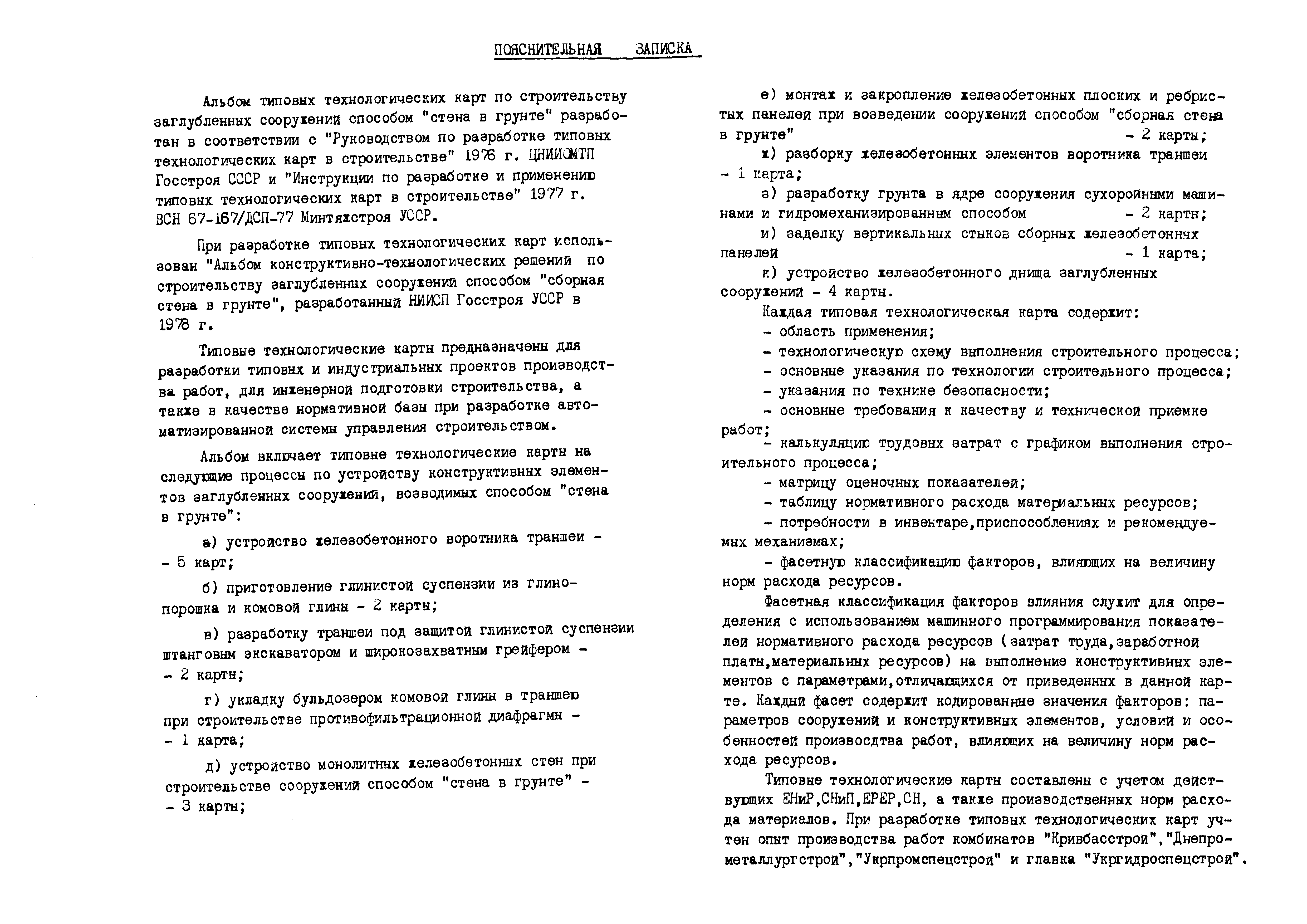 Типовые технологические карты на строительство заглубленных сооружений и противофильтрационных диафрагм методом "стена в грунте"| Статус: | справочные материалы, мп, тпр | | Название рус.: | Типовые технологические карты на строительство заглубленных сооружений и противофильтрационных диафрагм методом "стена в грунте" | | Дата добавления в базу: | 12.02.2016 | | Дата актуализации: | 01.01.2021 | | Область применения: | Документ применяется при разработке траншей в грунтах I - III категории универсальными экскаваторами с погрузкой грунта в транспортные средства при устройстве воротников траншей сборно-монолитной конструкции для возведения ограждающих стен заглубленных сооружений способом "стена в грунте" | | Оглавление: | Пояснительная записка | | Разработан: | НИИСП Госстроя УССР